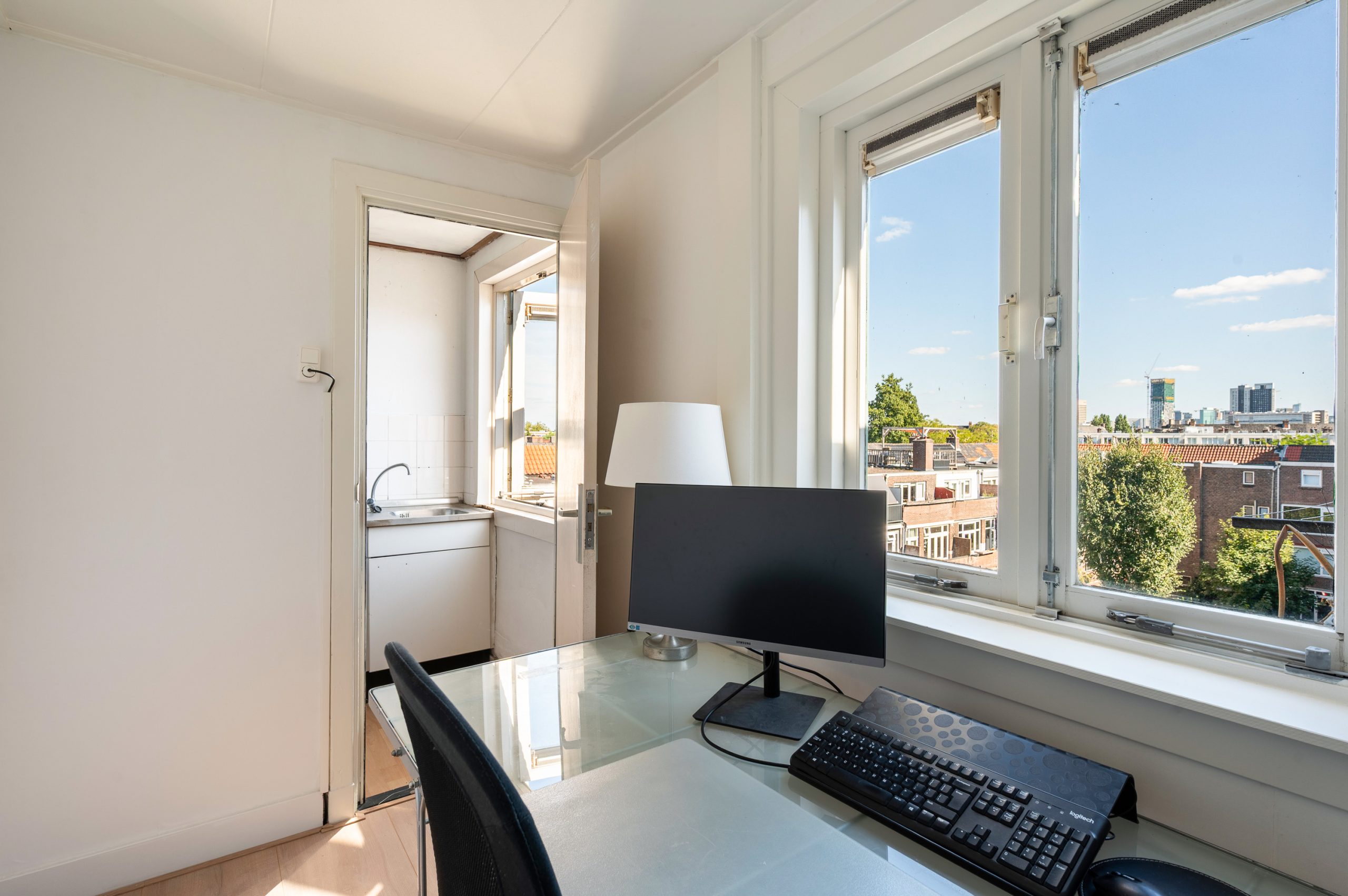 Op de 4e verdieping is er een kamer die is ingericht als kantoorruimte, maar multifunctioneel kan worden ingericht.