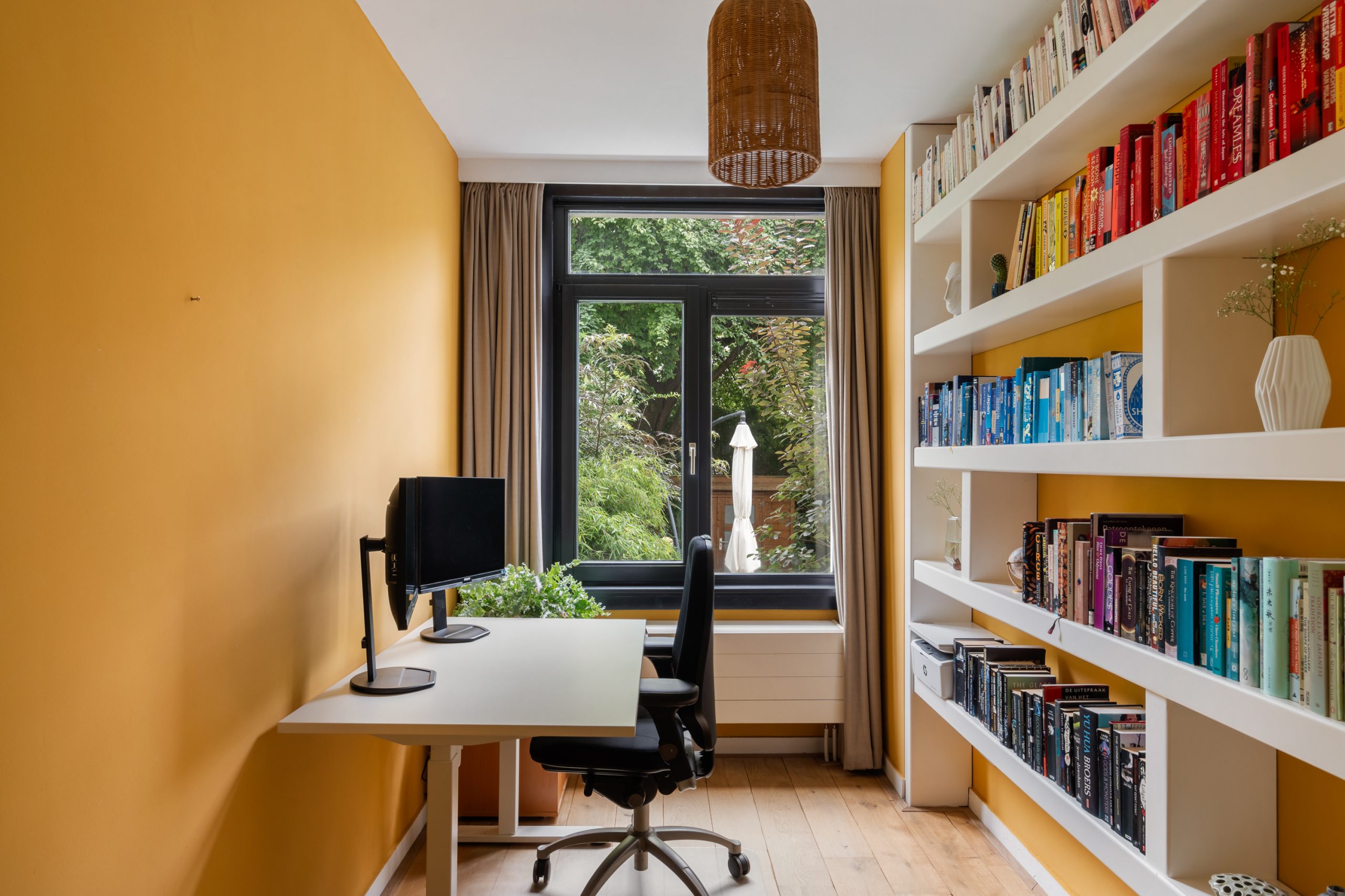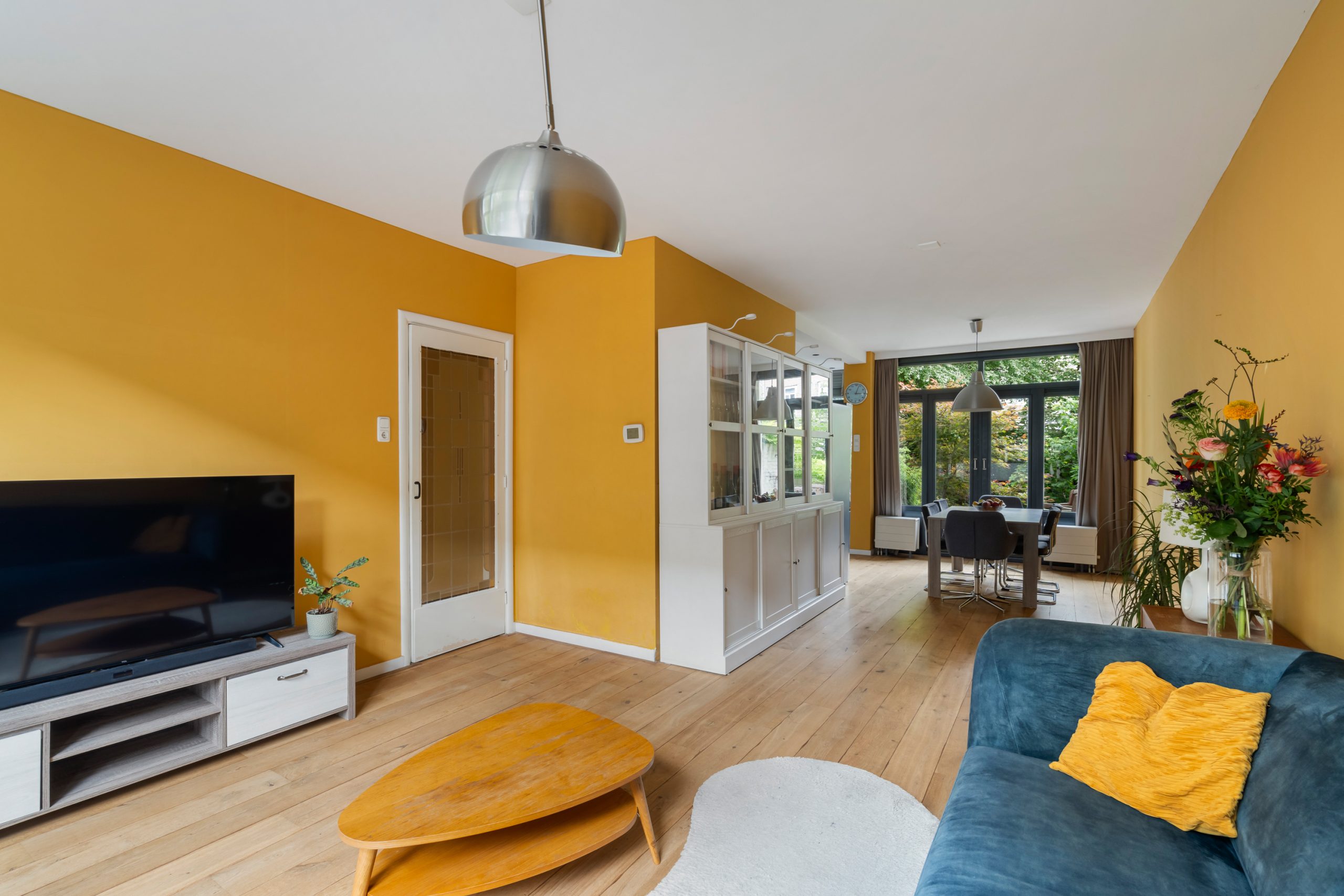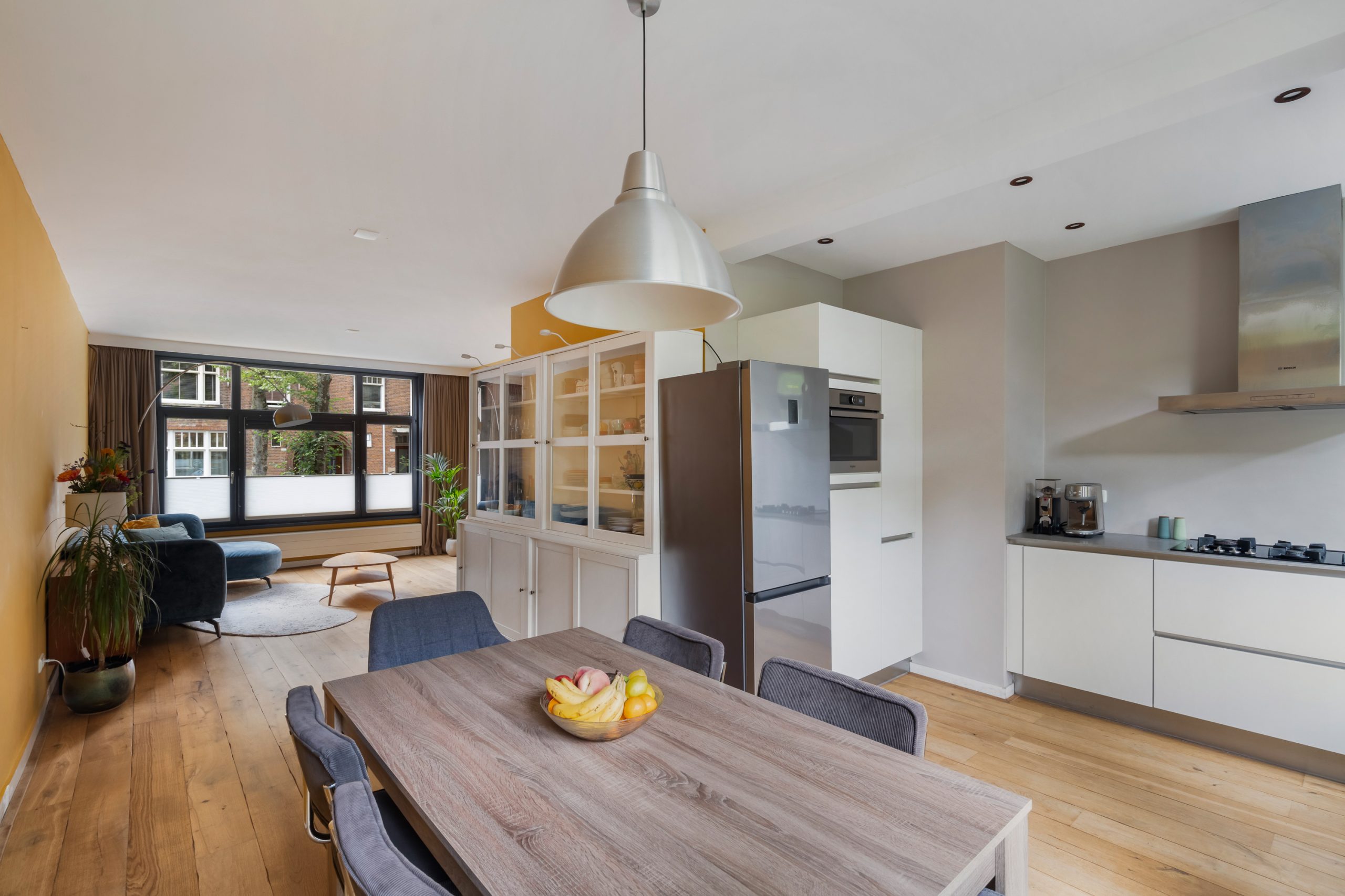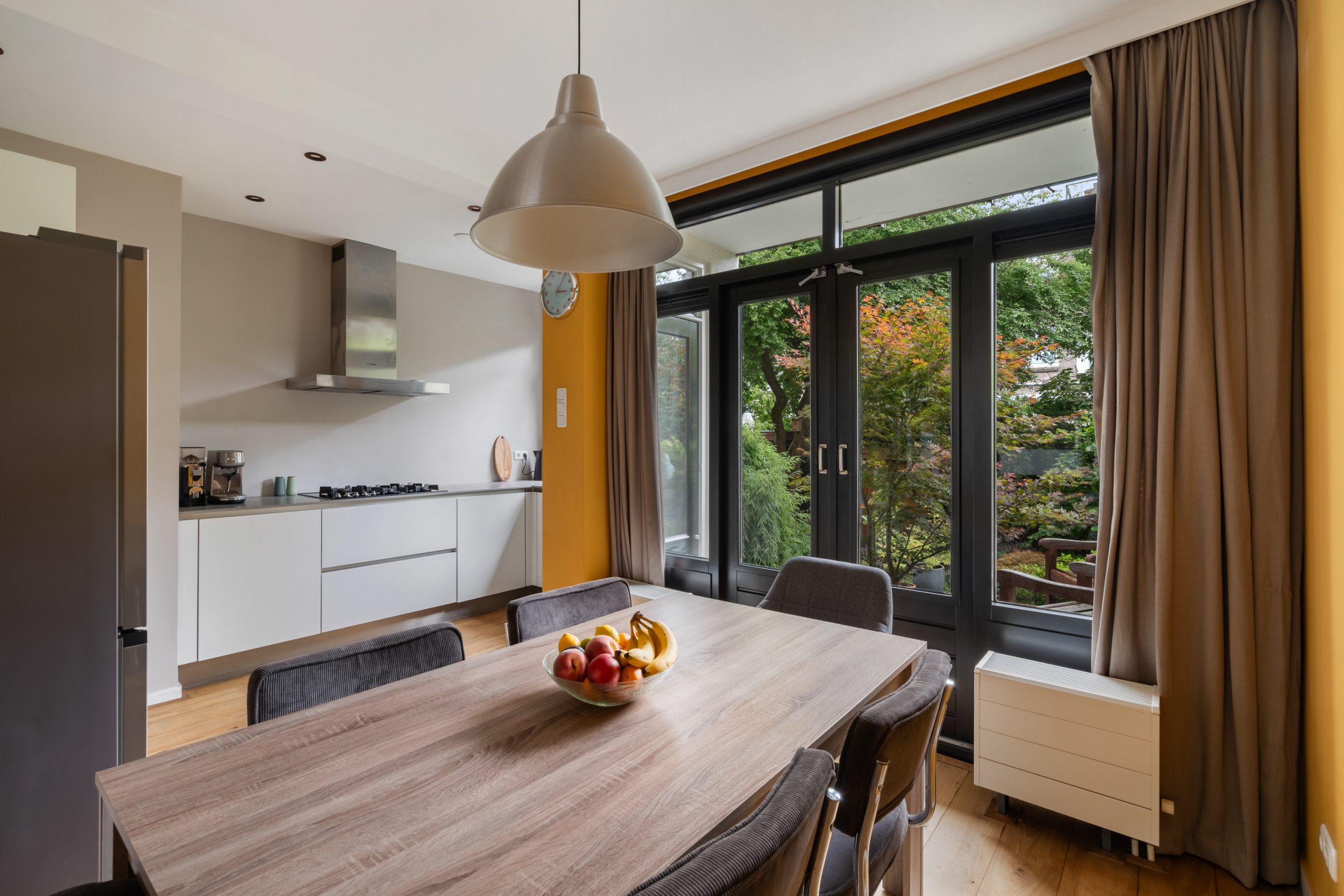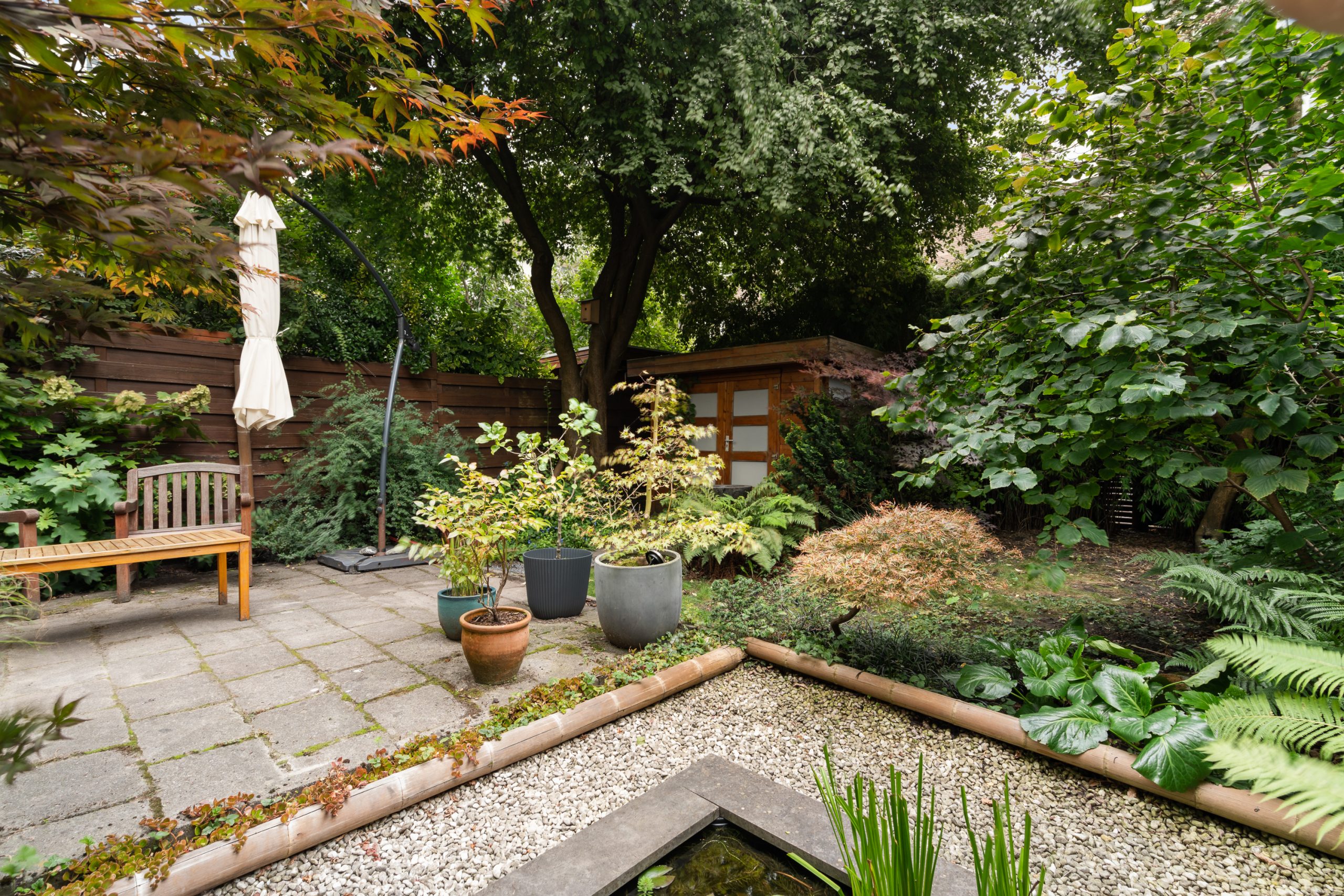 Hal/entree met tochtportaal en ruime hal naar alle vertrekken op deze verdieping. De woonkamer is gelegen aan de voorzijde, vanwaar je uitkijkt over de gezellige en groene straat. Aan de achterzijde bevindt zich de open keuken en het eetgedeelte. Door de open verbinding kun je tijdens het koken altijd in contact blijven met je gezelschap. De moderne keuken beschikt over diverse soorten inbouwapparatuur, zoals een 5-pits gasfornuis, afzuigkap, vaatwasser en oven. Middels openslaande deuren is er toegang tot het terras met een kleine trap naar de lager gelegen tuin. De riante achtertuin heeft een oppervlakte van maar liefst ca. 83 m2! Door de ligging op het zuiden en het ruime oppervlakte is er altijd een plek om heerlijk van de zon te kunnen genieten. Ook is er een vrijstaande houten berging, erg handig voor extra opbergruimte. Op de begane grond bevindt zich de 1e slaapkamer met 2 vaste kasten en uitzicht op de groene tuin. De nette badkamer is voorzien van een inloopdouche, wastafel, toilet en handdoekradiator.