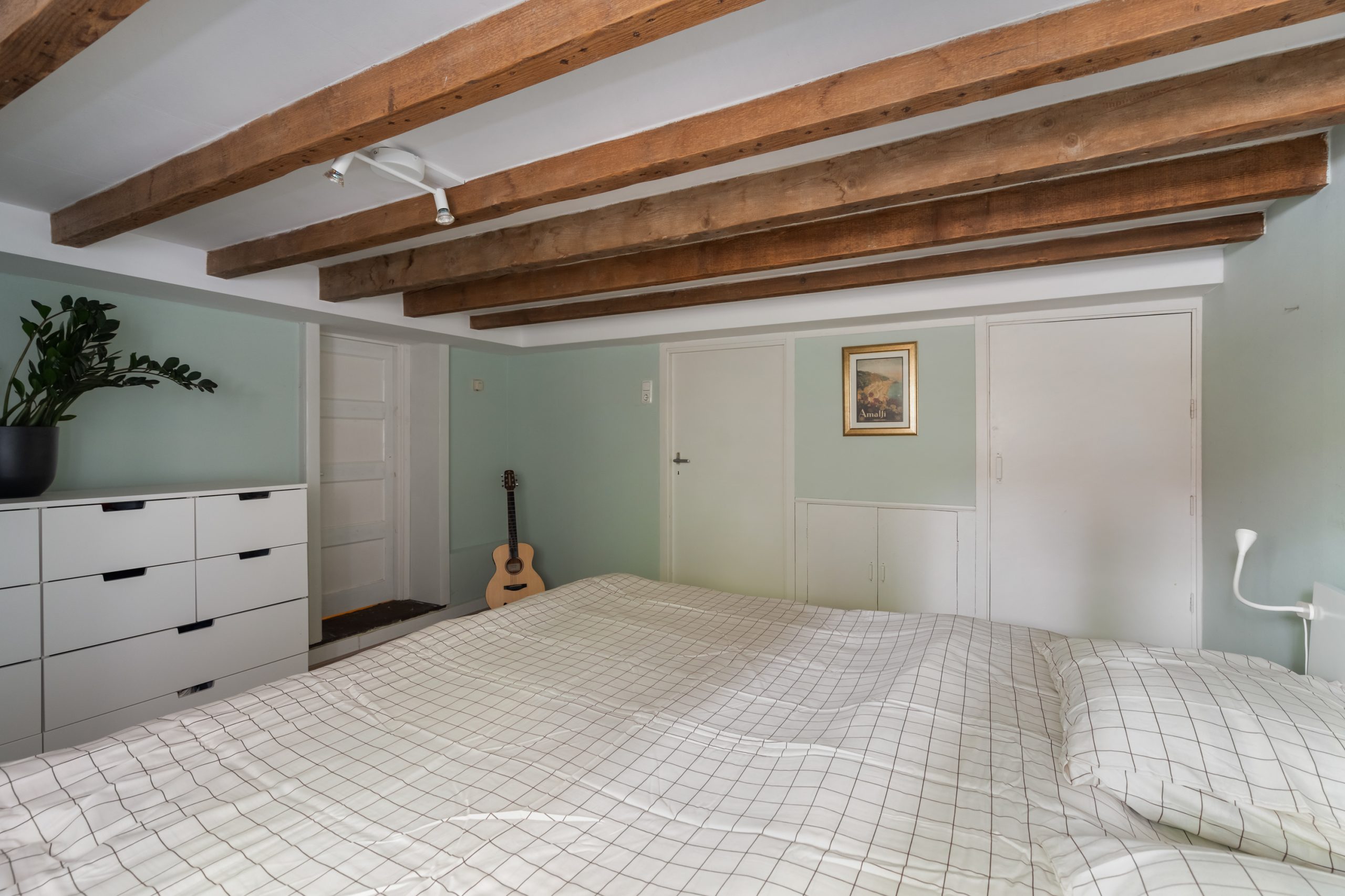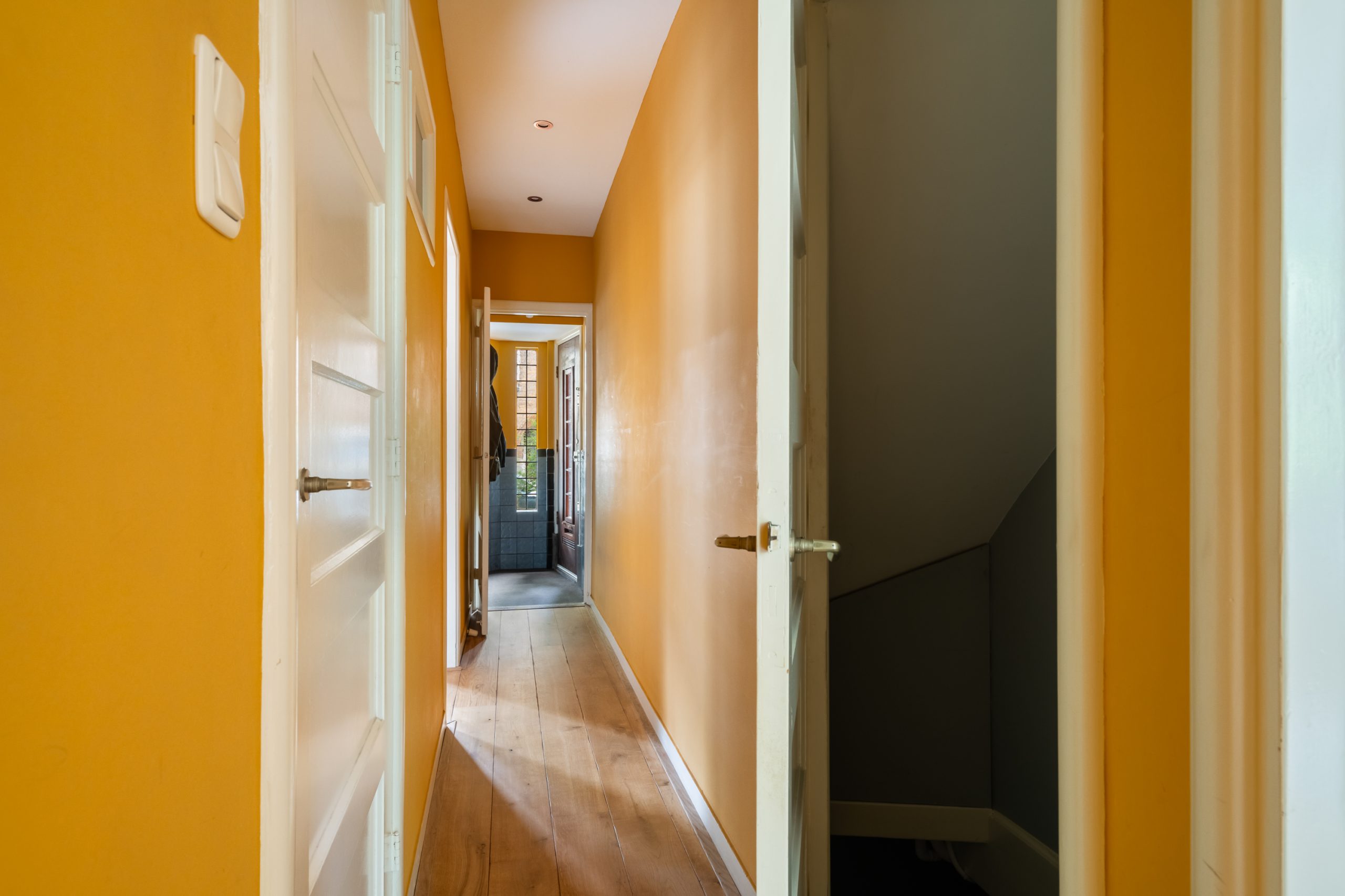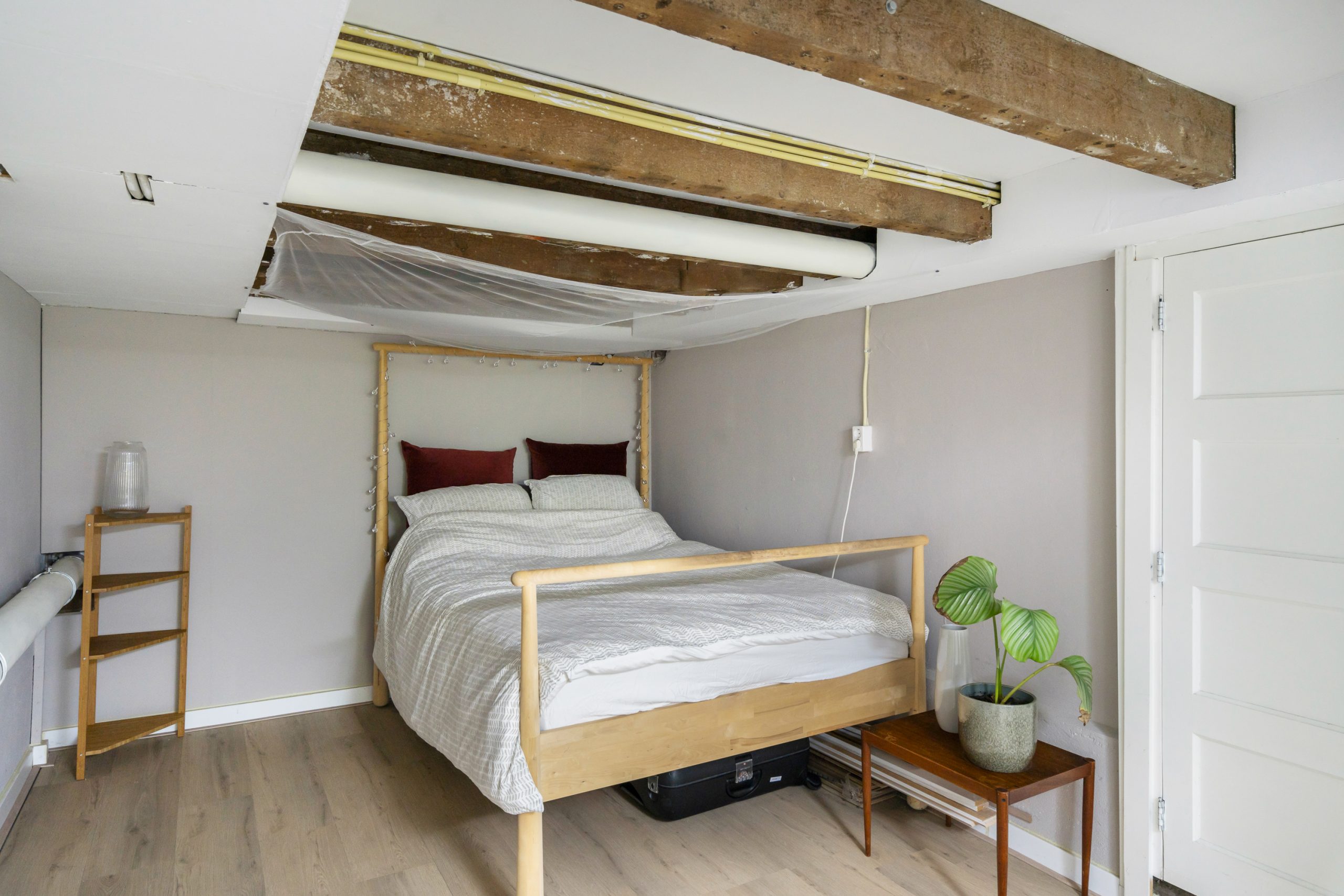 Ruime hal met kast, meterkast en toegang tot de 2 overige slaapkamers. Beide kamers zijn erg ruim van formaat! Het souterrain heeft een stahoogte van bijna 1.90 meter. Mede door de balkenstructuur is het een zeer knusse ruimte. De 3e slaapkamer is te bereiken middels de 2e slaapkamer, waar er tevens een vaste kast is en de wasmachineaansluiting en CV-opstelling (2025).