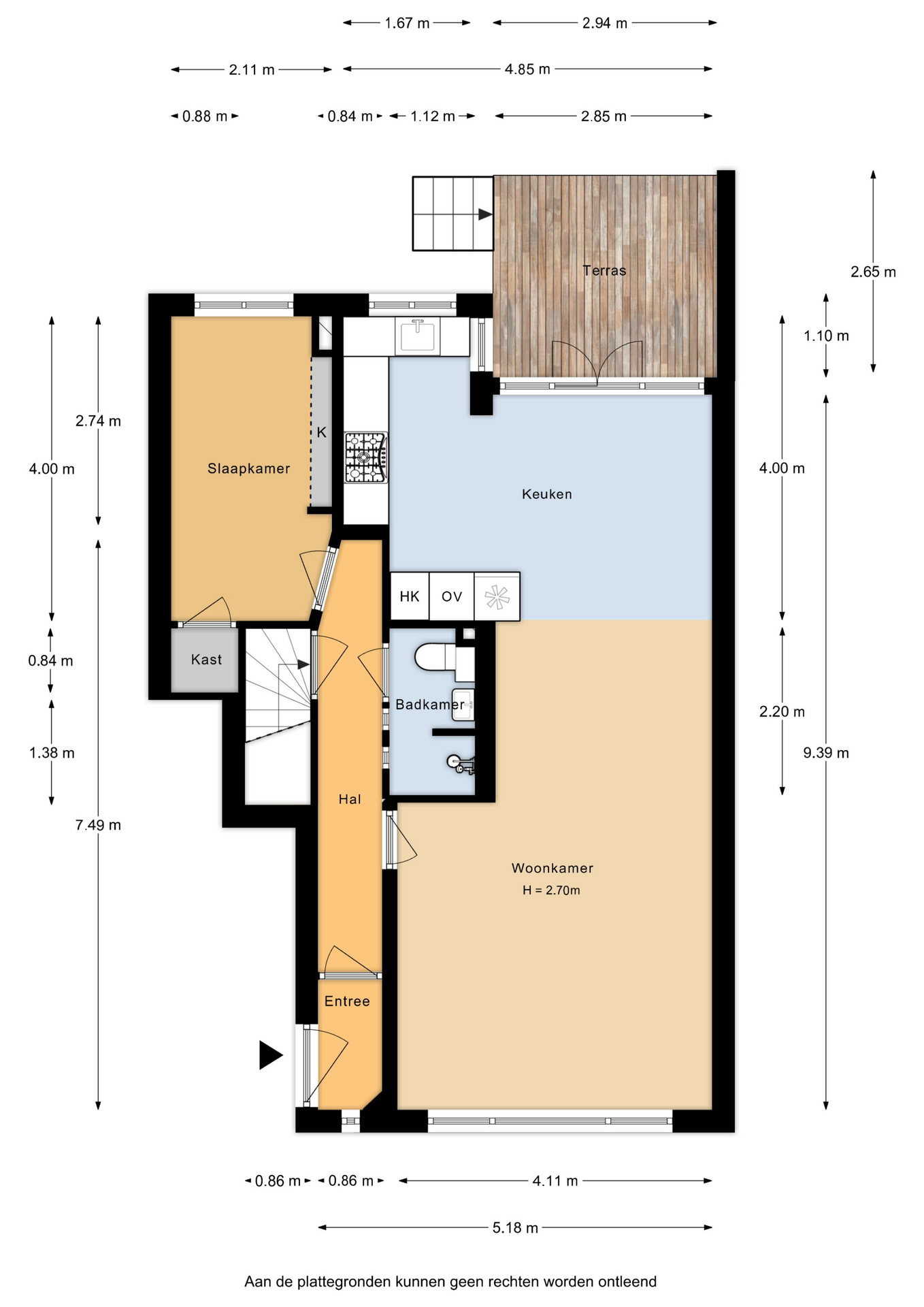 -Woonoppervlakte 105 m2 (het totale opp. is inclusief het souterrain van 43m2 met een stahoogte van 2.06 m (balkhoogte 1.90 m)