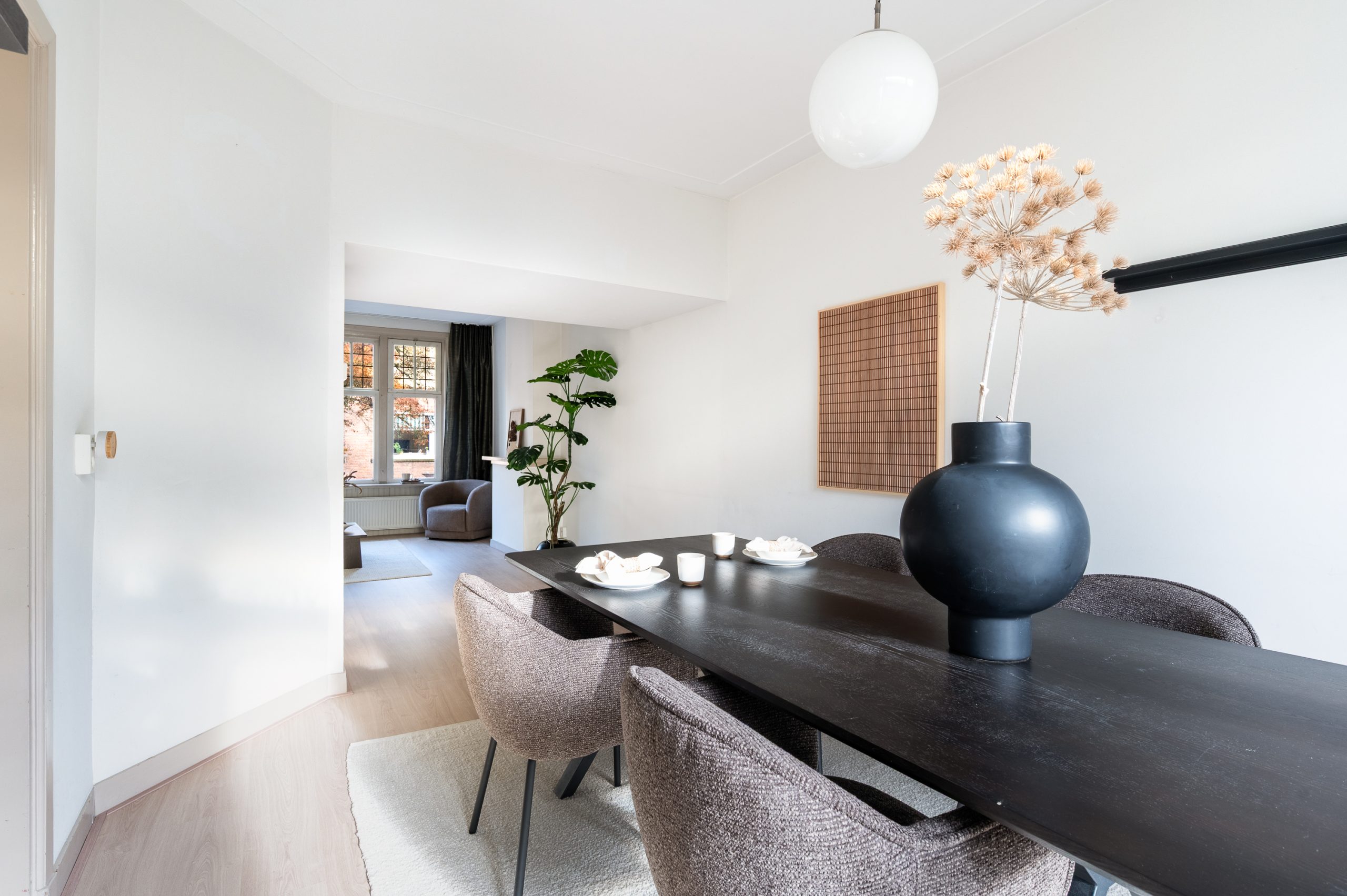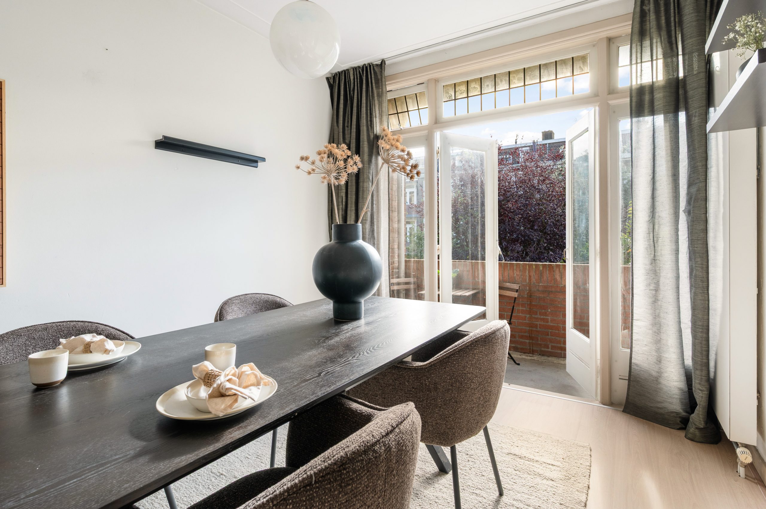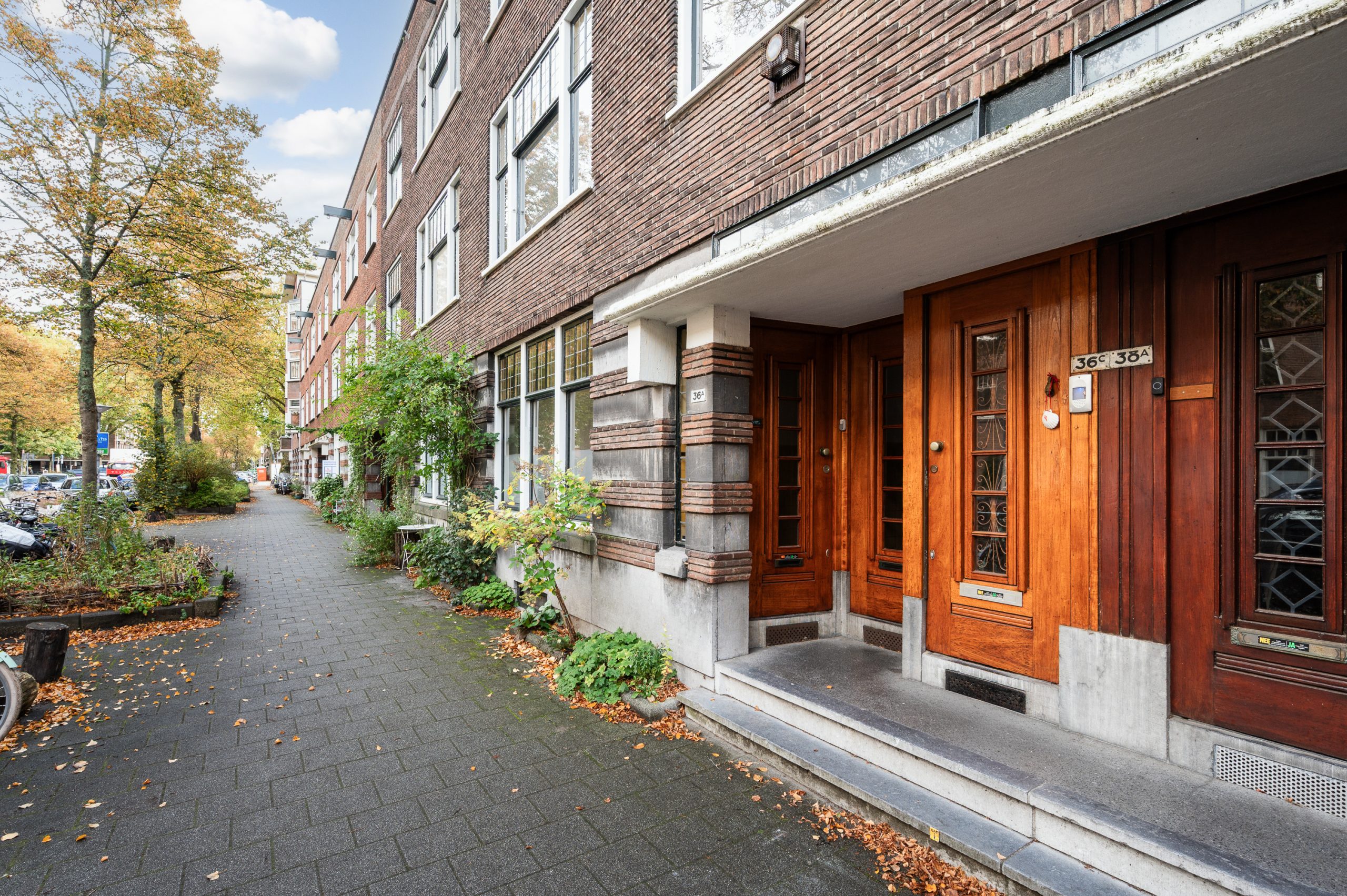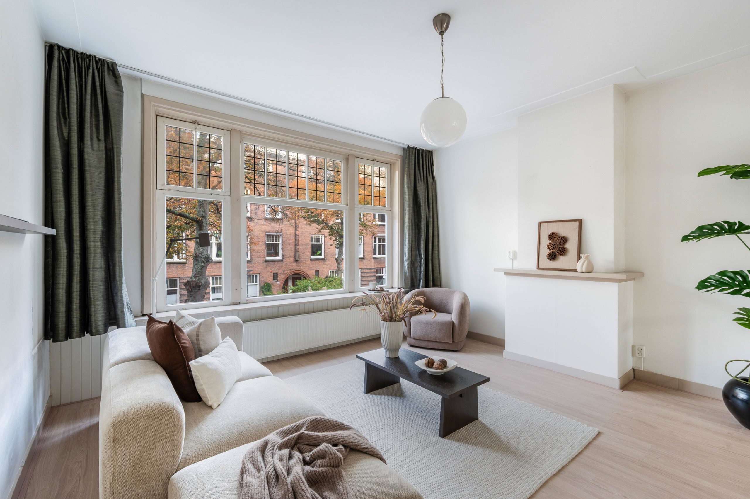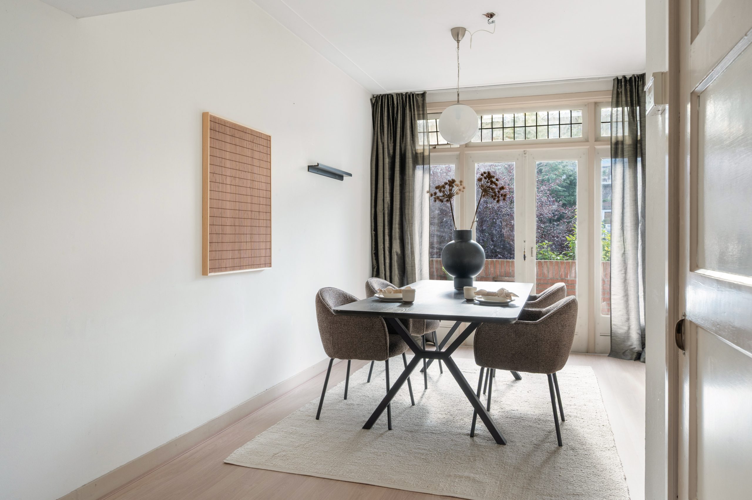 Overloop met vaste kasten en toegang tot alle vertrekken. De originele jaren ’30-details, zoals de lichte ornamenten, glas-in-loodramen en paneeldeuren, geven de woning een sfeervol karakter. Dankzij de L-vormige woonkamer met vaste kast (CV-opstelling) is de ruimte flexibel in te delen, met een mooie scheiding tussen het woongedeelte en eetgedeelte. Dit is ideaal als je de openheid van de leefruimten wilt behouden, maar toch een visuele scheiding tussen de ruimtes wenst. Via openslaande deuren gelegen in het eetgedeelte bereik je het balkon, gelegen op het zonnige zuiden. Hier kan je gedurende dag heerlijk genieten van de zon! De keuken beschikt over diverse inbouwapparatuur zoals een 4-pits gasfornuis met afzuigkap, oven en een vaatwasser. De master bedroom is gelegen aan de achterzijde van de woning. Dit is een ruime en lichte kamer en beschikt over een vaste kast. De lichte 2e slaapkamer is gelegen aan de voorzijde en is ideaal in te richten als kinder-, werk- of kleedkamer. De volledig betegelde badkamer beschikt over een douche, wastafel en een toilet.