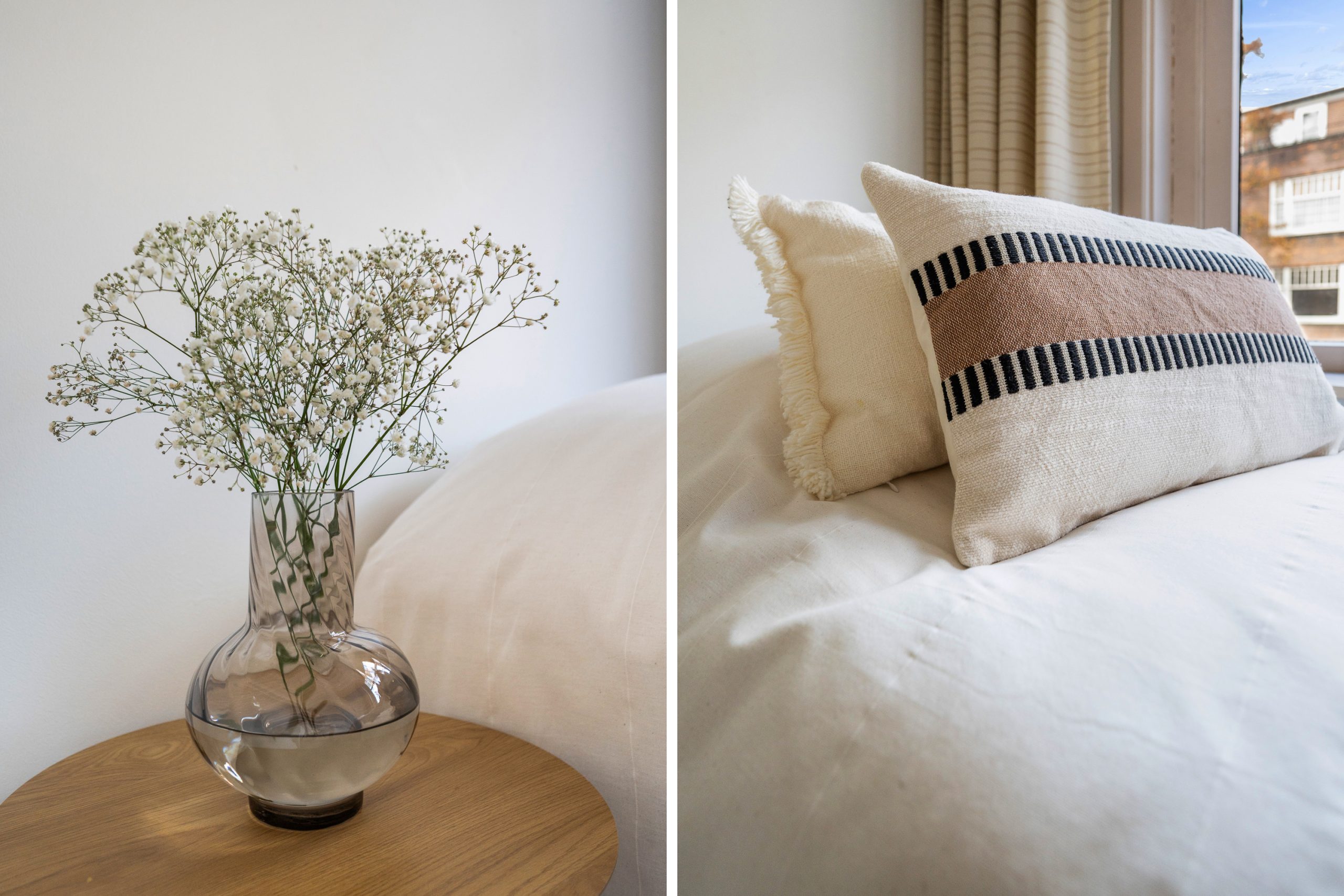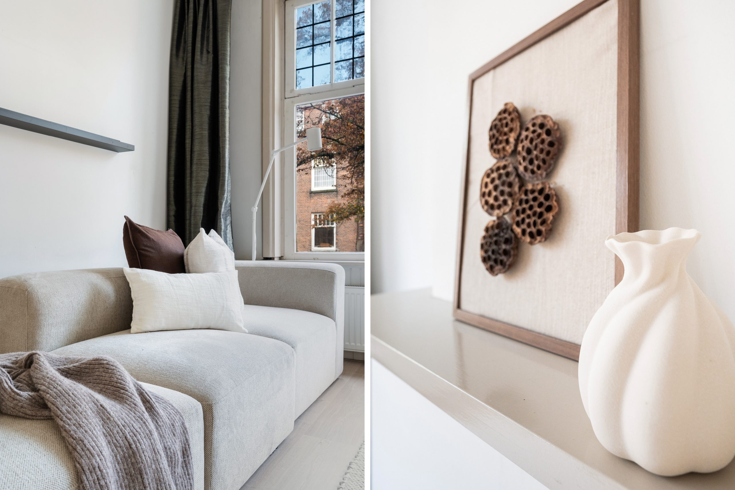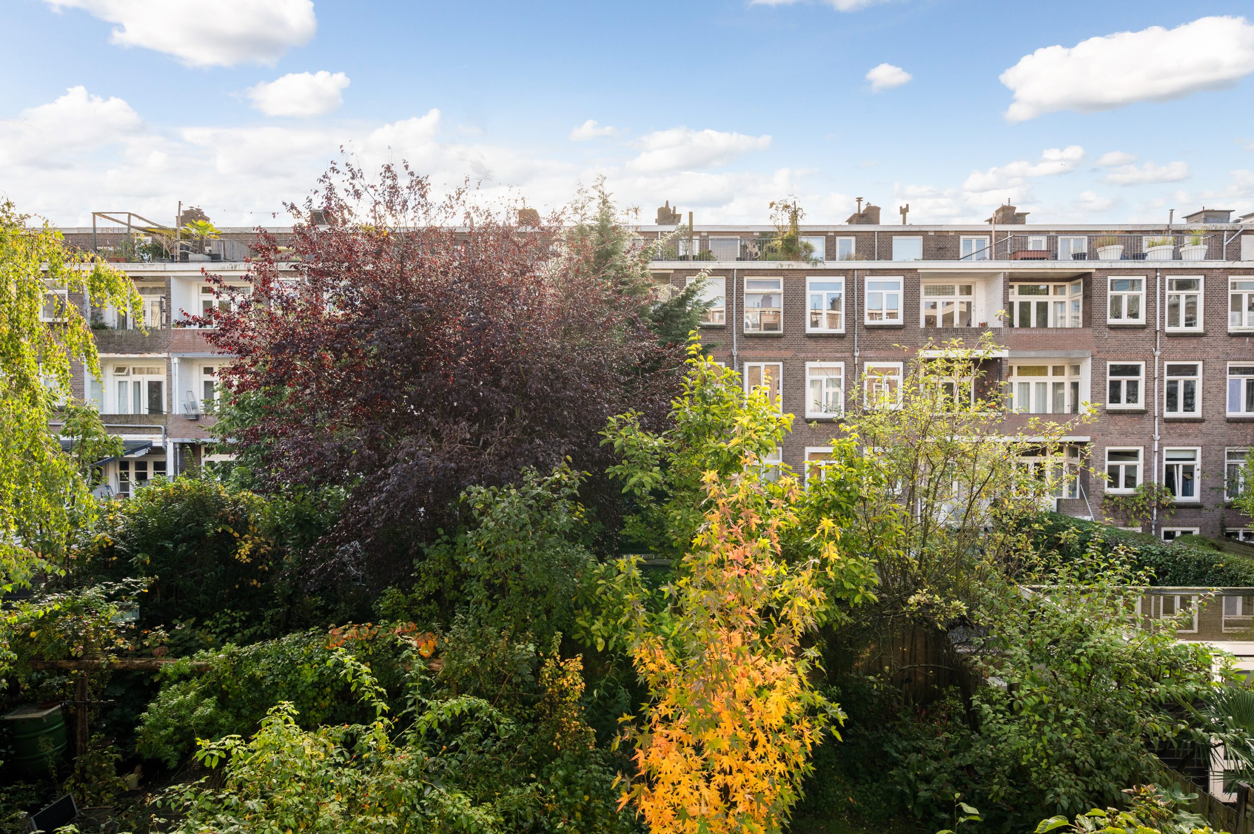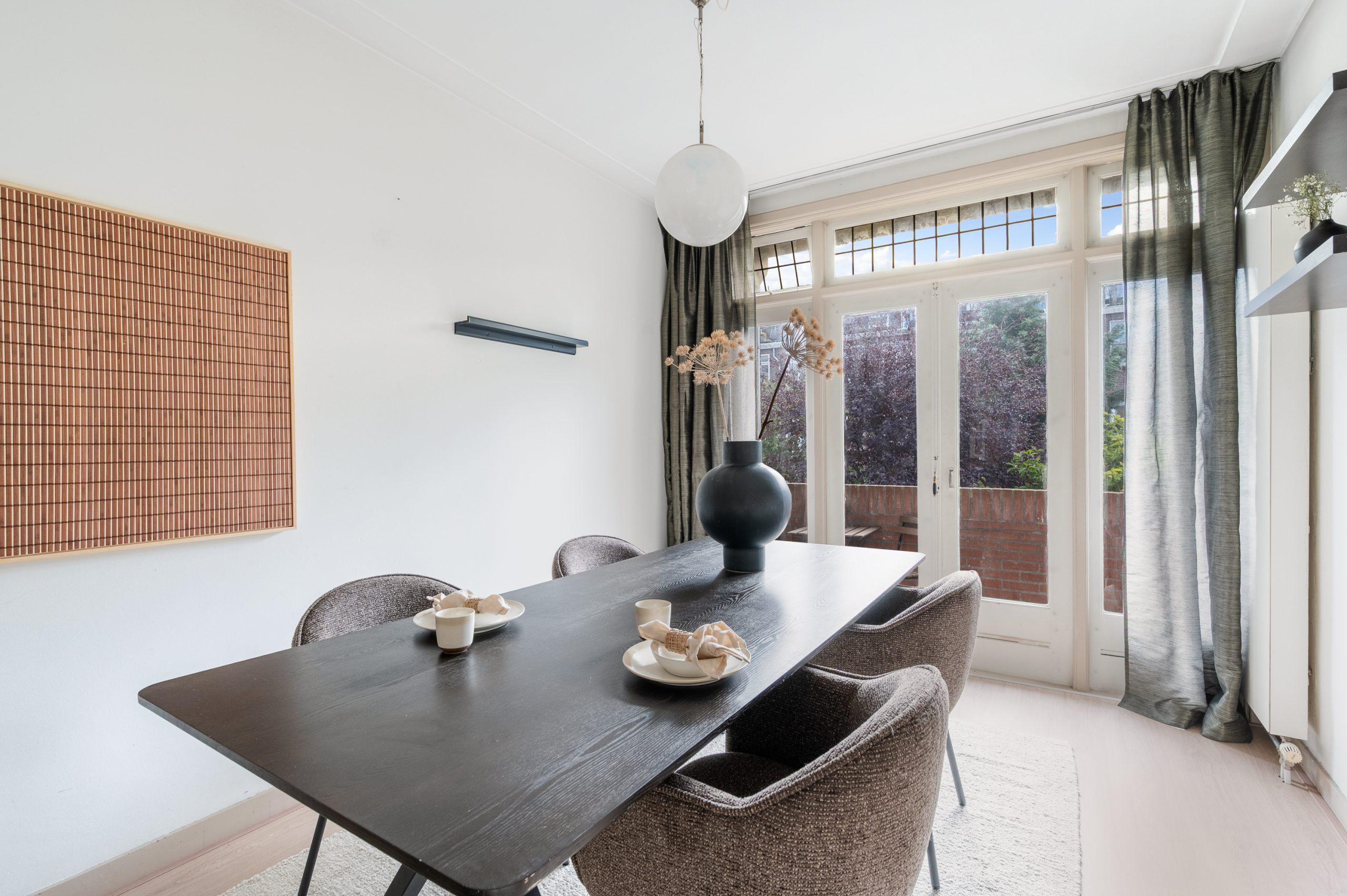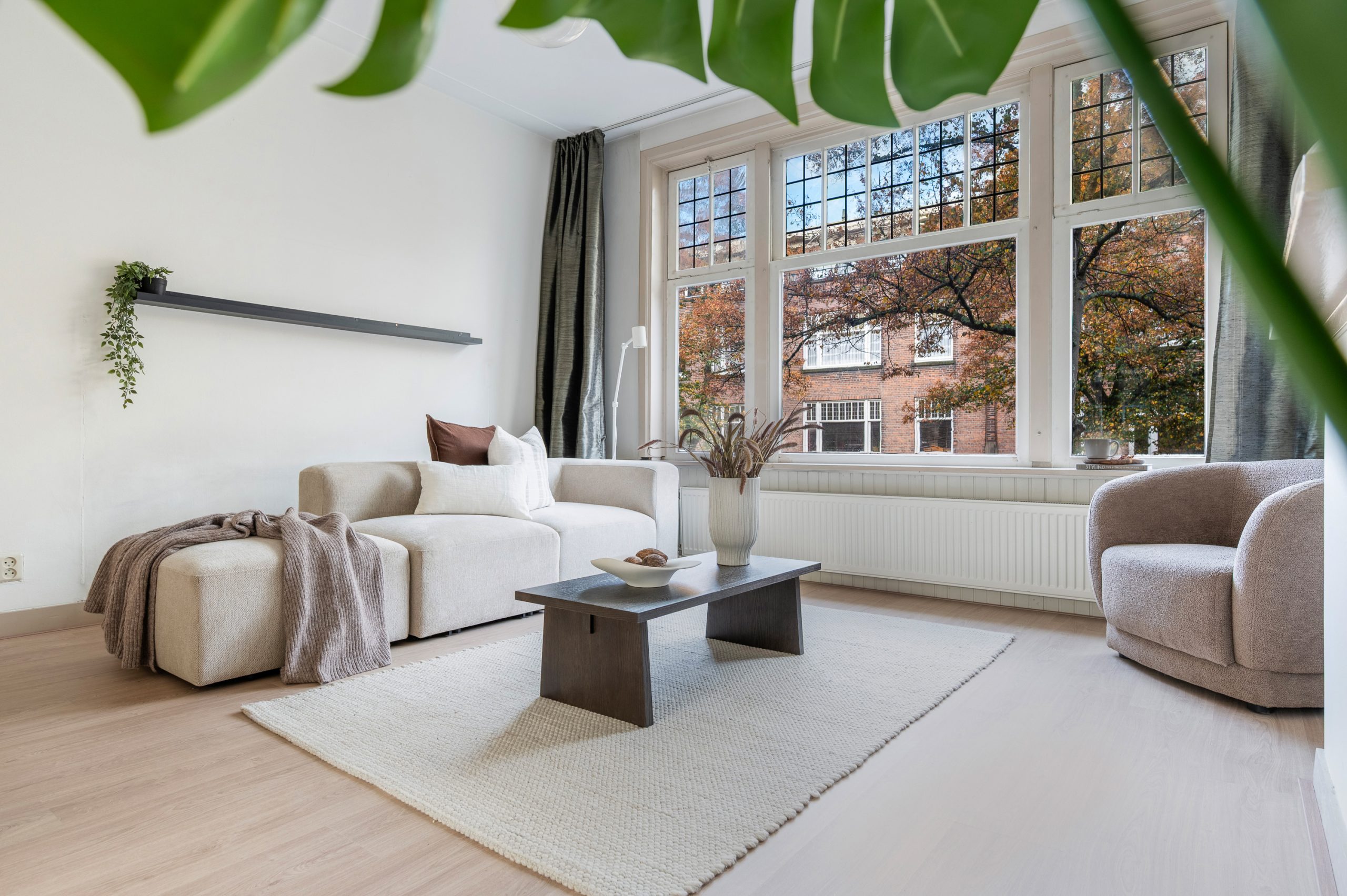 Overloop met vaste kasten en toegang tot alle vertrekken. De originele jaren ’30-details, zoals de lichte ornamenten, glas-in-loodramen en paneeldeuren, geven de woning een sfeervol karakter. Dankzij de L-vormige woonkamer met vaste kast (CV-opstelling) is de ruimte flexibel in te delen, met een mooie scheiding tussen het woongedeelte en eetgedeelte. Dit is ideaal als je de openheid van de leefruimten wilt behouden, maar toch een visuele scheiding tussen de ruimtes wenst. Via openslaande deuren gelegen in het eetgedeelte bereik je het balkon, gelegen op het zonnige zuiden. Hier kan je gedurende dag heerlijk genieten van de zon! De keuken beschikt over diverse inbouwapparatuur zoals een 4-pits gasfornuis met afzuigkap, oven en een vaatwasser. De master bedroom is gelegen aan de achterzijde van de woning. Dit is een ruime en lichte kamer en beschikt over een vaste kast. De lichte 2e slaapkamer is gelegen aan de voorzijde en is ideaal in te richten als kinder-, werk- of kleedkamer. De volledig betegelde badkamer beschikt over een douche, wastafel en een toilet.