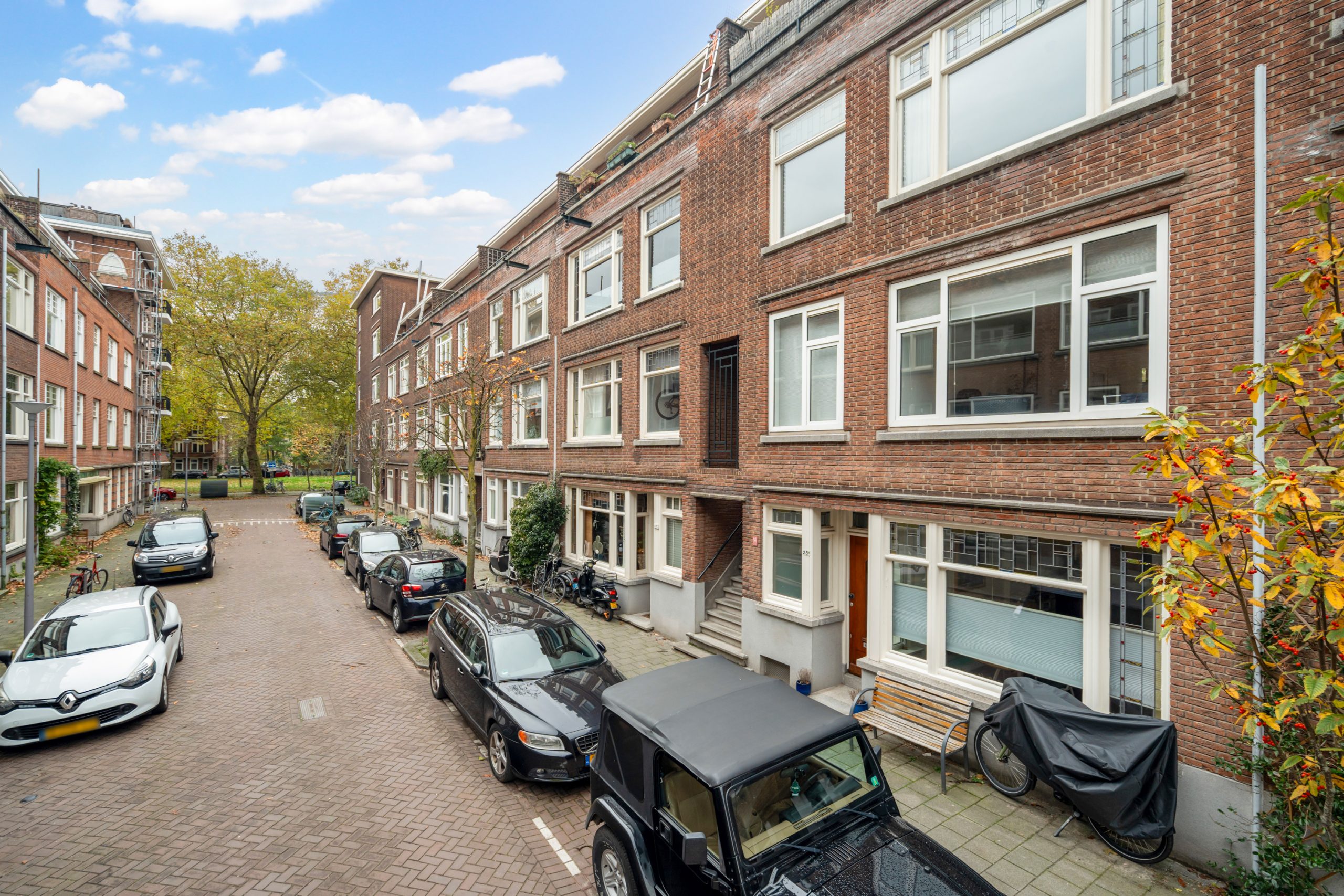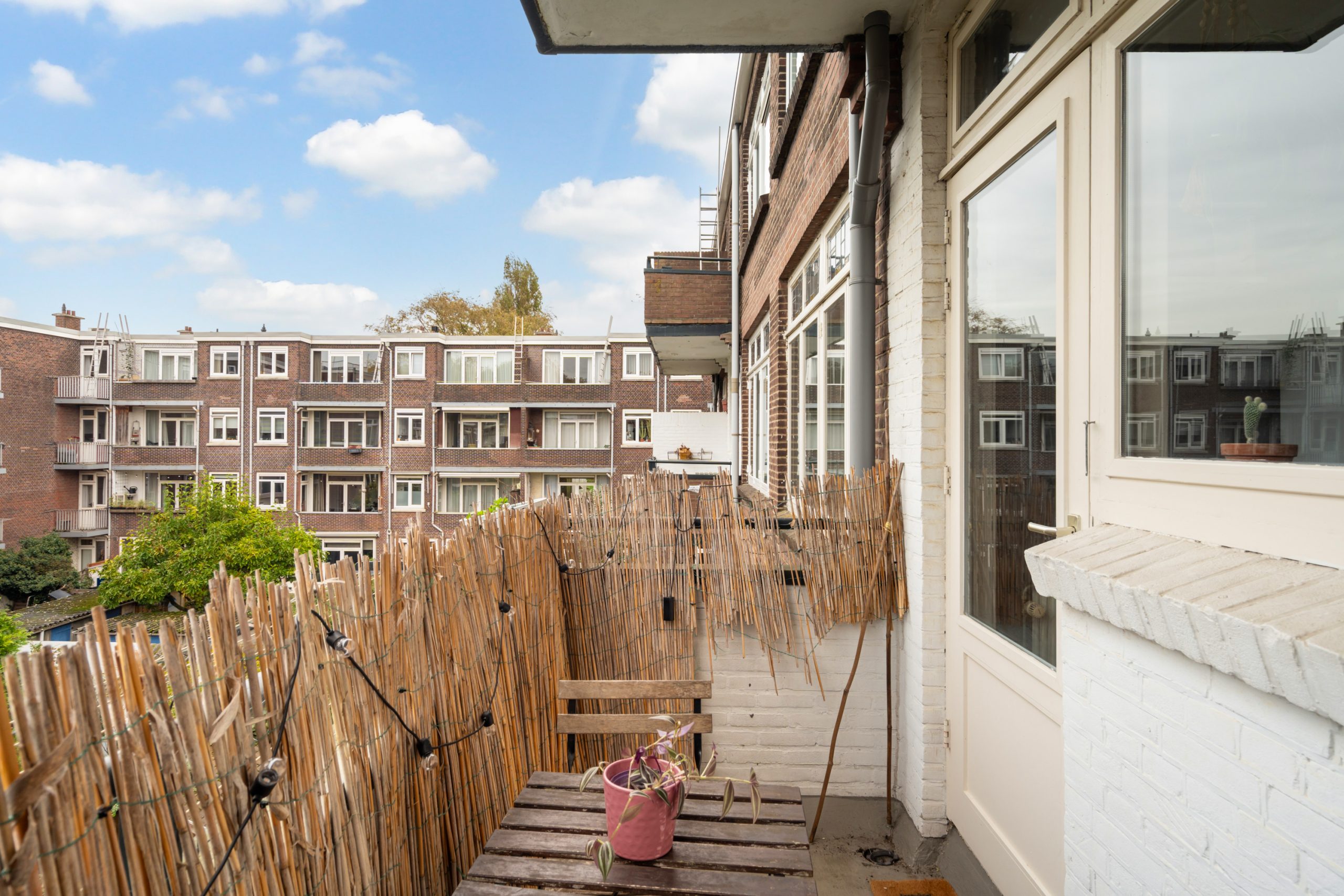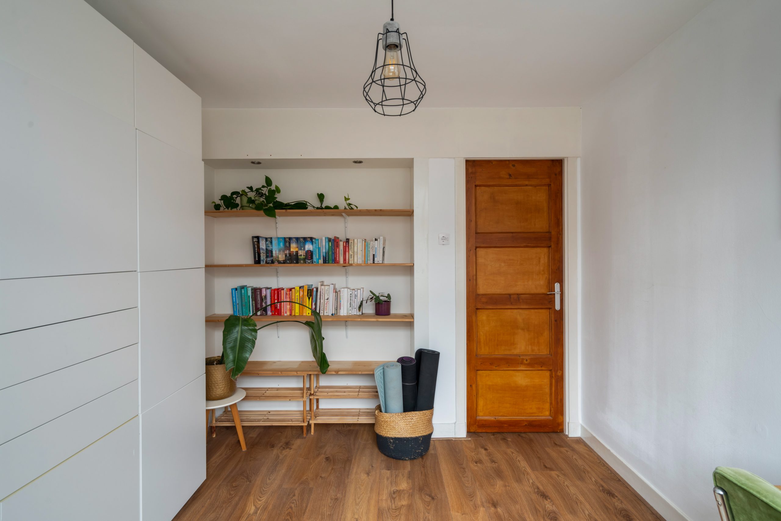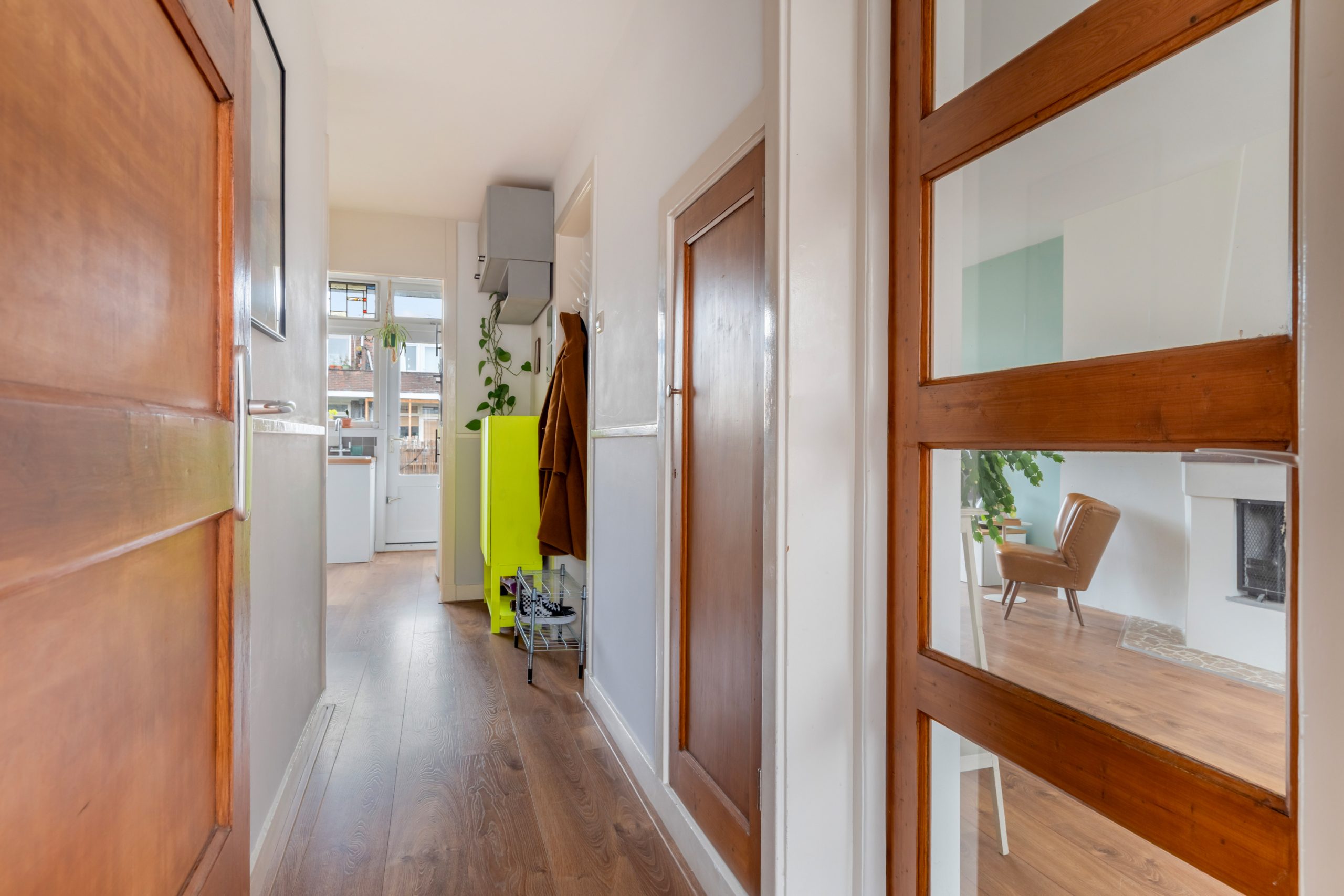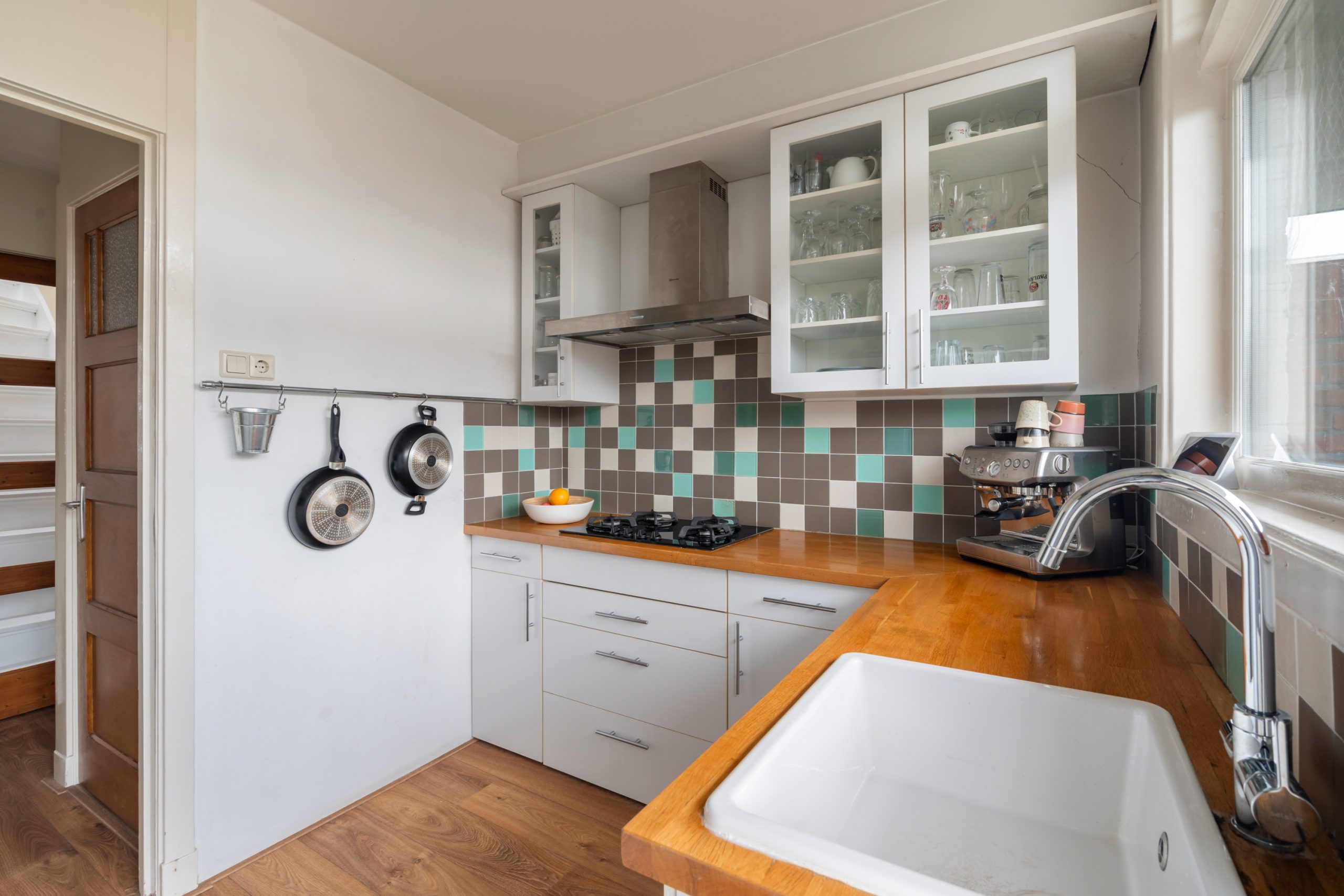 Overloop met meterkast, separaat toilet en toegang tot alle vertrekken. De royale woon-/eetkamer heeft maar liefst een lengte van ca. 10 meter lang! Door de grote raampartijen (die nog beschikken over het authentieke glas-in-lood) aan beide zijden van de woning treedt er veel natuurlijk licht de woning binnen, wat zorgt voor een fijne sfeer. Het zitgedeelte bevindt zich aan de achterzijde van de woning en vormt een fijne plek om te ontspannen. De eetkamer is gelegen aan de voorzijde van de woning en beschikt over voldoende ruimte voor een grote eettafel. De moderne keuken beschikt over diverse inbouwapparatuur zoals een 4-pits gasfornuis met afzuigkap, oven, vaatwasser en voldoende opbergruimte. De keuken biedt toegang tot het 1e balkon op het noordwesten. De 1e slaapkamer is gelegen aan de voorzijde en biedt voldoende ruimte voor een tweepersoonsbed en een kledingkast.