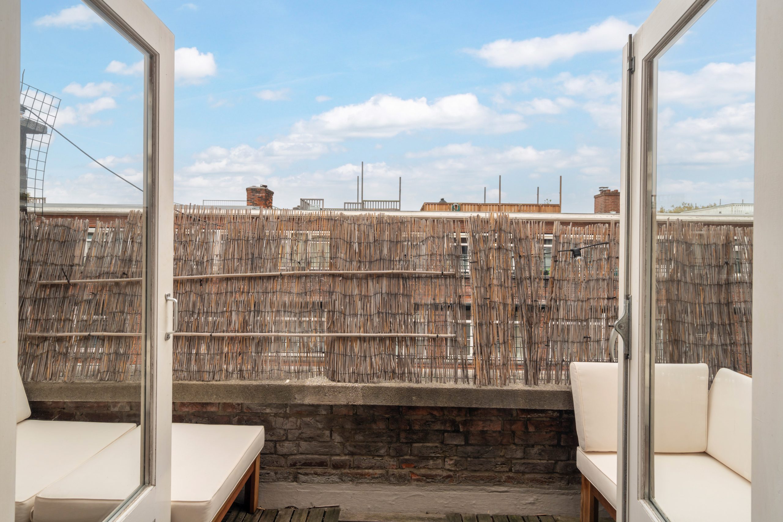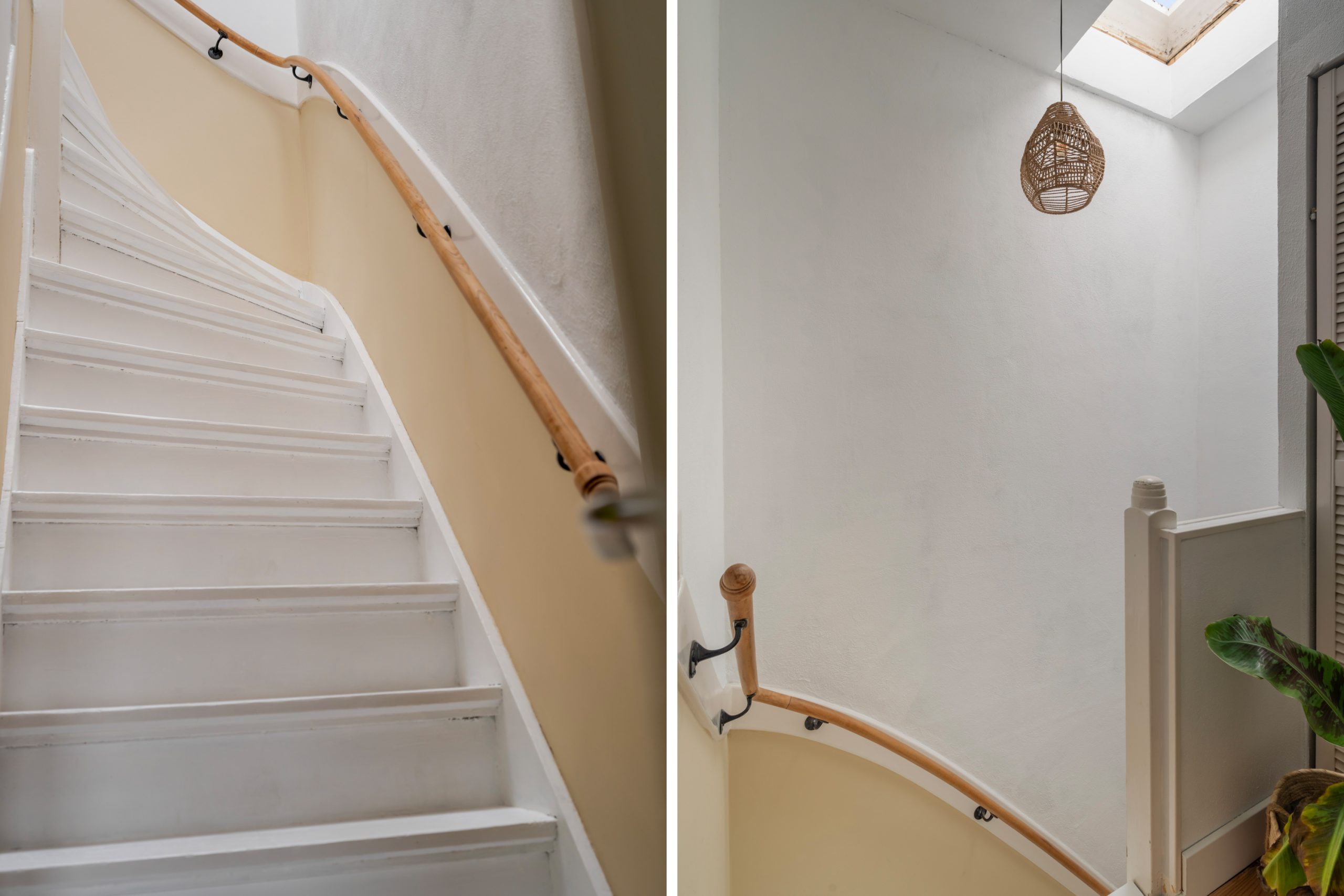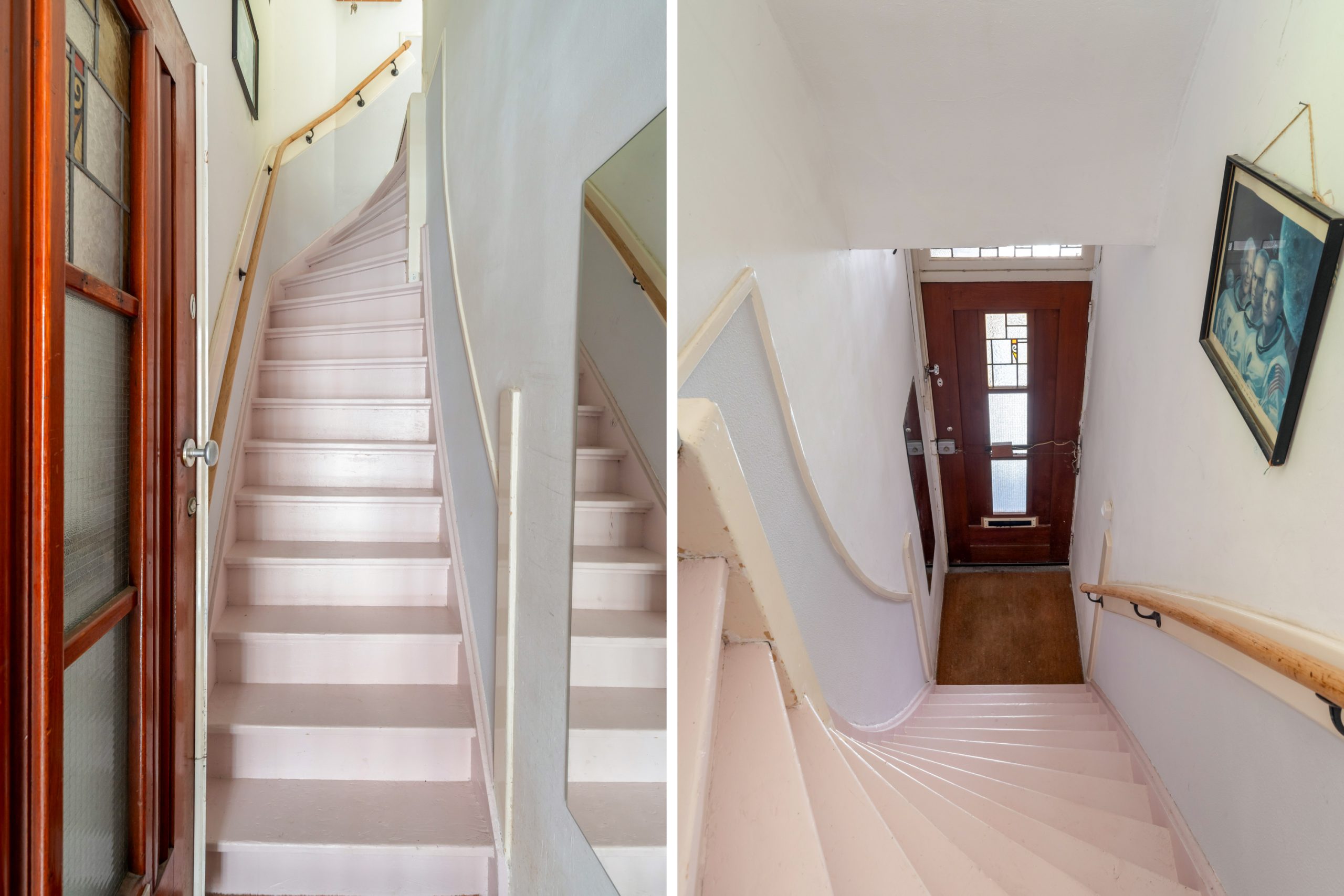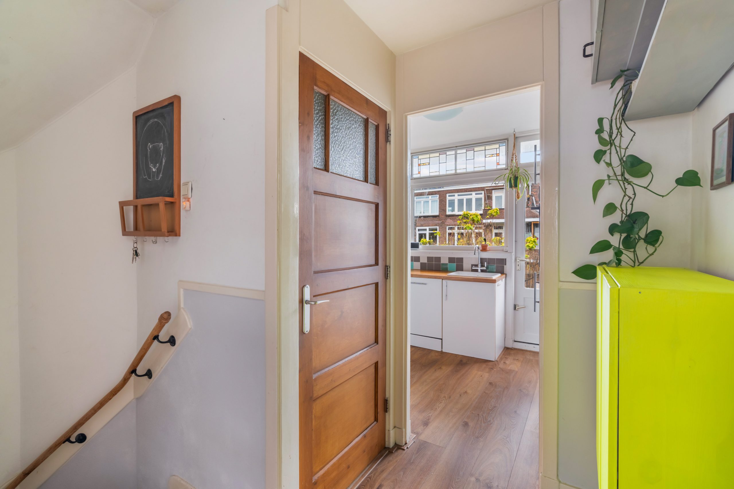 Overloop met meterkast, separaat toilet en toegang tot alle vertrekken. De royale woon-/eetkamer heeft maar liefst een lengte van ca. 10 meter lang! Door de grote raampartijen (die nog beschikken over het authentieke glas-in-lood) aan beide zijden van de woning treedt er veel natuurlijk licht de woning binnen, wat zorgt voor een fijne sfeer. Het zitgedeelte bevindt zich aan de achterzijde van de woning en vormt een fijne plek om te ontspannen. De eetkamer is gelegen aan de voorzijde van de woning en beschikt over voldoende ruimte voor een grote eettafel. De moderne keuken beschikt over diverse inbouwapparatuur zoals een 4-pits gasfornuis met afzuigkap, oven, vaatwasser en voldoende opbergruimte. De keuken biedt toegang tot het 1e balkon op het noordwesten. De 1e slaapkamer is gelegen aan de voorzijde en biedt voldoende ruimte voor een tweepersoonsbed en een kledingkast.