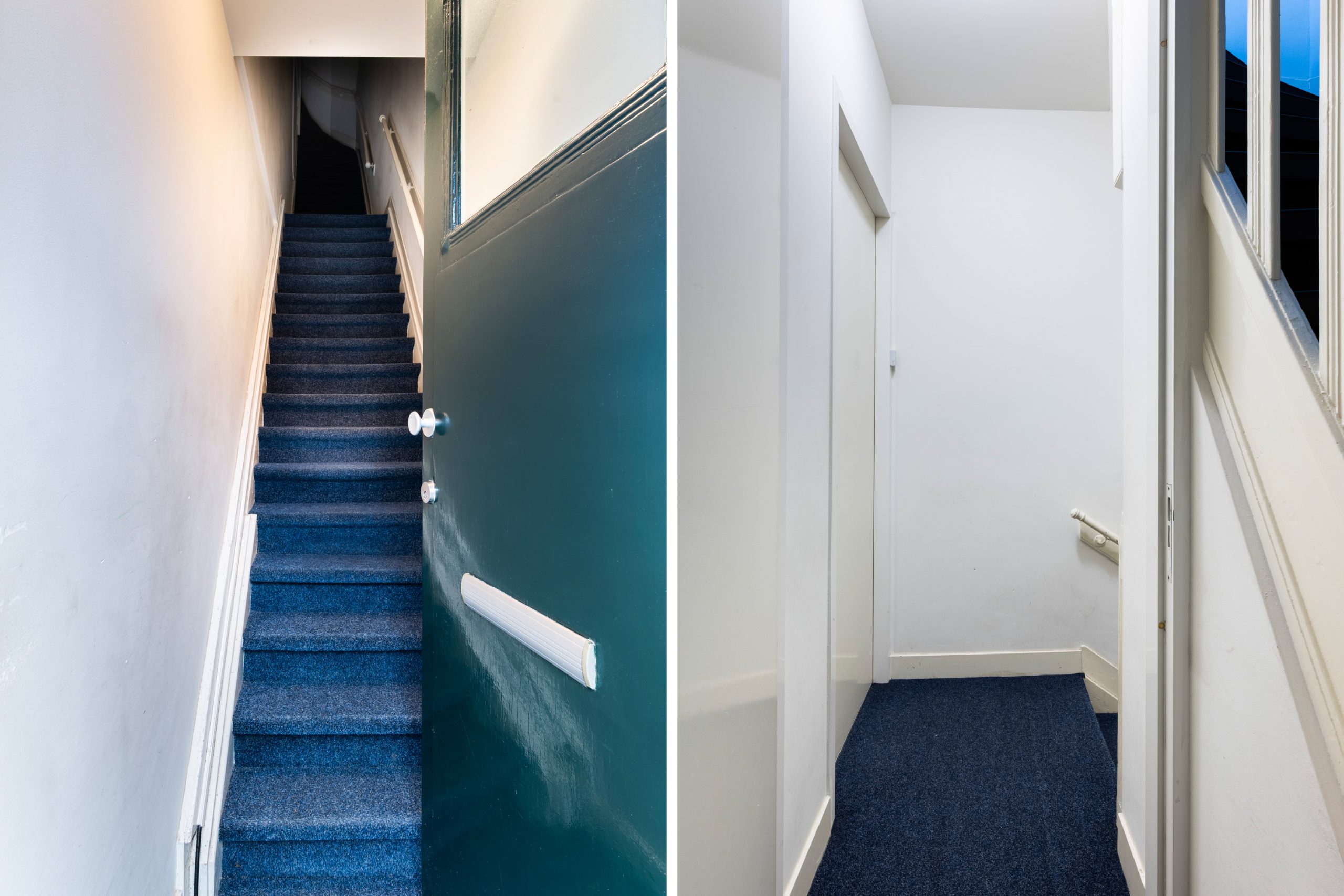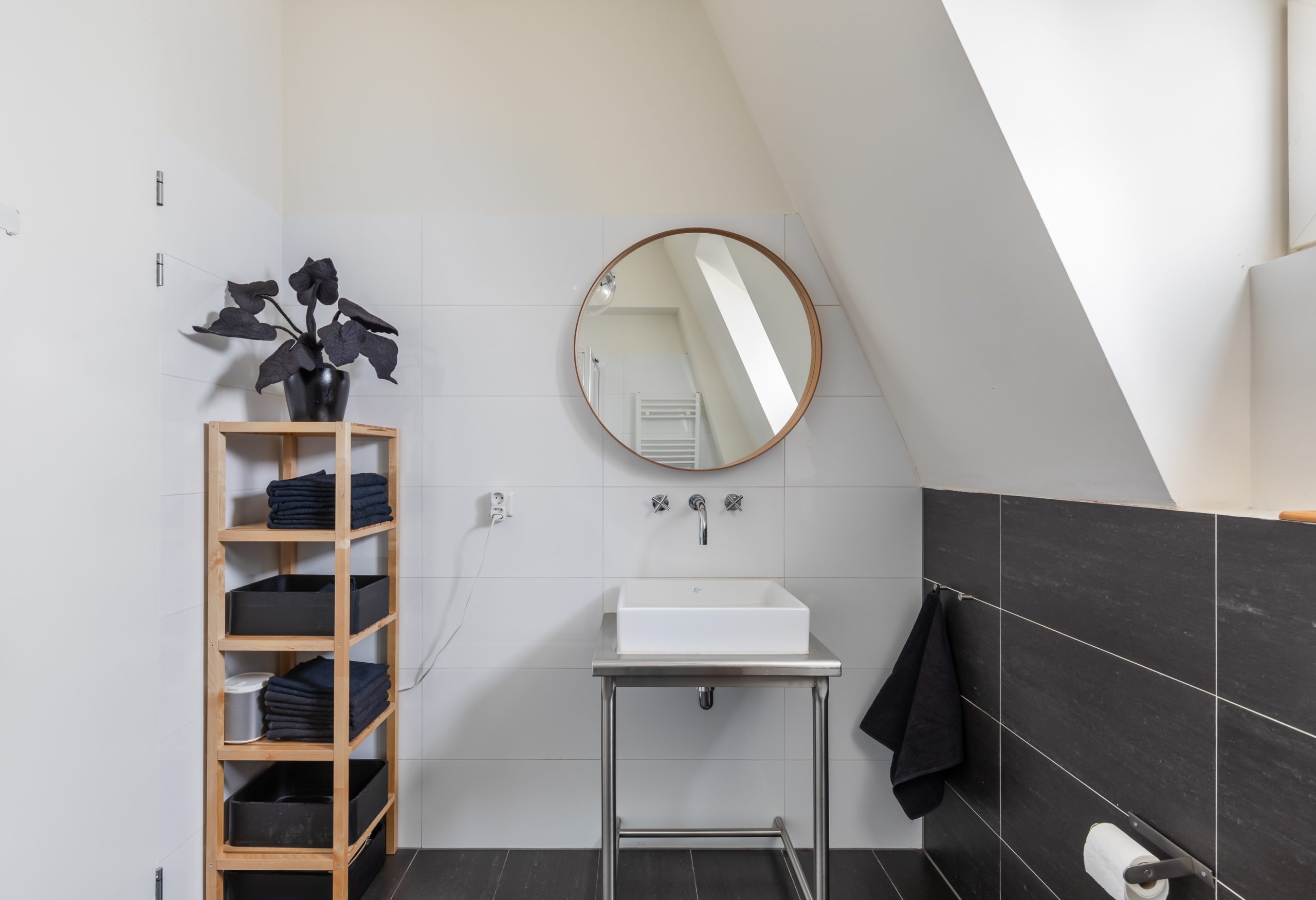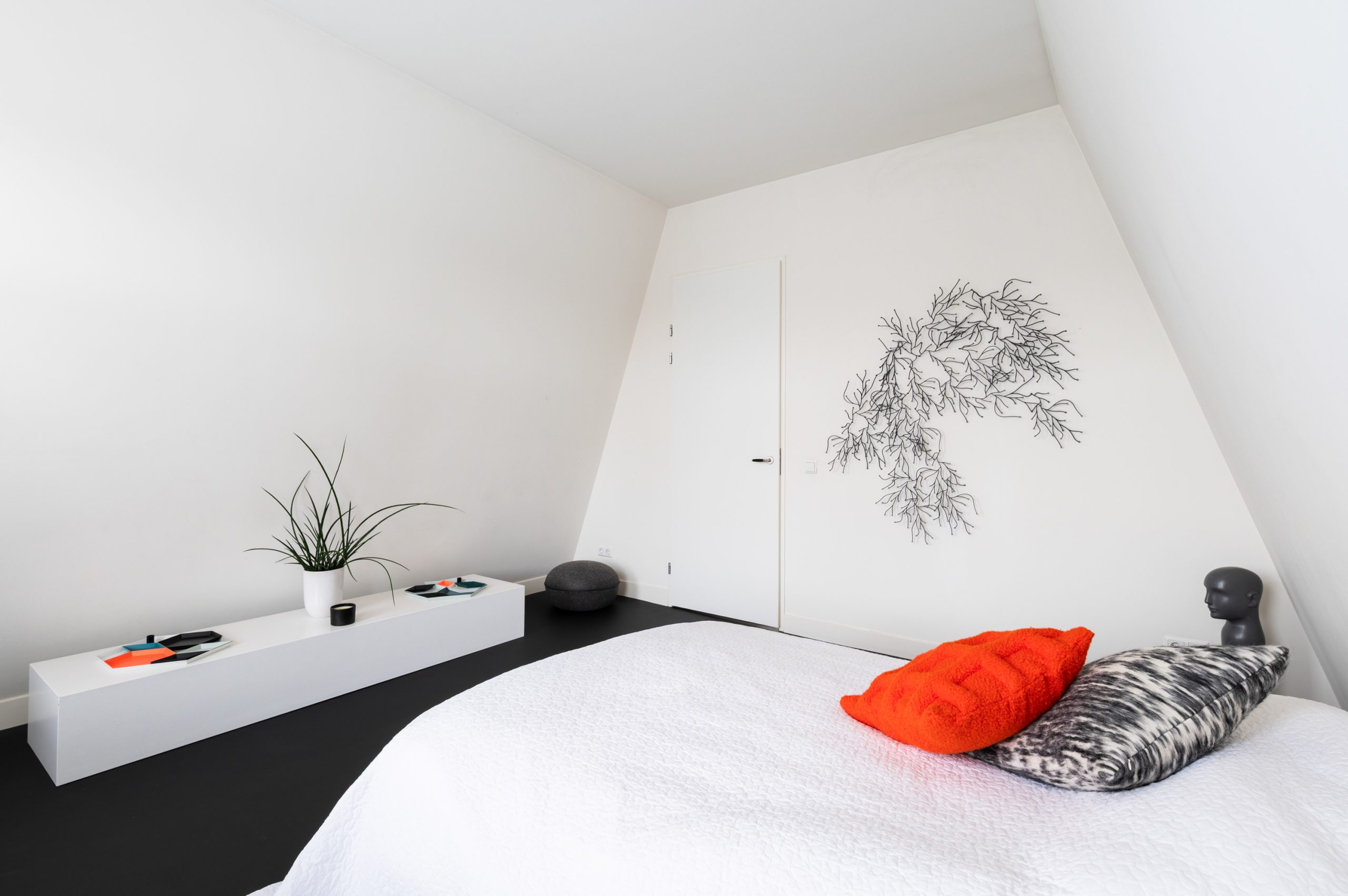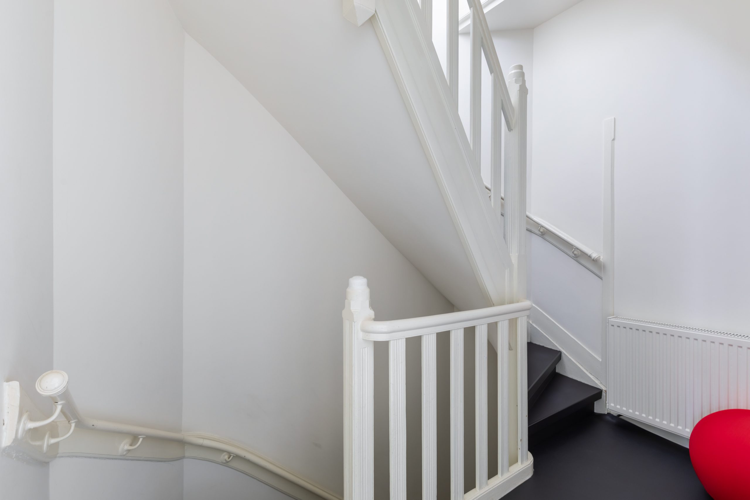 Overloop met vaste kast en toegang tot alle vertrekken op deze verdieping. De master bedroom is bijzonder ruim en biedt volop ruimte voor een tweepersoonsbed en een grote kledingkast. Ook de tweede slaapkamer is royaal van formaat. De moderne badkamer beschikt over een douche, wastafel en een toilet. Daarnaast is er een aparte wasruimte met wasmachine-aansluiting.