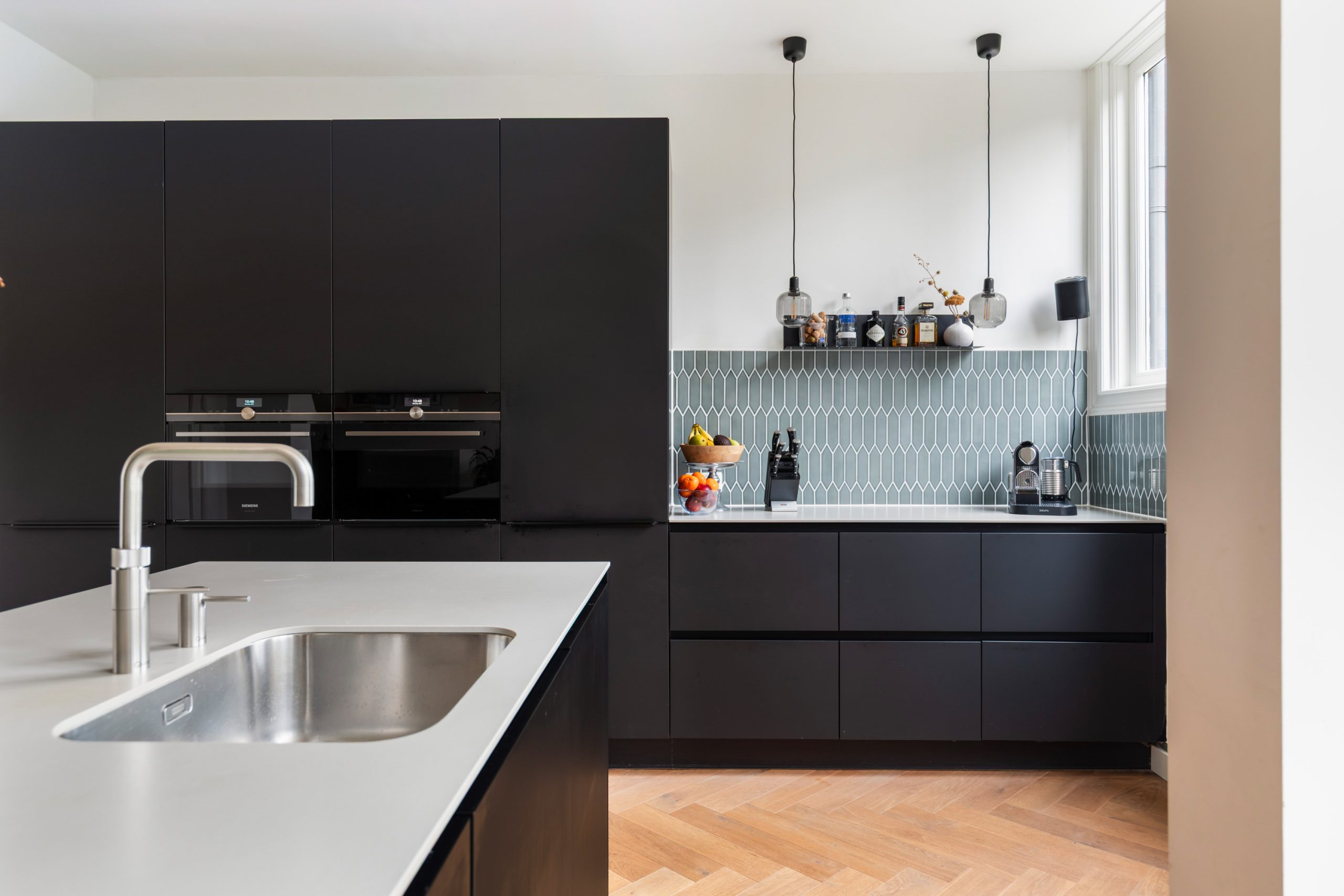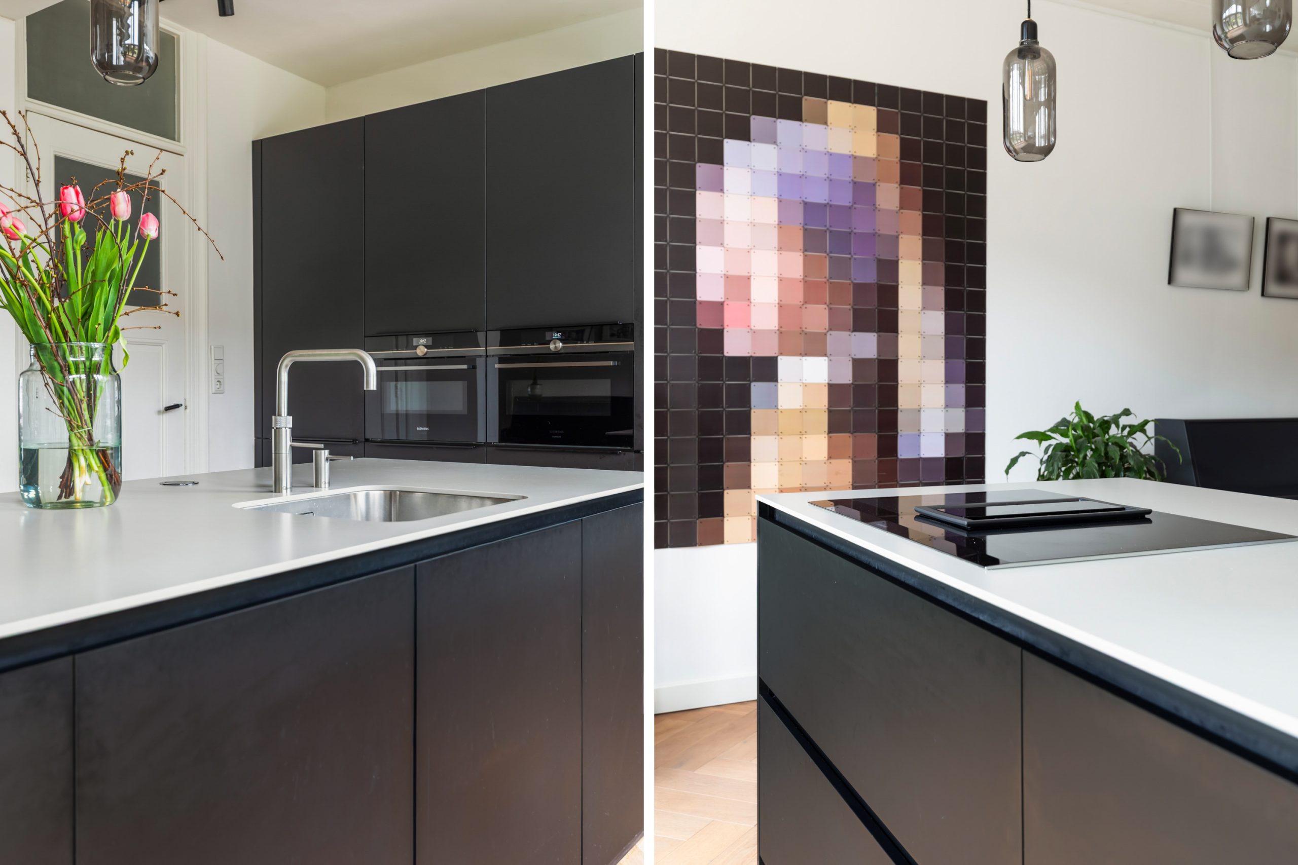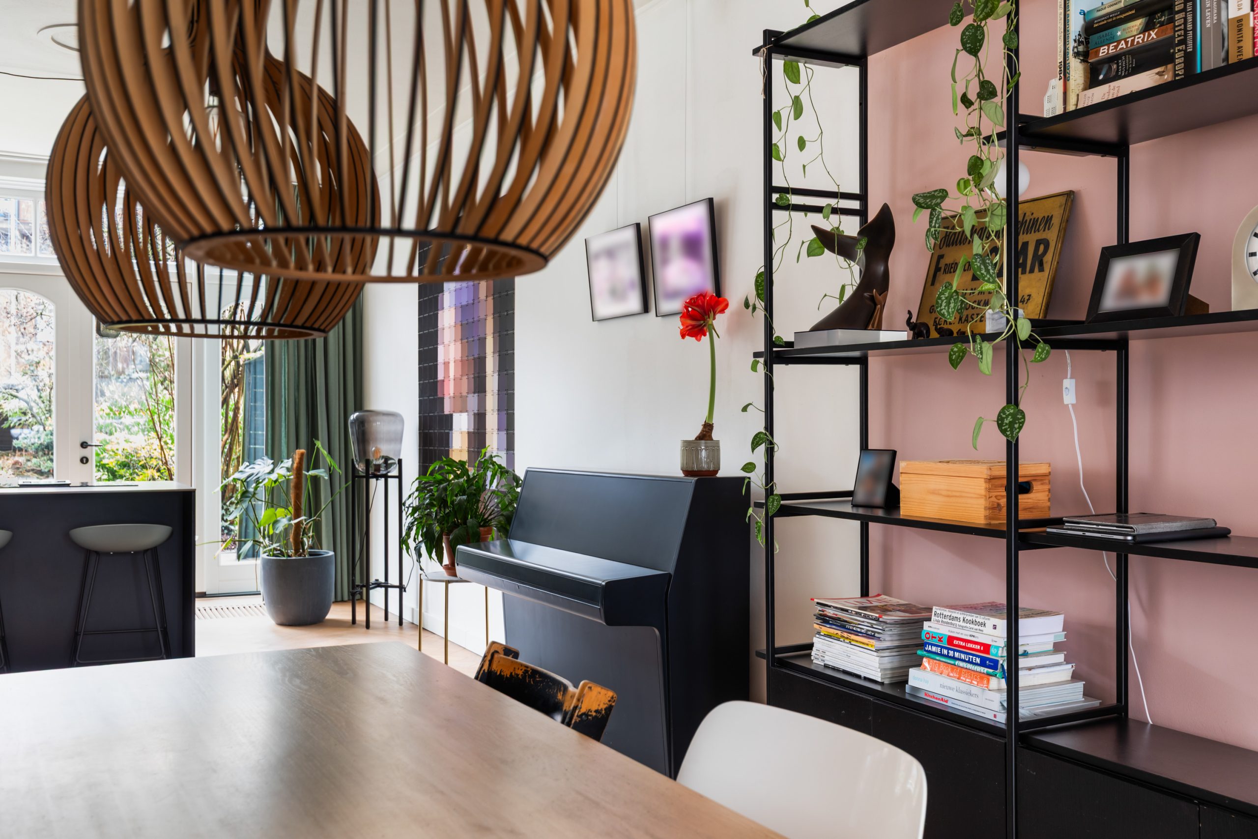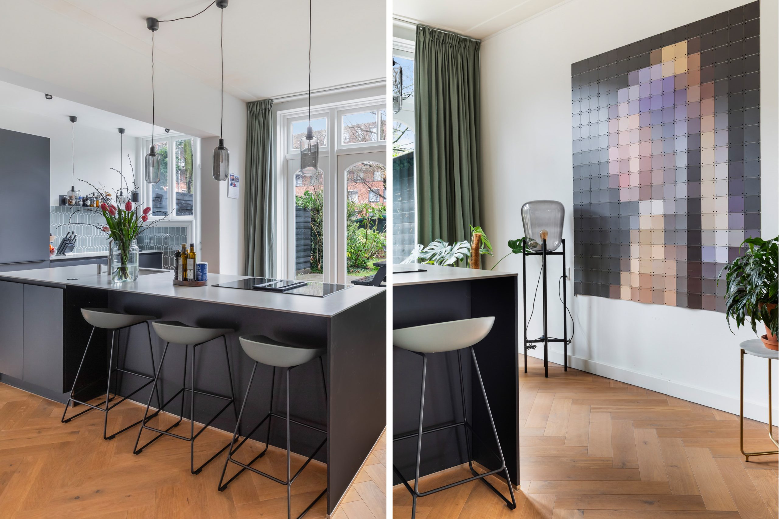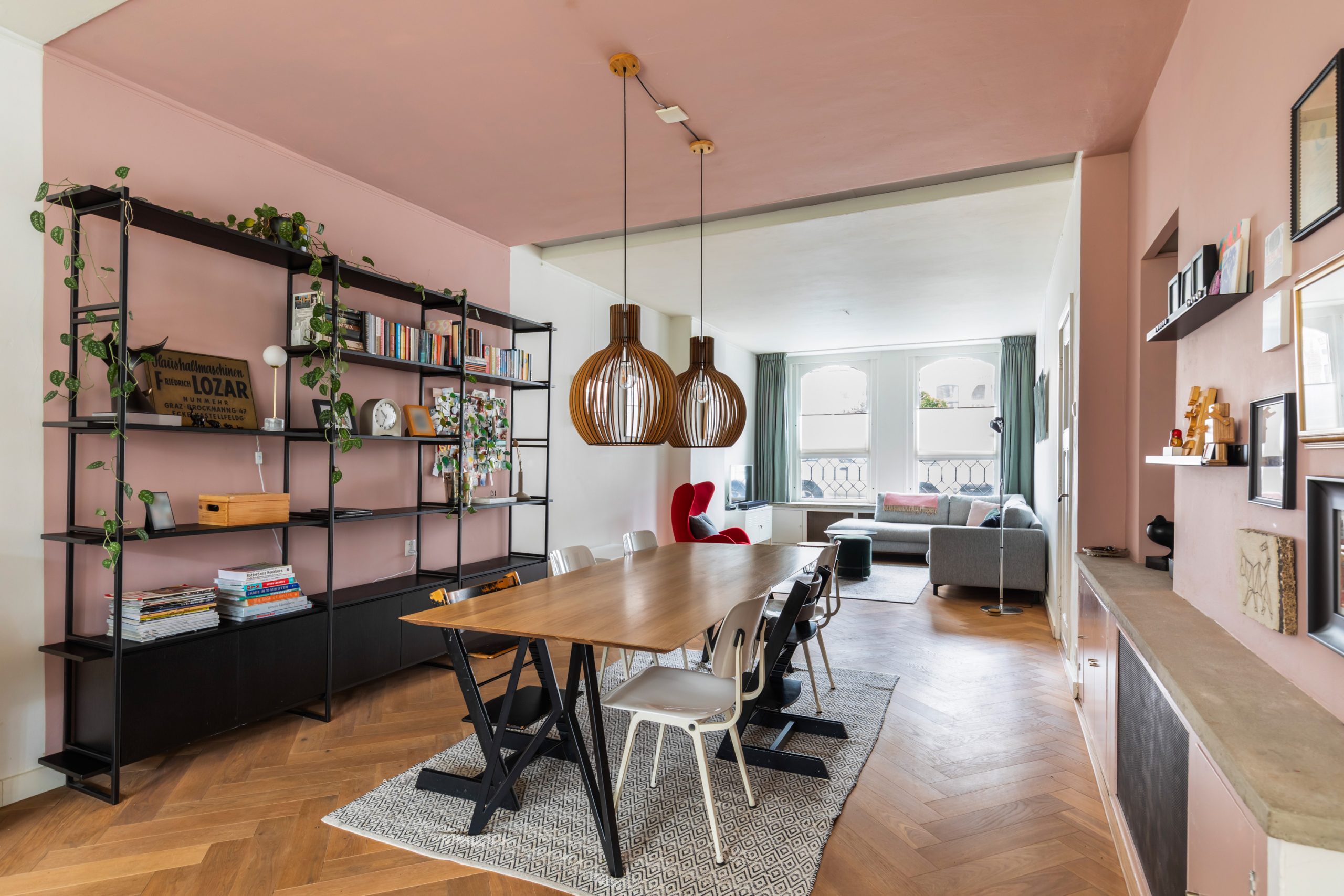 Stijlvolle entree met luxe marmeren en granito vloer, tochtportaal, separaat toilet en toegang tot alle vertrekken op deze verdieping. Bij binnenkomst valt direct de karakteristieke jaren ’10 details op zoals een granito vloer, paneeldeuren, toogkozijnen en ornamenten. De woonkamer heeft een indrukwekkende lengte van ca. 15 meter en een royale plafondhoogte van bijna 3 meter! Aan de voorzijde van de woning is het zitgedeelte met grote raampartijen en een mooie lichtinval, met voldoende ruimte om een comfortabele zithoek te creëren. Het eetgedeelte is gesitueerd in het midden van de woonkamer en staat in open verbinding met de keuken, die is voorzien van een kookeiland. De keuken beschikt over diverse inbouwapparatuur zoals een oven, magnetron, 4-pits elektrische kookplaat met geïntrigeerde afzuiging, quooker, vaatwasser en een koel-/vriescombinatie. Via een aparte deur en de openslaande deuren bereik je de achtertuin, gelegen op het oosten. De gehele dag is er wel ergens zon te vinden in de tuin. De tuin is diep en ruim opgezet, met een verhard gedeelte direct aan de woning en aan de achterzijde een sfeervolle overkapping met vlonder.