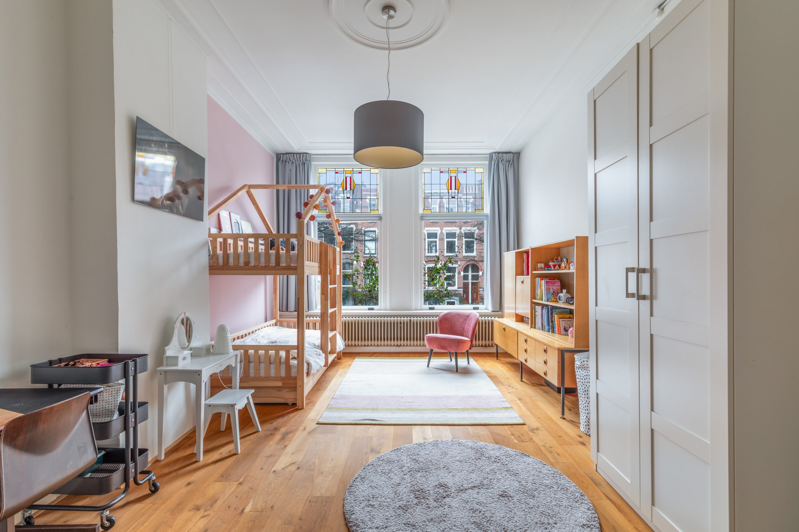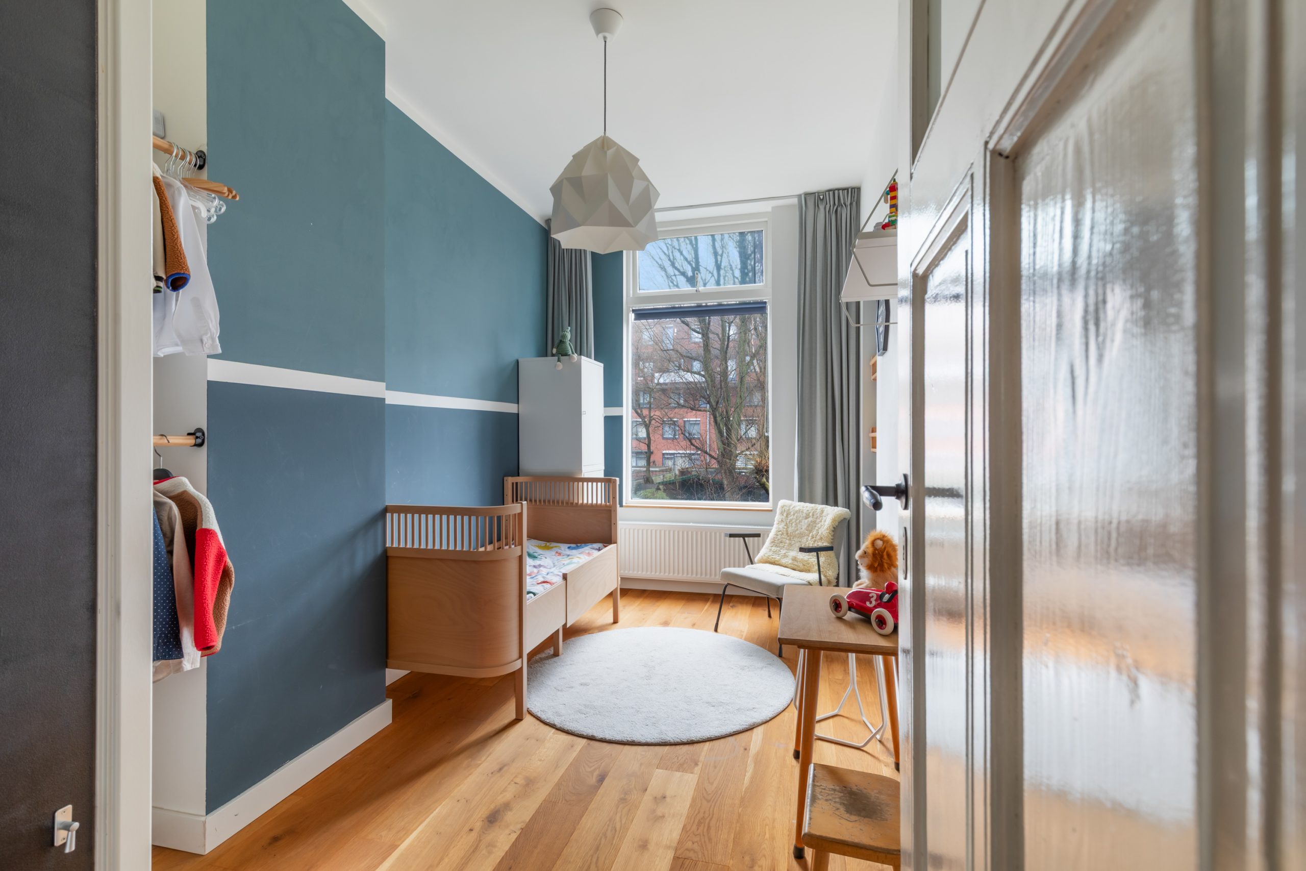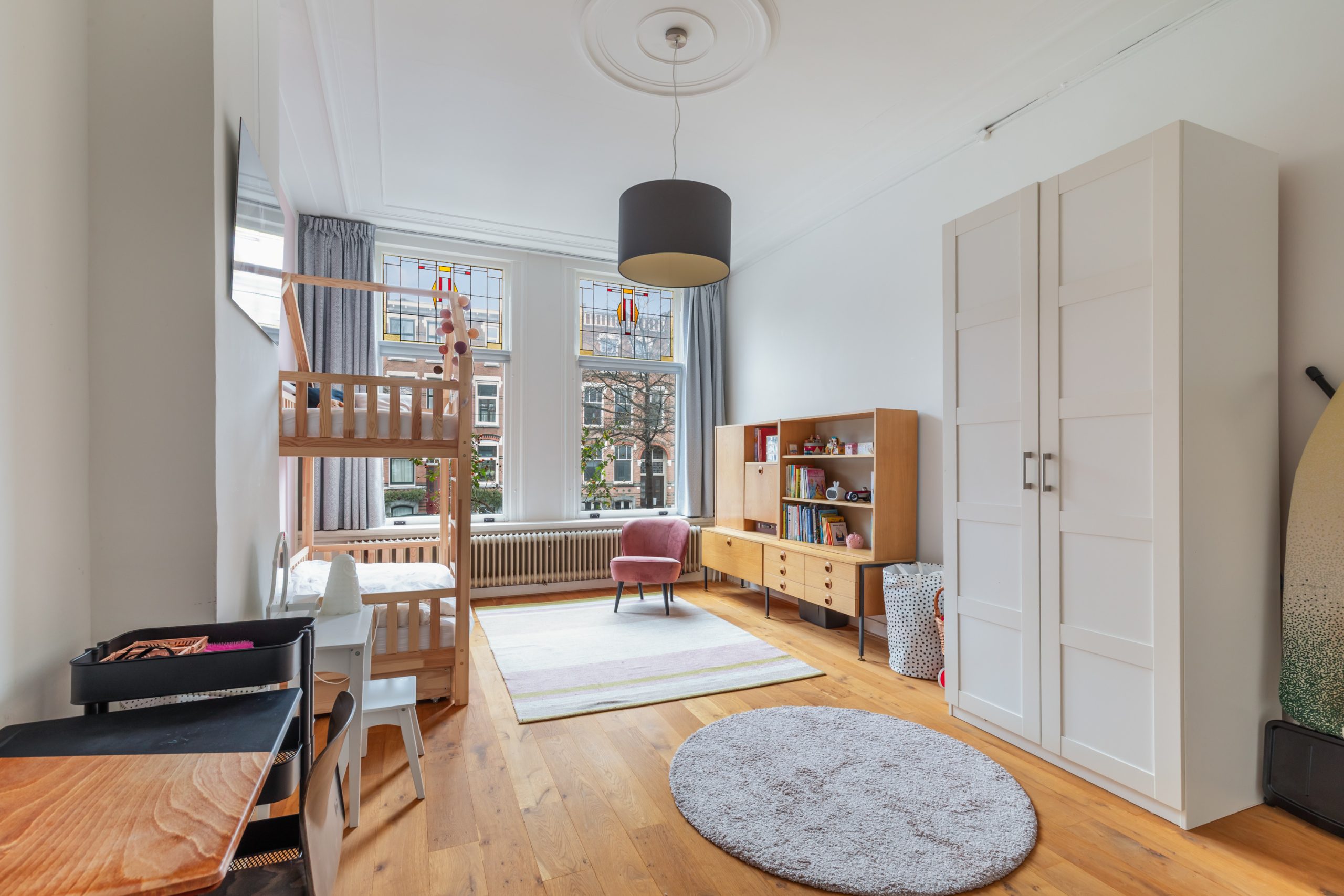 Overloop met separaat toilet met toegang tot alle vertrekken op deze verdieping. De eerste slaapkamer met vaste kasten is gelegen aan de voorzijde van de woning. Hier komen de karakteristieke jaren ’10-details prachtig terug, met verfijnde ornamenten en sfeervol glas-in-lood. De tweede slaapkamer is gelegen aan de achterzijde. Dit is een ruime en lichte kamer. De twee overige slaapkamers zijn multifunctioneel in te richten als bijvoorbeeld een kinder-, werk-, kast- of slaapkamer. De moderne badkamer beschikt over een ligbad, dubbele wastafel met meubel, handdoekradiator en een inloop(regen)douche.