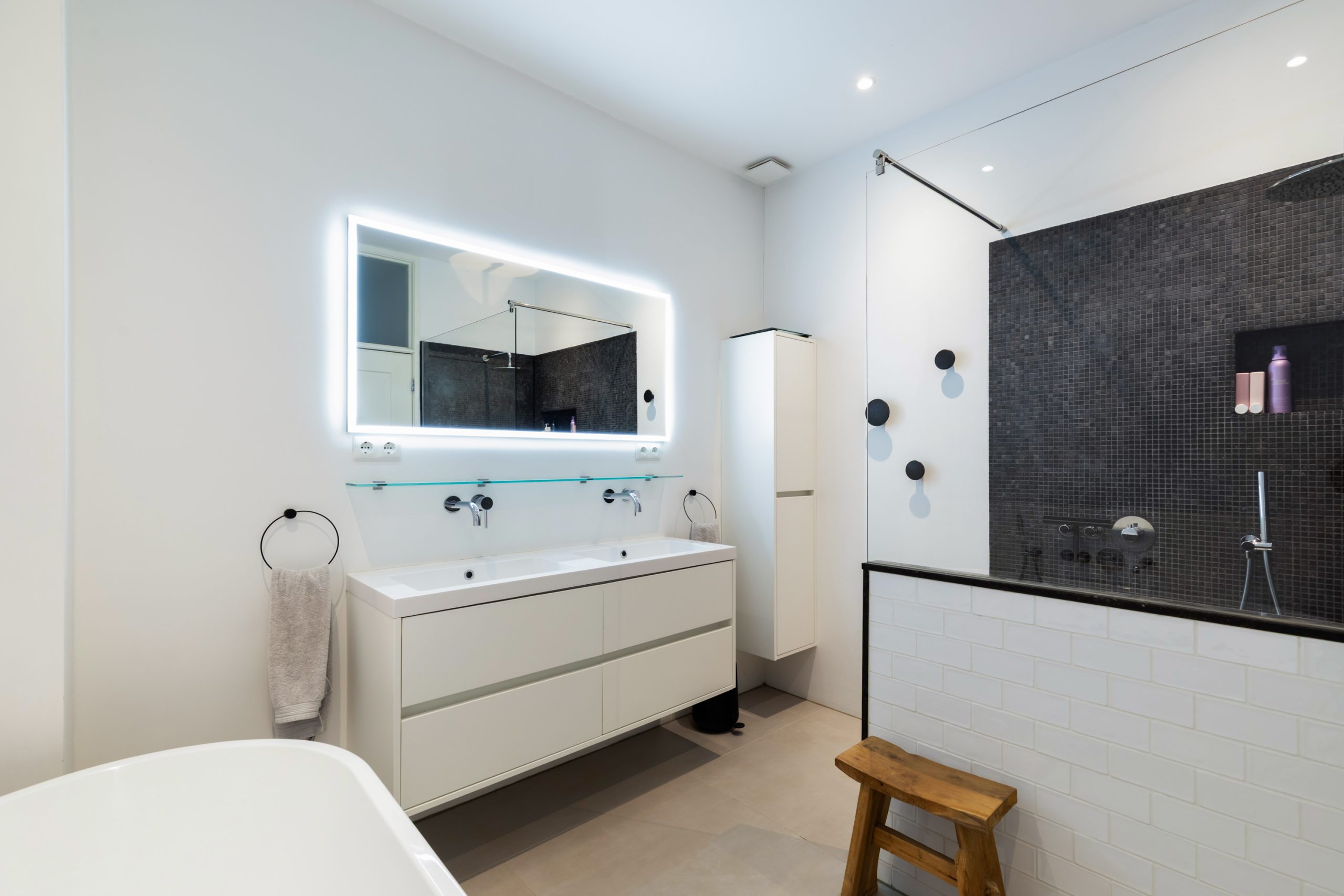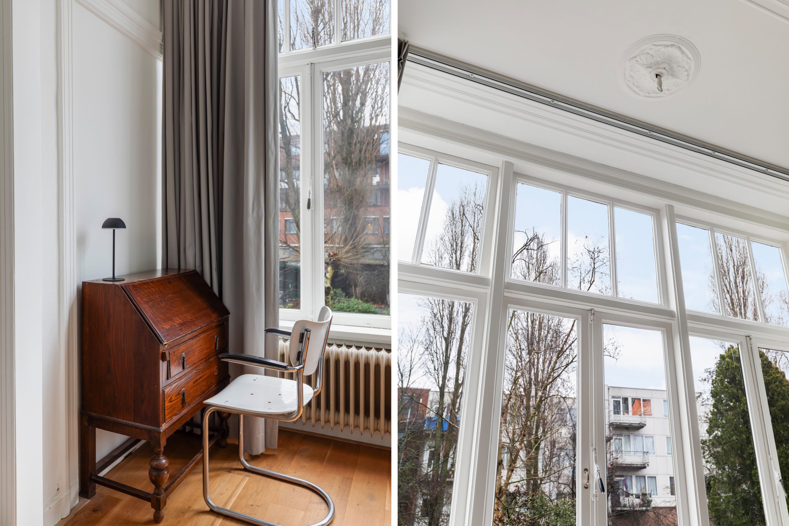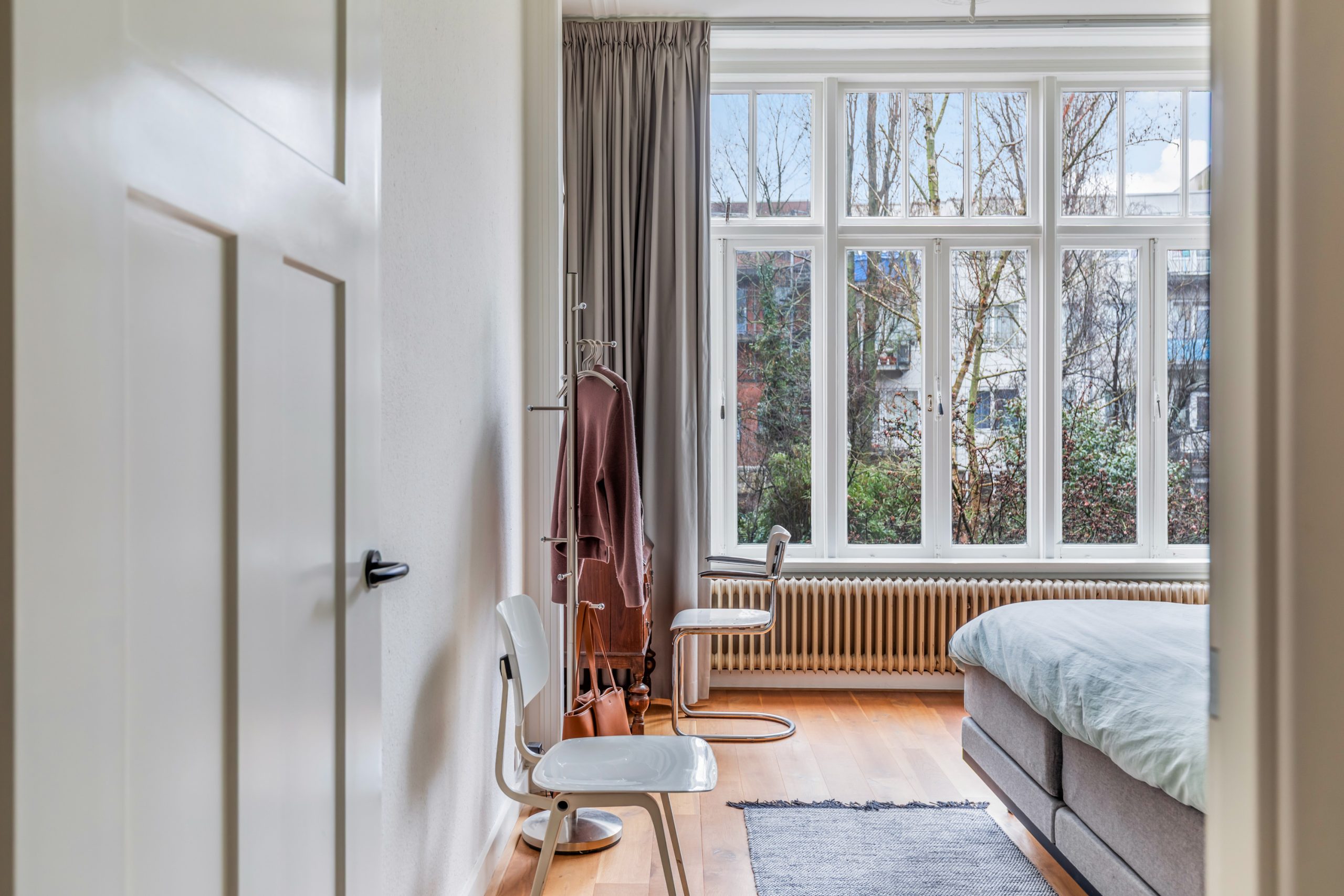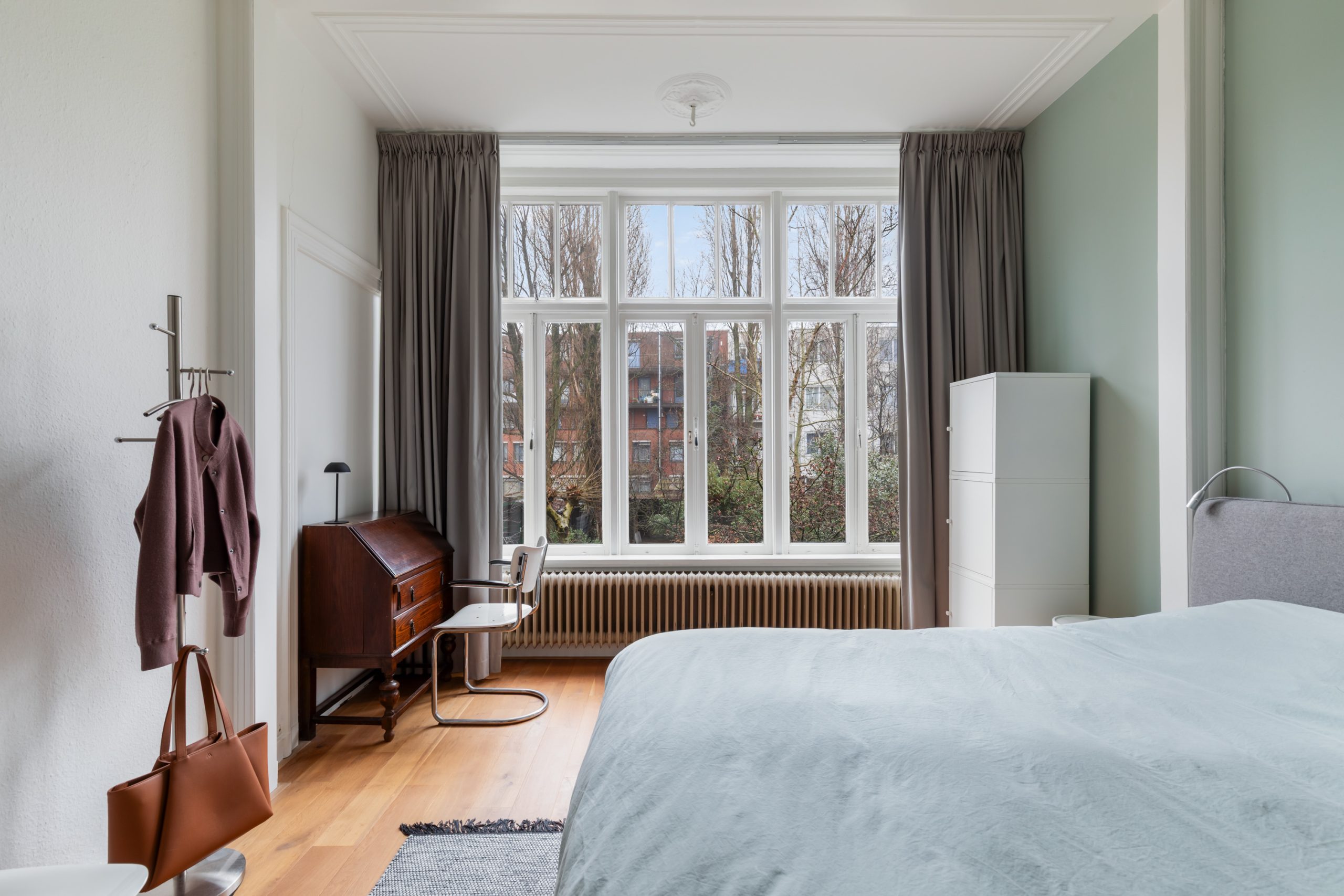 Overloop met separaat toilet met toegang tot alle vertrekken op deze verdieping. De eerste slaapkamer met vaste kasten is gelegen aan de voorzijde van de woning. Hier komen de karakteristieke jaren ’10-details prachtig terug, met verfijnde ornamenten en sfeervol glas-in-lood. De tweede slaapkamer is gelegen aan de achterzijde. Dit is een ruime en lichte kamer. De twee overige slaapkamers zijn multifunctioneel in te richten als bijvoorbeeld een kinder-, werk-, kast- of slaapkamer. De moderne badkamer beschikt over een ligbad, dubbele wastafel met meubel, handdoekradiator en een inloop(regen)douche.