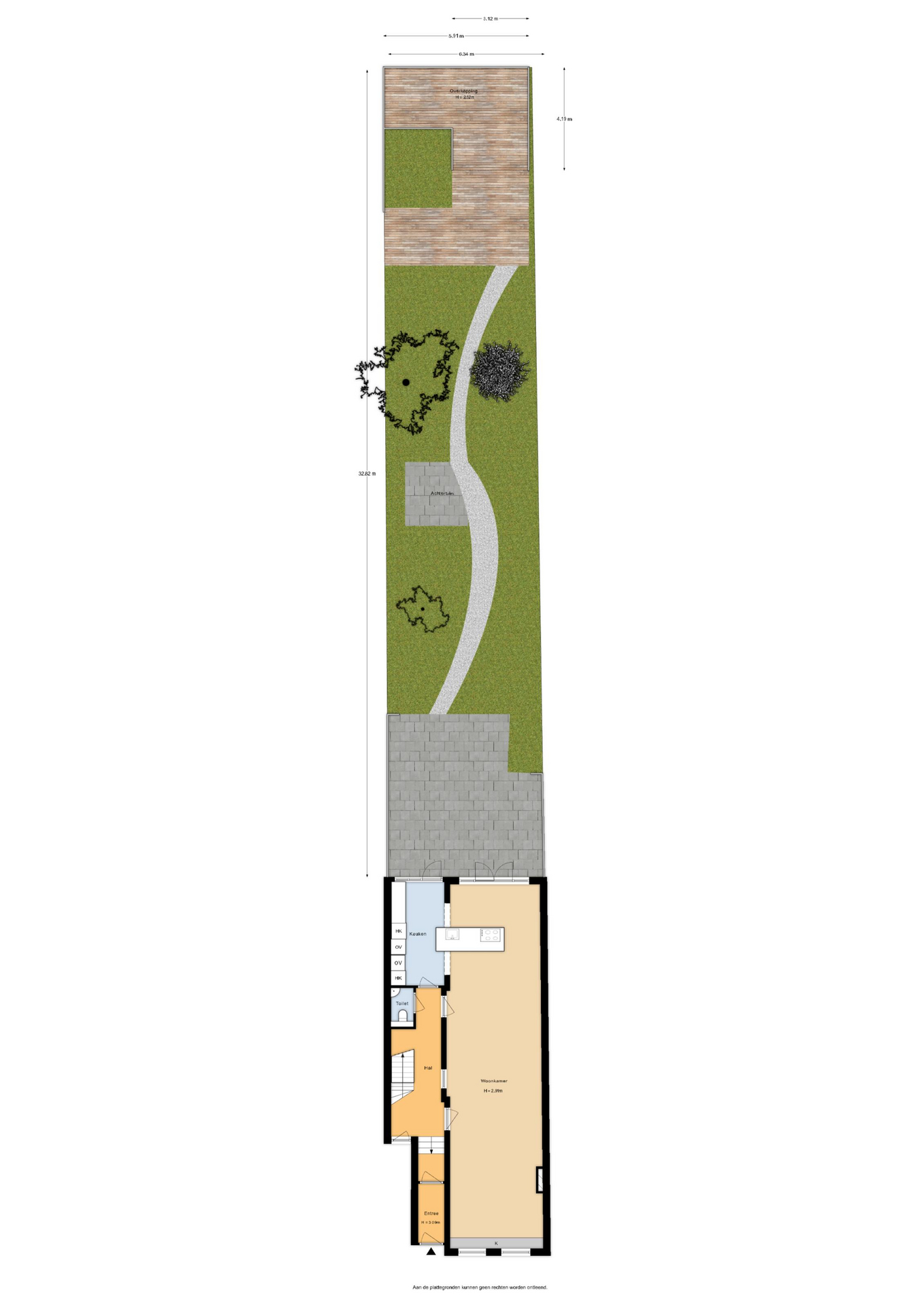 -Achtertuin met een unieke lengte van 33 m2 (oppervlakte 194 m2)!