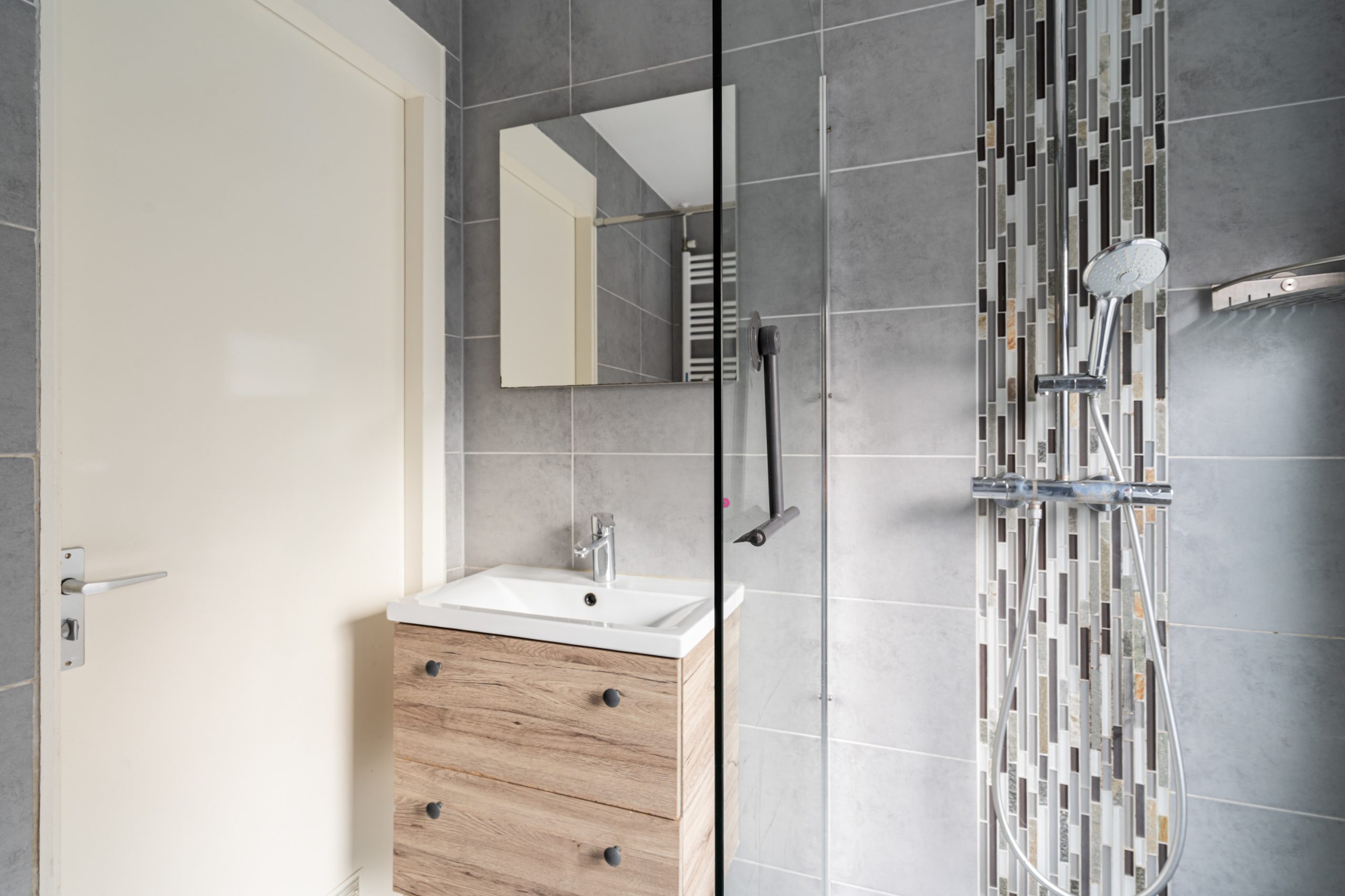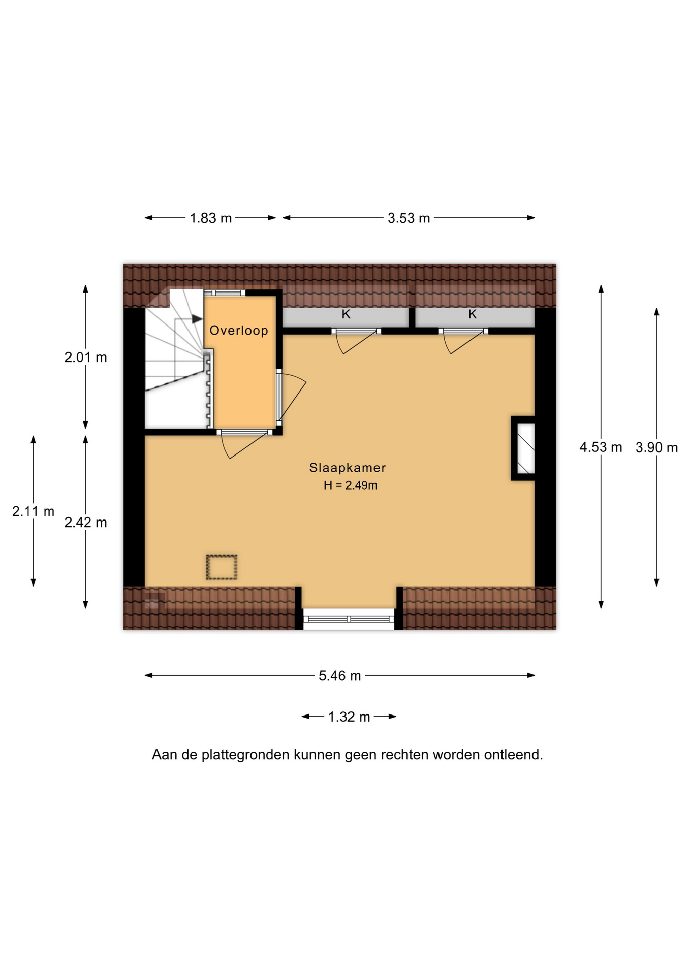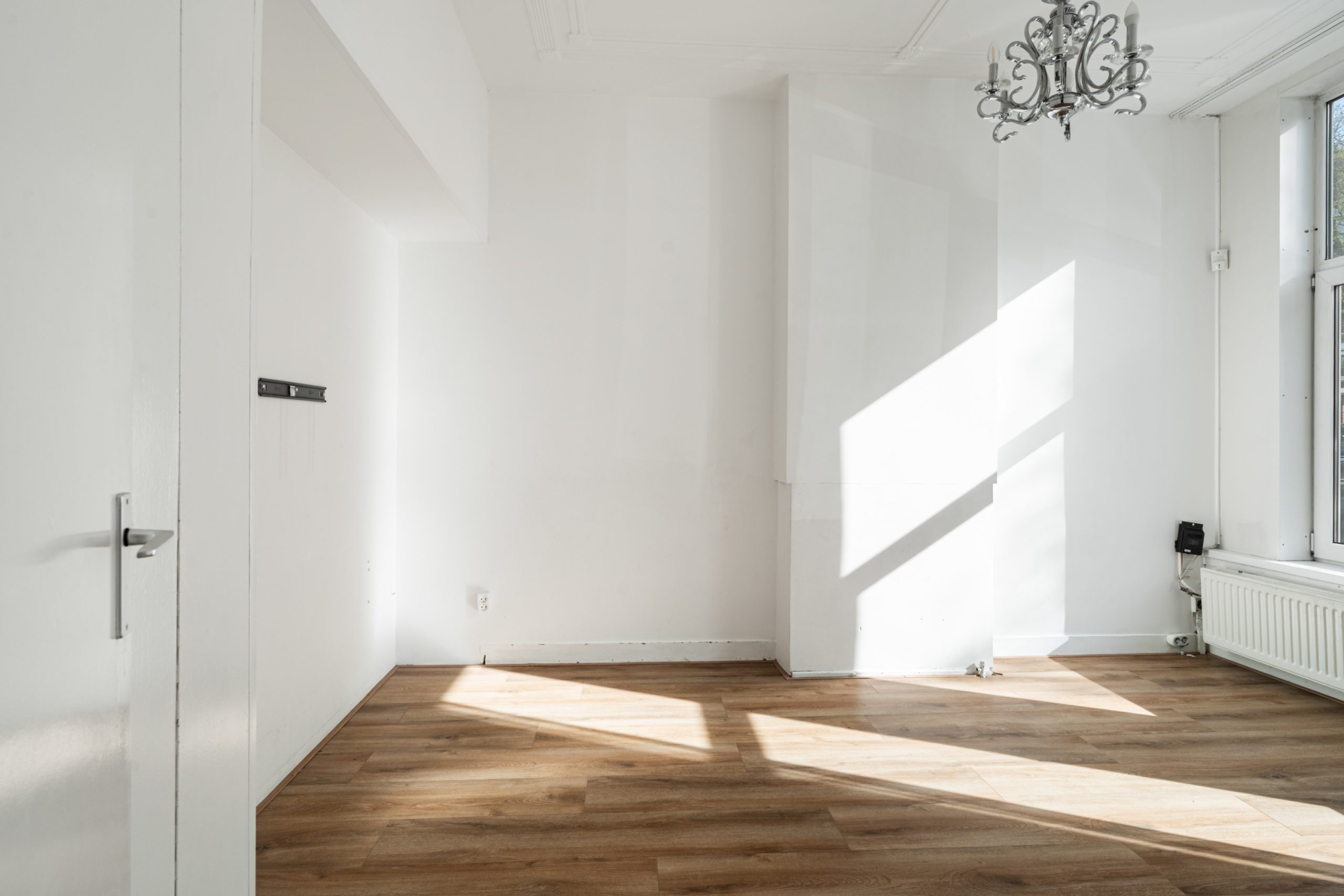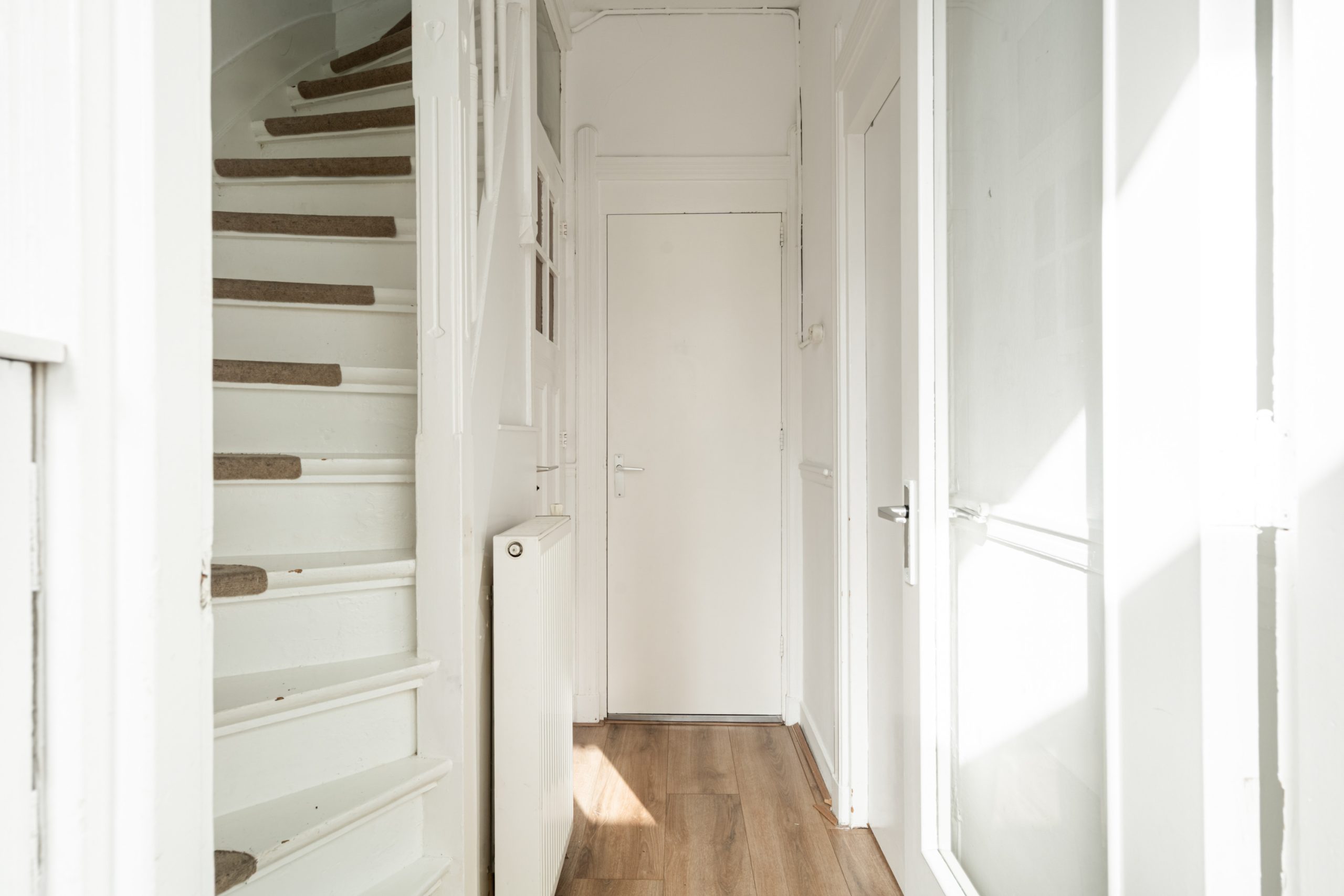 Overloop met toegang tot de 3e slaapkamer. De ruimte kenmerkt zich door het schuine dak, wat zorgt voor een knusse sfeer. Daarnaast is er een nette schouw aanwezig, die de kamer extra karakter geeft. Verder is er een radiator aanwezig en bieden de ingebouwde kastruimtes praktische opbergruimte.