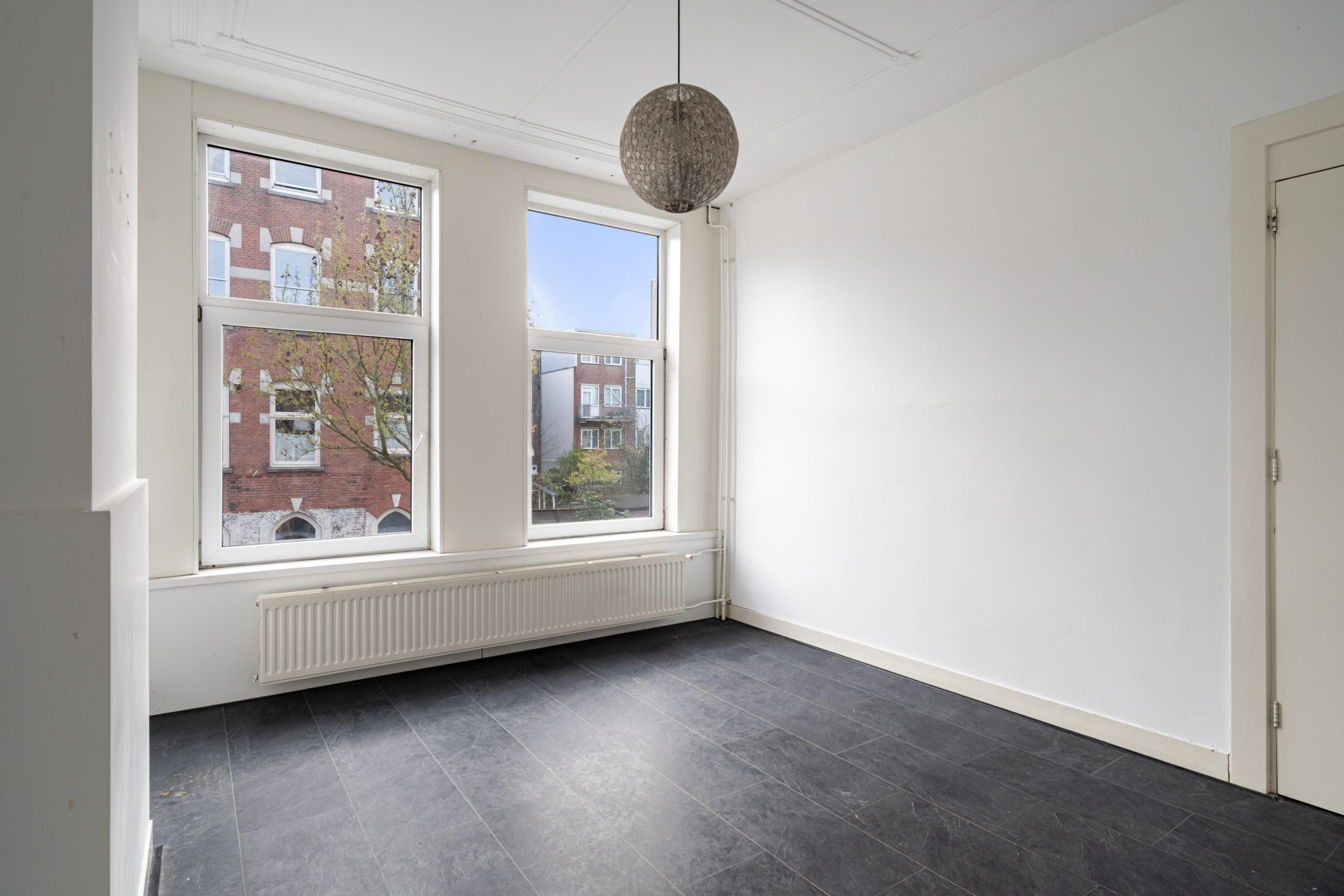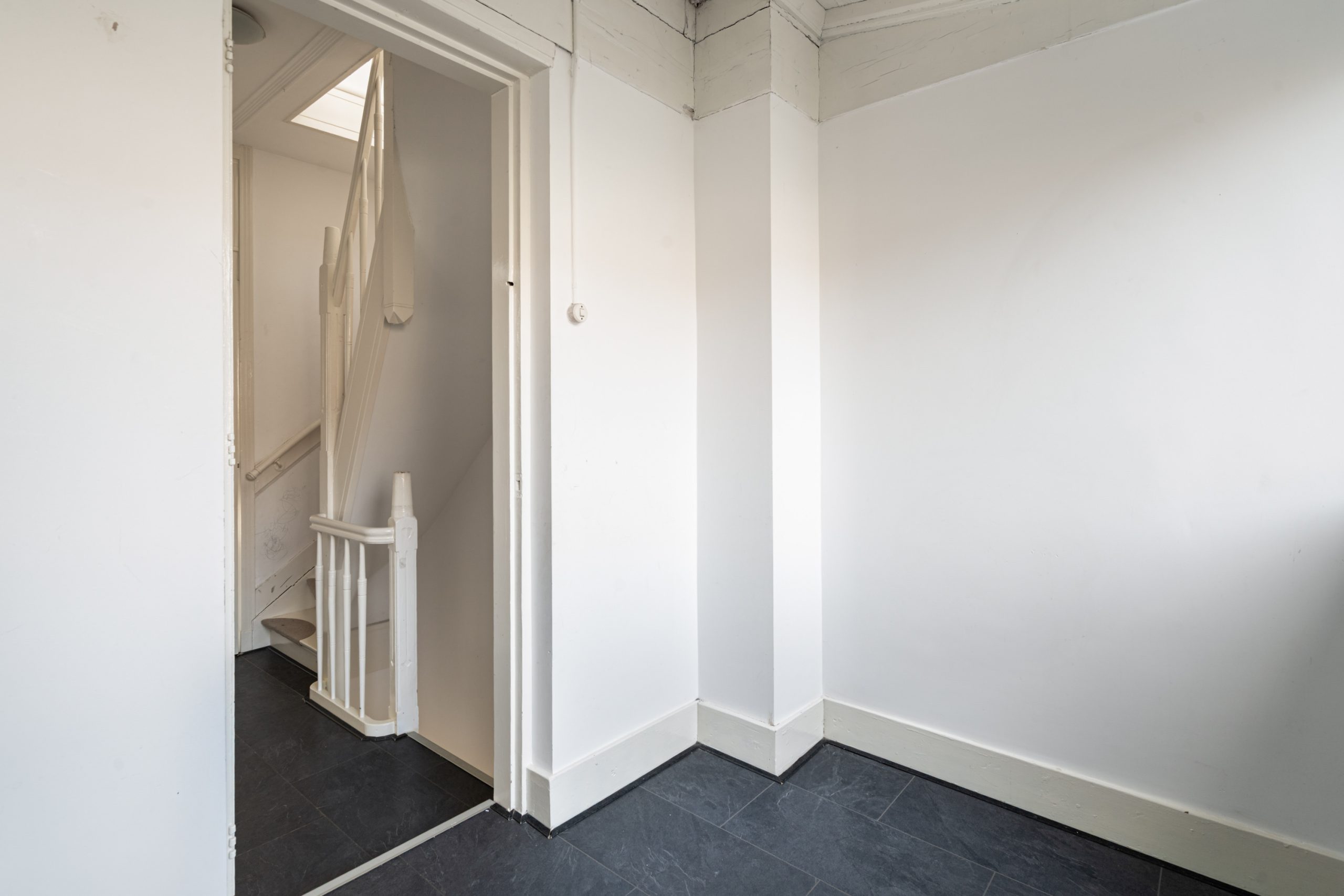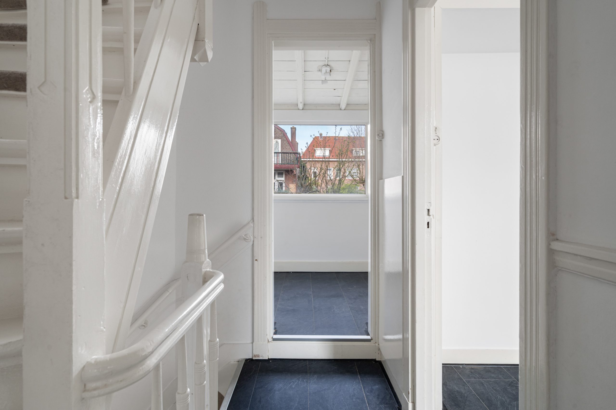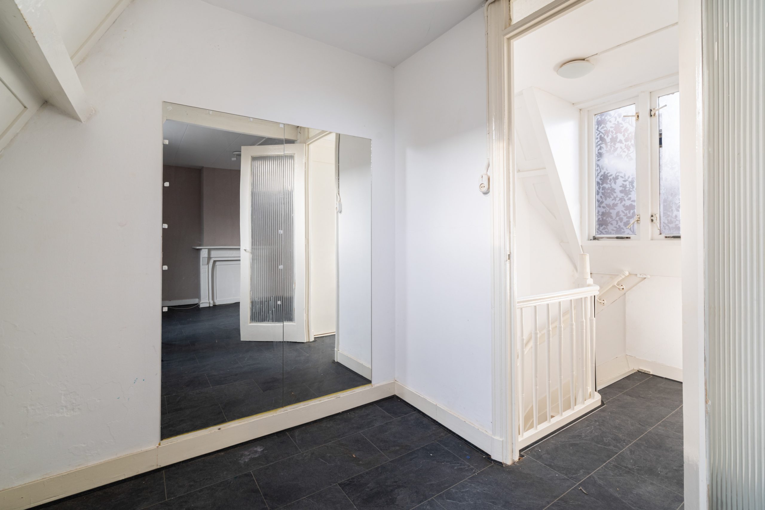 Overloop met toegang tot de slaapkamers en de badkamer. De 1e slaapkamer is gelegen aan de voorzijde van de woning. Dit is een erg ruime en lichte kamer en beschikt ook over de karakteristieke ornamenten. Deze ruimte kan tevens goed worden gebruikt als woongedeelte; dankzij de indeling en het formaat leent deze zich hier uitstekend voor. De 2e slaapkamer is multifunctioneel in te richten als kinder-, werk- of slaapkamer. De volledig betegelde badkamer beschikt over een separaat toilet, inloop(regen)douche, mechanische ventilatie en een wastafel met meubel.