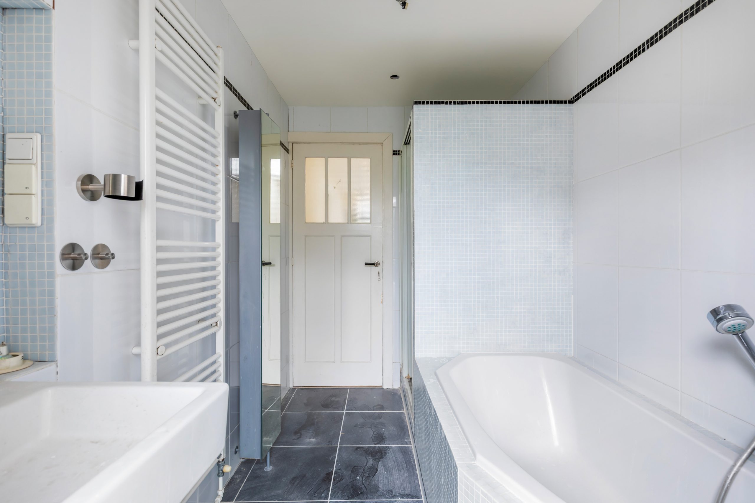 Overloop met toegang tot alle vertrekken. De 2 slaapkamers op deze verdieping zijn beide erg ruim van formaat en beschikken over voldoende ruimte voor een tweepersoonsbed en een grote kast. De 3e kamer is multifunctioneel in te richten als washok, inloopkast of werkkamer. De badkamer beschikt over een bad, douche, wastafel en een handdoekradiator. Bovendien beschikt deze badkamer over toegang tot het balkon op het oosten.