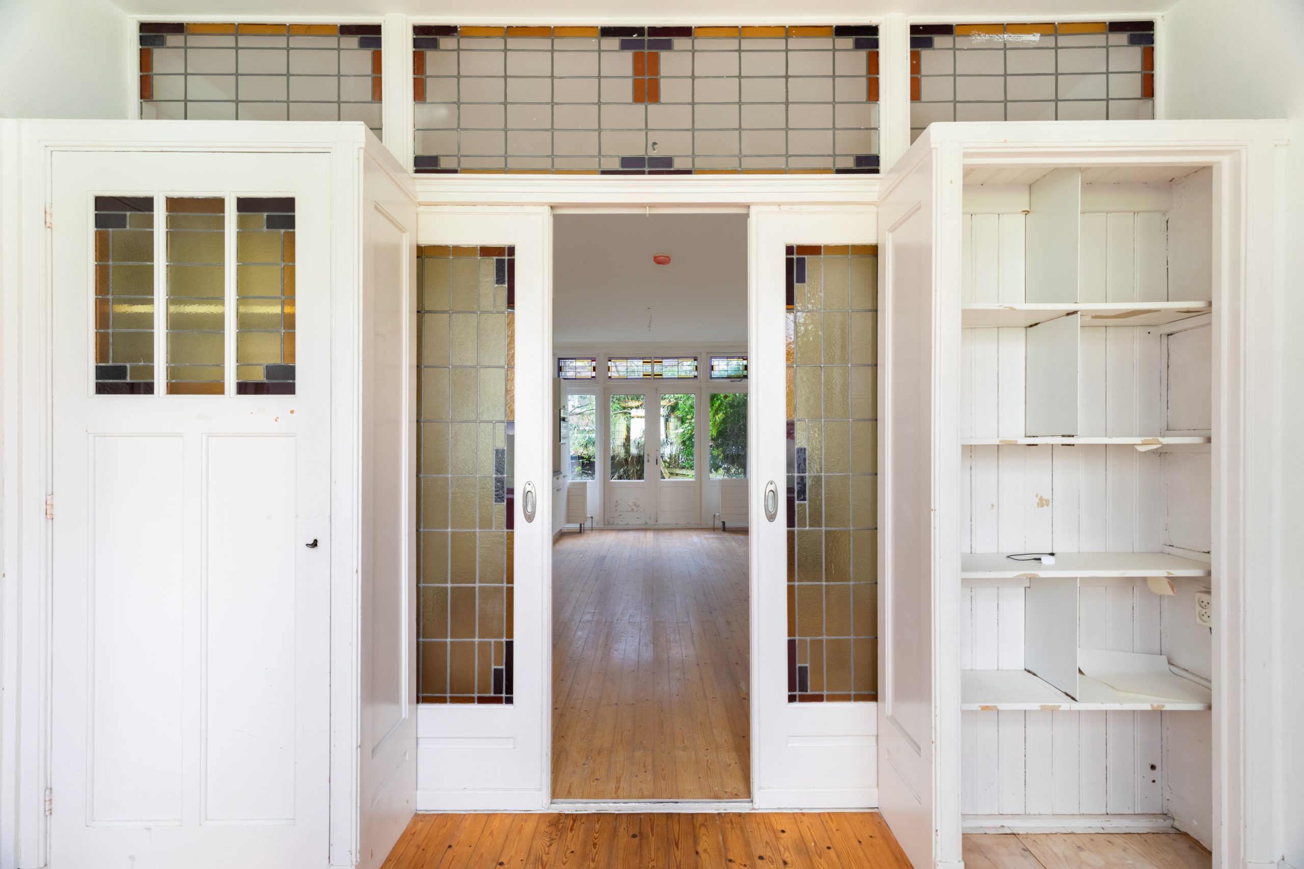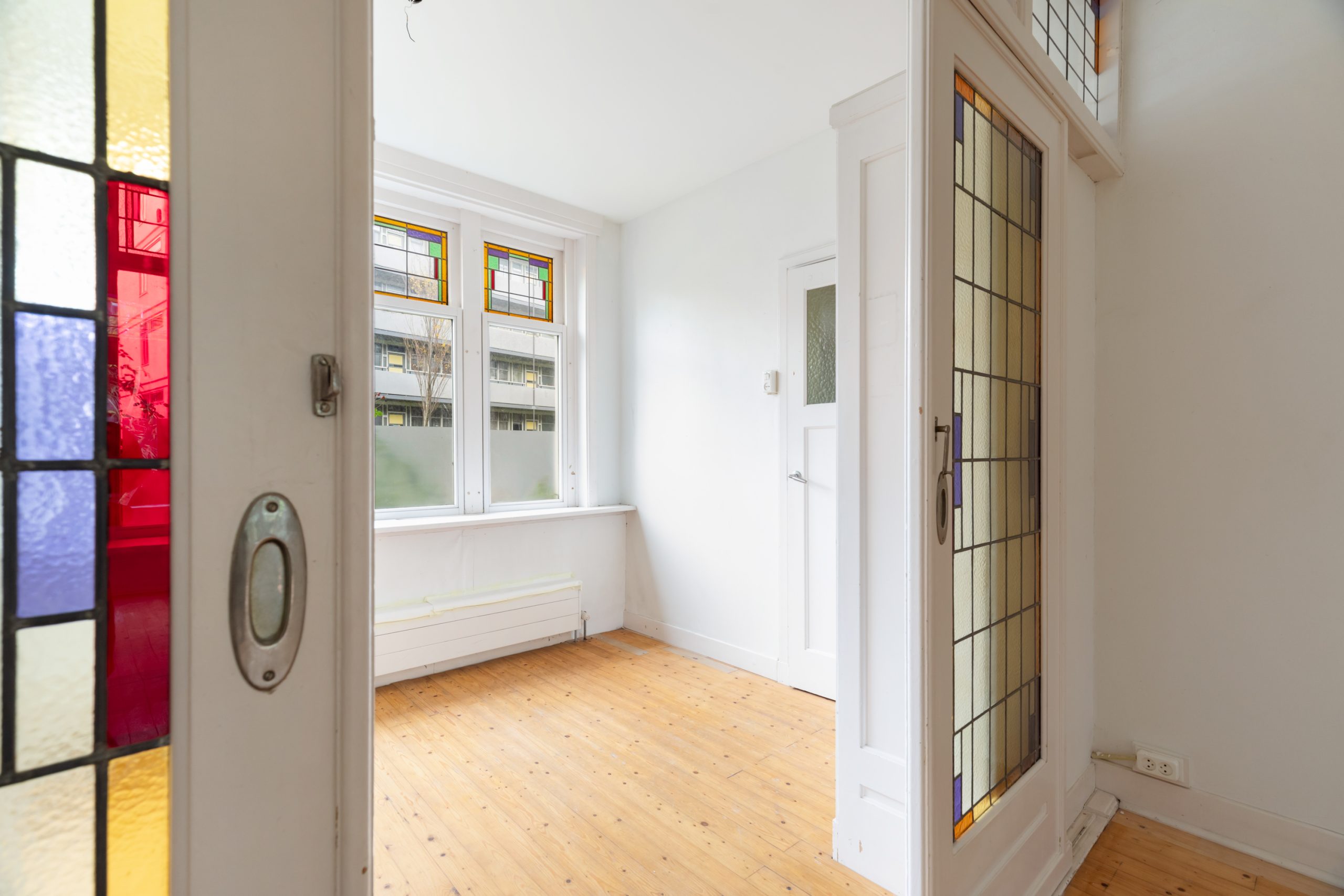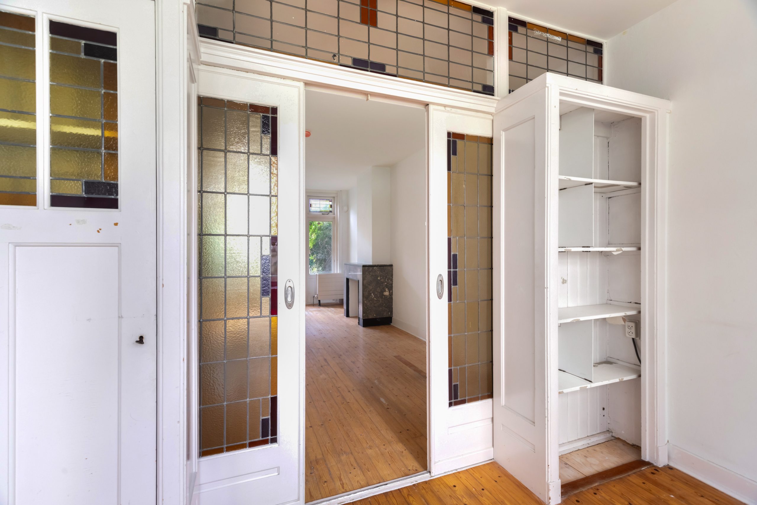 Hal met inbouwkast, separaat toilet en toegang tot de vertrekken. De woonkamer met open keuken is erg ruim. Door de grote raampartijen aan beide zijden van de woning komt er veel licht binnen, wat zorgt voor een fijne en lichte sfeer. Middels openslaande deuren is de tuin op het oosten te bereiken. Ondanks dat de woning nabij het centrum ligt, ervaar je hier volledige rust. De open keuken beschikt over diverse soorten inbouwapparatuur, zoals een elektrische kookplaat, afzuigkap, oven, vaatwasser en koelkast. Middels de glas-in-lood en suite schuifdeuren bereik je de master bedroom, gelegen aan de voorzijde van de bovenwoning. De master bedroom met 2 vaste kasten heeft meer dan voldoende ruimte voor een tweepersoonsbed en een royale kledingkast. De badkamer beschikt over een douche, wasmachineaansluiting, en een wastafel met wastafelmeubel. Via de badkamer heb je tevens toegang tot de tuin.