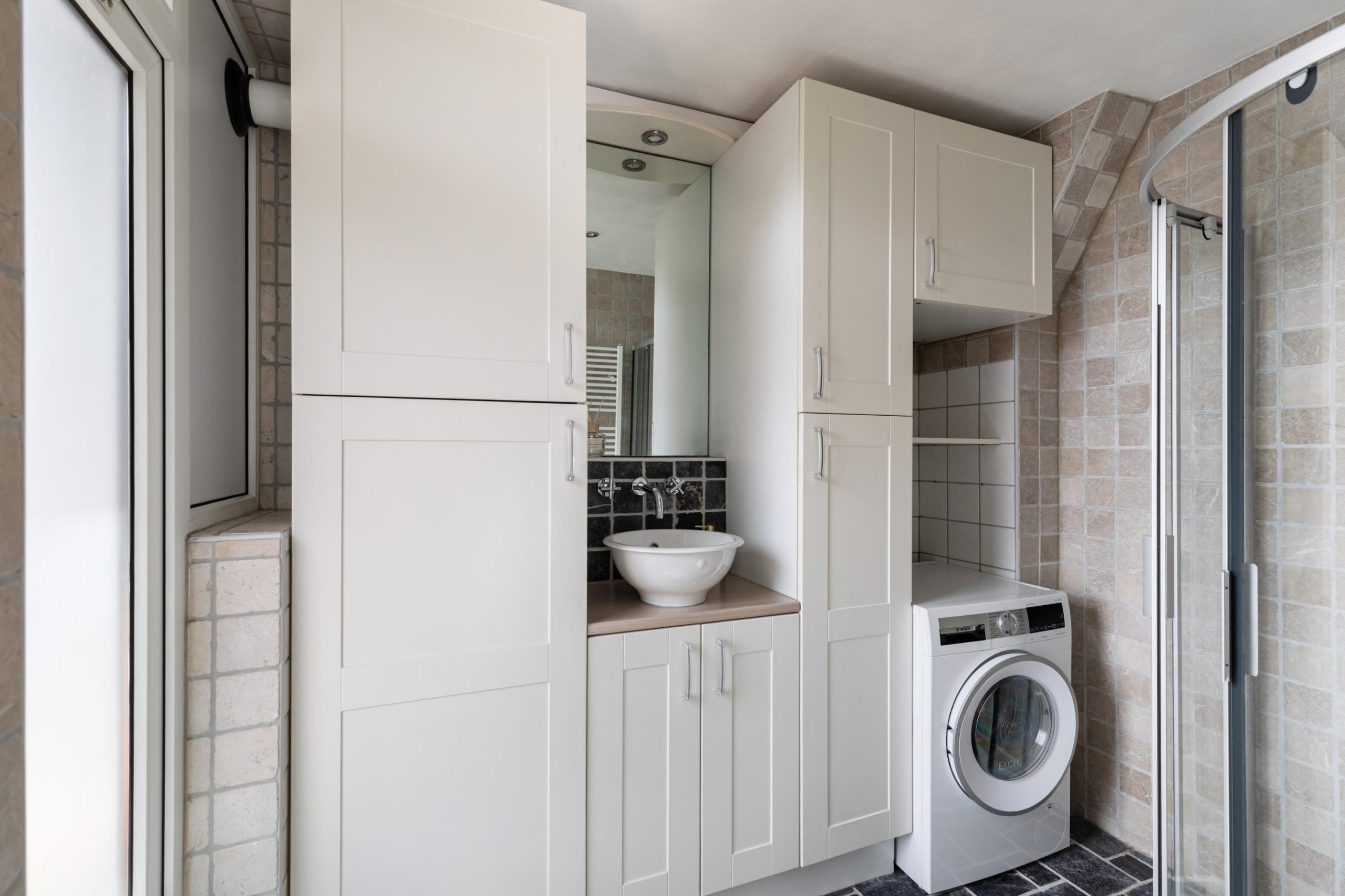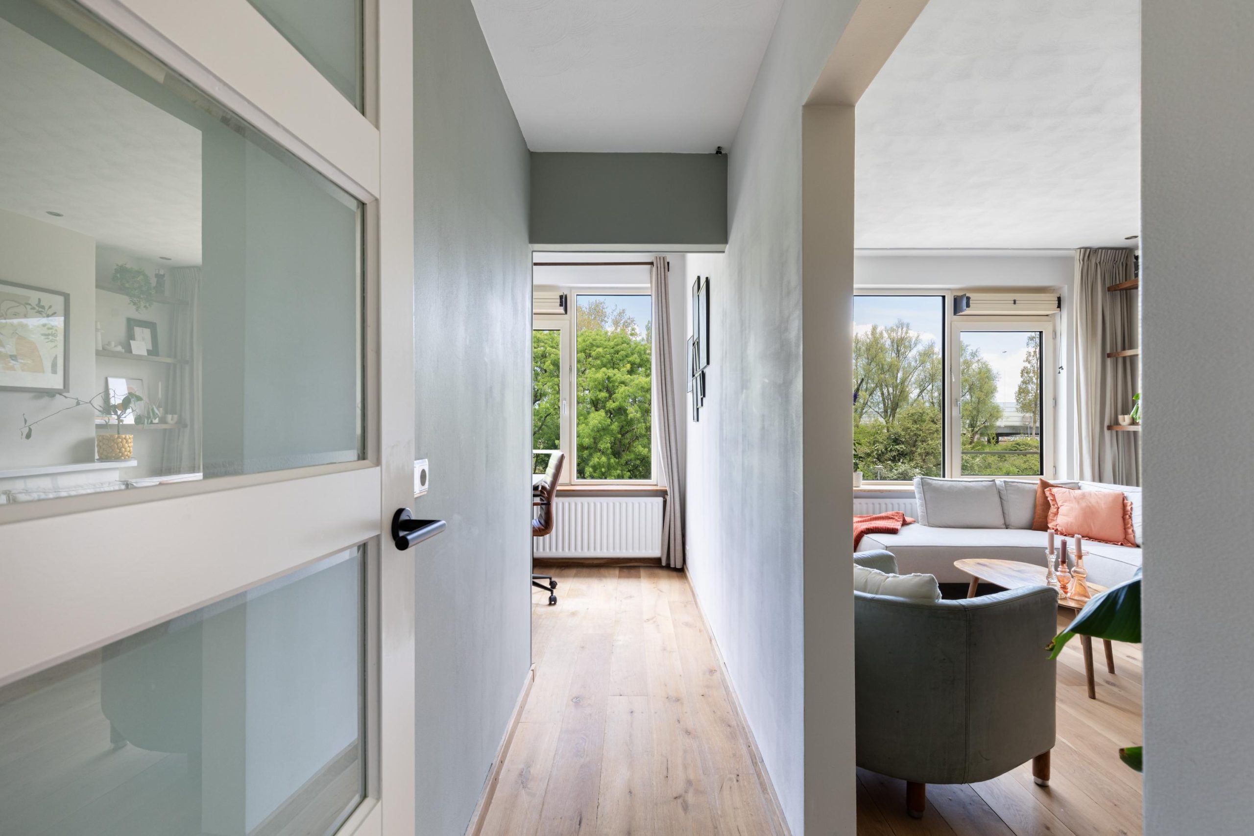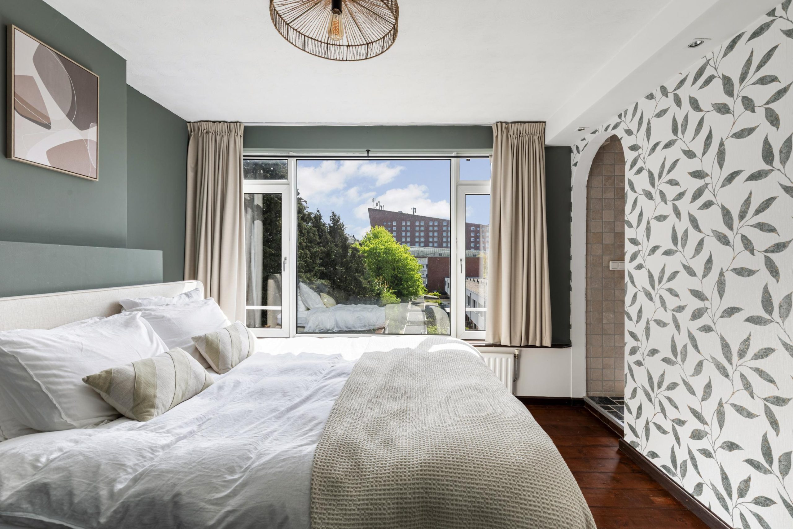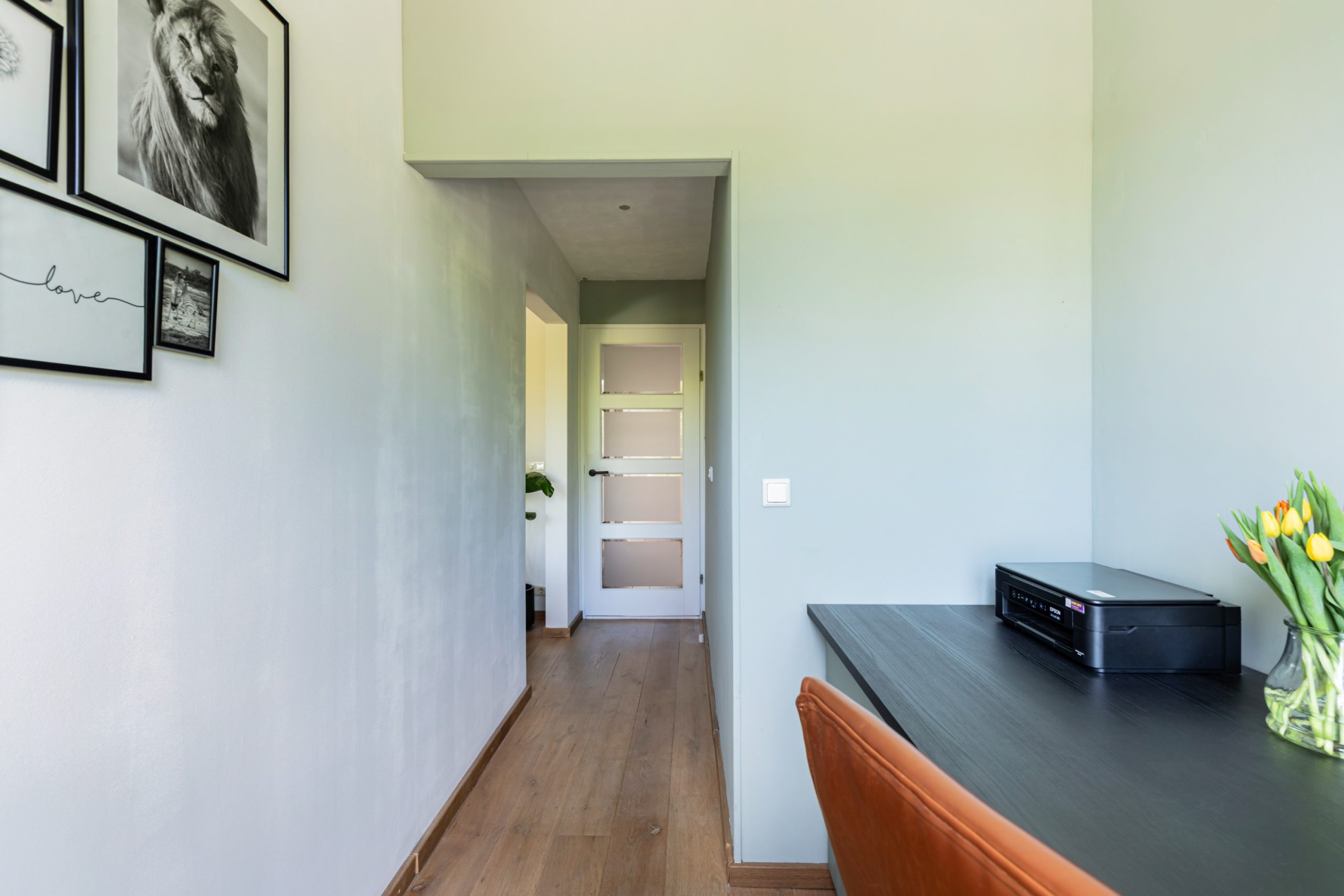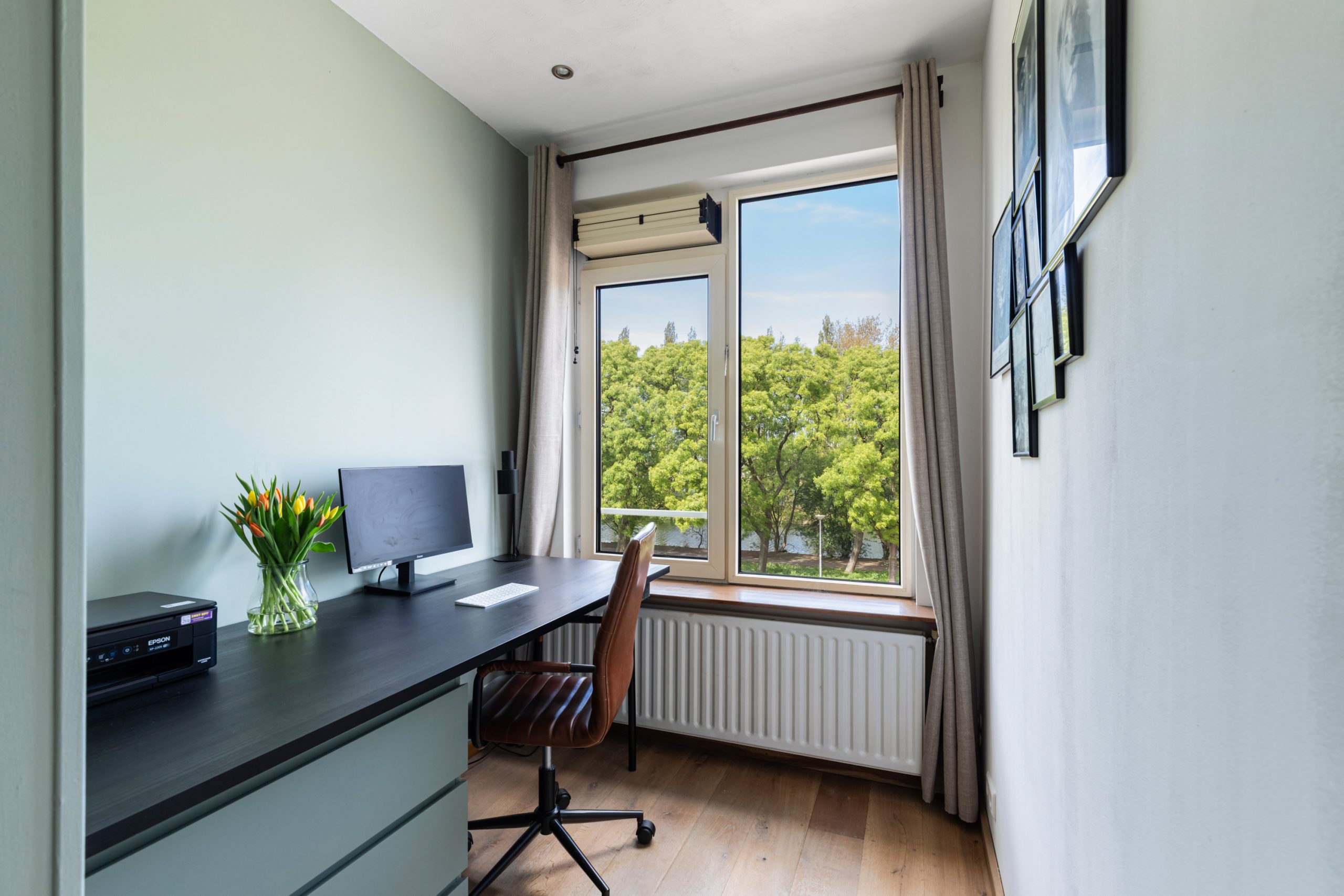 Ruime overloop met vaste kasten, meterkast, separaat toilet en toegang tot alle vertrekken op deze verdieping. De woonkamer is gelegen aan de voorzijde van de woning. Door de grote raampartijen treedt er veel natuurlijk licht de woning binnen wat zorgt voor een fijne, lichte sfeer. Er is hier genoeg ruimte voor een gezellige eet- en zithoek. De woonkamer beschikt nog over een prachtige authentieke schouw met siergashaard. De moderne open met kookeiland beschikt over diverse soorten inbouwapparatuur zoals 4-pits inductieplaat met afzuigkap, oven, stoomoven, koffiezetapparaat, vaatwasser en een koel-/vriescombinatie. Door middel van een ingang in de woonkamer is er toegang tot de kantoorruimte, ideaal voor thuiswerken of als extra studieruimte. Aan de achterzijde bevindt zich de masterbedroom. Deze ruime kamer beschikt tevens over een sfeervolle authentieke schouw en is er ruim, licht. Via de master bedroom bereikt u via een karakteristieke open doorgang de badkamer. Deze beschikt over een (regen)douche, wasmachineaansluiting, handdoekradiator, wastafel en extra opbergruimte. Door middel van een deur gelegen in de badkamer bereik je het balkon, gelegen op het zonnige zuiden.