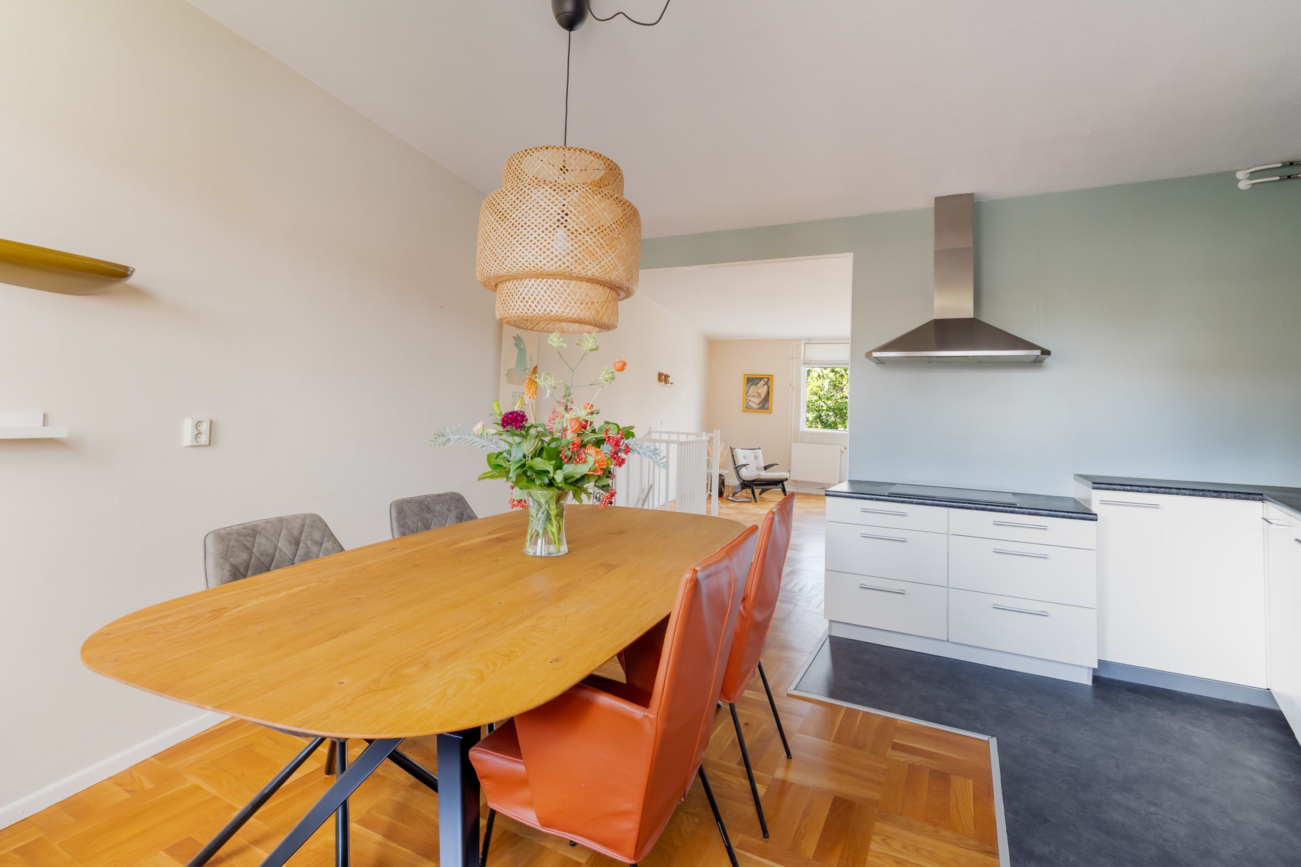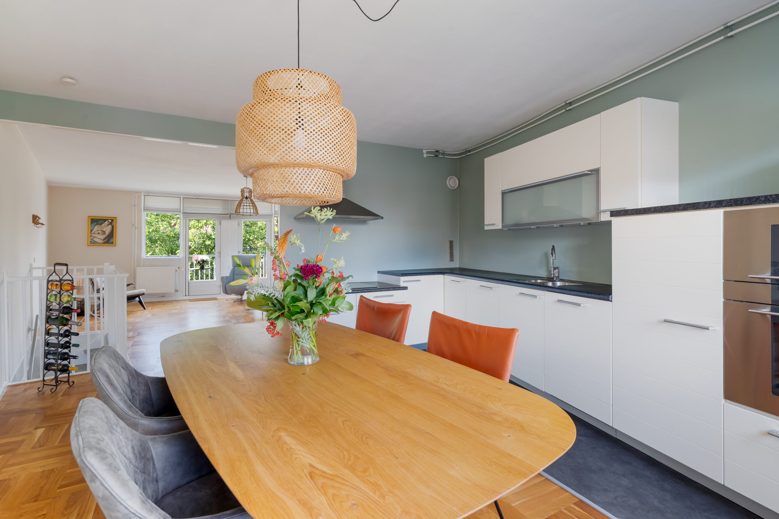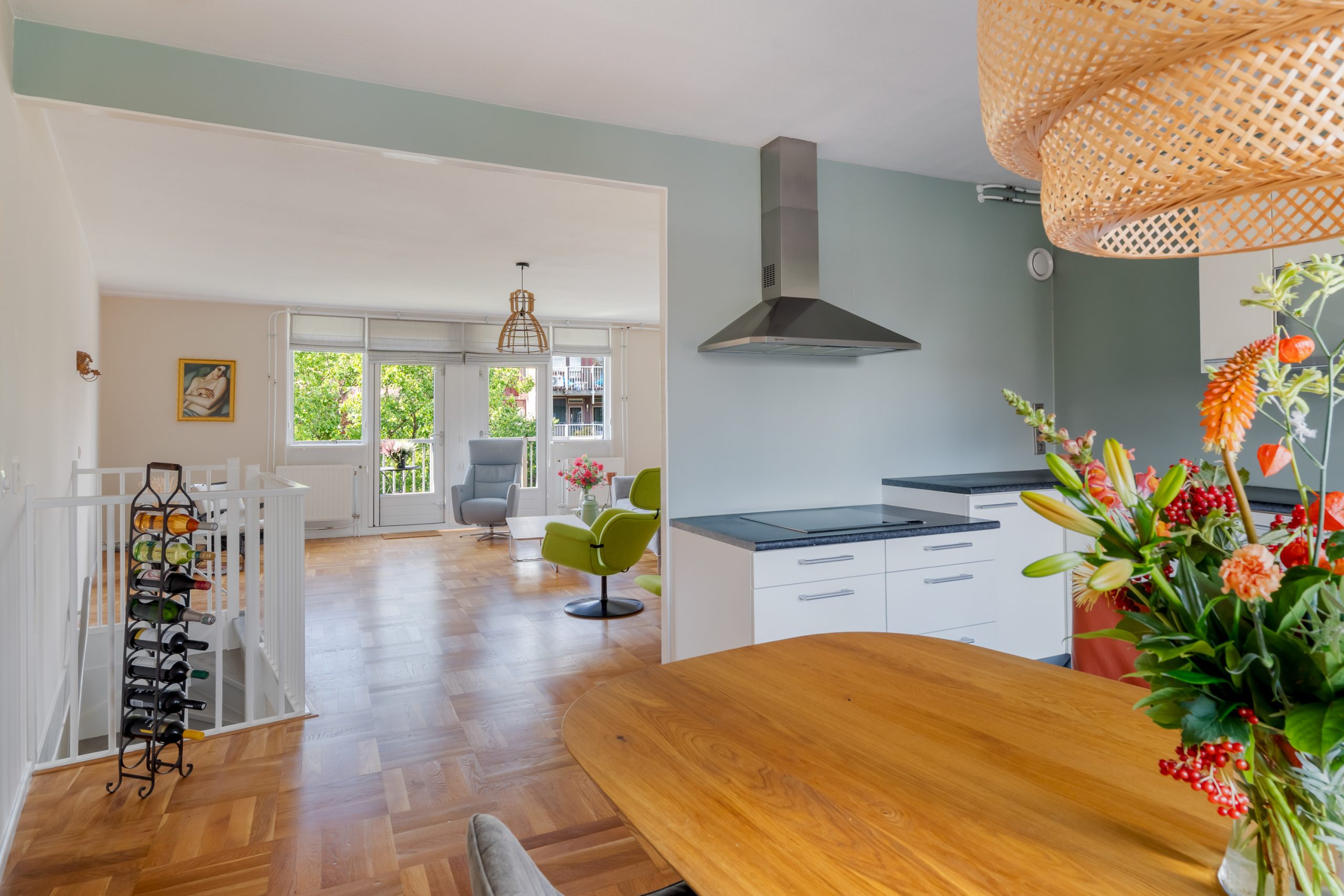 De woonkamer is een fijne ruimte met raampartijen aan beide zijden, waardoor er veel licht de woning binnenvalt. Het eetgedeelte staat in directe verbinding met de prachtige open keuken. De keuken beschikt over diverse soorten inbouwapparatuur zoals een 4-pits inductiekookplaat, afzuigkap, oven en hogedruk stoomoven, vaatwasser, koel-/vriescombinatie en voldoende opbergruimte. Vanuit de woonkamer bereik je het ruime balkon, met modern zonnescherm, waar je het gehele jaar heerlijk kan zitten. Hier bevindt je je in een oase van rust, terwijl het bruisende centrum van Rotterdam op loopafstand ligt! Tevens zijn de ramen en deuren grotendeels voorzien van moderne horren.