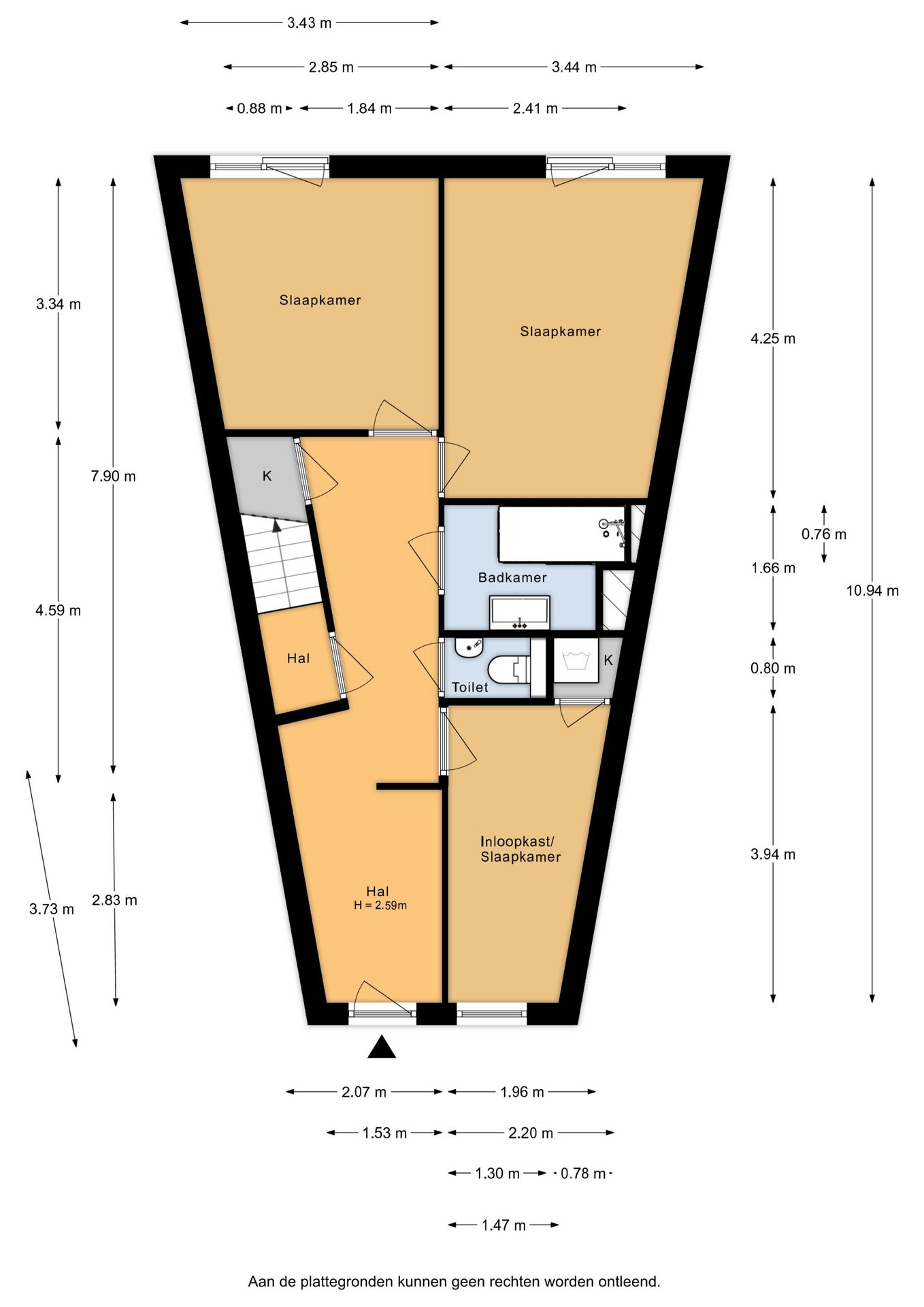 Ruime hal/entree met separaat toilet, vaste kast en toegang tot alle vertrekken. De master bedroom is gelegen aan de achterzijde van de woning en is erg ruim te noemen. De 2e slaapkamer is multifunctioneel in te richten als bijvoorbeeld een werk-, kinder- of hobbykamer. Ook de 3e slaapkamer is multifunctioneel in te richten en wordt nu gebruikt als inloopkast. De badkamer beschikt over een ligbad, handdoekradiator en een wastafel met wastafelmeubel.
