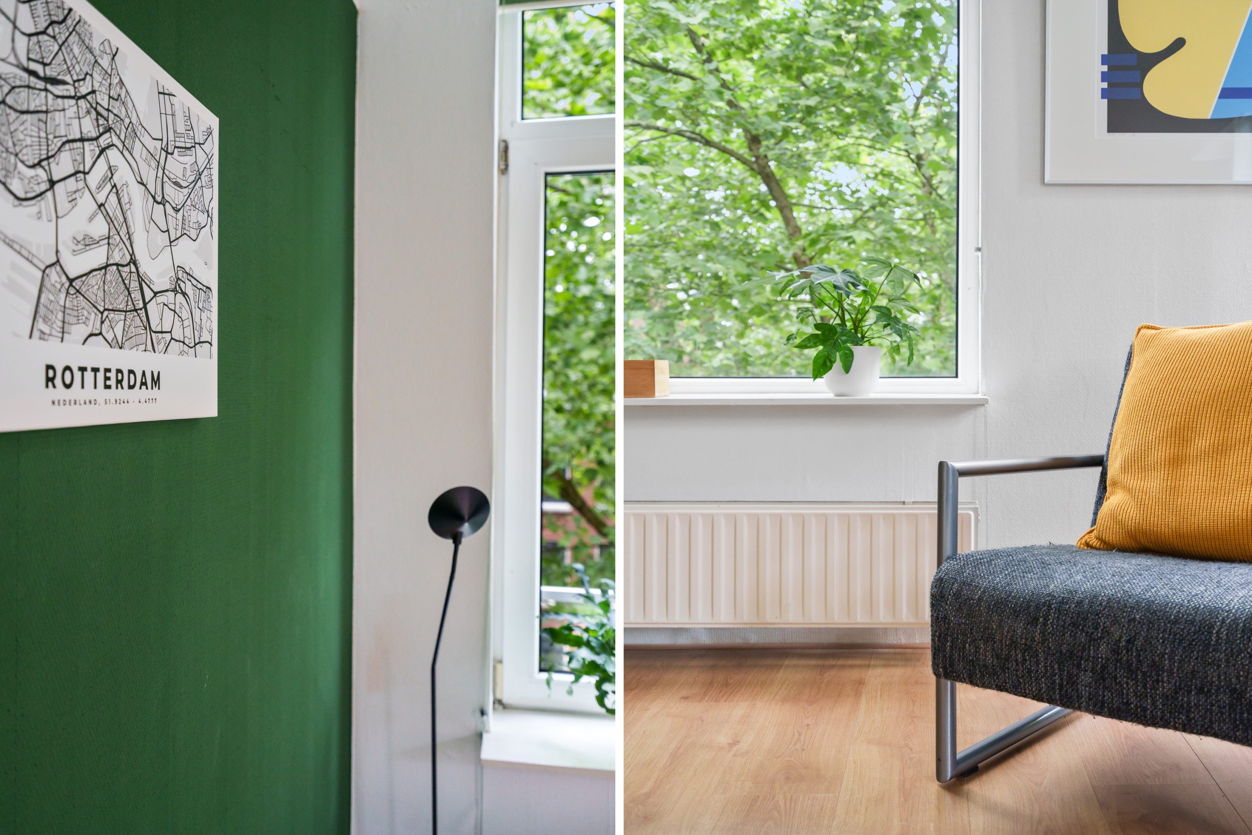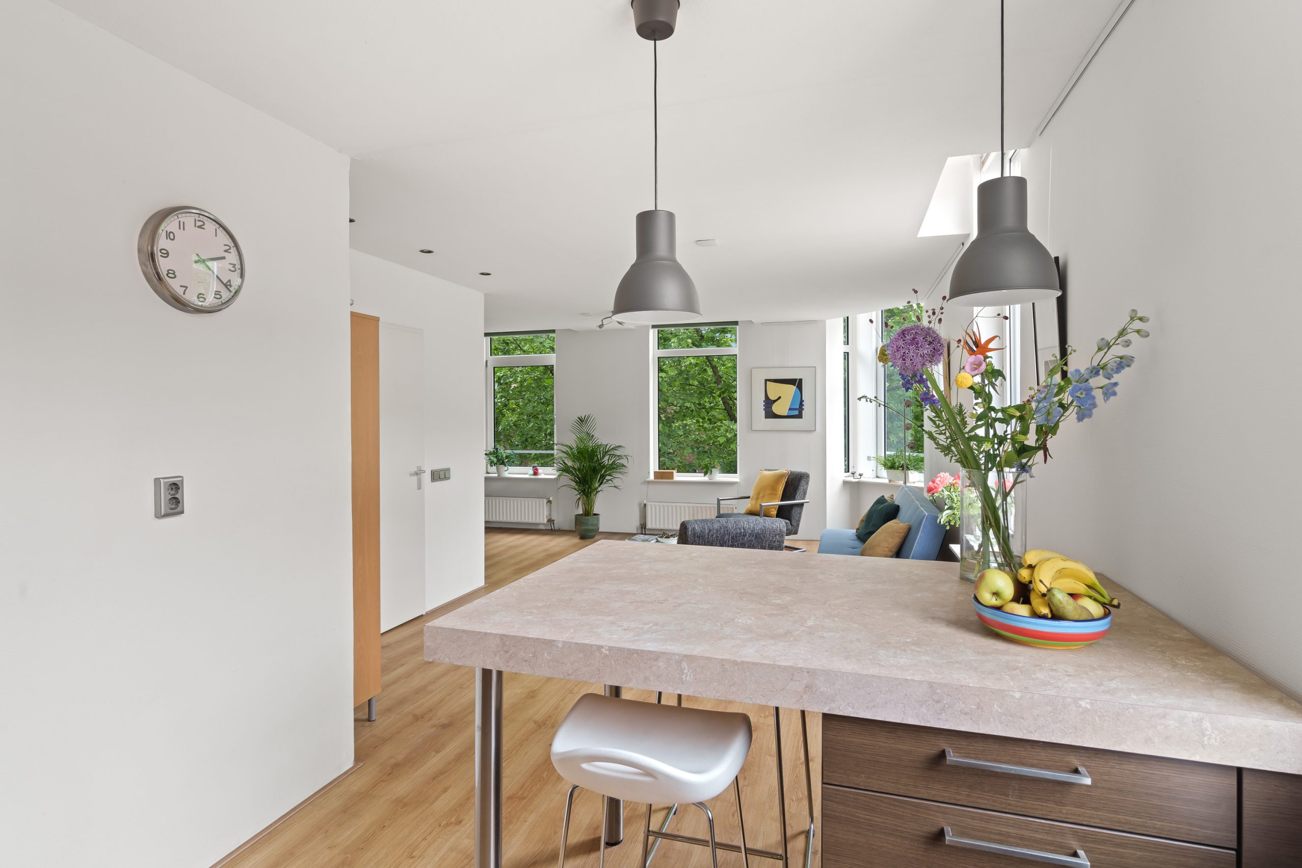 Riante hal/entree met separaat toilet, meterkast en toegang tot alle vertrekken op deze verdieping. De royale L-vormige woon-/eetkamer is gelegen aan de voorzijde van de woning. De combinatie van grote raampartijen en de speelse indeling zorgt voor een heerlijk licht en sfeervol woongedeelte. Dankzij de praktische indeling van de woning is het eenvoudig om het woon- en eetgedeelte van elkaar te scheiden, waardoor je gemakkelijk een gezellige en comfortabele eethoek kunt creëren. Door de raampartijen kijk je uit over de prachtige boomrijke straat, wat zorgt voor een ruimtelijke en rustige sfeer. Het eetgedeelte staat in directe verbinding met de open keuken, waar koken en gezelligheid perfect samenkomen. Het is de ideale plek om in contact te blijven met je gezelschap terwijl je aan het koken bent. De open keuken beschikt over diverse inbouwapparatuur zoals 4-pits gasfornuis met afzuigkap, oven, vaatwasser en een koel-/vriescombinatie. De 1e slaapkamer bevindt zich aan de achterzijde van de woning en is multifunctioneel in te richtten als bijvoorbeeld werk-, kinder-, slaapkamer. Daarbij beschikt de slaapkamer over een extra ruimte, die ideaal te gebruiken is als inloopkast of voor extra bergruimte.