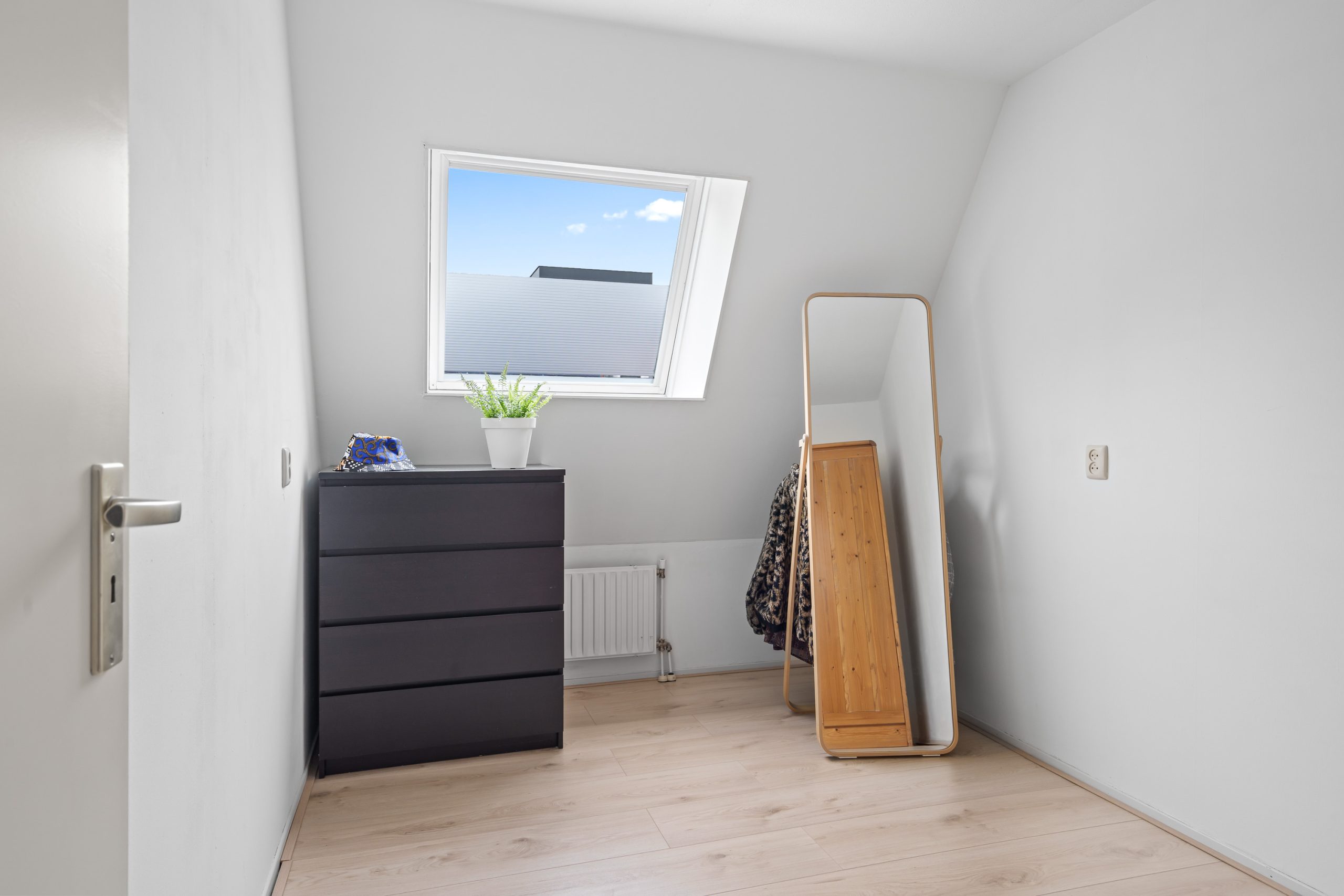 Ruime overloop met vaste kast (CV-opstelling) en toegang tot alle vertrekken. De master bedroom is gelegen aan de voorzijde de woning. Er is meer dan voldoende ruimte voor een tweepersoonsbed en een royale kledingkast. Middels openslaande deuren heb je toegang tot het balkon, gelegen op het noorden. De 3e slaapkamer is ook multifunctioneel in te richten als werk-, kinder-, slaapkamer. De moderne badkamer beschikt over een inloopdouche, wasmachineaansluiting, handdoekradiator en een wastafel met wastafelmeubel.