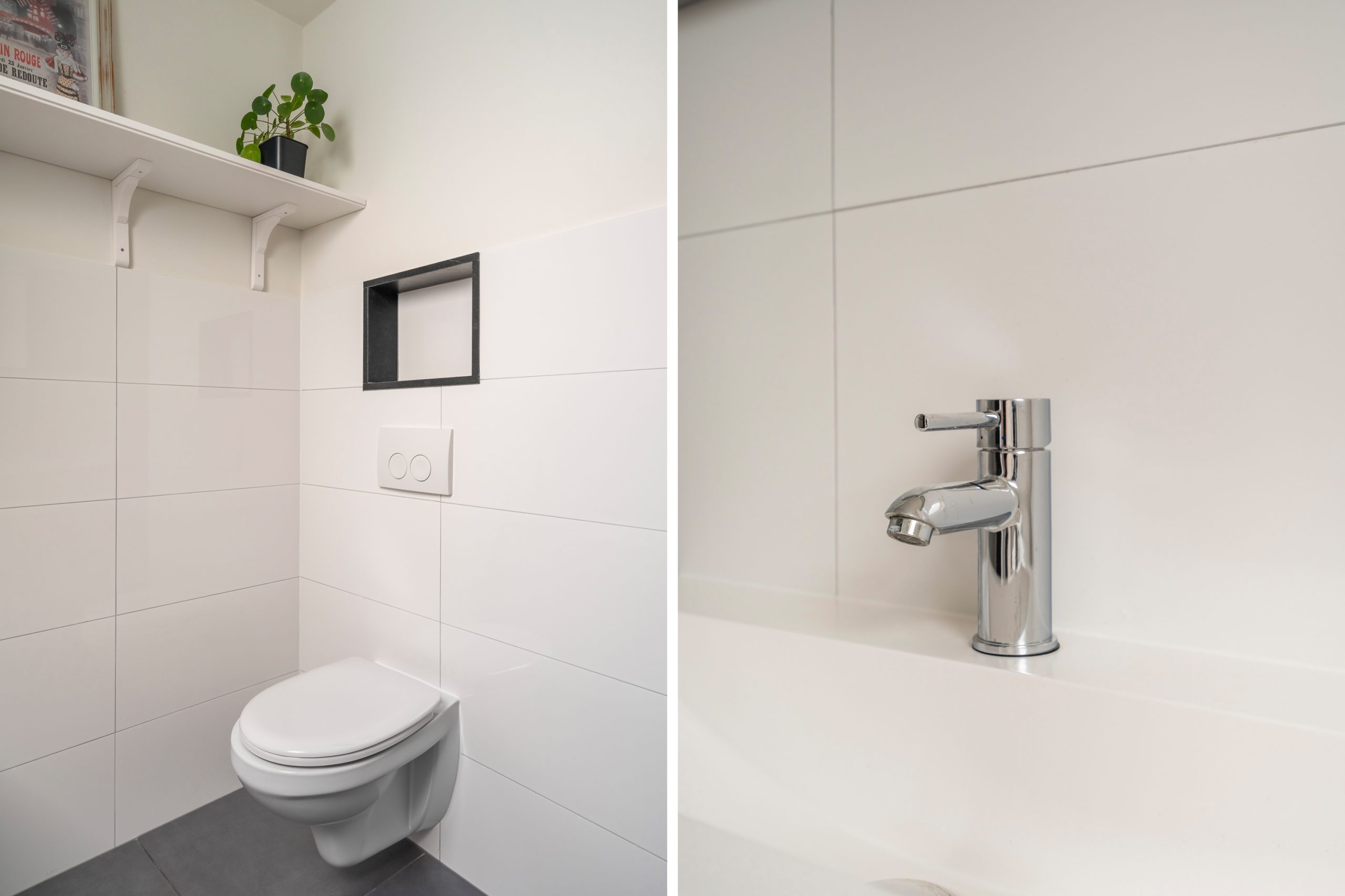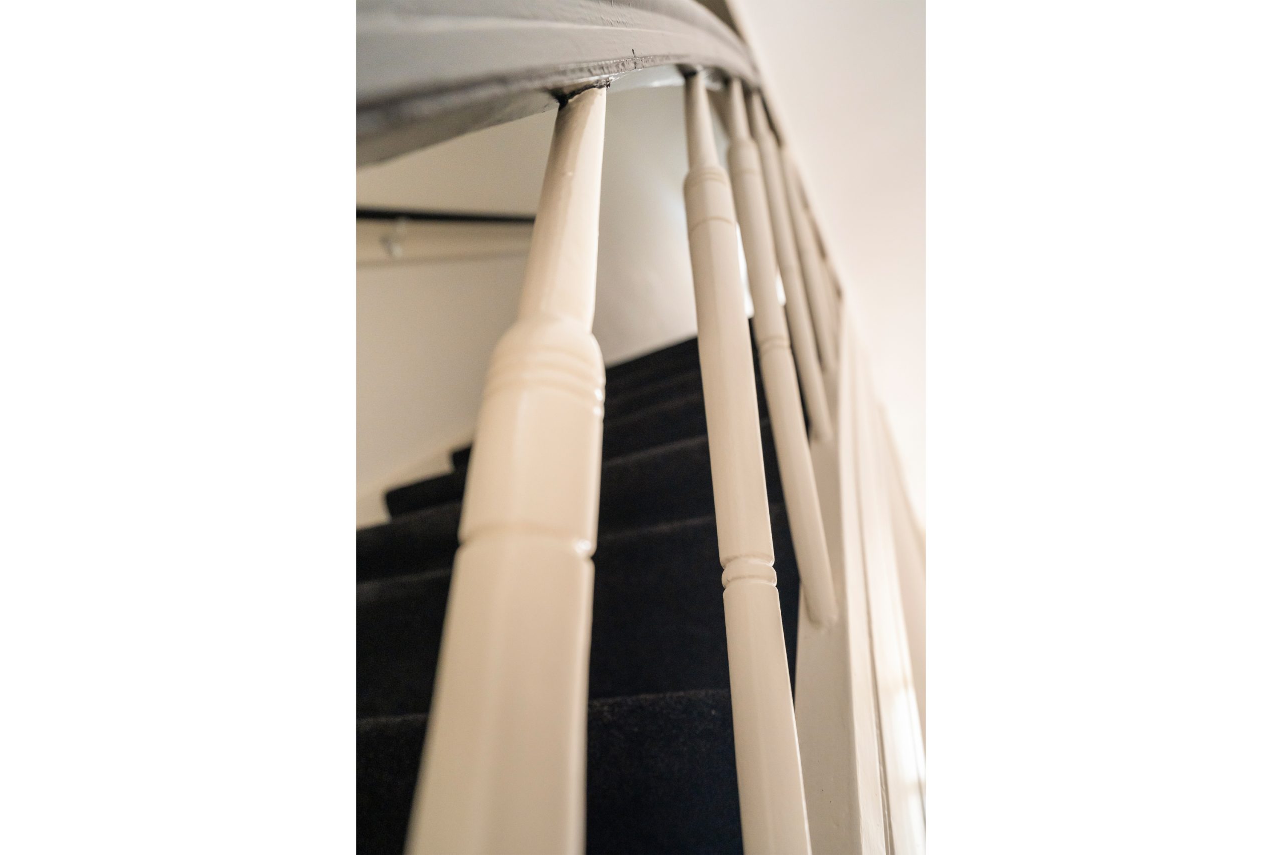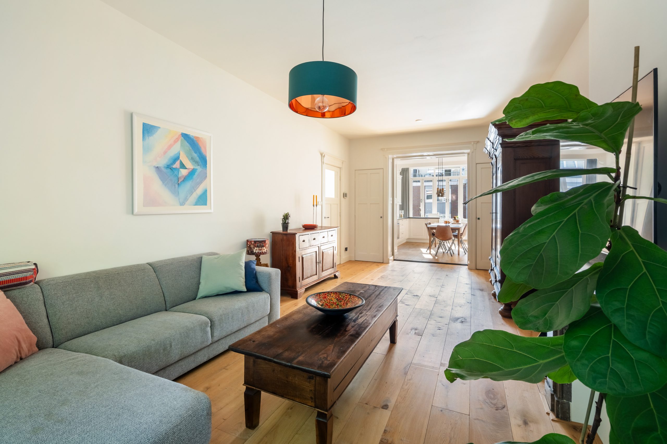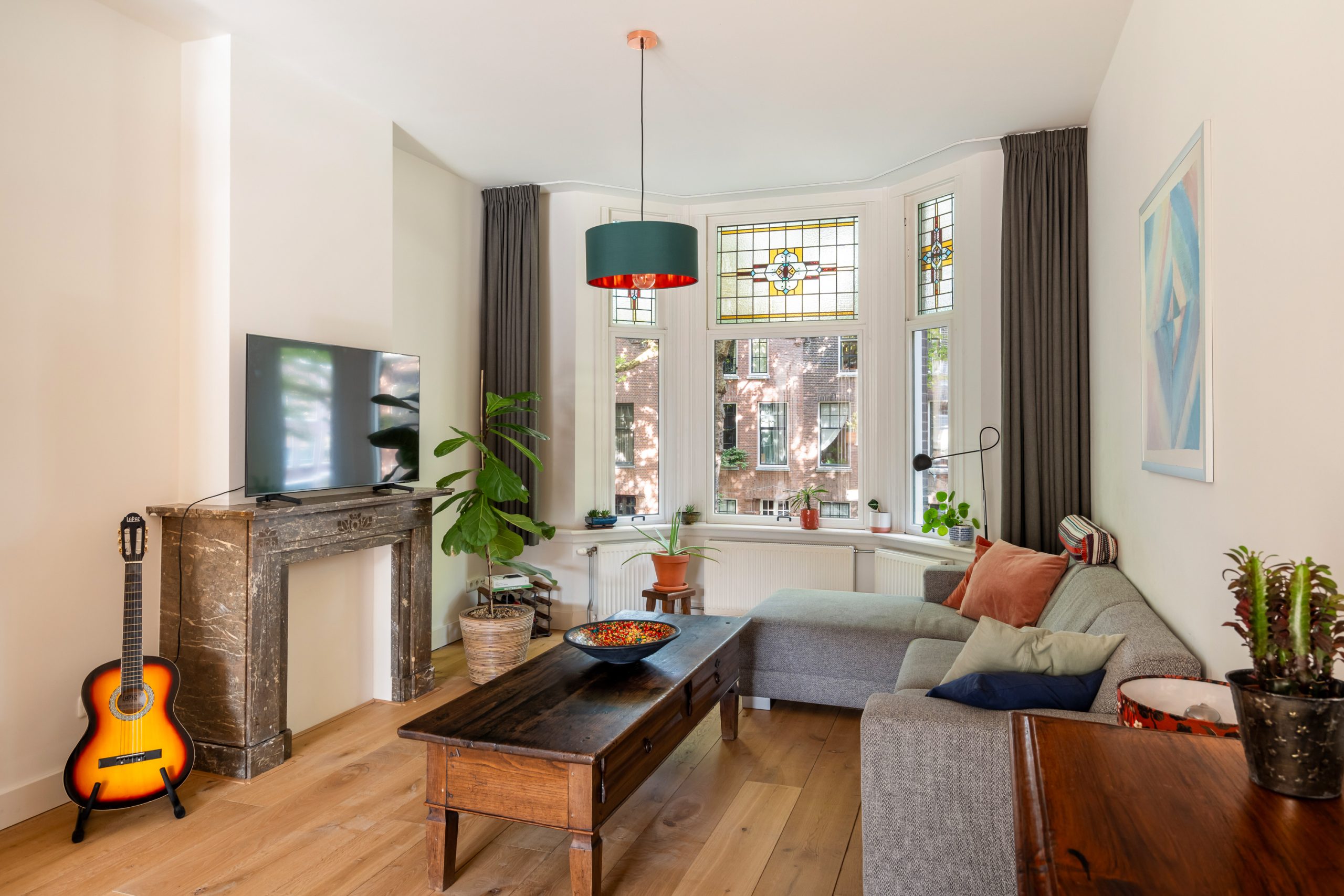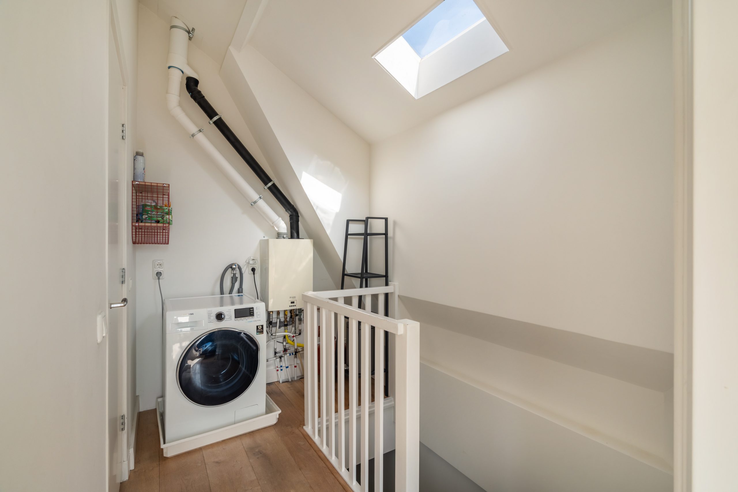 Hal met toilet en toegang tot de woonkamer. Het woongedeelte is gelegen aan de voorzijde van de woning en beschikt over een prachtige lichtinval door de grote raampartijen. Direct bij binnenkomst word je overspoeld door talloze authentieke jaren ’10 details zoals de prachtige glas-in-lood ramen, de erker, de originele schouwen en paneeldeuren. Het woongedeelte kan gescheiden worden van het eetgedeelte middels de en suite deuren (met 3 inbouwkasten). De eetkamer staat in directe verbinding met de open keuken, waardoor je tijdens het koken altijd in contact kunt blijven met je gezelschap. De open keuken beschikt over diverse soorten inbouwapparatuur, zoals een 5-pits gasfornuis, afzuigkap, oven, vaatwasser en koel-/vriescombinatie. Op deze verdieping zijn er 2 slaapkamers. De kamer aan de voorzijde beschikt over een inbouwkast, handig voor extra opbergruimte.