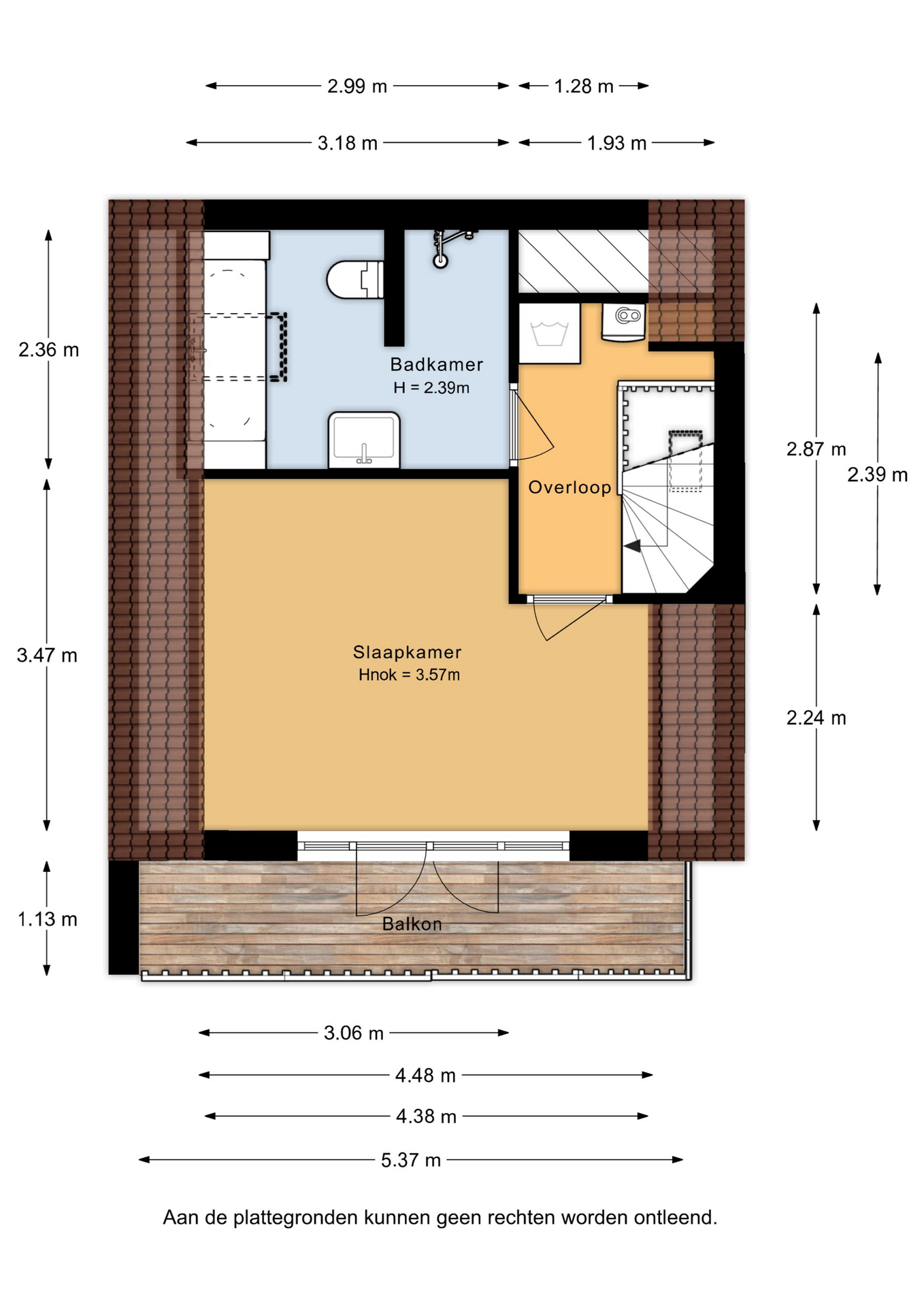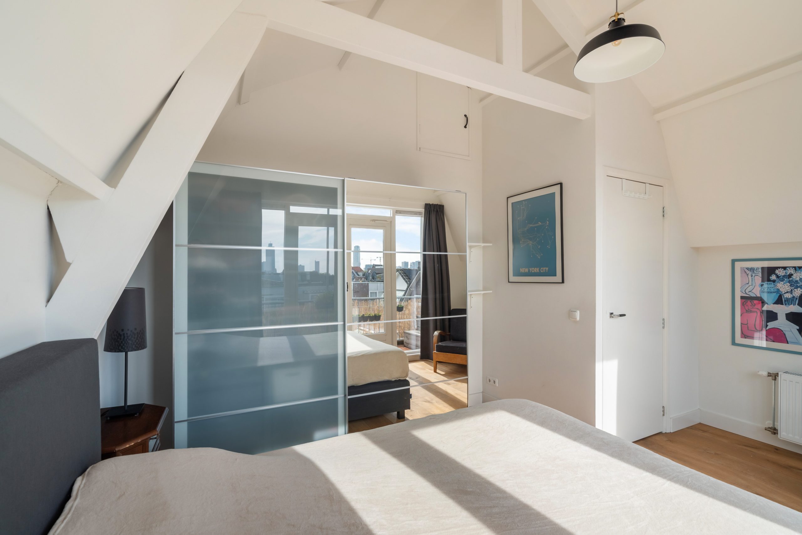 Overloop met wasmachineaansluiting en CV-opstelling en toegang tot de master bedroom en badkamer. De master bedroom is zeer ruim te noemen en is tevens erg sfeervol mede door de balkenstructuur en speelse indeling. Ook is er een luik naar de vliering, waar je veel spullen kunt opbergen. Grenzend aan de kamer is er een balkon, gelegen op het zuidoosten. Vanaf het balkon heb je een waanzinnig uitzicht over de stad!