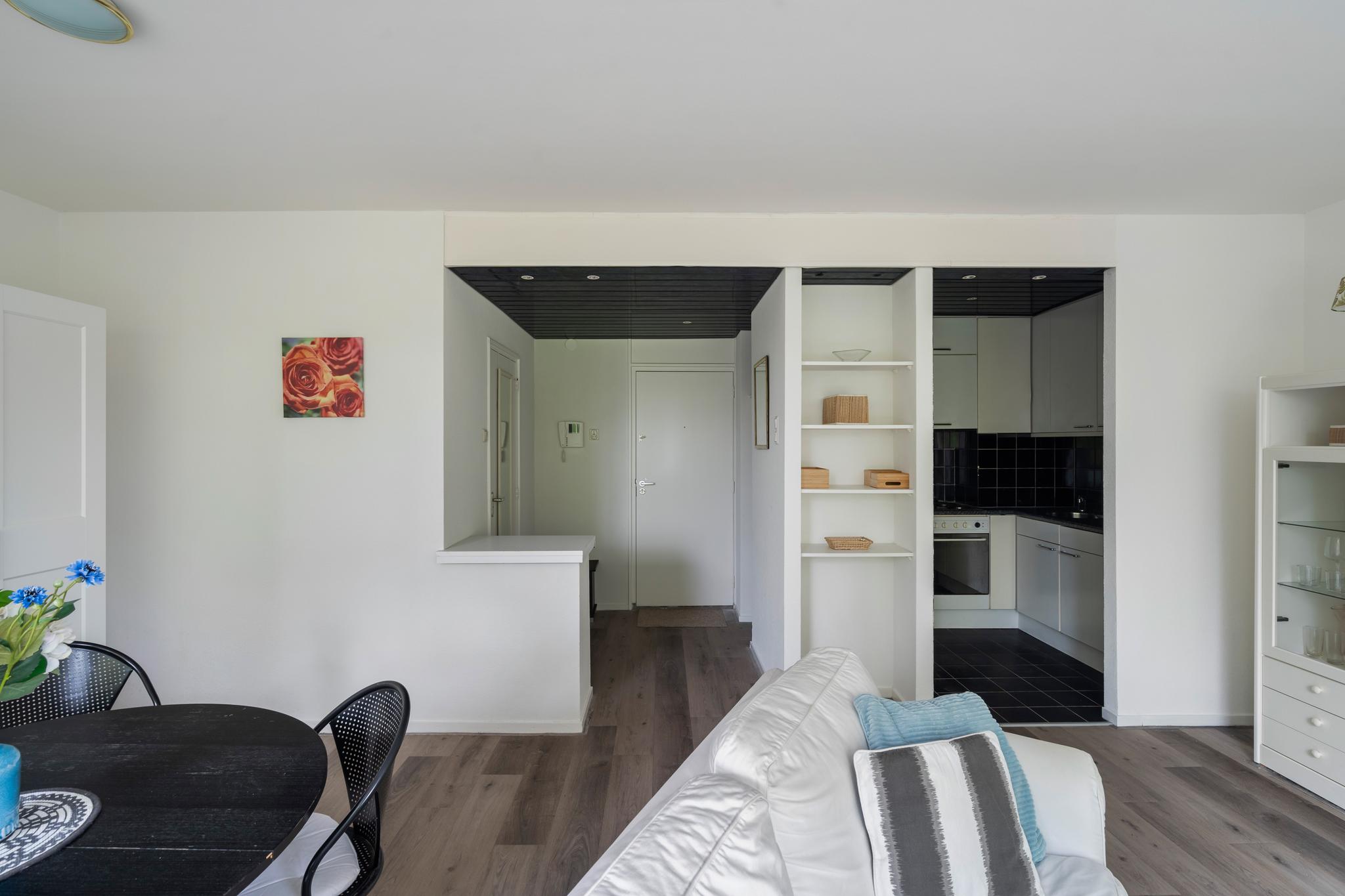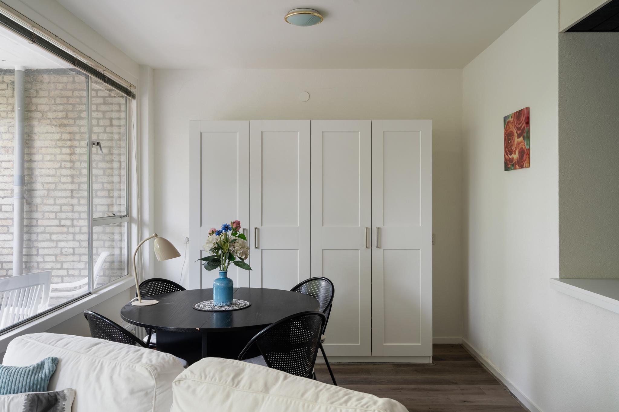Entree met garderobe en directe toegang tot alle vertrekken. De ruime woon/-eetkamer bevindt zich aan de voorzijde van de woning en wordt gekenmerkt door een prachtige lichtinval dankzij de grote raampartijen. Er is meer dan genoeg ruimte voor zowel een zit- als eethoek, vanwaaruit je toegang hebt tot het balkon op het noordwesten. Hier kun je heerlijk genieten van de ochtend- en middagzon! De verzorgde open keuken beschikt over diverse inbouwapparatuur, waaronder een oven, 4-pits kookplaat en een koel/-vriescombinatie. De badkamer is voorzien van een ligbad, douche, wastafel en toilet. Daarnaast is er een inpandige berging van circa 6 m2, erg handig als extra opbergruimte!