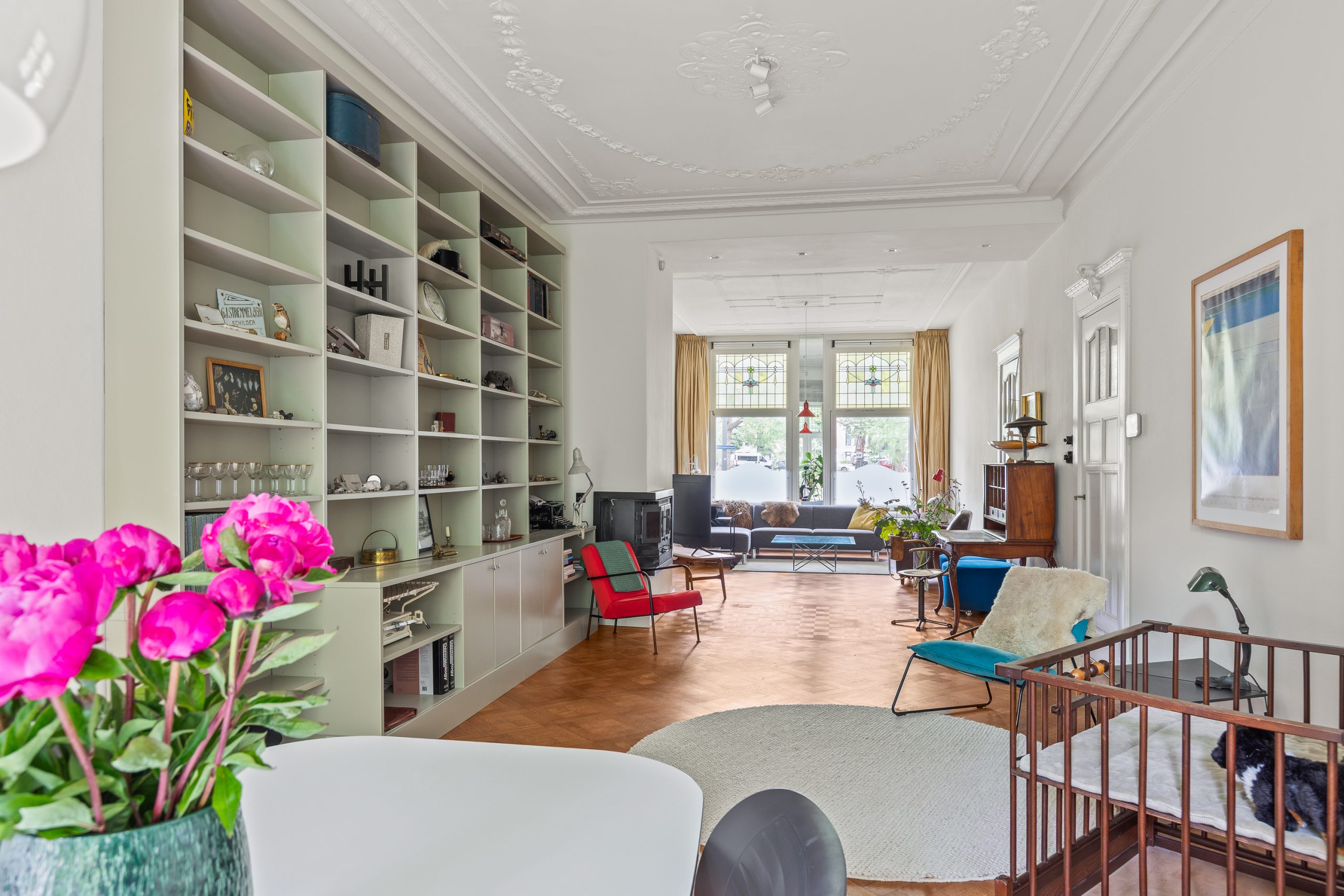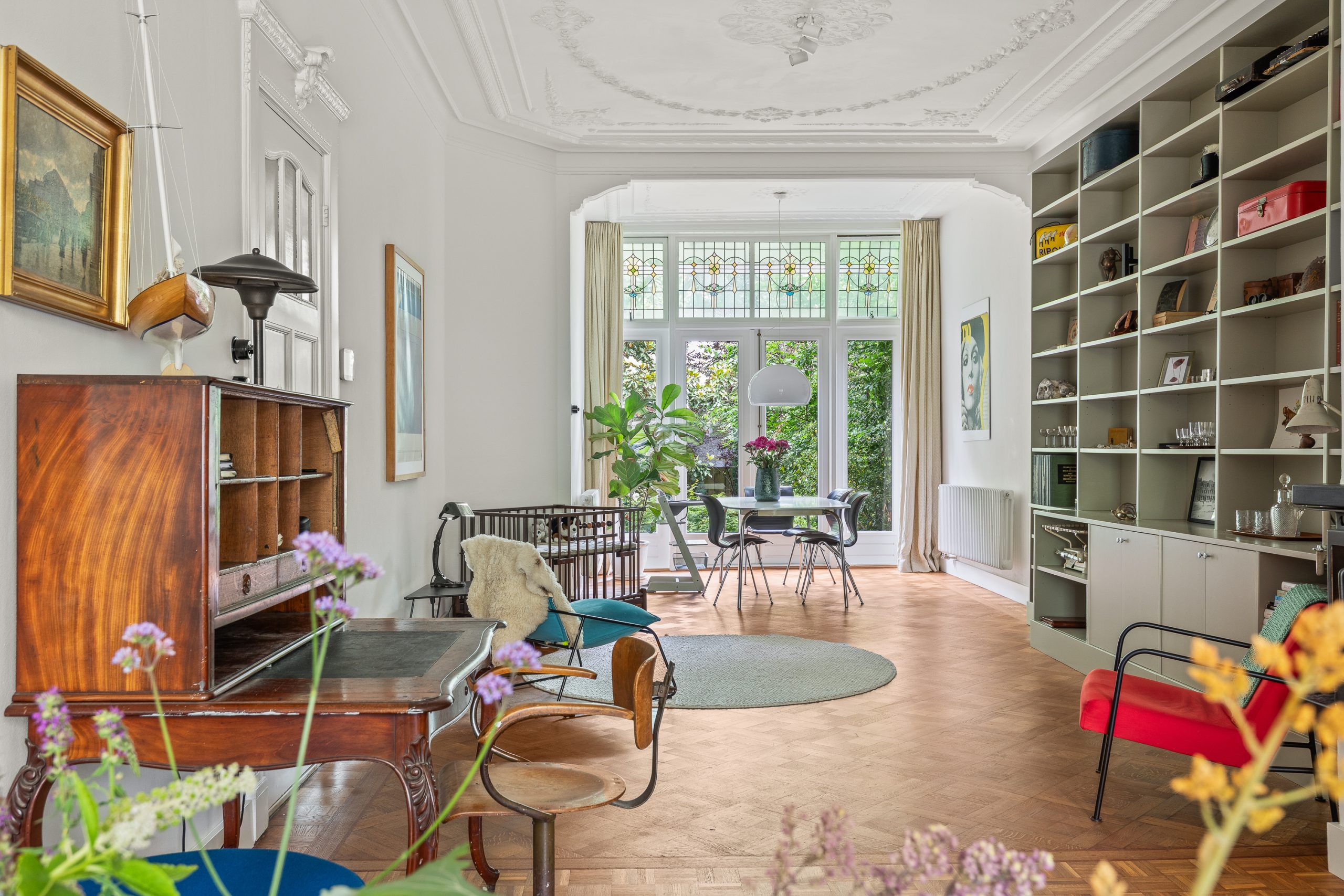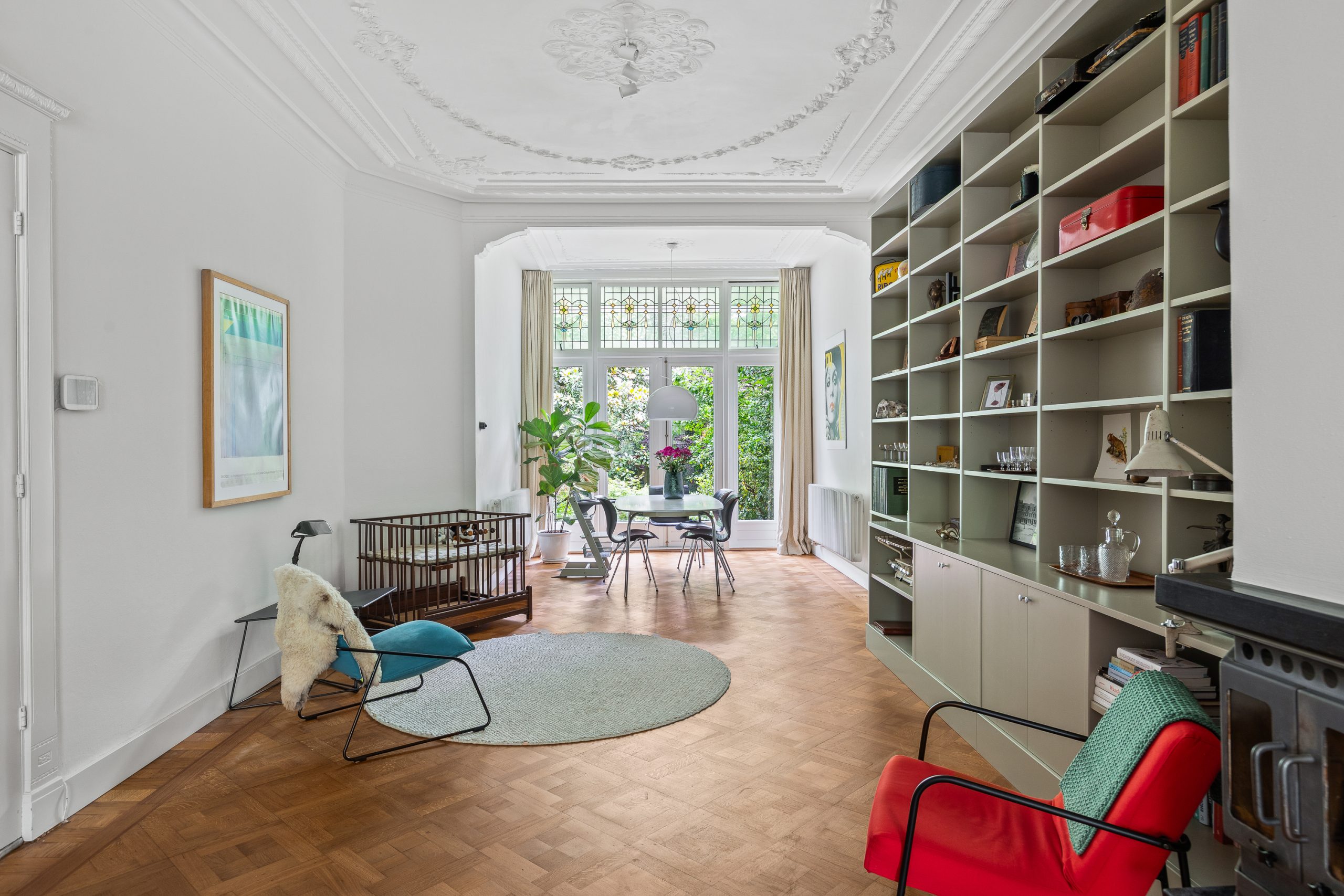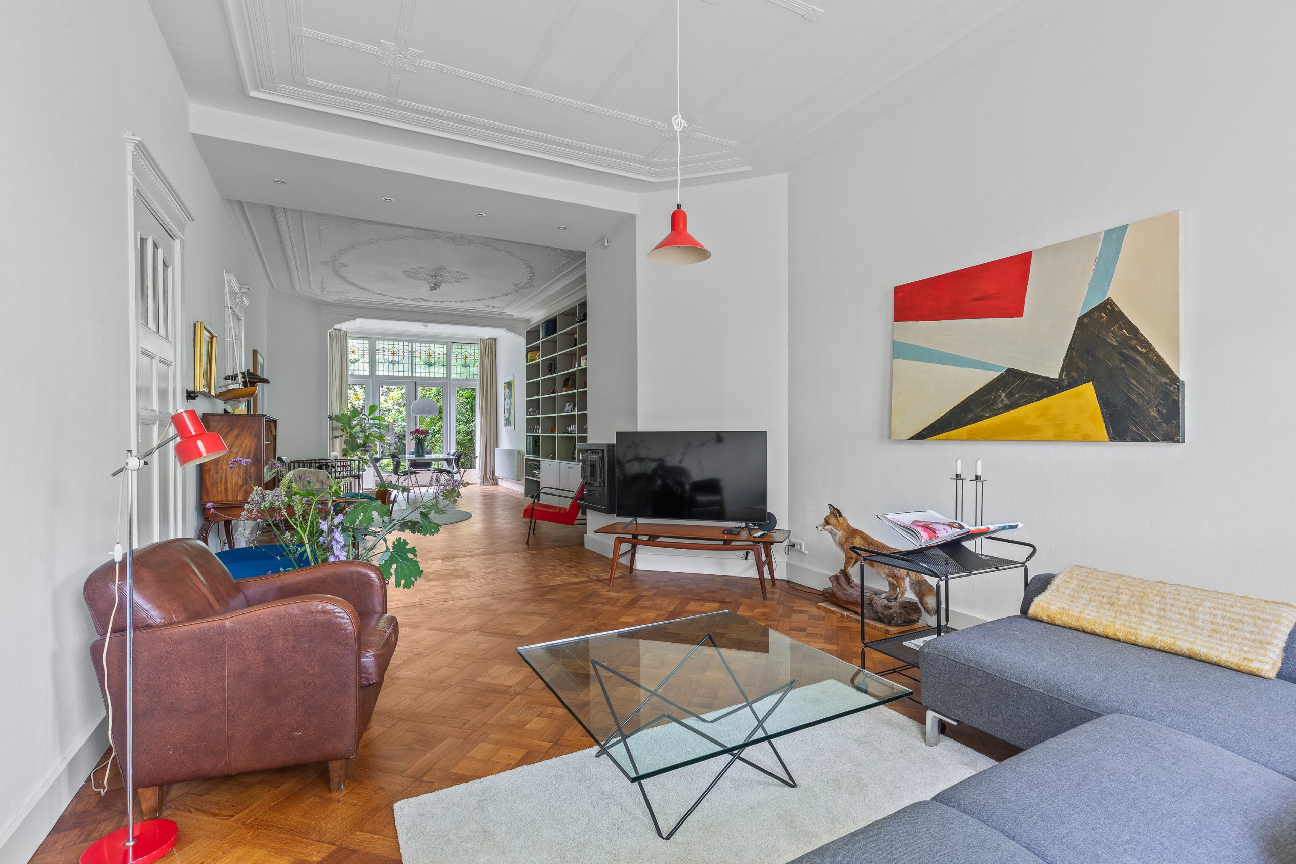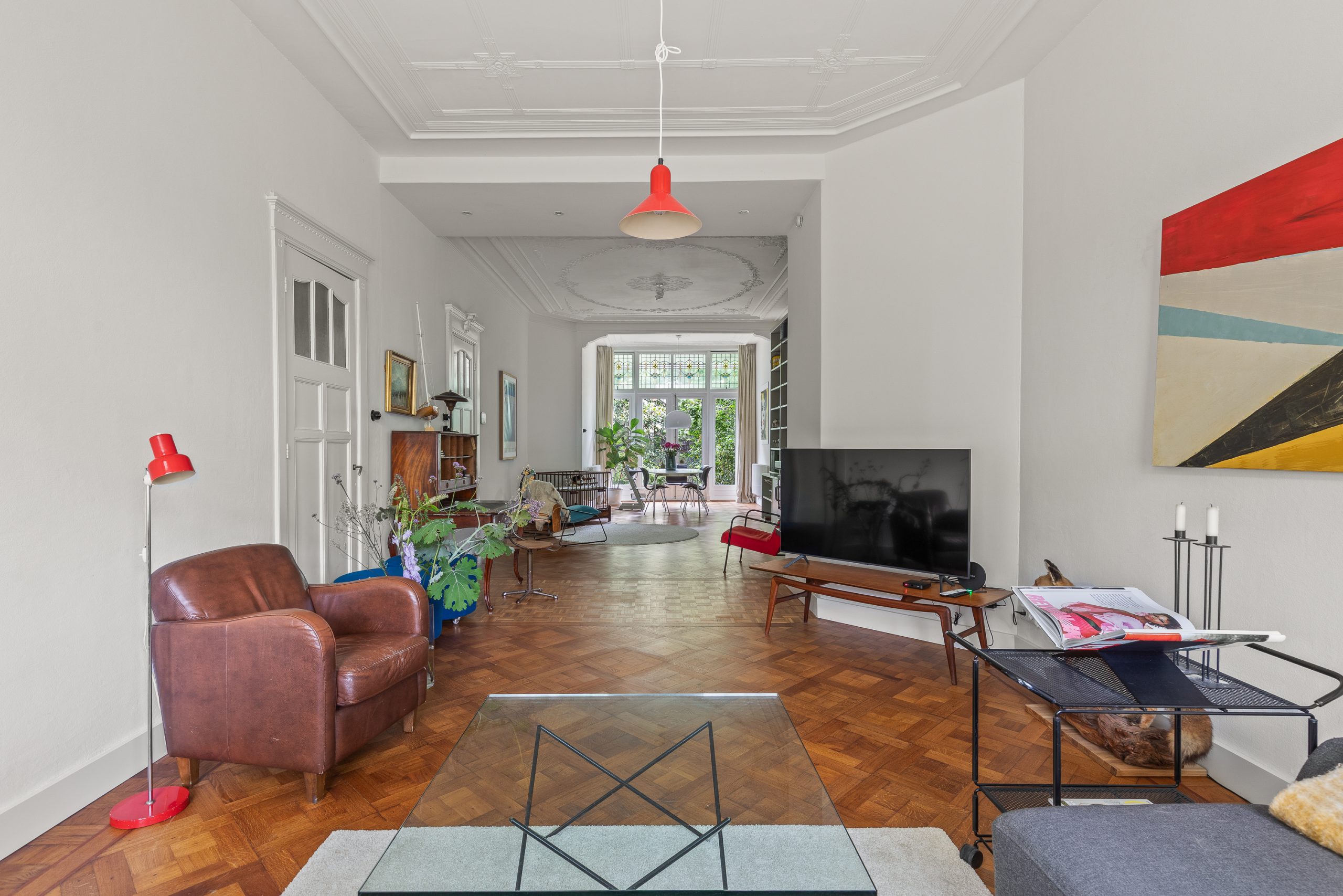 Prachtig betegelde entree/hal met separaat toilet, vaste kast en toegang tot het woongedeelte van maar liefst 15 m lang! Het woongedeelte aan de voorzijde is zeer ruim te noemen. Door de grote raampartijen in combinatie met het hoge plafond treedt er veel licht de woning binnen wat zorgt voor een lichte, aangename sfeer. Het eetgedeelte ligt aan de achterzijde. Middels de openslaande deuren betreed je via een kleine trap de heerlijke tuin van 67 m2! De tuin is een groene oase en uniek in hartje Rotterdam. De tuin is gesitueerd op het zonnige zuidoosten, waardoor er een groot gedeelte van de dag van de zon kan worden genoten. Door de gehele woning zijn prachtige originele details uit de jaren 10 terug te vinden. Denk hierbij aan ornamentenplafonds, karakteristiek glas-in-lood en klassieke paneeldeuren. Deze authentieke details geven de woning een warme, statige uitstraling en benadrukken het charmante karakter van het pand.