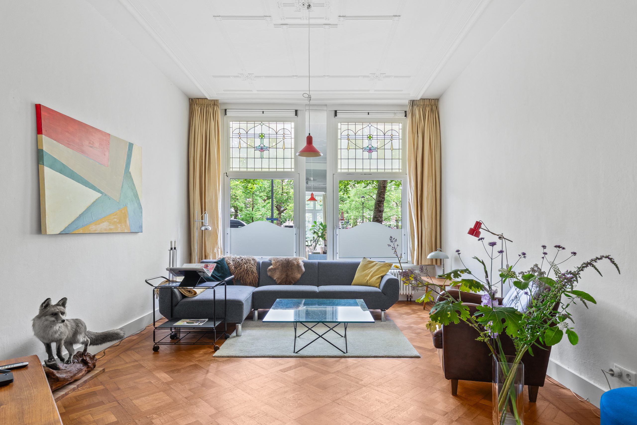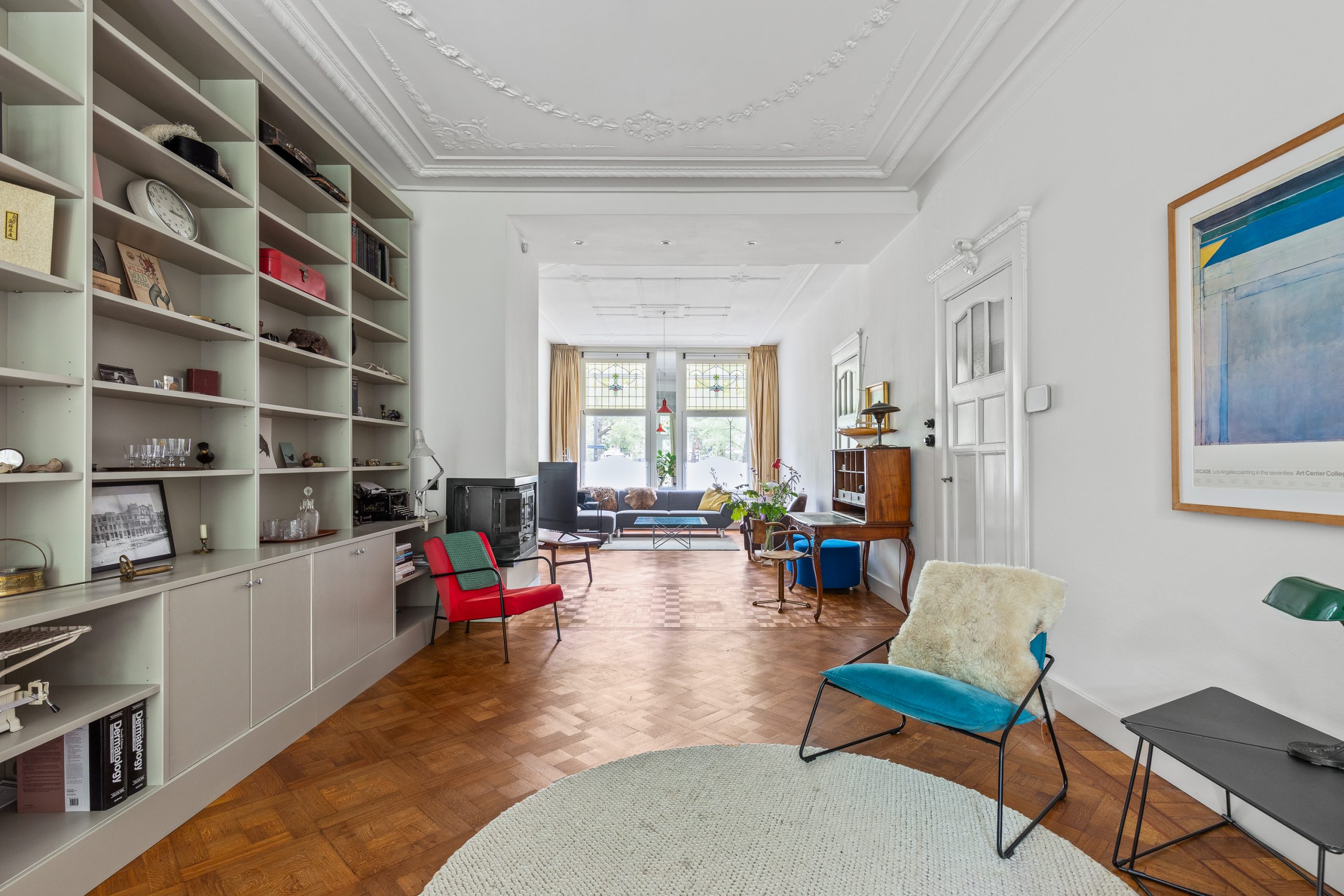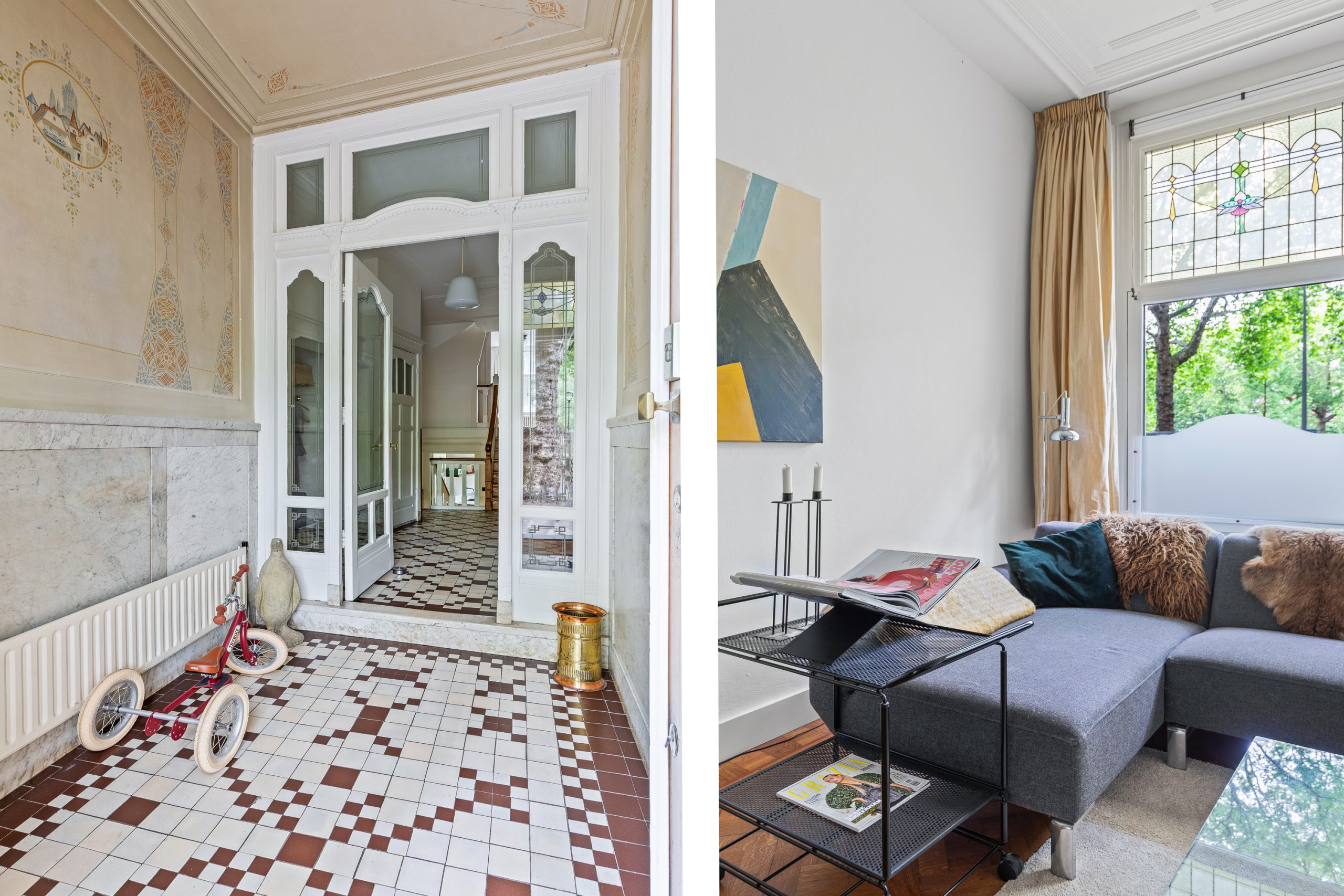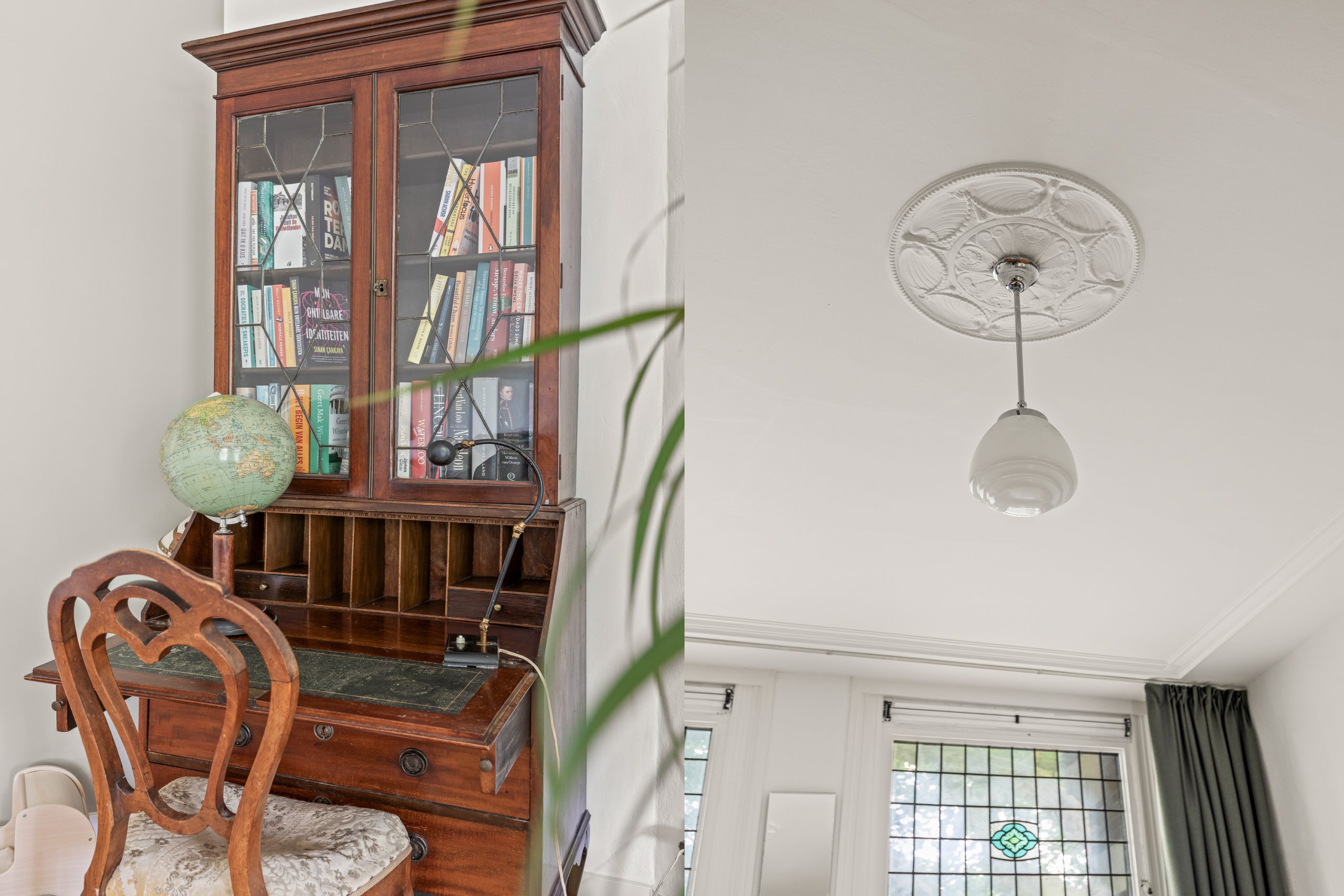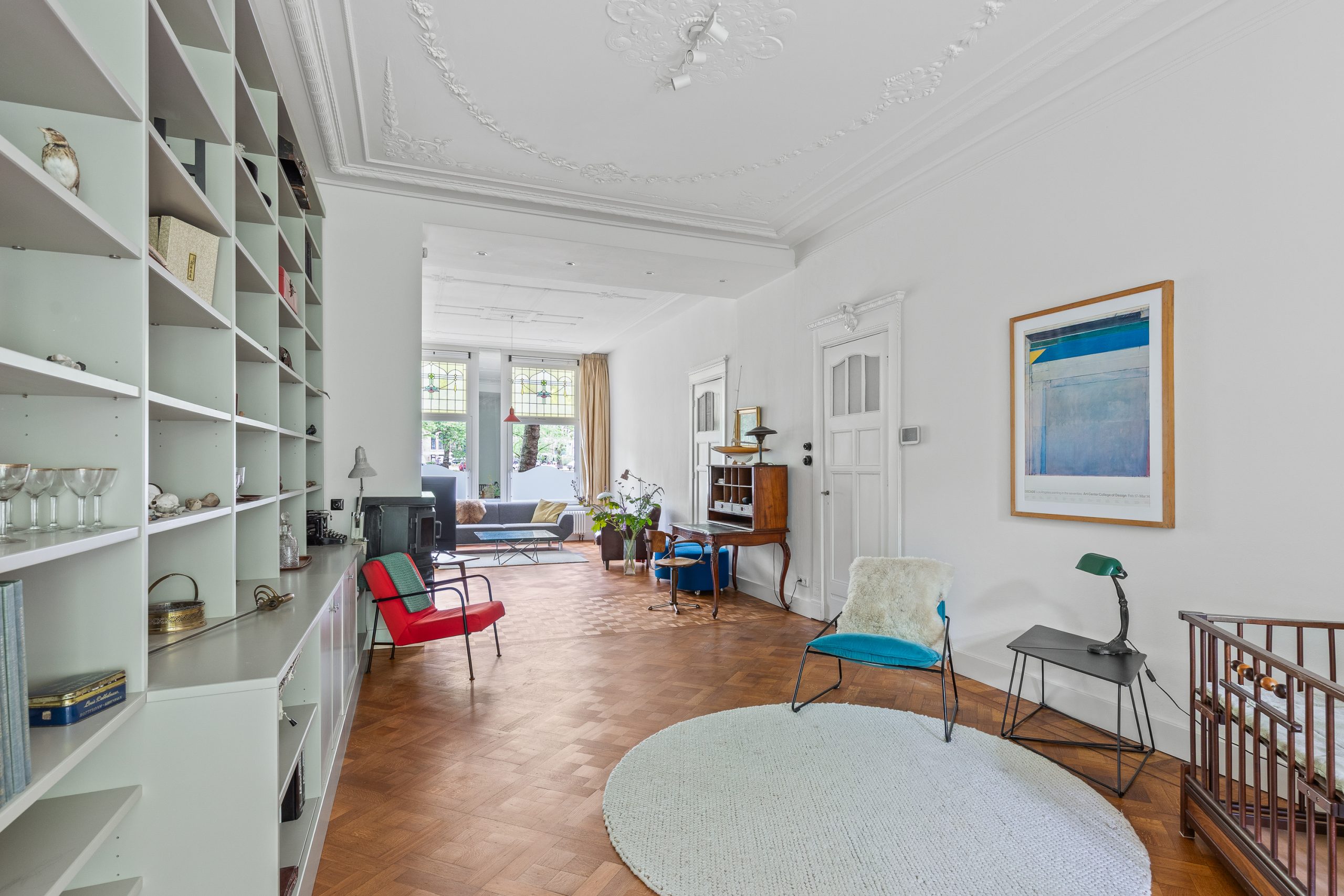 Prachtig betegelde entree/hal met separaat toilet, vaste kast en toegang tot het woongedeelte van maar liefst 15 m lang! Het woongedeelte aan de voorzijde is zeer ruim te noemen. Door de grote raampartijen in combinatie met het hoge plafond treedt er veel licht de woning binnen wat zorgt voor een lichte, aangename sfeer. Het eetgedeelte ligt aan de achterzijde. Middels de openslaande deuren betreed je via een kleine trap de heerlijke tuin van 67 m2! De tuin is een groene oase en uniek in hartje Rotterdam. De tuin is gesitueerd op het zonnige zuidoosten, waardoor er een groot gedeelte van de dag van de zon kan worden genoten. Door de gehele woning zijn prachtige originele details uit de jaren 10 terug te vinden. Denk hierbij aan ornamentenplafonds, karakteristiek glas-in-lood en klassieke paneeldeuren. Deze authentieke details geven de woning een warme, statige uitstraling en benadrukken het charmante karakter van het pand.