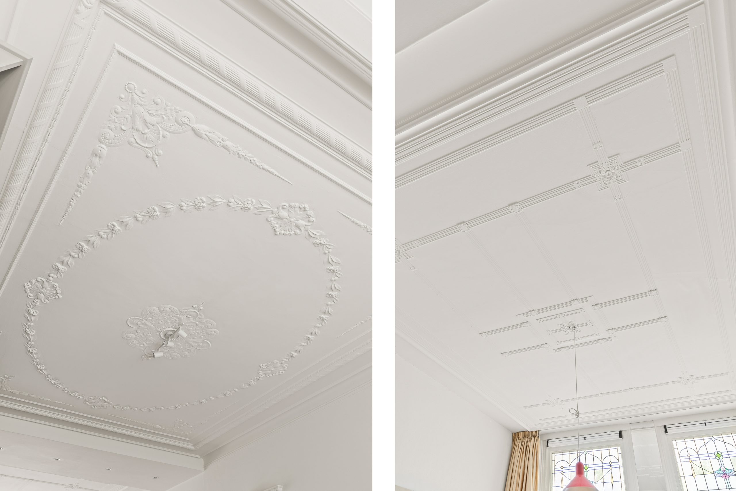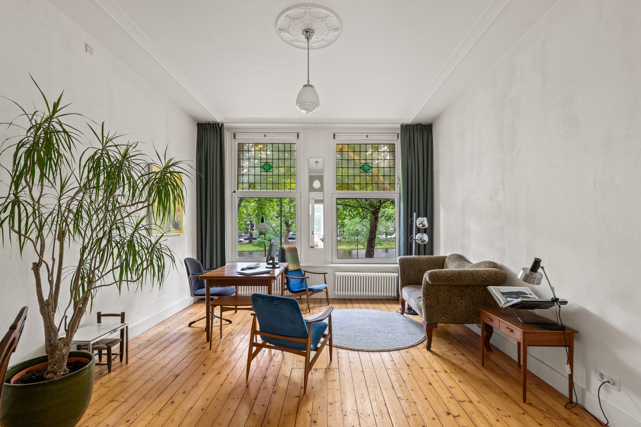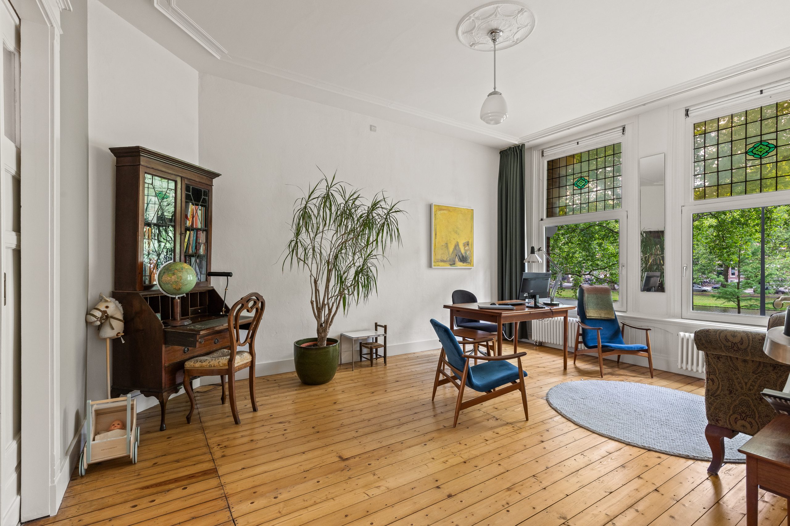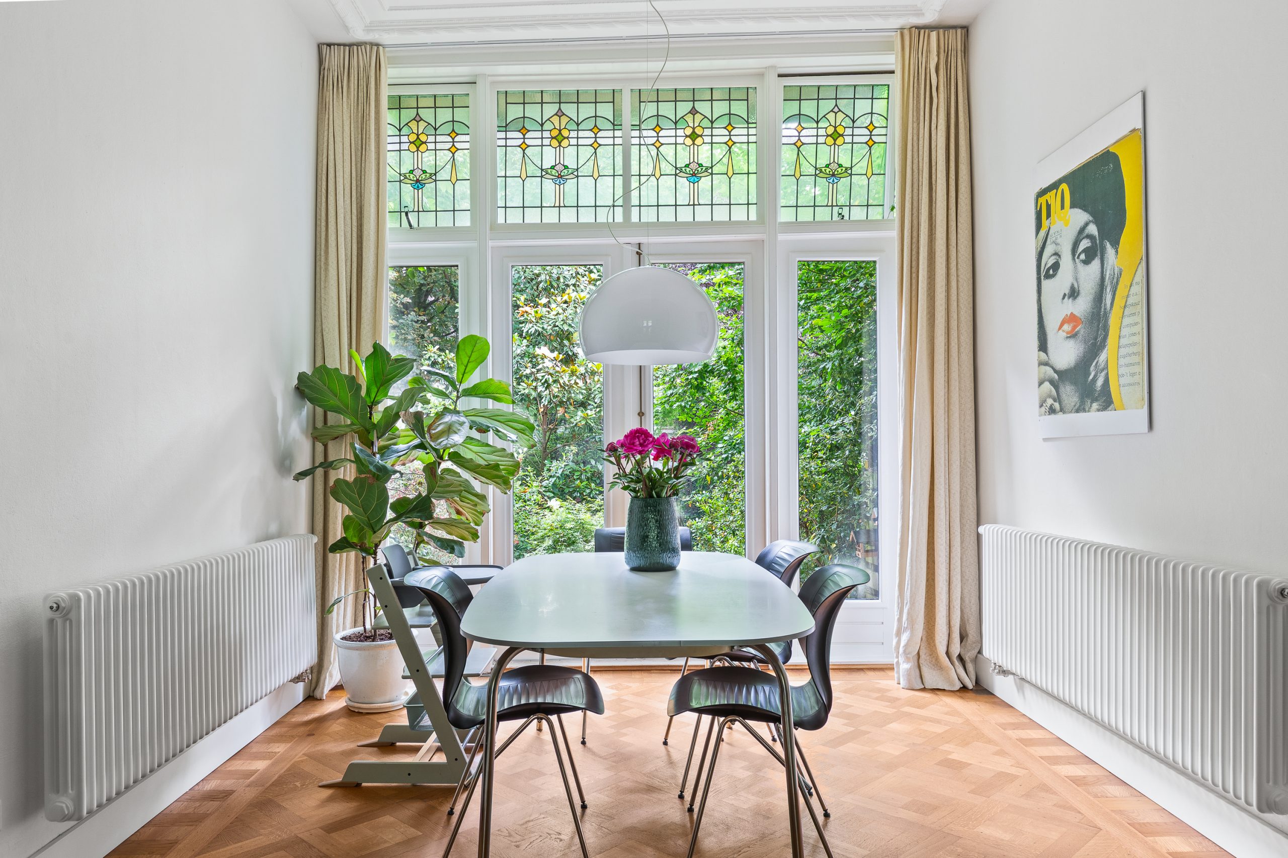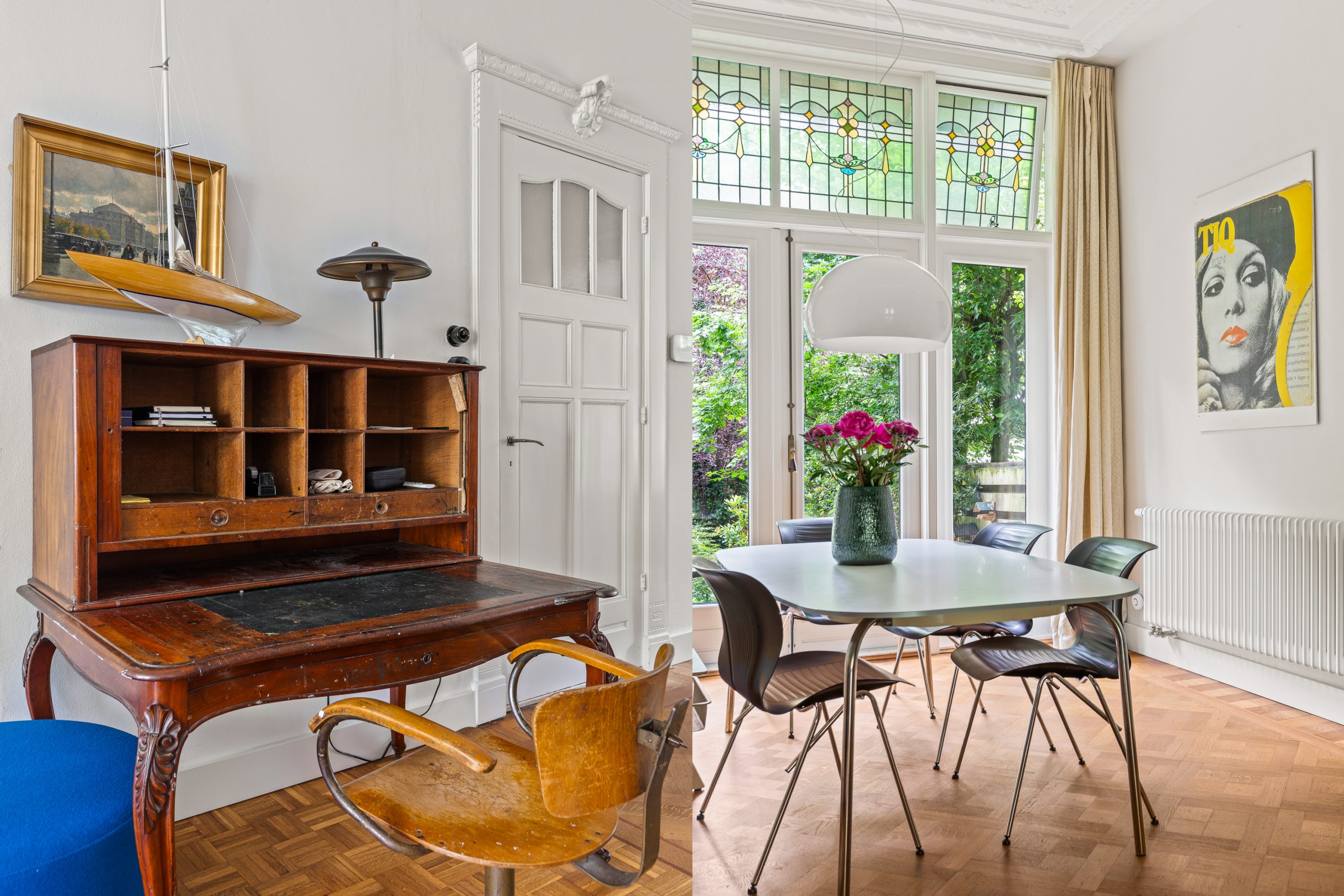Prachtig betegelde entree/hal met separaat toilet, vaste kast en toegang tot het woongedeelte van maar liefst 15 m lang! Het woongedeelte aan de voorzijde is zeer ruim te noemen. Door de grote raampartijen in combinatie met het hoge plafond treedt er veel licht de woning binnen wat zorgt voor een lichte, aangename sfeer. Het eetgedeelte ligt aan de achterzijde. Middels de openslaande deuren betreed je via een kleine trap de heerlijke tuin van 67 m2! De tuin is een groene oase en uniek in hartje Rotterdam. De tuin is gesitueerd op het zonnige zuidoosten, waardoor er een groot gedeelte van de dag van de zon kan worden genoten. Door de gehele woning zijn prachtige originele details uit de jaren 10 terug te vinden. Denk hierbij aan ornamentenplafonds, karakteristiek glas-in-lood en klassieke paneeldeuren. Deze authentieke details geven de woning een warme, statige uitstraling en benadrukken het charmante karakter van het pand.