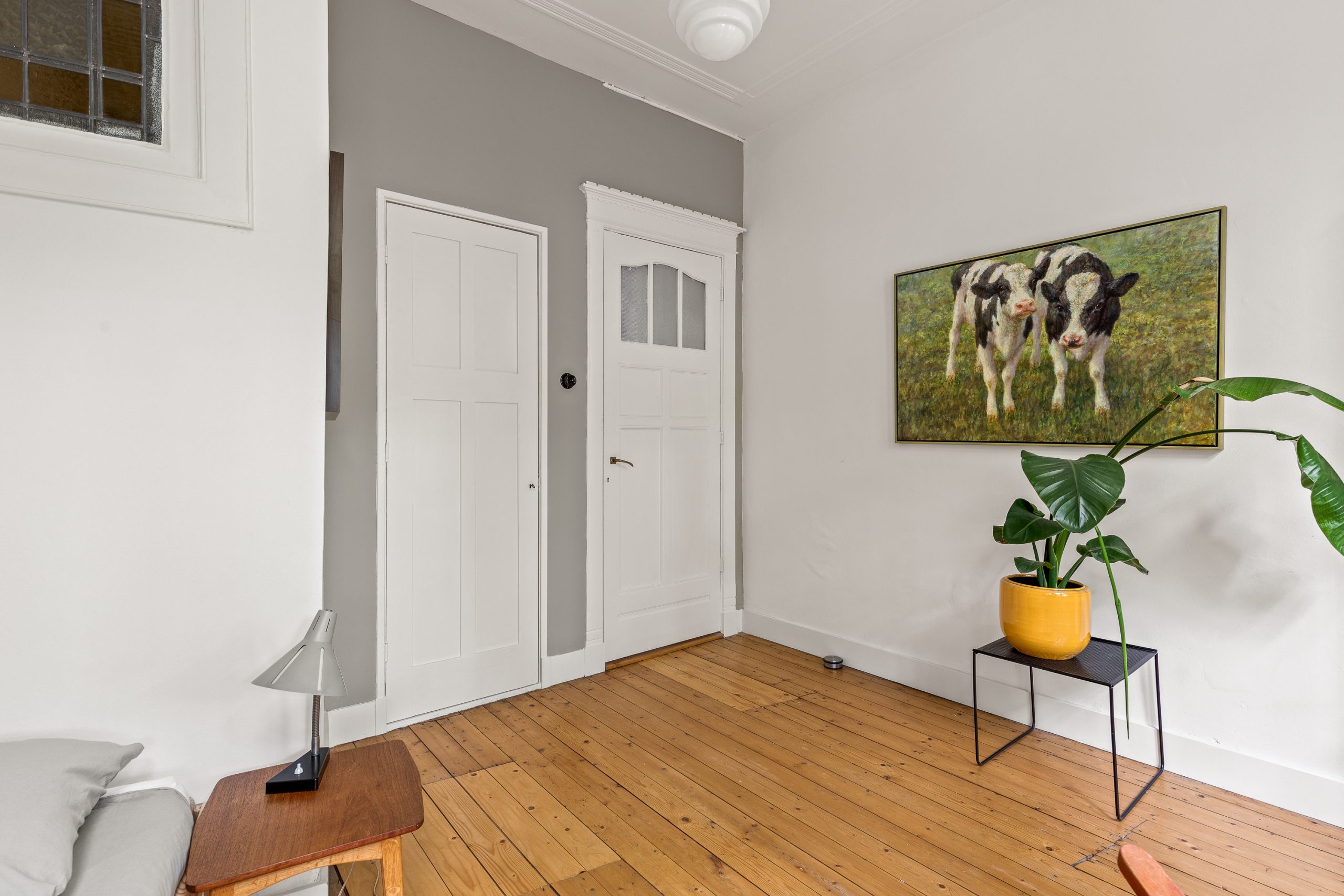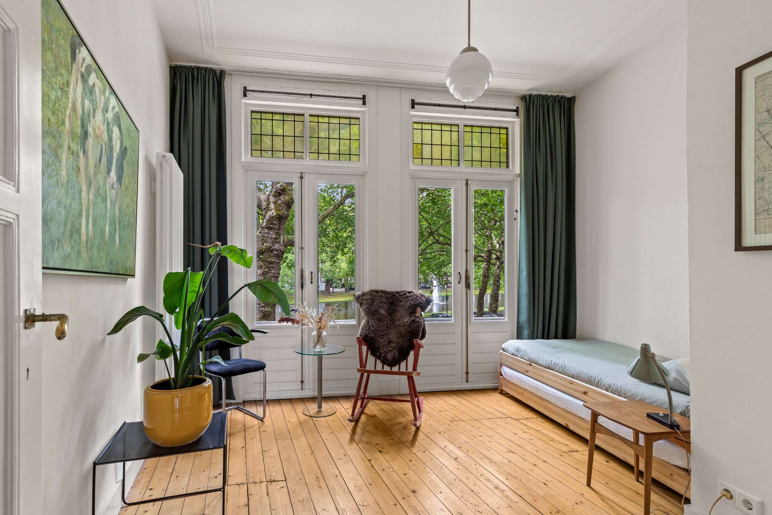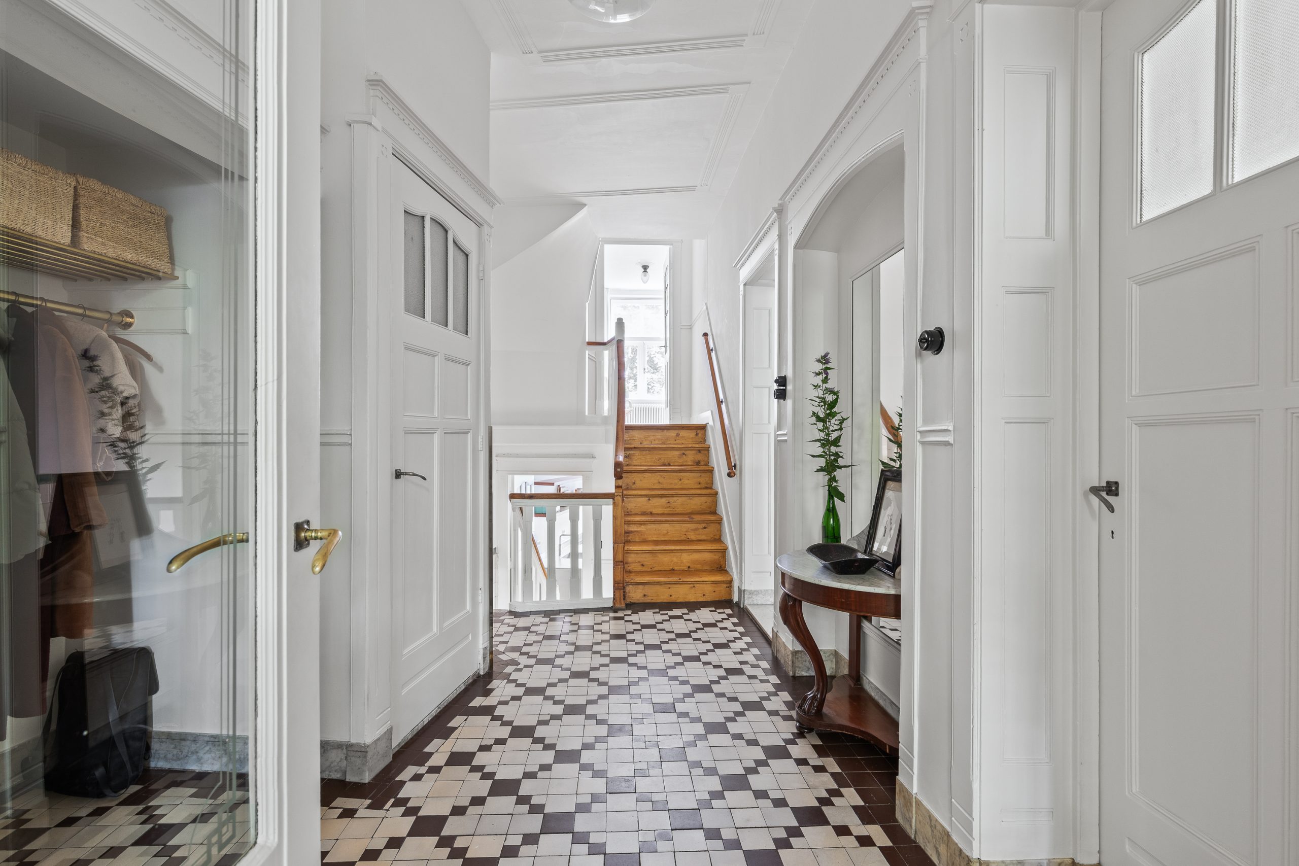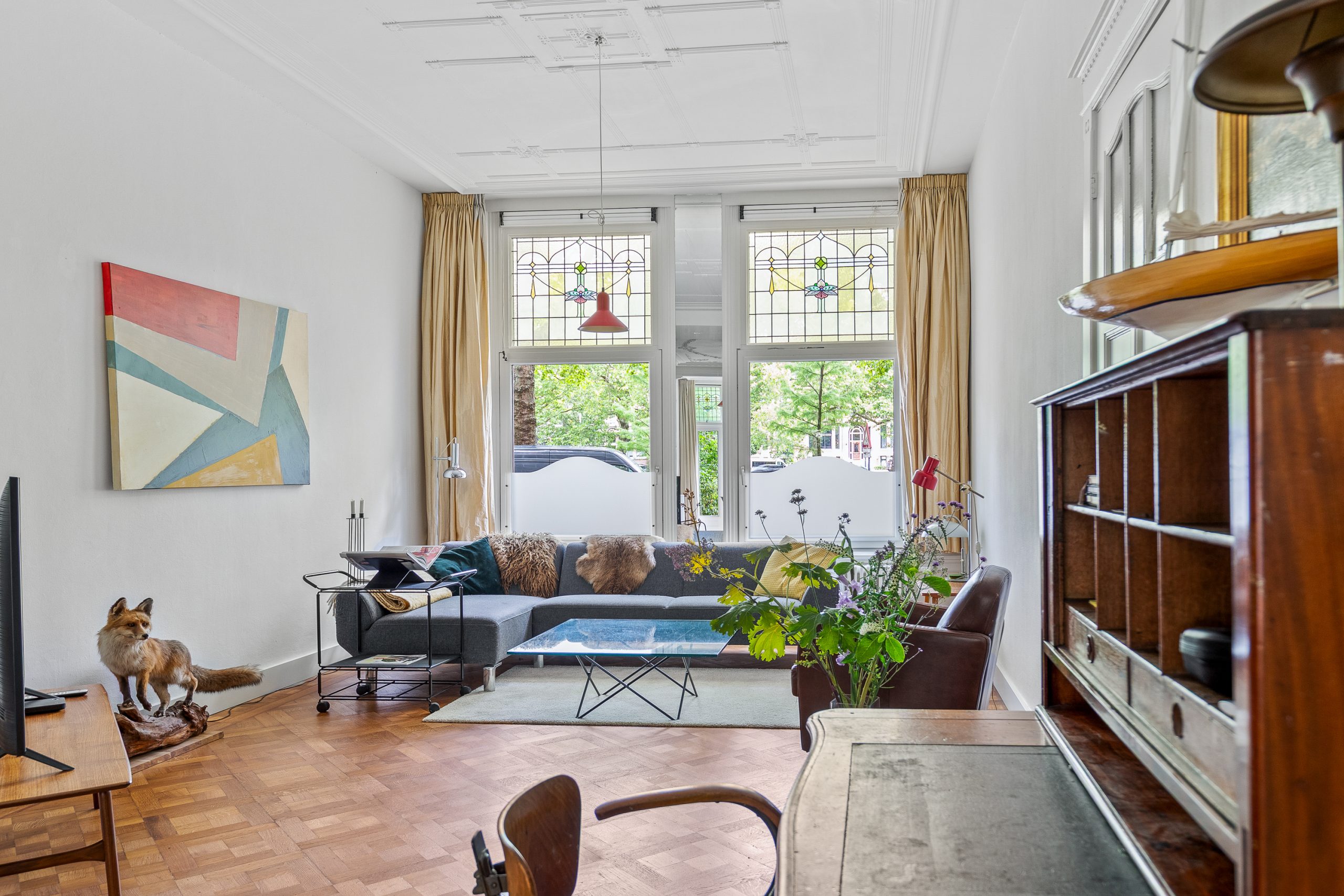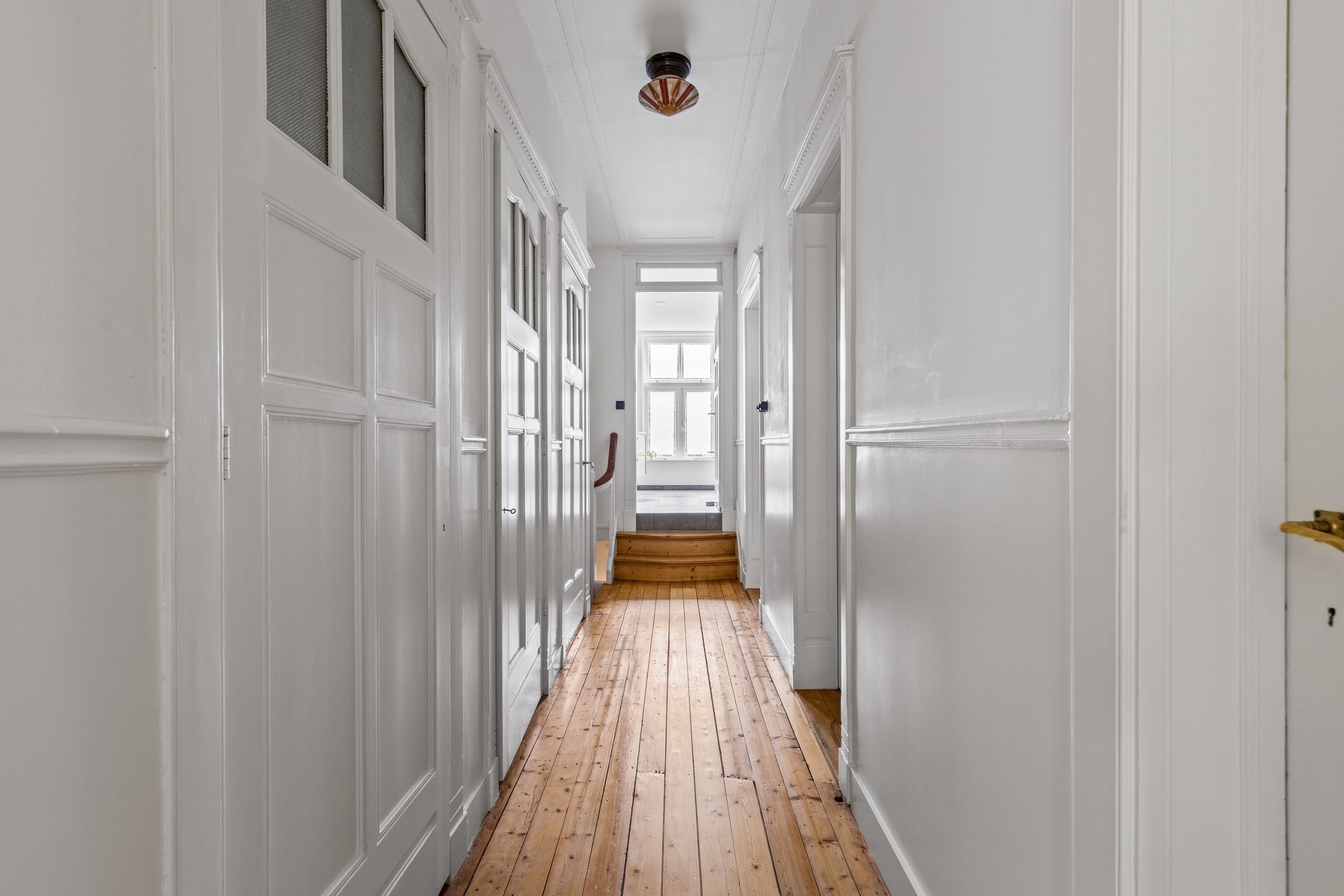 Prachtig betegelde entree/hal met separaat toilet, vaste kast en toegang tot het woongedeelte van maar liefst 15 m lang! Het woongedeelte aan de voorzijde is zeer ruim te noemen. Door de grote raampartijen in combinatie met het hoge plafond treedt er veel licht de woning binnen wat zorgt voor een lichte, aangename sfeer. Het eetgedeelte ligt aan de achterzijde. Middels de openslaande deuren betreed je via een kleine trap de heerlijke tuin van 67 m2! De tuin is een groene oase en uniek in hartje Rotterdam. De tuin is gesitueerd op het zonnige zuidoosten, waardoor er een groot gedeelte van de dag van de zon kan worden genoten. Door de gehele woning zijn prachtige originele details uit de jaren 10 terug te vinden. Denk hierbij aan ornamentenplafonds, karakteristiek glas-in-lood en klassieke paneeldeuren. Deze authentieke details geven de woning een warme, statige uitstraling en benadrukken het charmante karakter van het pand.