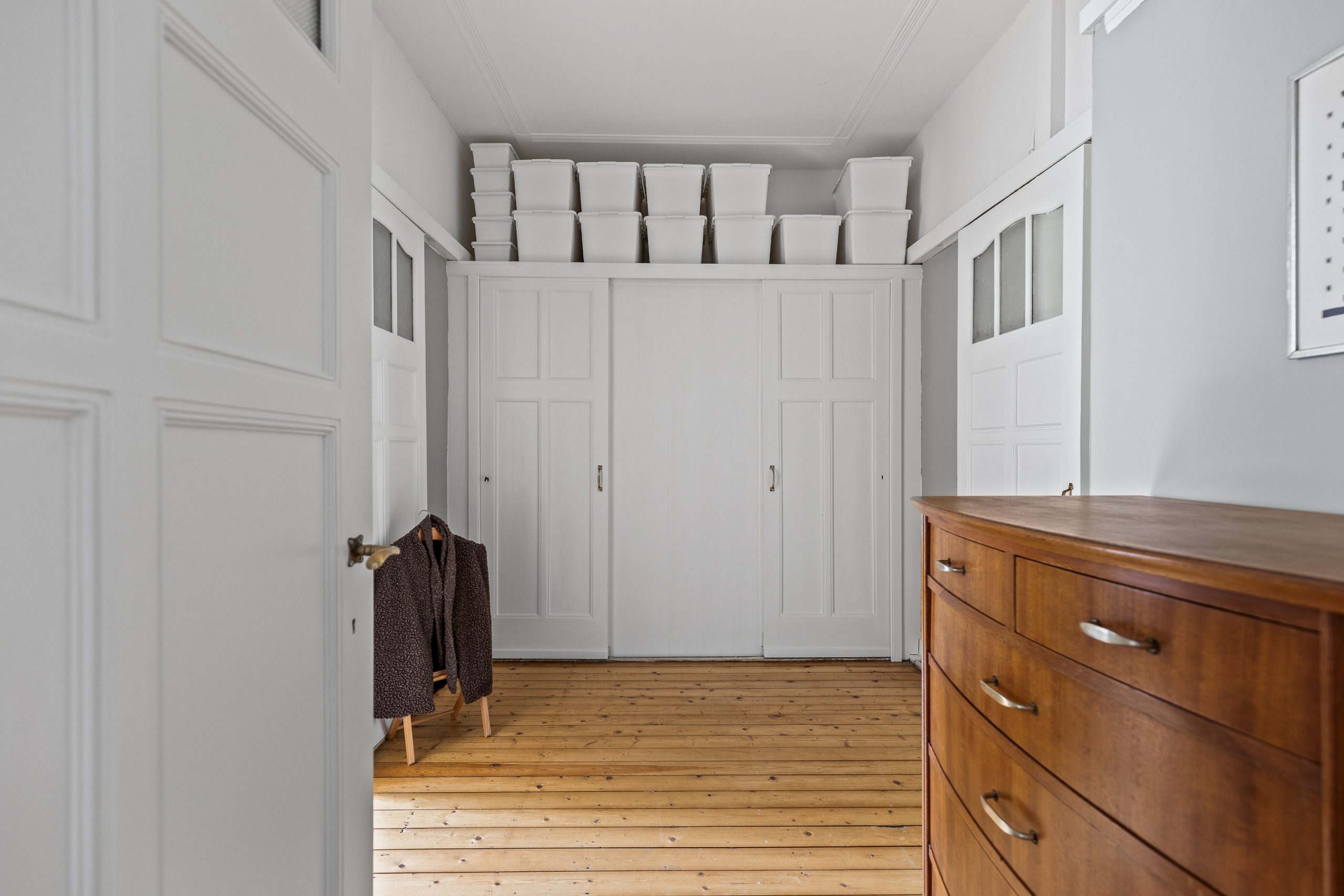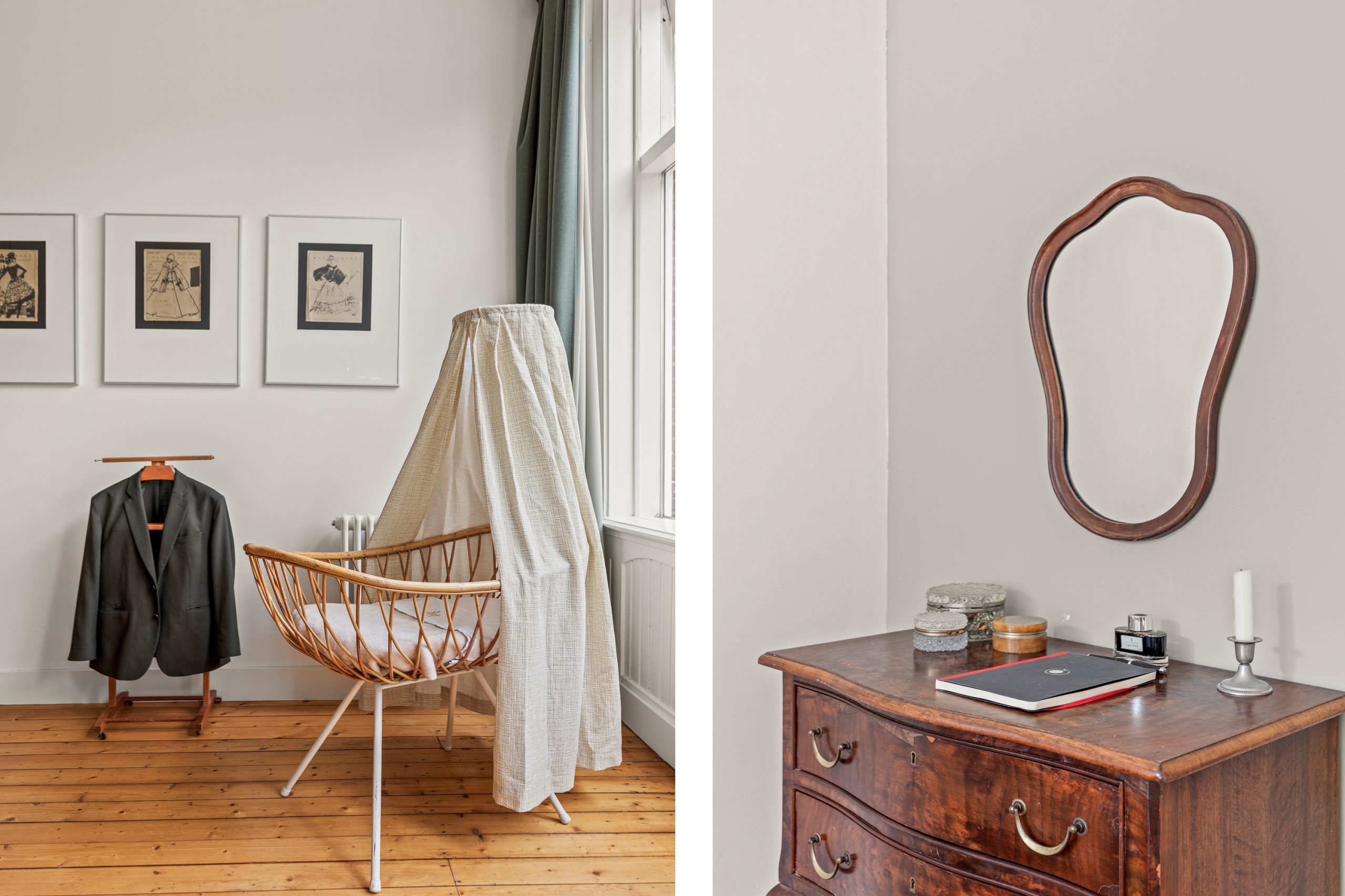 Overloop met toegang tot de slaapkamer met vaste kast. De 2e slaapkamer wordt nu gebruikt als kinderkamer, maar is multifunctioneel in te richten als bijvoorbeeld inloop-, slaap-, of werkkamer.