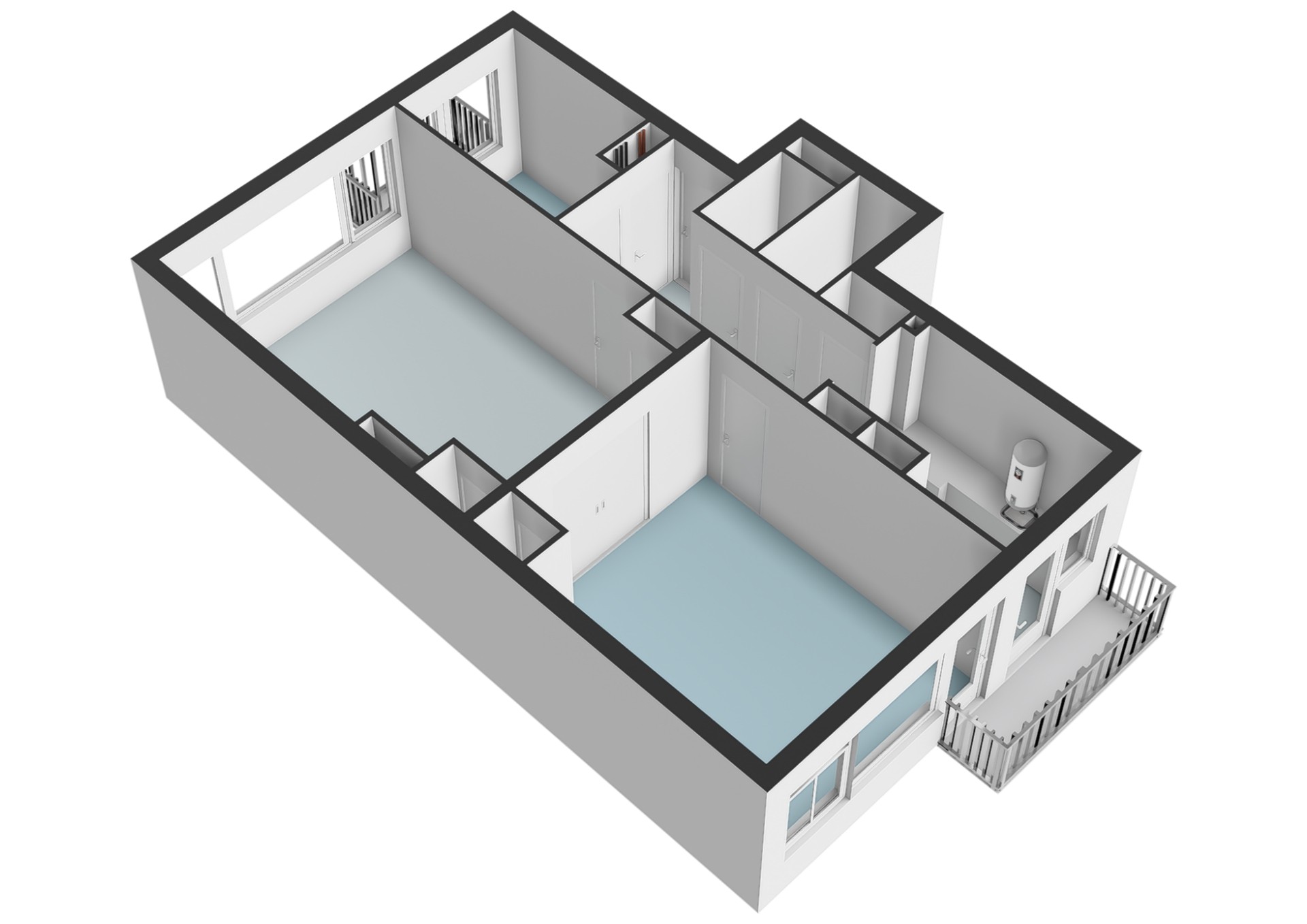 De hoofdslaapkamer met vaste kast is gelegen aan de achterzijde van de woning. Hier is meer dan voldoende ruimte voor een tweepersoonsbed en een riante kledingkast. Via deze kamer is het eerste balkon bereikbaar, gelegen op het zuiden, waar gedurende de dag heerlijk van de zon kan worden genoten. De tweede slaapkamer is multifunctioneel in te richten als werk-, kinder-, kasten- of slaapkamer en heeft toegang tot het tweede balkon aan de voorzijde, gelegen op het noorden. De woning beschikt over een praktische keuken met vaste kasten. Vanuit de keuken is eveneens het zonnige balkon op het zuiden bereikbaar. De volledig betegelde badkamer beschikt over een douche en wastafel.