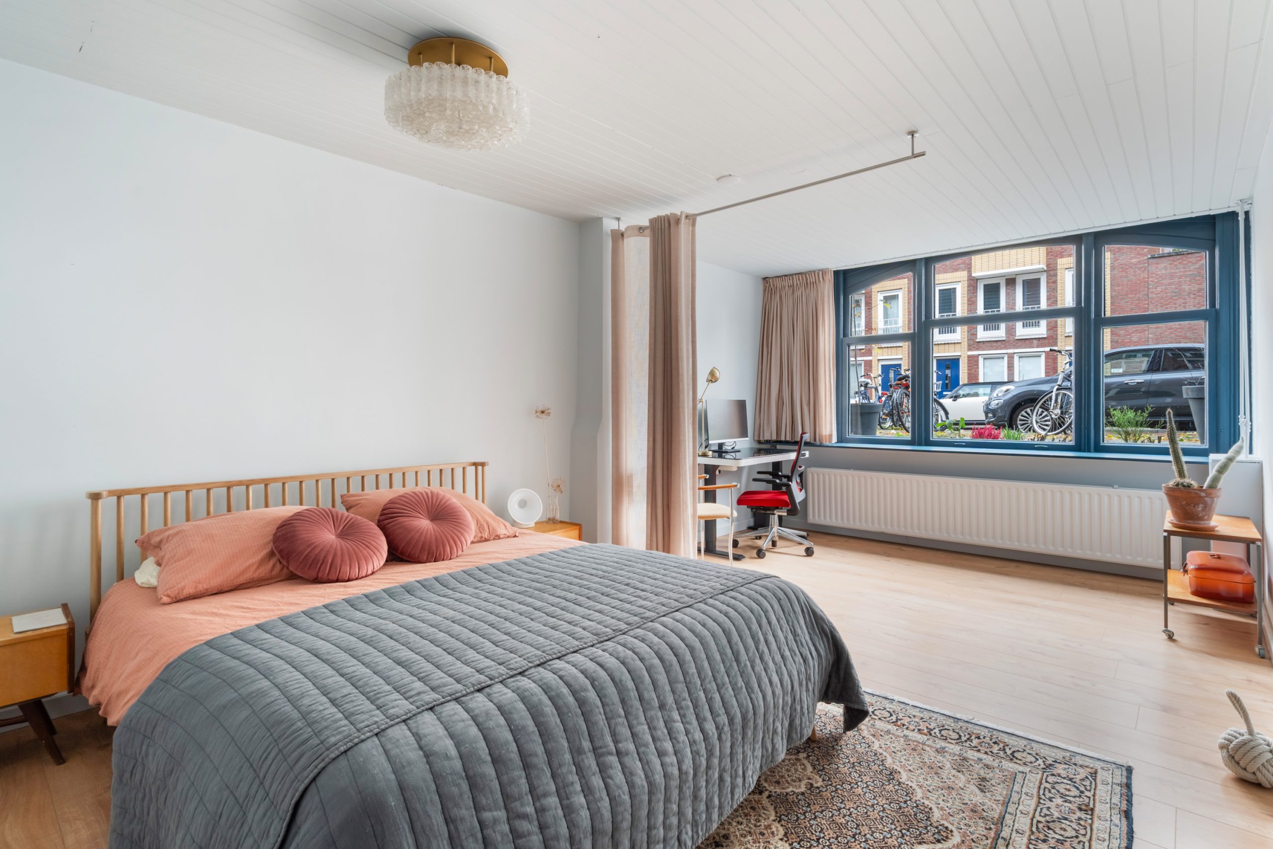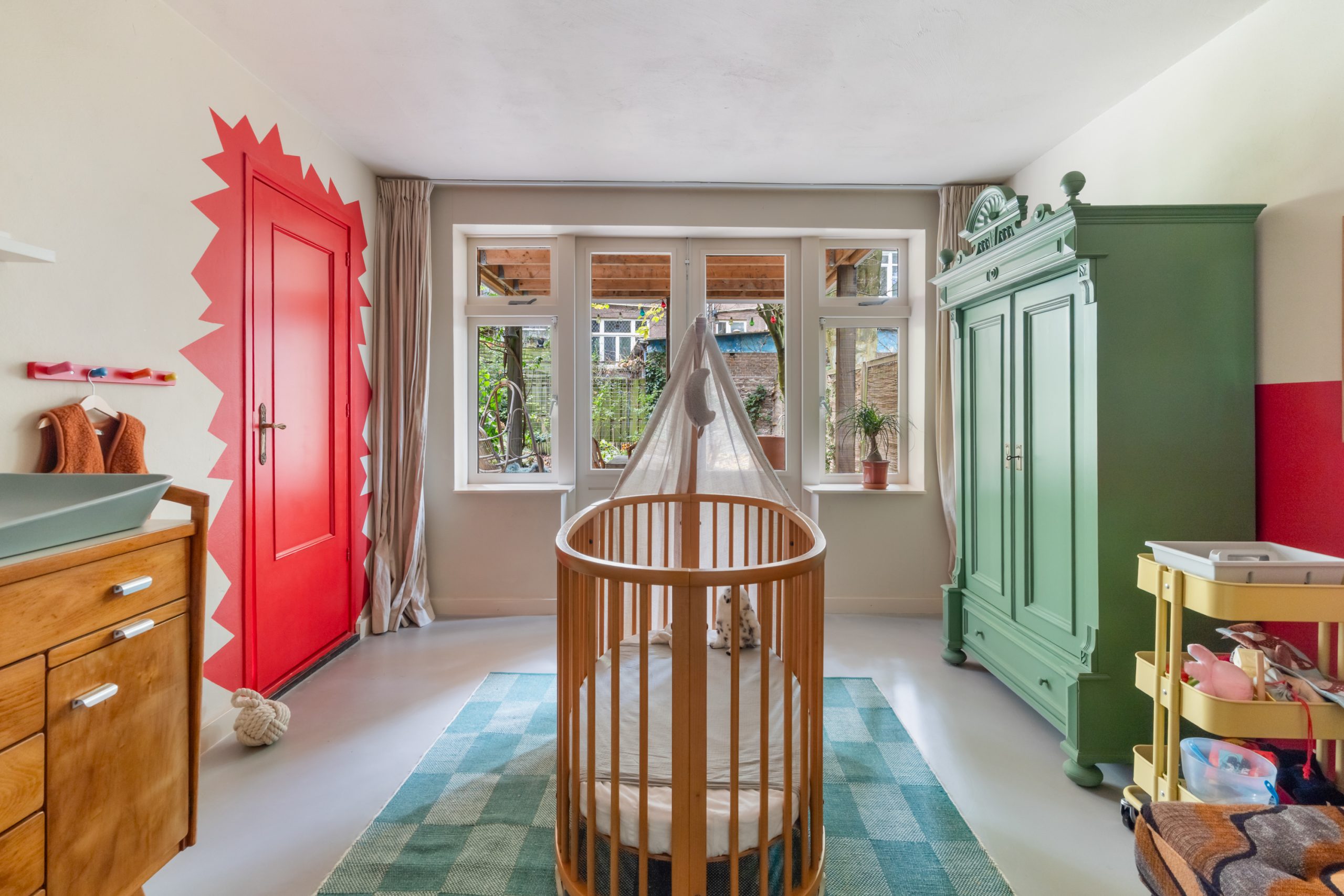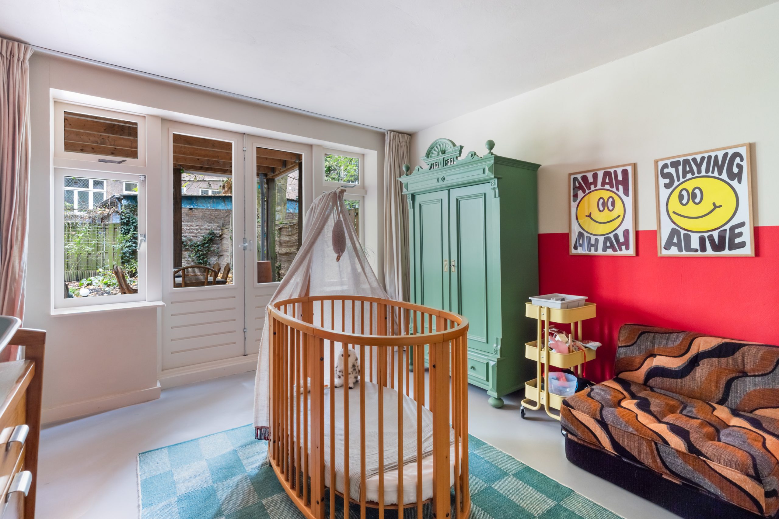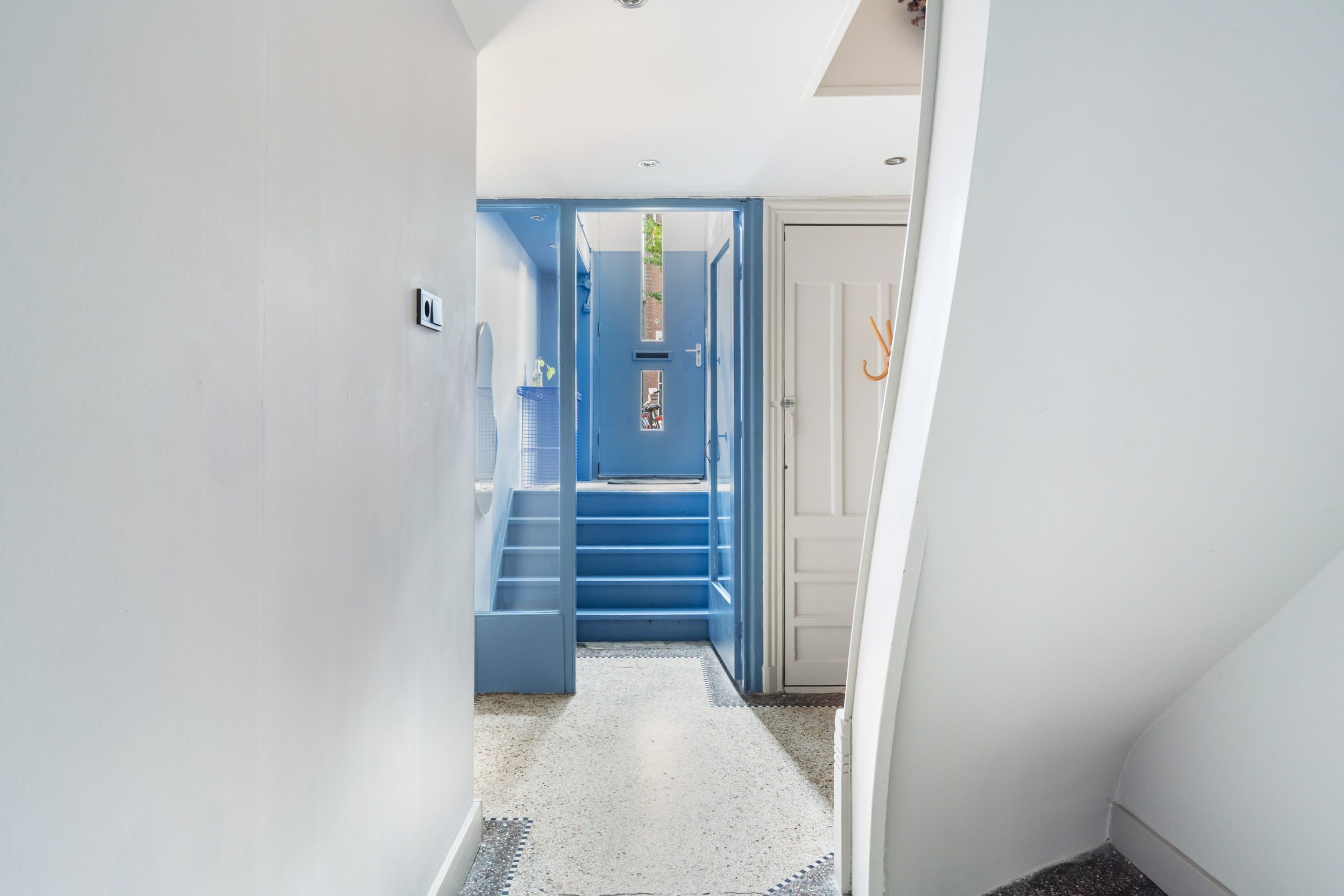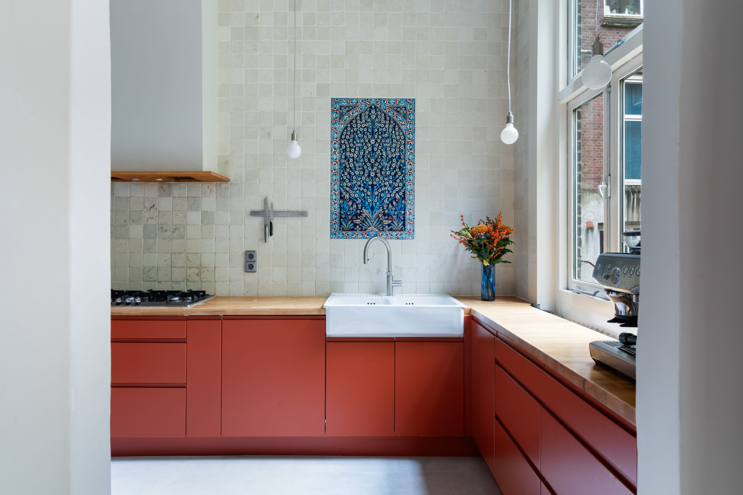 Karakteristieke overloop met een open verbinding naar de woonkamer, separaat toilet, vaste kast (CV-opstelling) en toegang tot alle vertrekken. De authentieke en brede woon-/eetkamer heeft een lengte van maar liefst 13 meter en een royale hoogte van meer dan 3 meter! De originele jaren ’10-details, zoals prachtige ornamenten, glas-in-loodramen en paneeldeuren, schouw, geven de woning een sfeervol karakter. Door de grote raampartijen aan beide zijde van de woning treedt ere veel natuurlijk licht de woning binnen wat zorgt voor een fijne, lichte sfeer. Het zitgedeelte is gelegen aan de voorzijde van de woning. Hier kan je een heerlijke zithoek creeren. Het eetgedeelte is gelegen aan de achterzijde. Via openslaande ramen bereik je het balkon, gelegen op het zuidwesten. Via het eetgedeelte bereik je via een organische doorgang de moderne keuken. De keuken berschikt over diverse soorten inbouwapparatuur zoals een 5-pits gasfornuis met afzuigkap, oven, vaatwasser en een quoocker.