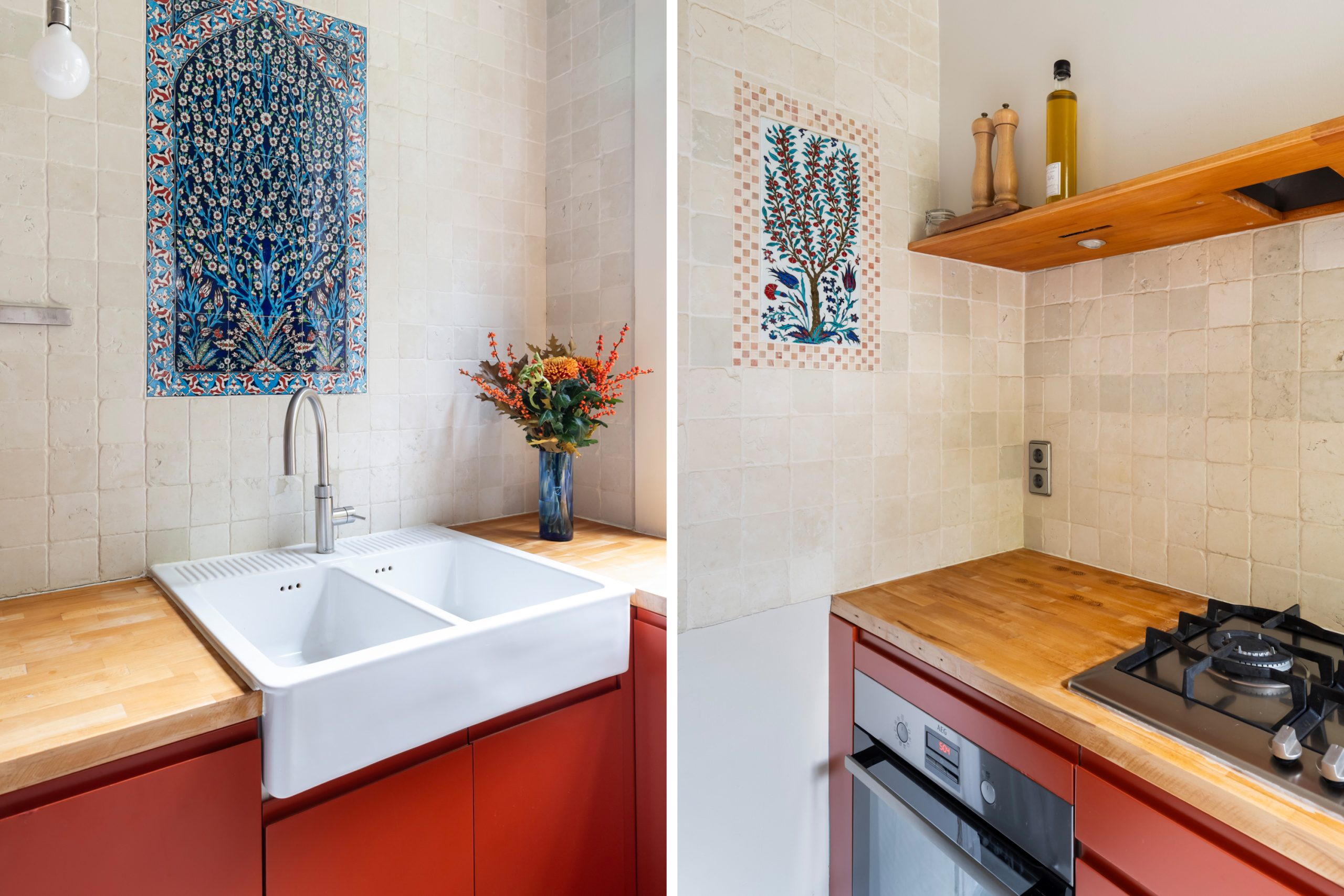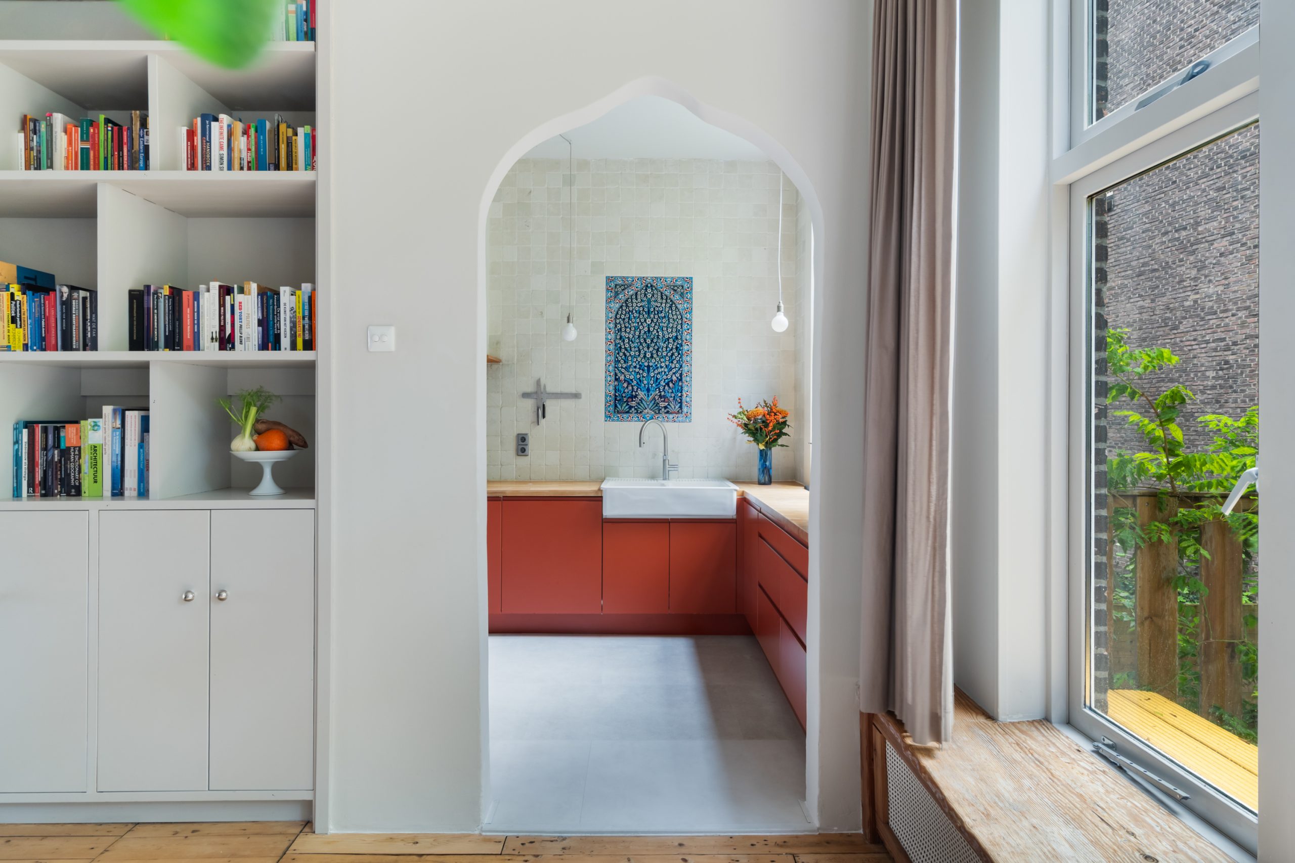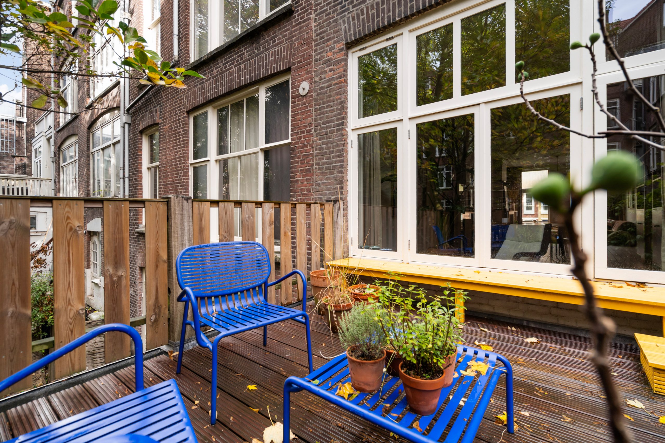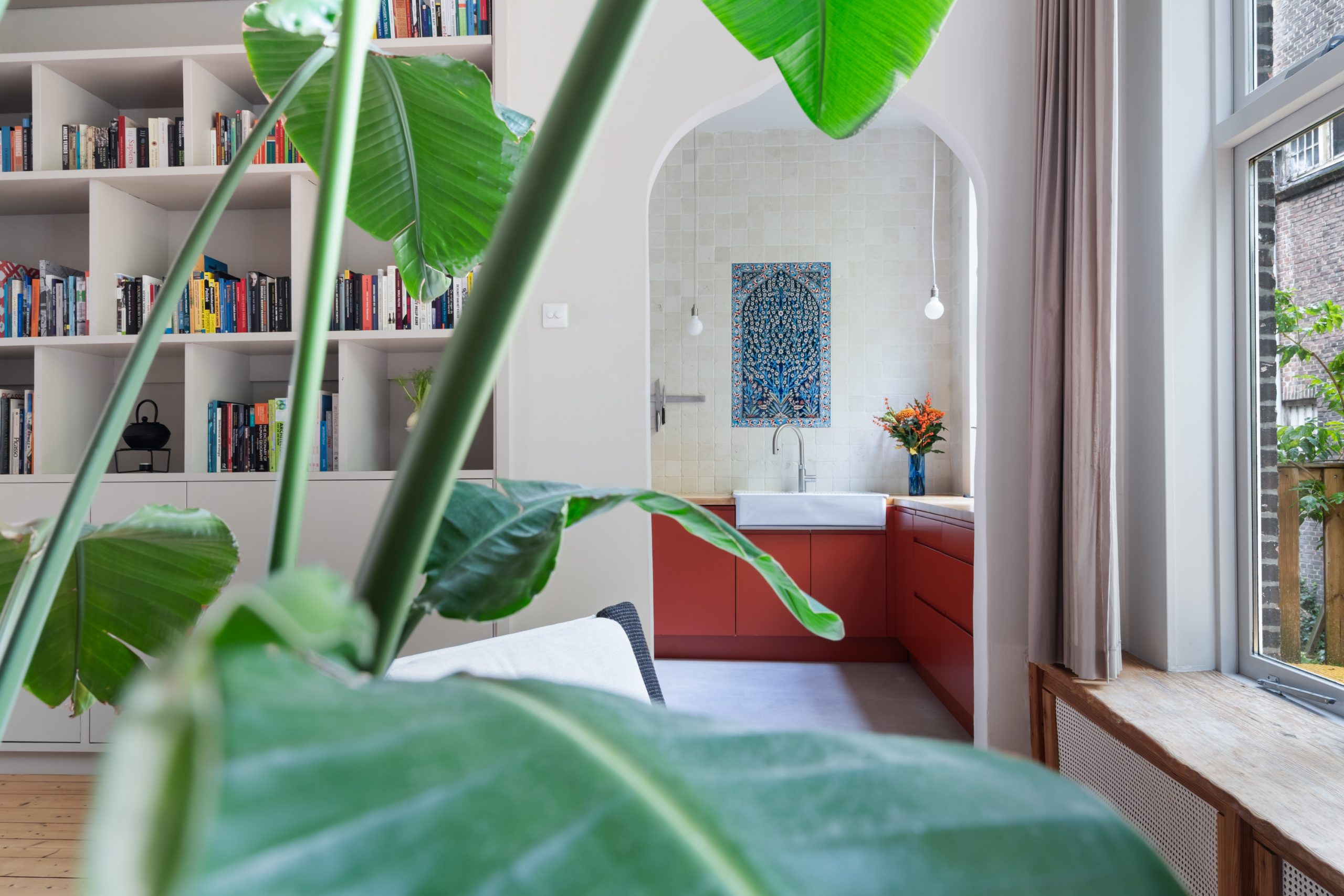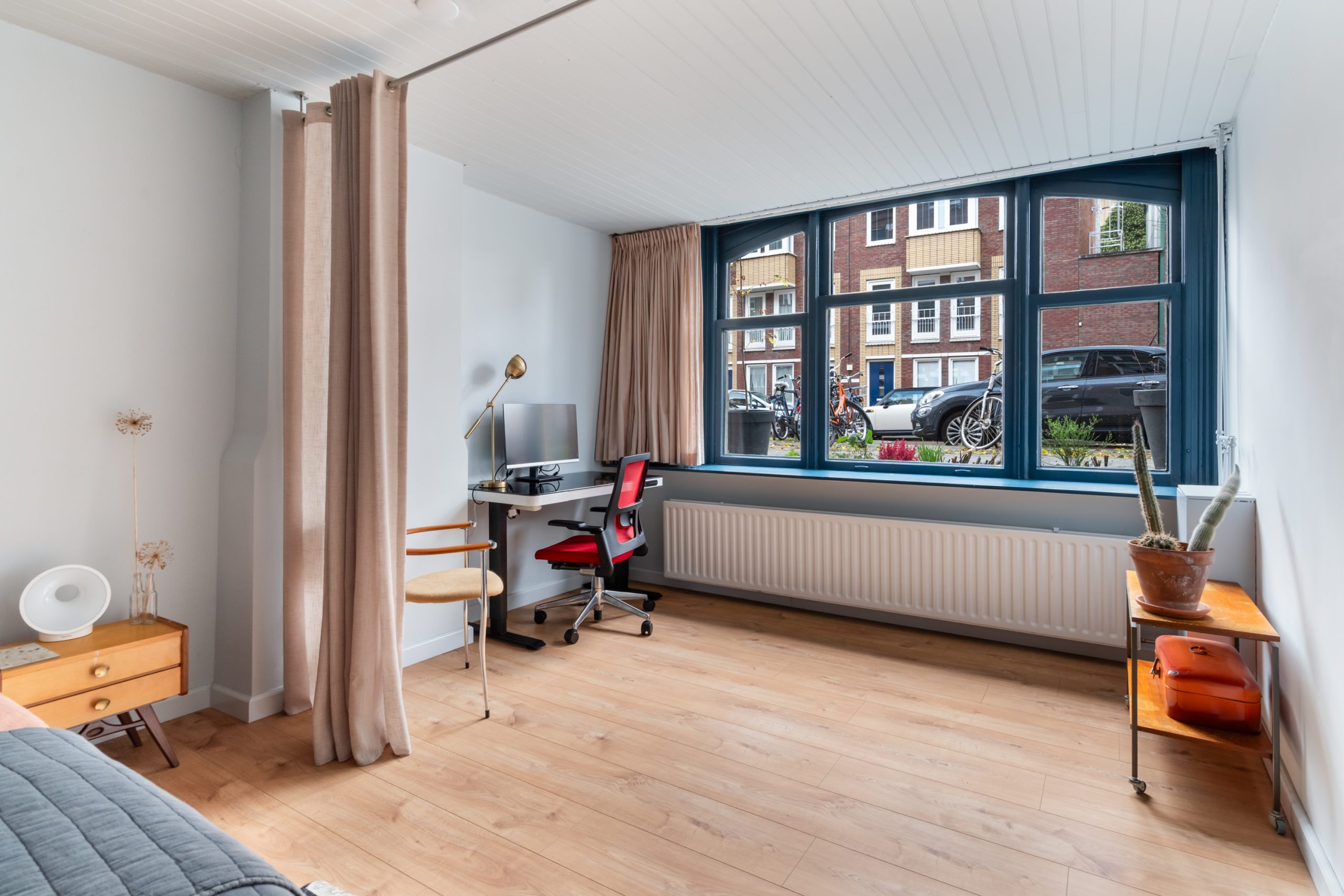 Karakteristieke overloop met een open verbinding naar de woonkamer, separaat toilet, vaste kast (CV-opstelling) en toegang tot alle vertrekken. De authentieke en brede woon-/eetkamer heeft een lengte van maar liefst 13 meter en een royale hoogte van meer dan 3 meter! De originele jaren ’10-details, zoals prachtige ornamenten, glas-in-loodramen en paneeldeuren, schouw, geven de woning een sfeervol karakter. Door de grote raampartijen aan beide zijde van de woning treedt ere veel natuurlijk licht de woning binnen wat zorgt voor een fijne, lichte sfeer. Het zitgedeelte is gelegen aan de voorzijde van de woning. Hier kan je een heerlijke zithoek creeren. Het eetgedeelte is gelegen aan de achterzijde. Via openslaande ramen bereik je het balkon, gelegen op het zuidwesten. Via het eetgedeelte bereik je via een organische doorgang de moderne keuken. De keuken berschikt over diverse soorten inbouwapparatuur zoals een 5-pits gasfornuis met afzuigkap, oven, vaatwasser en een quoocker.