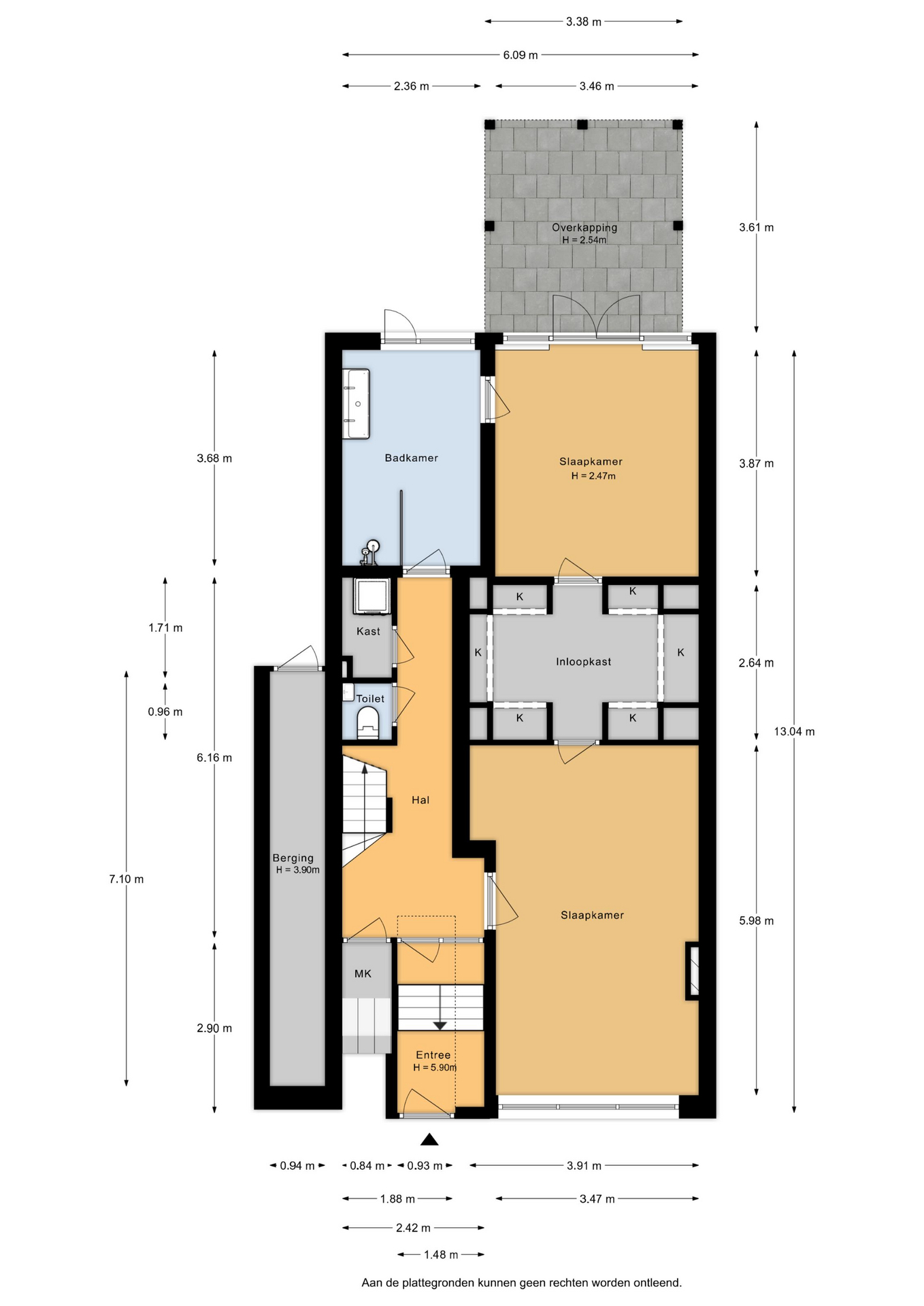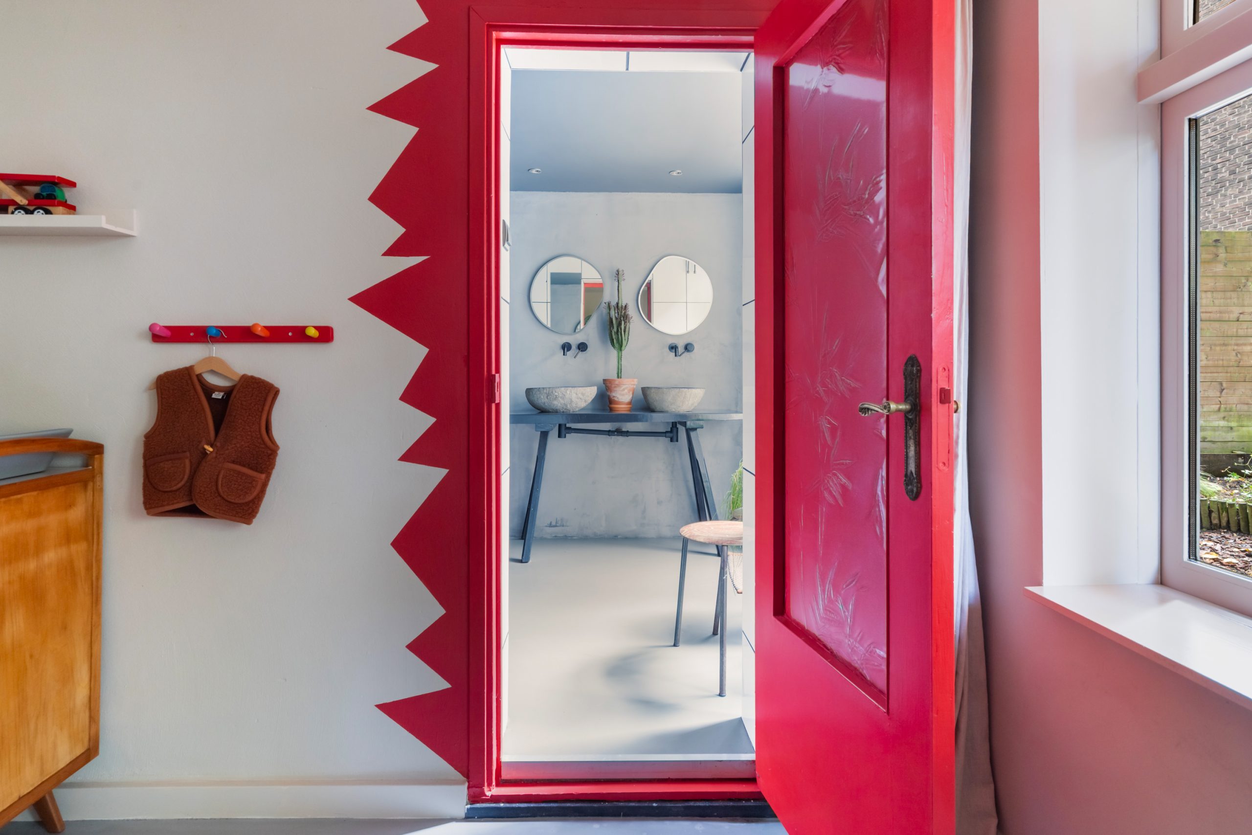 Entree met tochtportaal, separaat toilet, vaste kast (wasmachineaansluiting) en toegang tot de slaapkamer, badkamer.