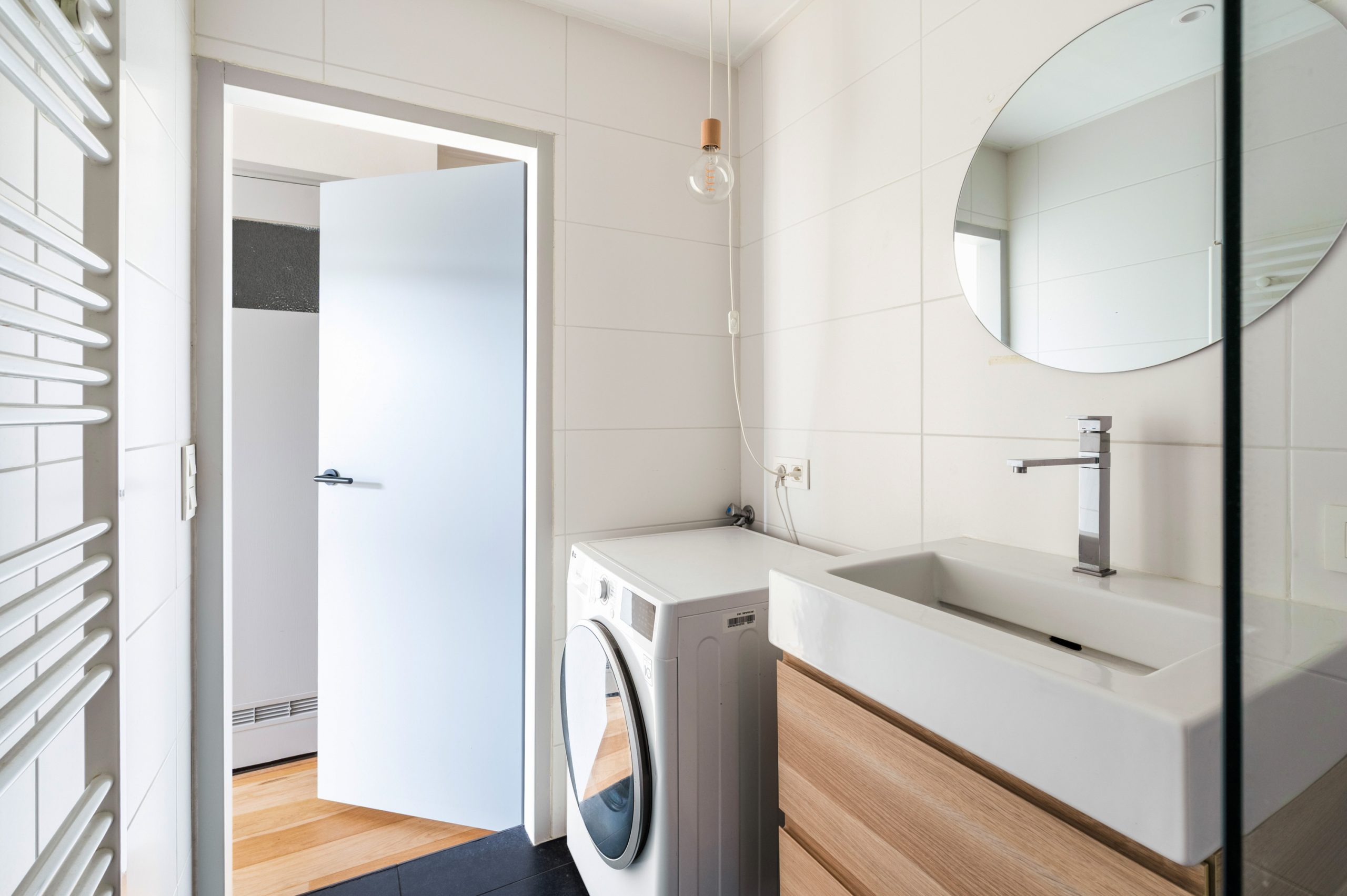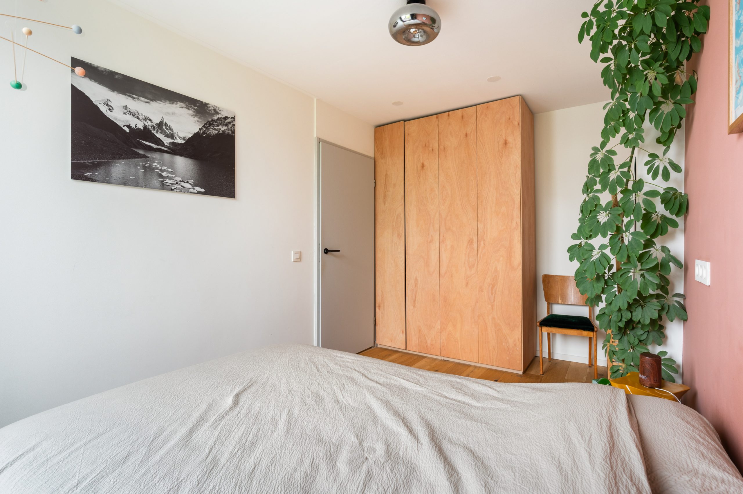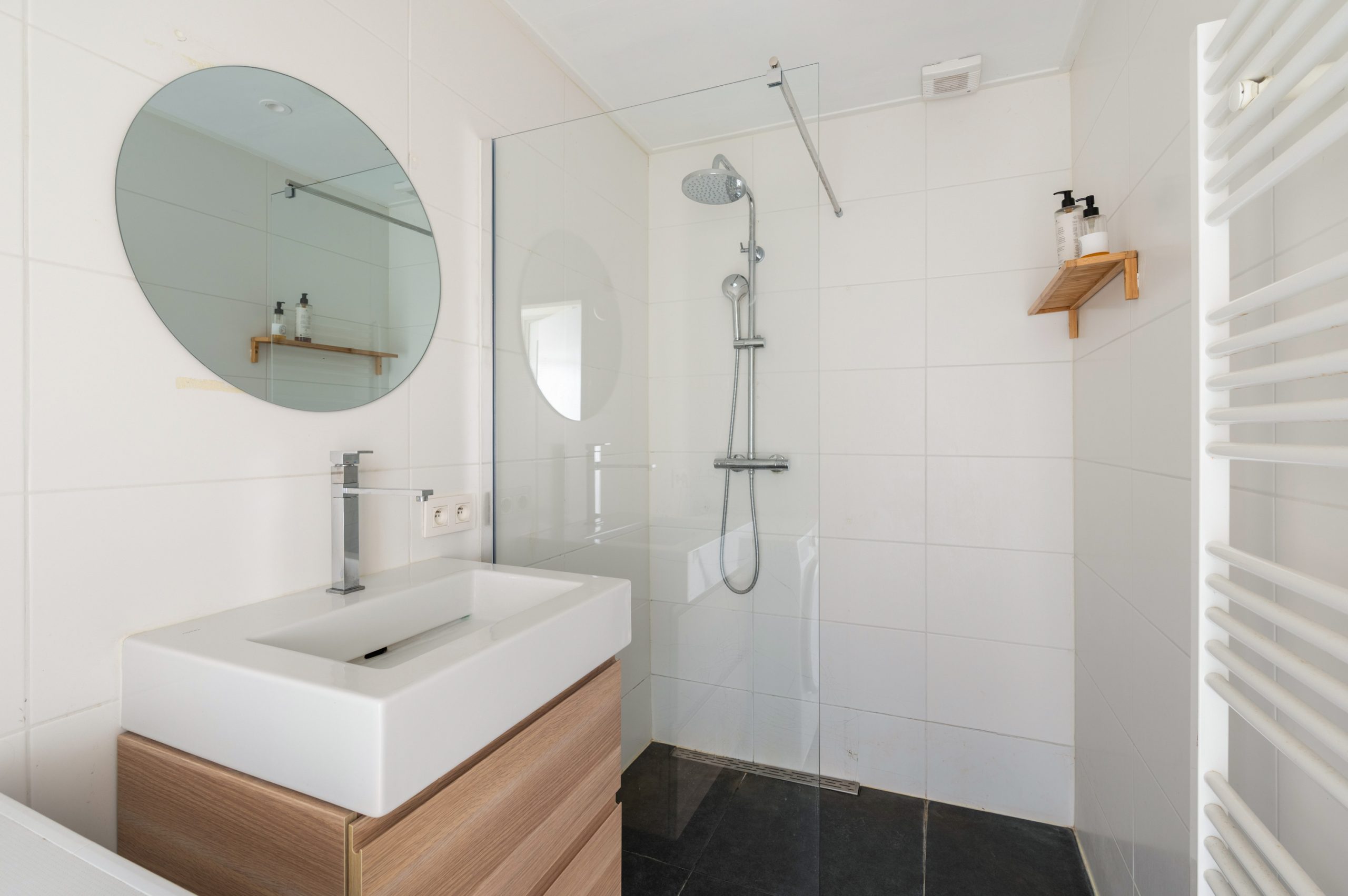 Entree met vaste kast, meterkast, separaat toilet en toegang tot alle vertrekken op deze verdieping. De ruime L-vormige woonkamer is gelegen aan de voorzijde van de woning. Dankzij de L-vormige woonkamer zijn het zit- en eetgedeelte op een natuurlijke manier van elkaar te scheiden. De woonkamer is voorzien van een erker, die extra licht binnenbrengt en de ruimte een ruimtelijk gevoel geeft. De master bedroom is gelegen aan de achterzijde van de woning. Dit is een erg lichte en ruime kamer. De moderne keuken met bar beschikt over diverse soorten inbouwapparatuur zoals een 4-pits gasfornuis met afzuiging, oven, vaatwasser, losse quoockerkraan en een koel-/vriescombinatie. Via de keuken bereik je het balkon, gelegen op het westen. Hier kan je heerlijk genieten van de middag- en avondzon. De badkamer ligt tussen de woonkamer en de slaapkamer in. Deze beschikt over een wasmachineaansluiting, inloop(regen)douche, handdoekradiator en een wastafel met meubel.
