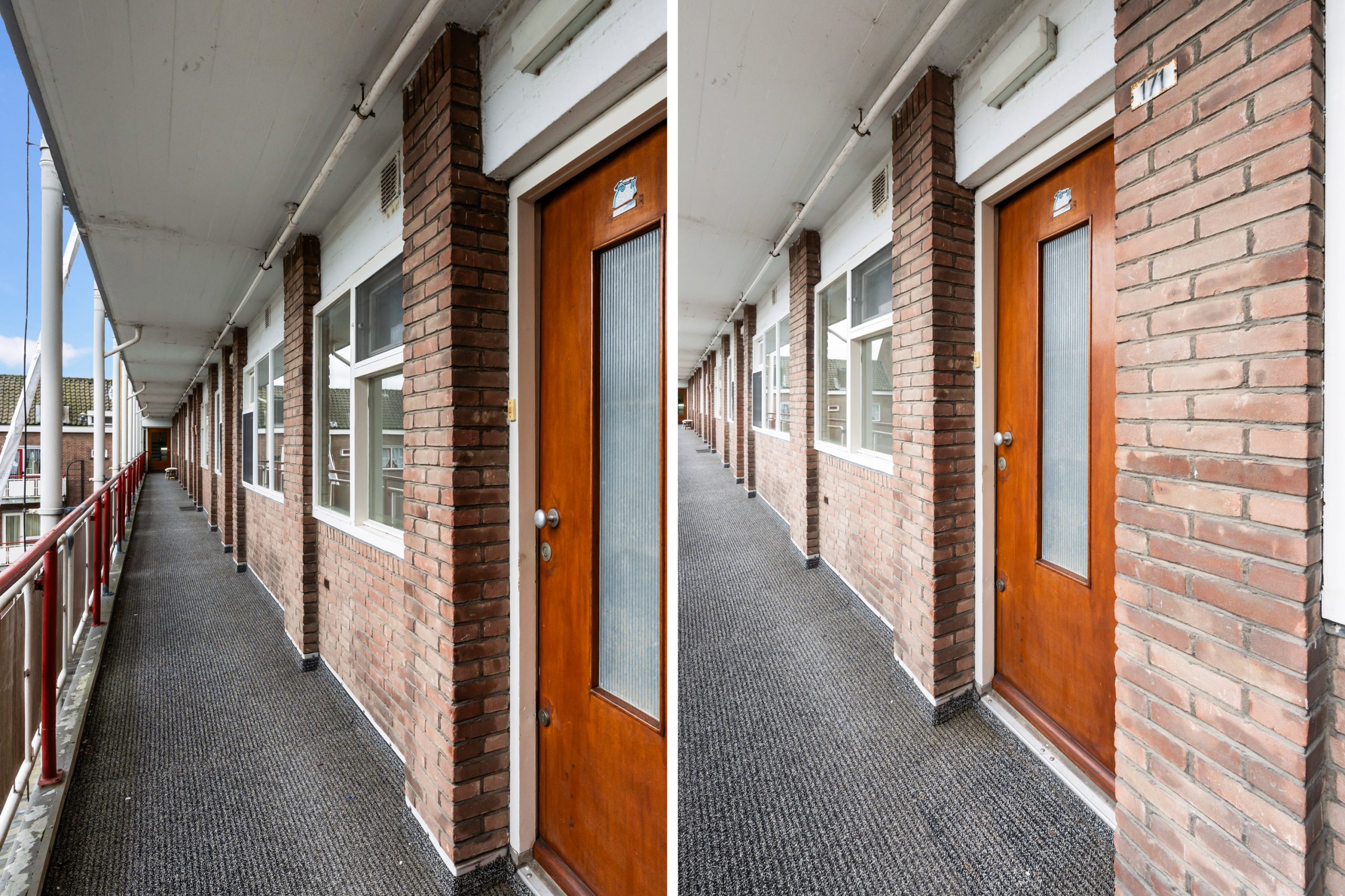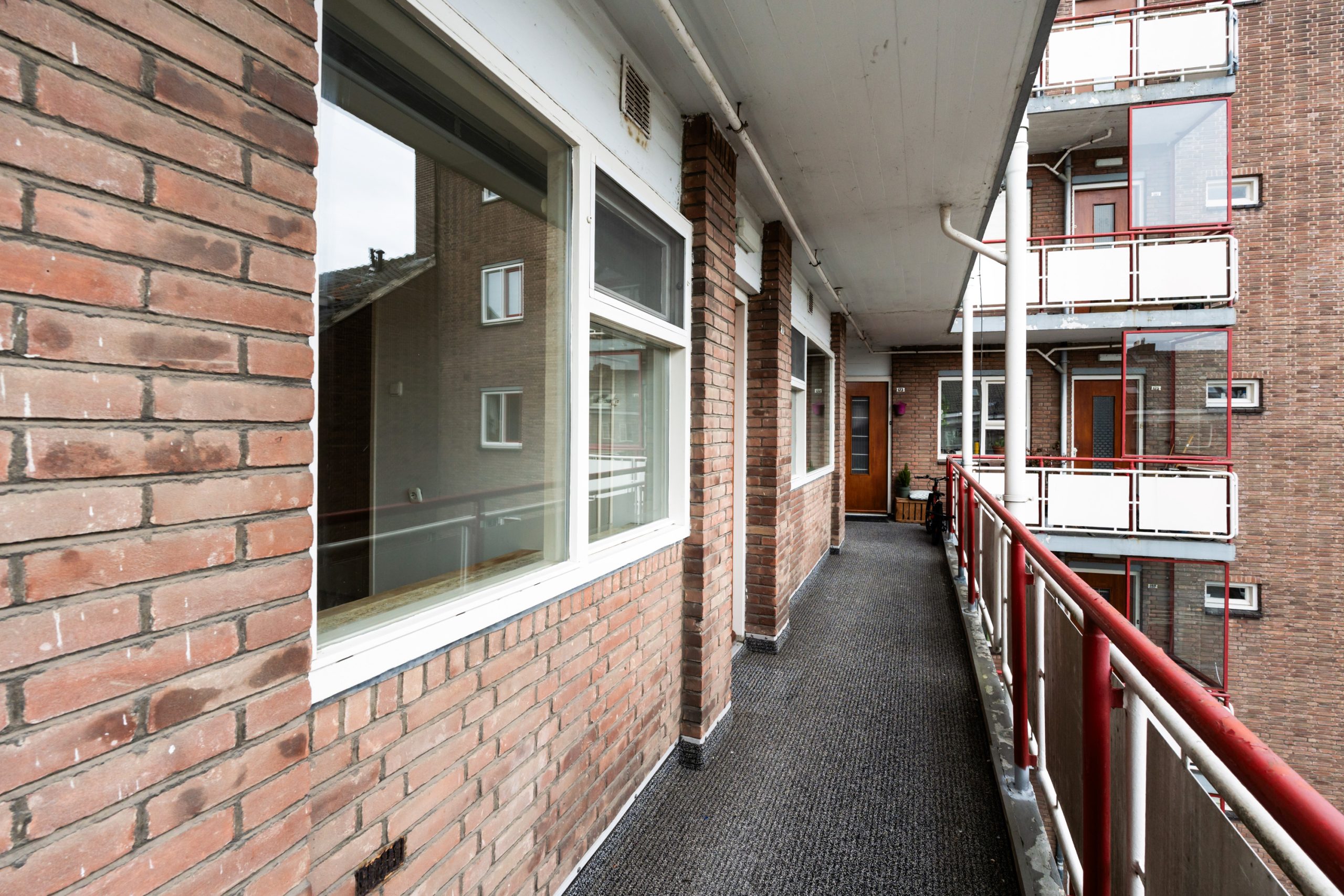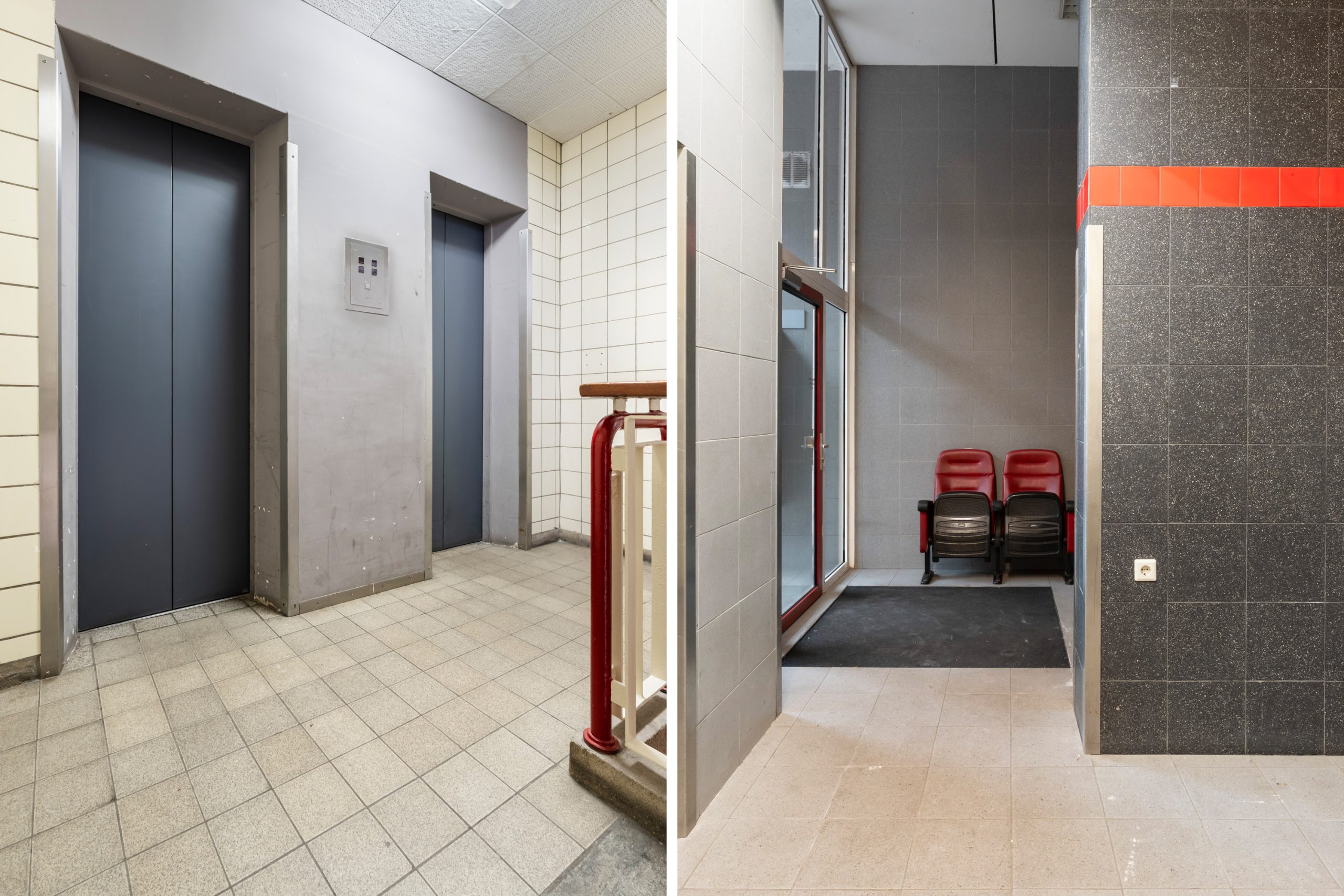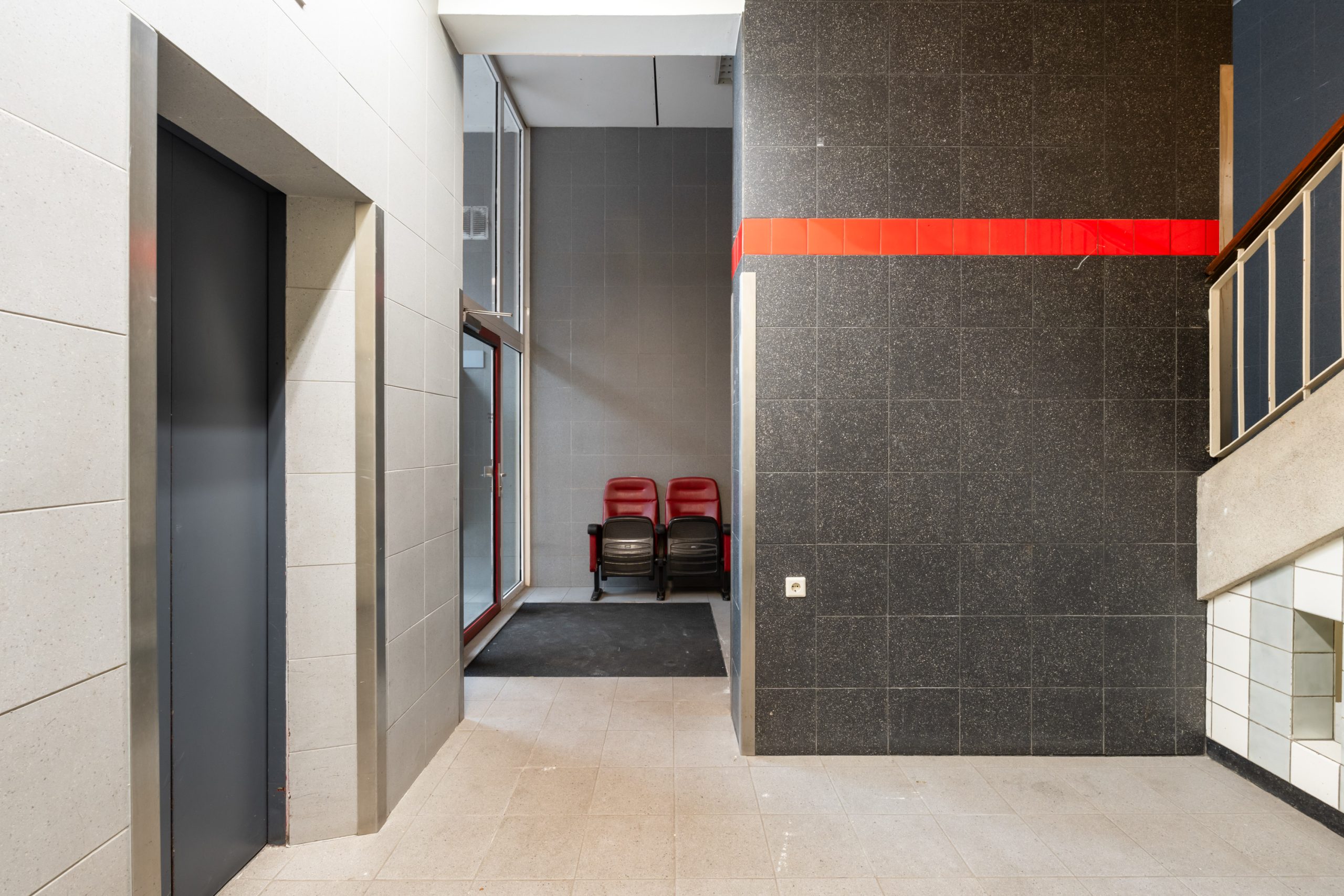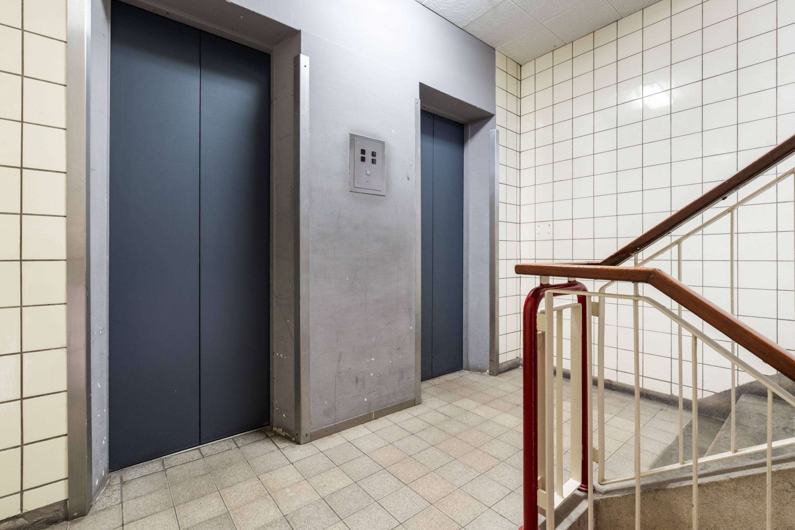 Afgesloten portiek met lift en trapopgang naar de 3e verdieping.