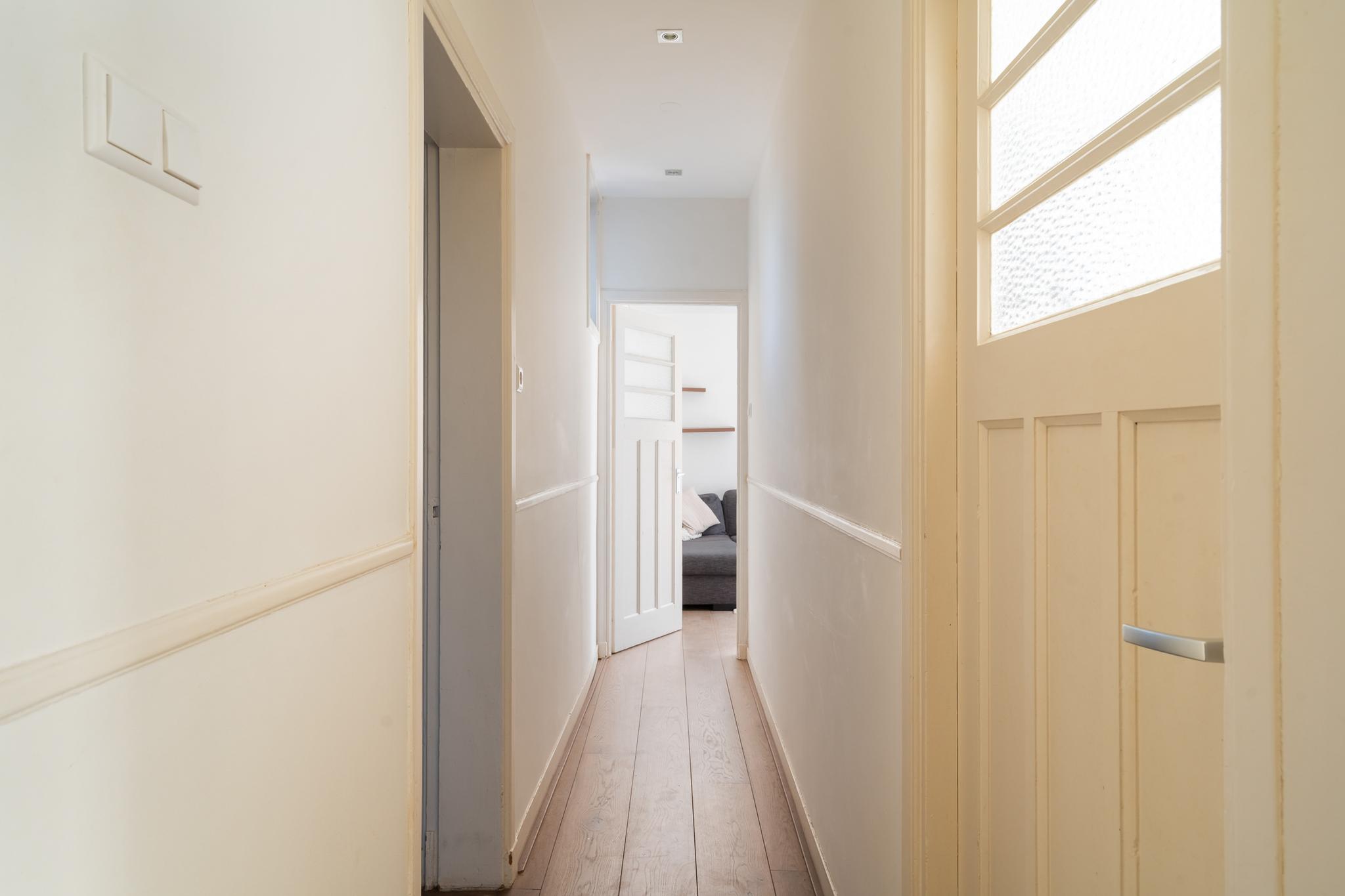 Ruime hal/entree met tochtportaal, toilet, vaste kast en toegang tot alle vertrekken. De royale woonkamer en suite beschikt over grote raampartijen, waardoor er veel natuurlijk licht de woning binnentreedt. Dit zorgt voor een aangename sfeer. De woonkamer en suite is multifunctioneel in te richten, zoals bijvoorbeeld een eetkamer of een ruime slaapkamer. De keuken met een vaste kast beschikt over diverse soorten inbouwapparatuur, zoals een 4-pits fornuis met afzuigkap en een vaatwasser. Via de keuken heb je toegang tot de buitenruimte, gelegen op het zuidoosten. De volledig betegelde badkamer beschikt over een douche en een wastafel. Via de trap met trap/meterkast betreed je de 1e verdieping.