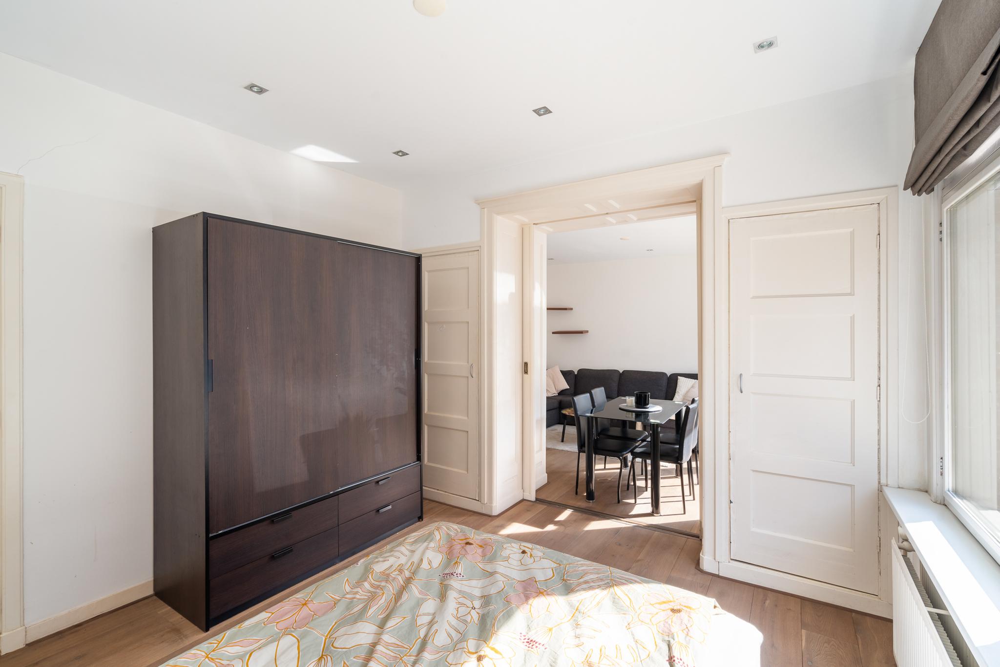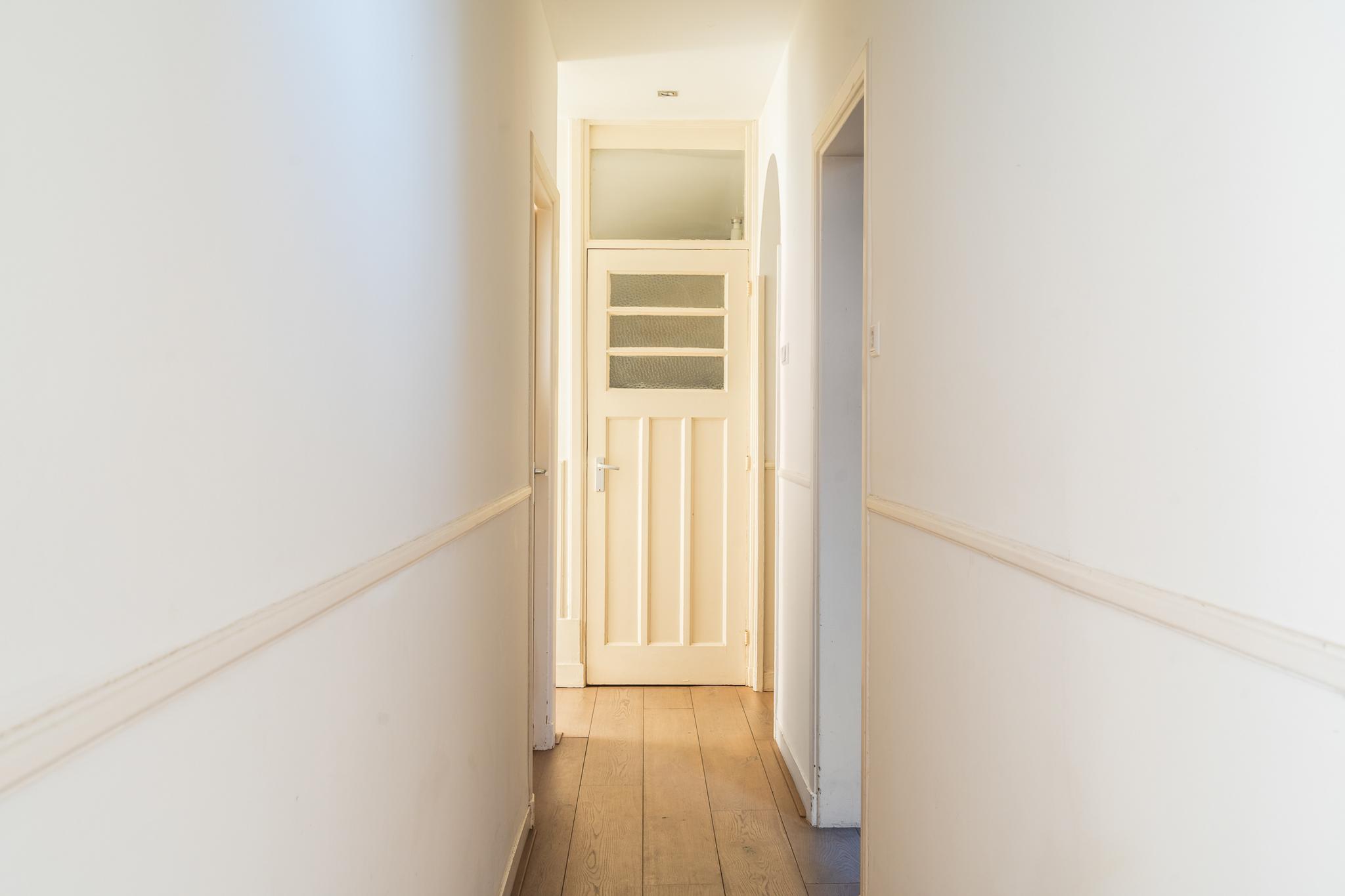 Overloop met toegang tot de master bedroom. De slaapkamer biedt voldoende plek voor een tweepersoonsbed en een royale kast. De slaapkamer heeft toegang tot het balkon op het zuidoosten. Er is tevens nog een extra bergruimte met wasaansluiting.