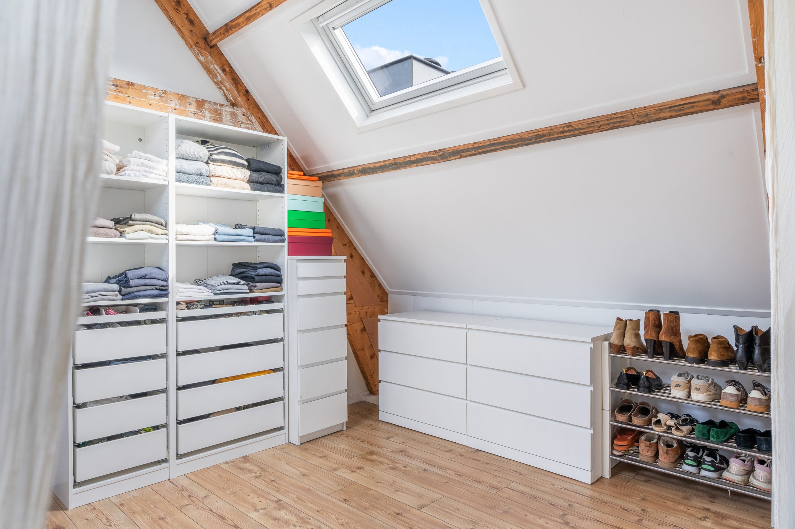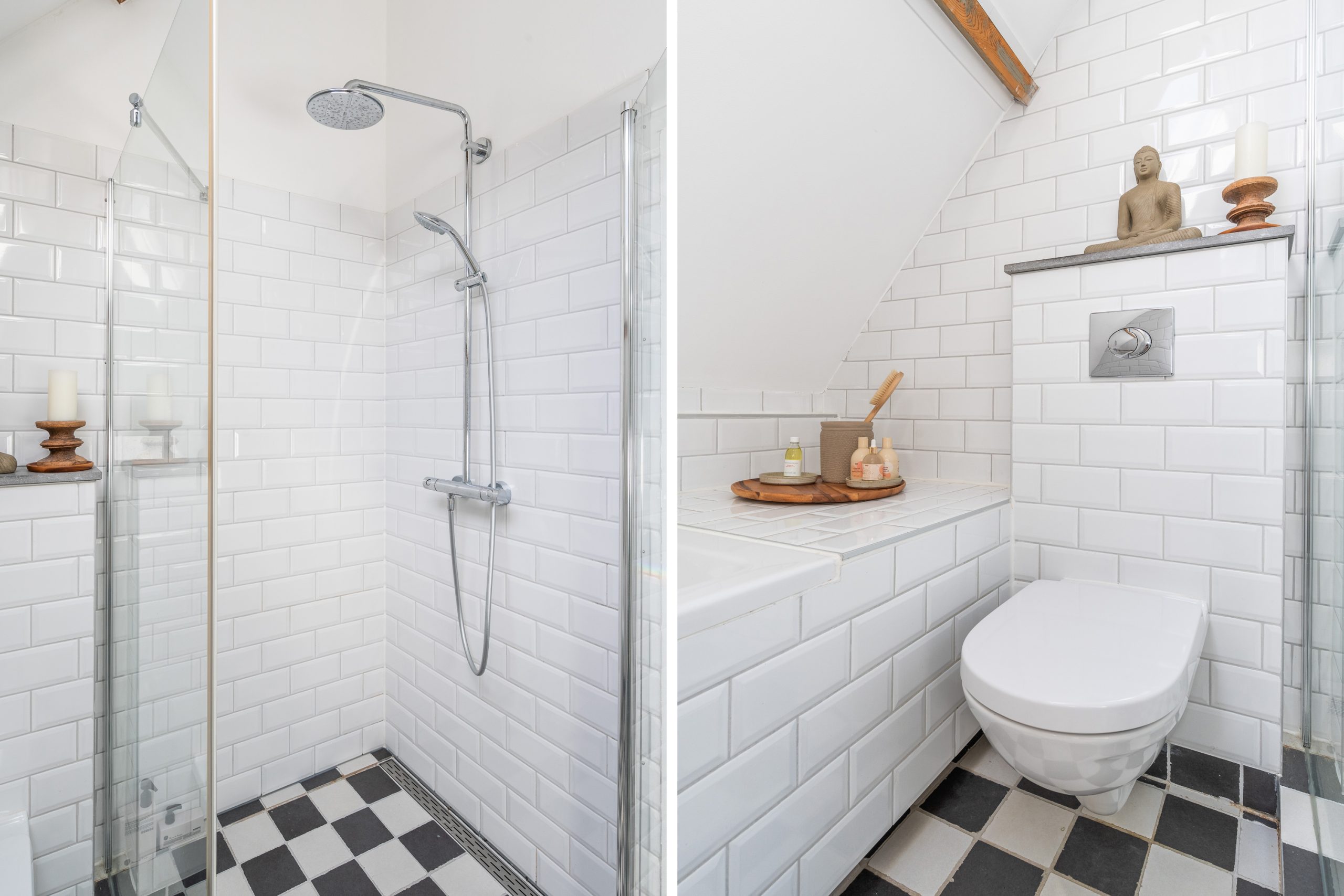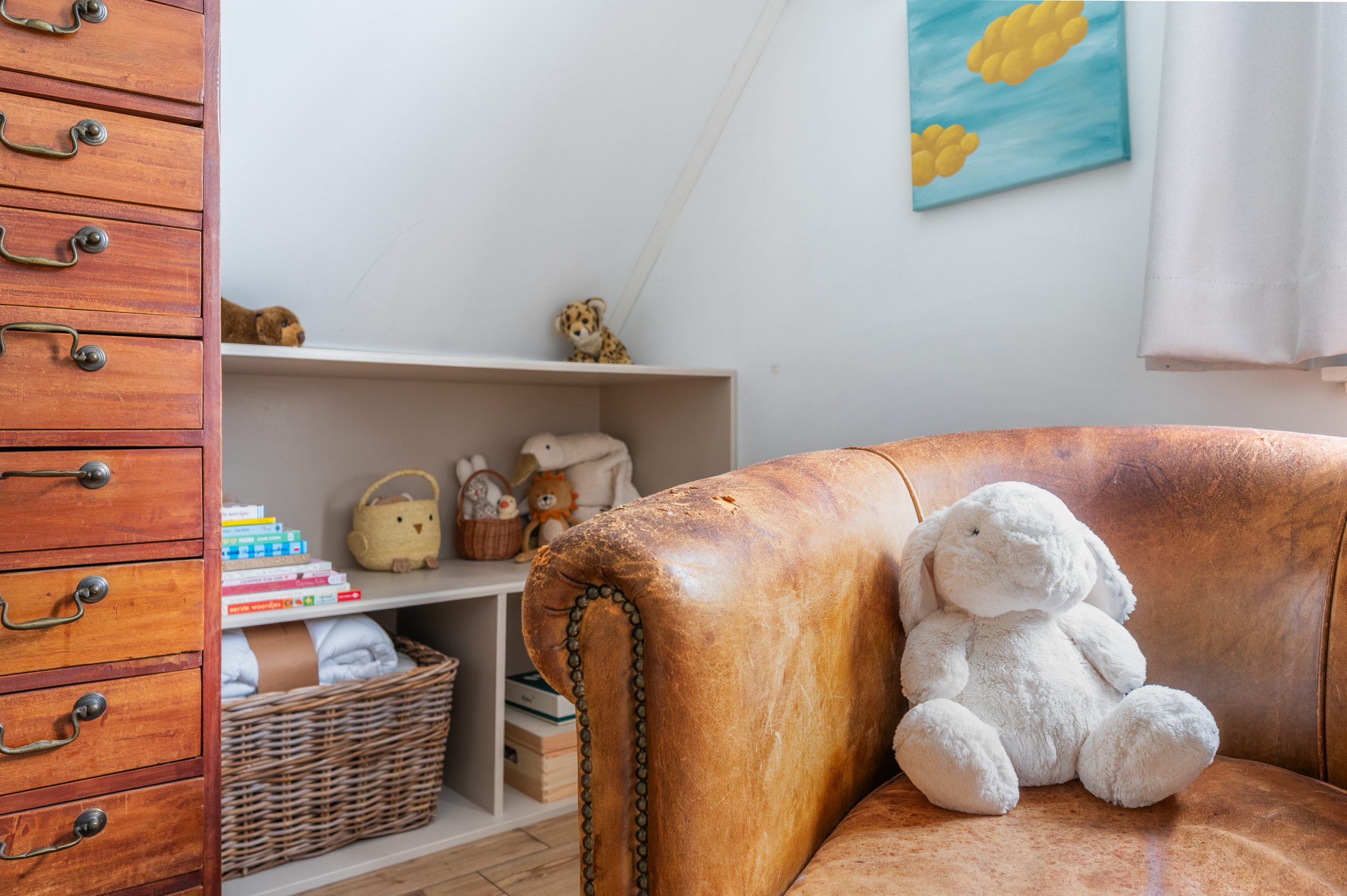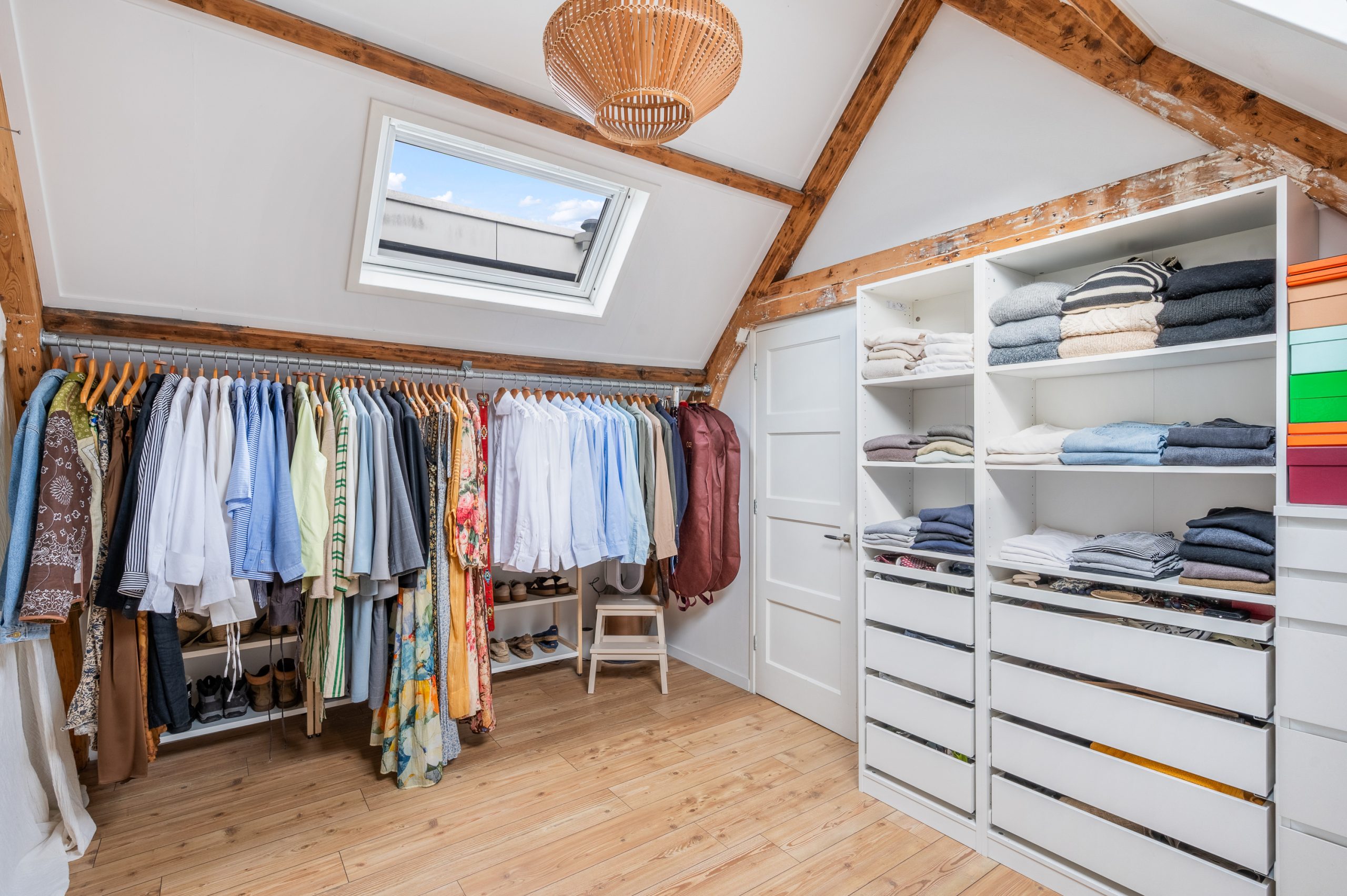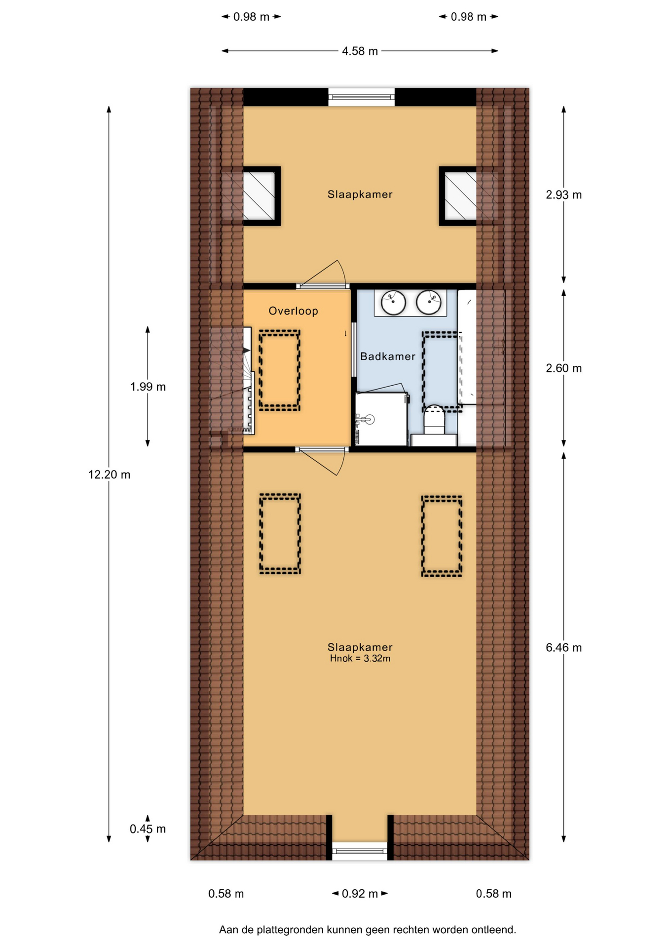 Ruime overloop met dakraam en toegang tot de 2 slaapkamers en badkamer. De royale master bedroom is gelegen aan de voorzijde van de woning en is ontzettend ruim. Mede door de nokhoogte van ruim 3 meter hoog, de balkenstructuur en de dakramen die zorgen voor extra daglicht is dit echt een waanzinnige ruimte. Aan de achterzijde bevindt zich de 2e slaapkamer, tevens goed van formaat. Temidden van de slaapkamers ligt de badkamer welke beschikt over een ligbad, aparte douche, dubbele wastafel en toilet.