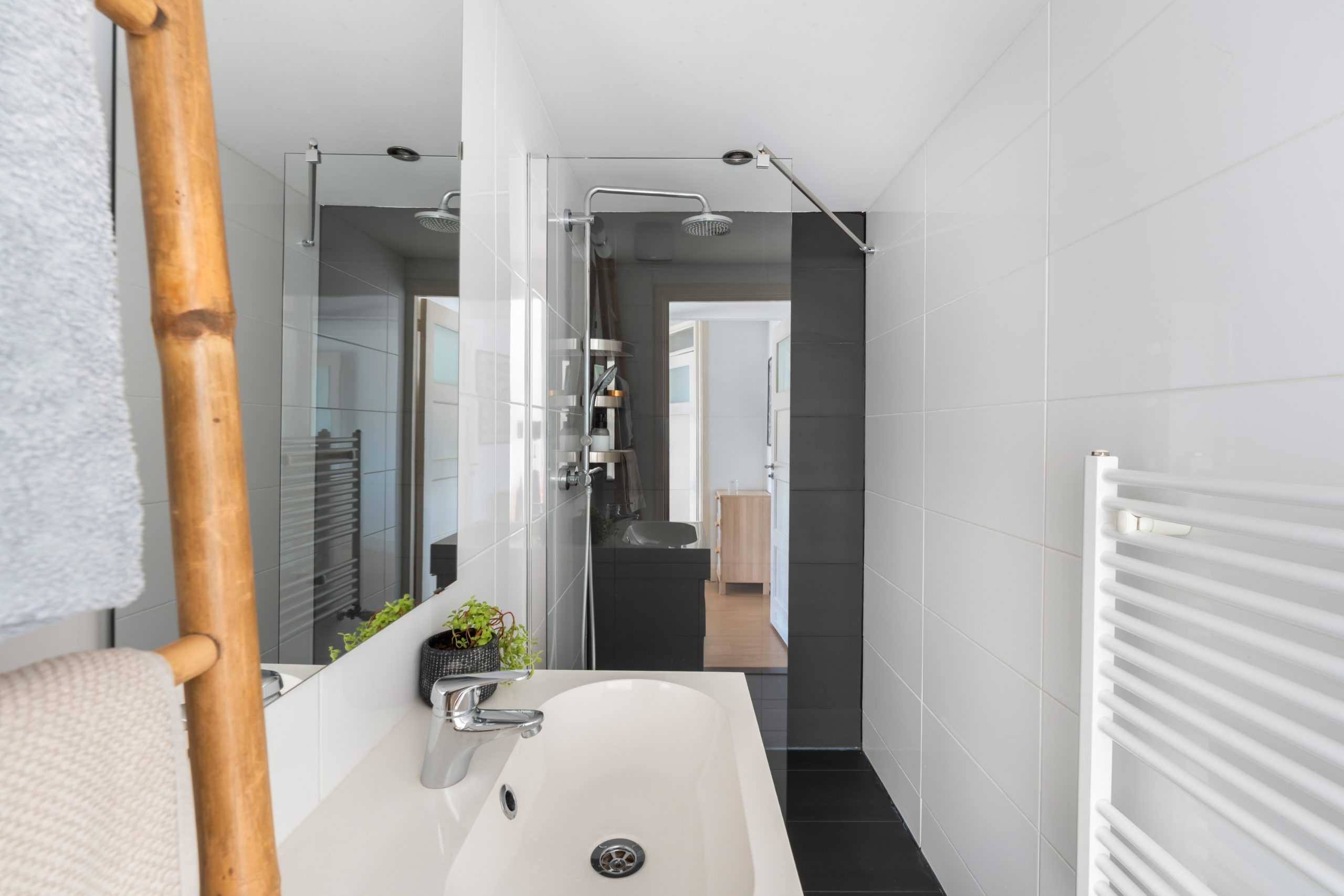 Overloop met separaat toilet en toegang tot alle vertrekken op deze verdieping. De master bedroom is erg ruim te noemen en biedt voldoende ruimte voor een tweepersoonsbed en een kast. De volledig betegelde badkamer is voorzien vaneen handdoekradiator, inloopdouche en wastafel met wastafelmeubel. Tevens beschikt deze verdieping over een wasruimte.