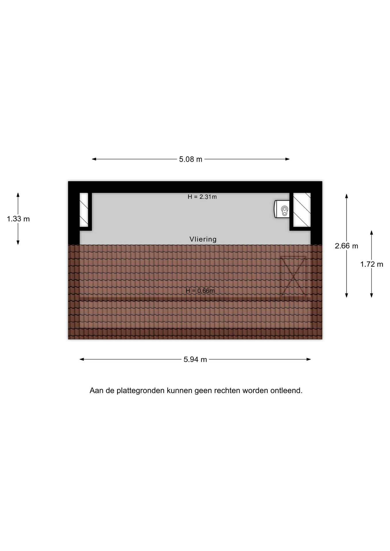 Het appartement beschikt over een vliering, erg handig voor extra opbergruimte.
