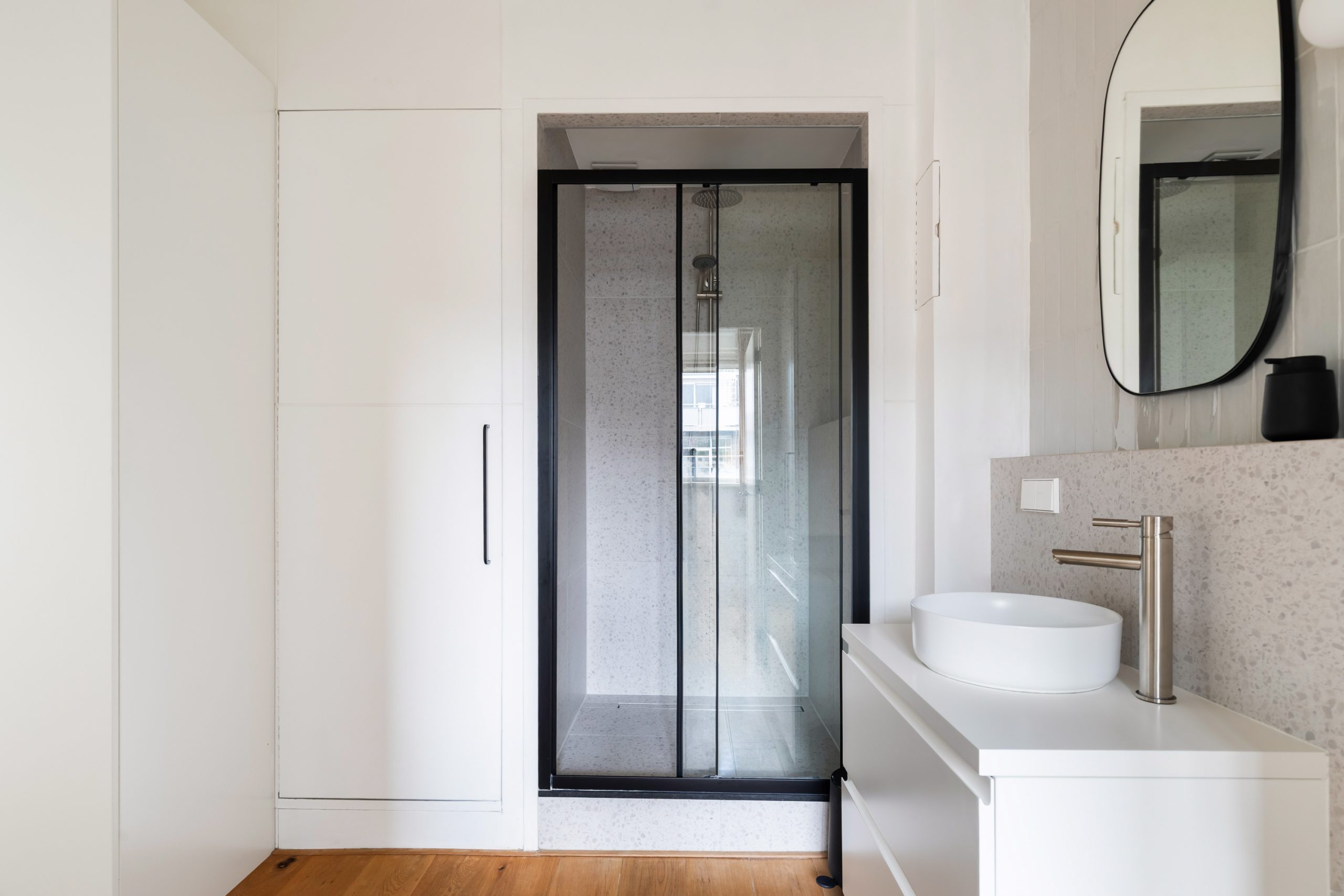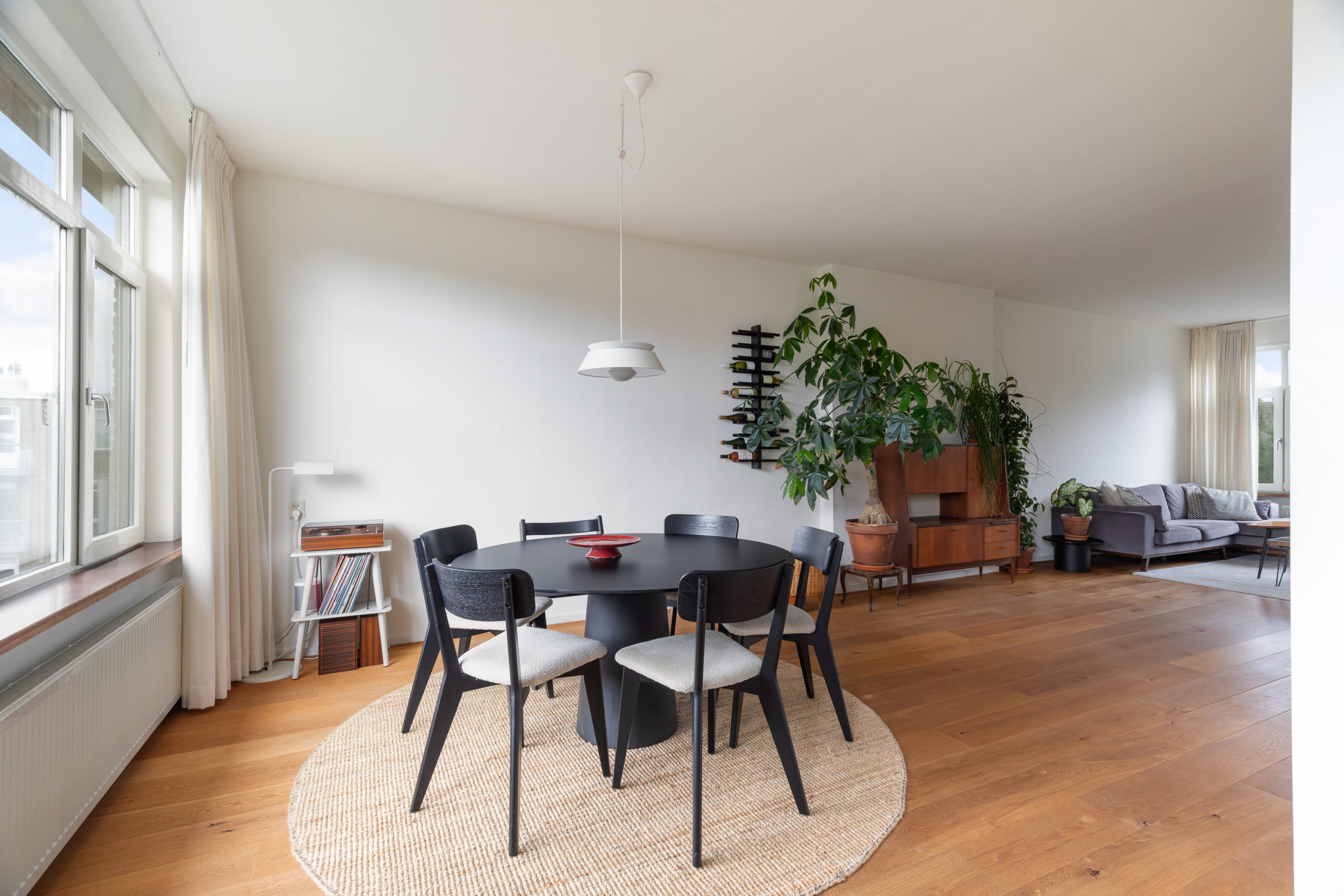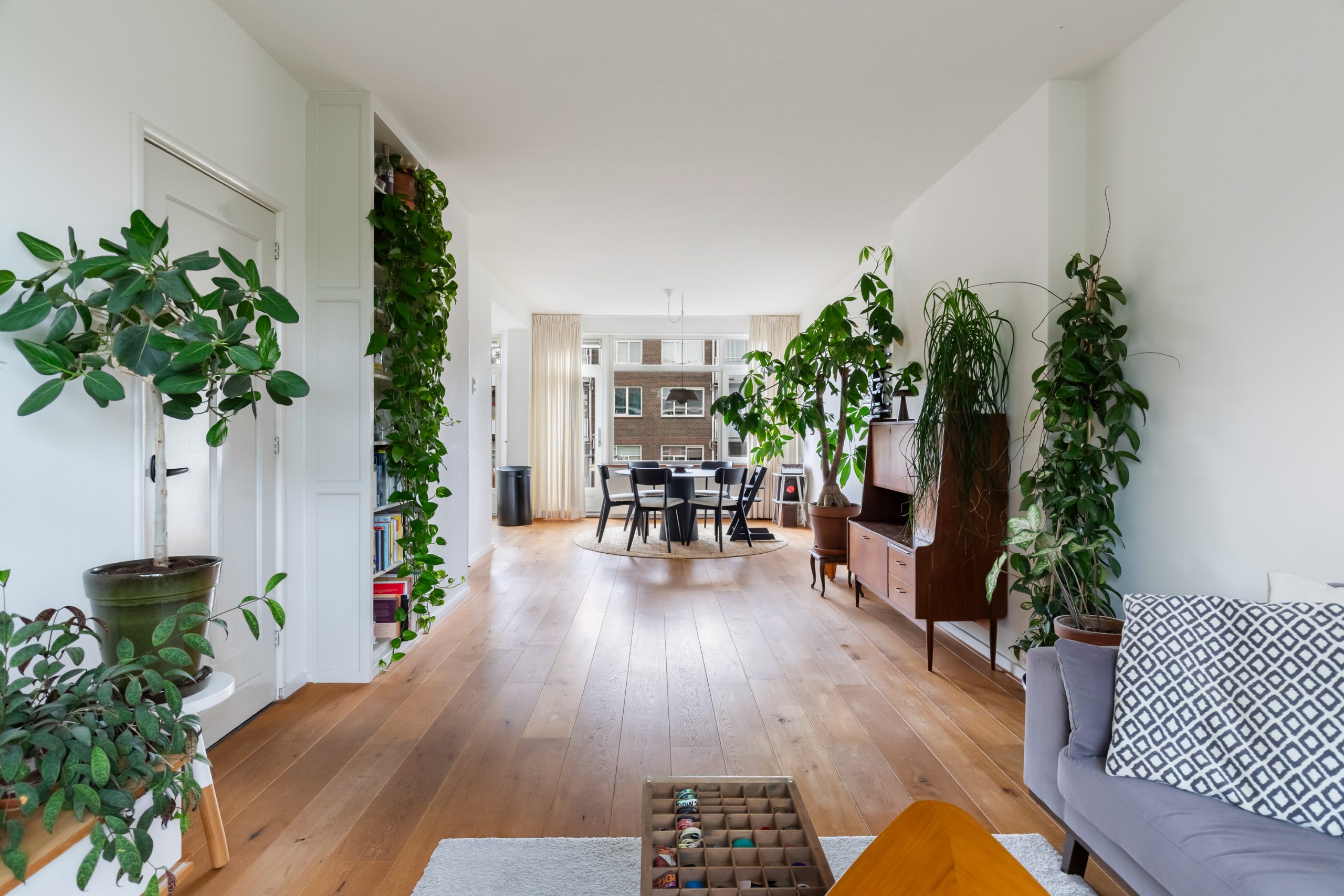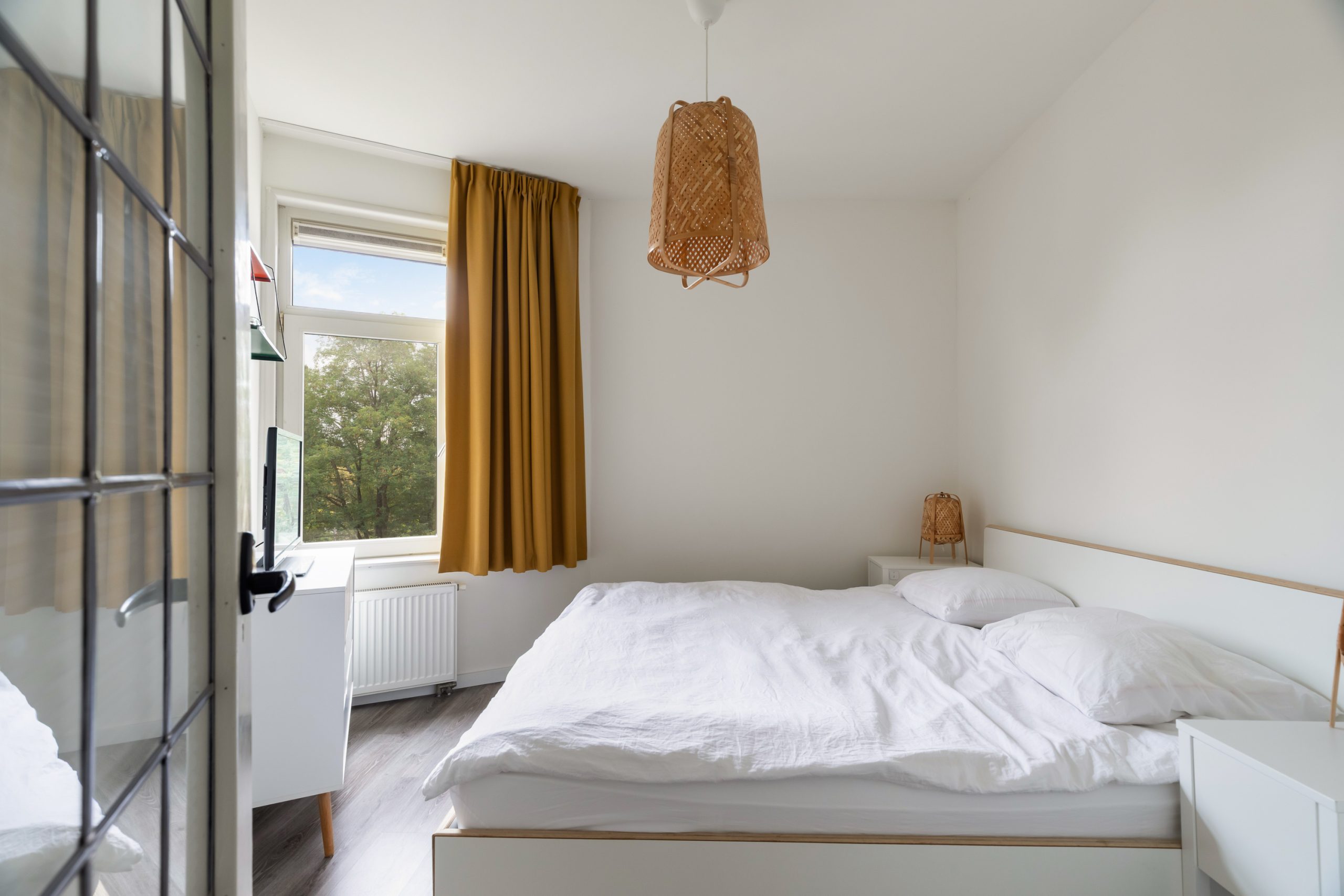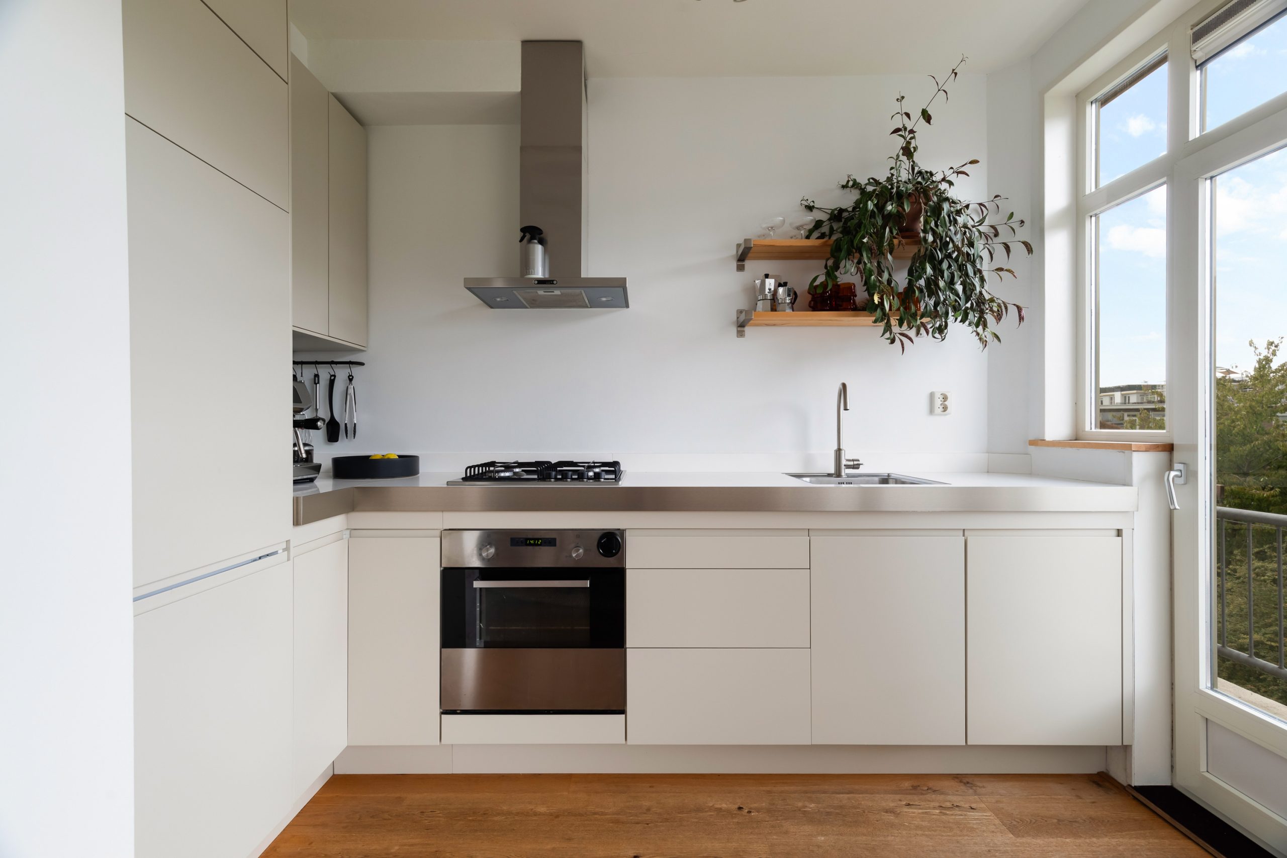 Entree met tochtportaal, separaat toilet en toegang tot alle vertrekken op deze verdieping. De woonkamer beschikt maar liefst over een lengte van ca. 11 meter! Door de grote raampartijen aan beide zijden treedt er veel natuurlijk licht de woning binnen, wat zorgt voor een fijne en lichte sfeer. Het woongedeelte is gelegen aan de voorzijde van de woning. Dankzij de slimme indeling zijn het eet- en zitgedeelte mooi van elkaar gescheiden, wat bijdraagt aan zowel comfort als sfeer. De ruimte biedt meer dan voldoende plaats voor zowel een royale zithoek als een ruime eettafel. De moderne half open keuken staat in directe verbinding met het eetgedeelte, dat gelegen is aan de achterzijde van de woning. De stijlvolle keuken beschikt over diverse inbouwapparatuur, zoals een 4-pits gasfornuis met afzuigkap, oven, vaatwasser en een ingebouwde koel-/vriescombinatie. Via de keuken bereik je het balkon, dat gelegen is op het noordwesten. Hier kun je heerlijk genieten van de middag-/avondzon. De master bedroom is gelegen aan de voorzijde van de woning. Dankzij de hoekligging van de master bedroom ontstaat een speels en ruimtelijk effect. Via een deur in de woonkamer bereik je een tweede hal met toegang tot een vaste kast, badkamer en de tweede slaapkamer. Deze kamer is multifunctioneel in te richten als bijvoorbeeld een kinder-, werk- of slaapkamer. De hal is voorzien van een stijlvol wastafelmeubel en biedt toegang tot de douche.