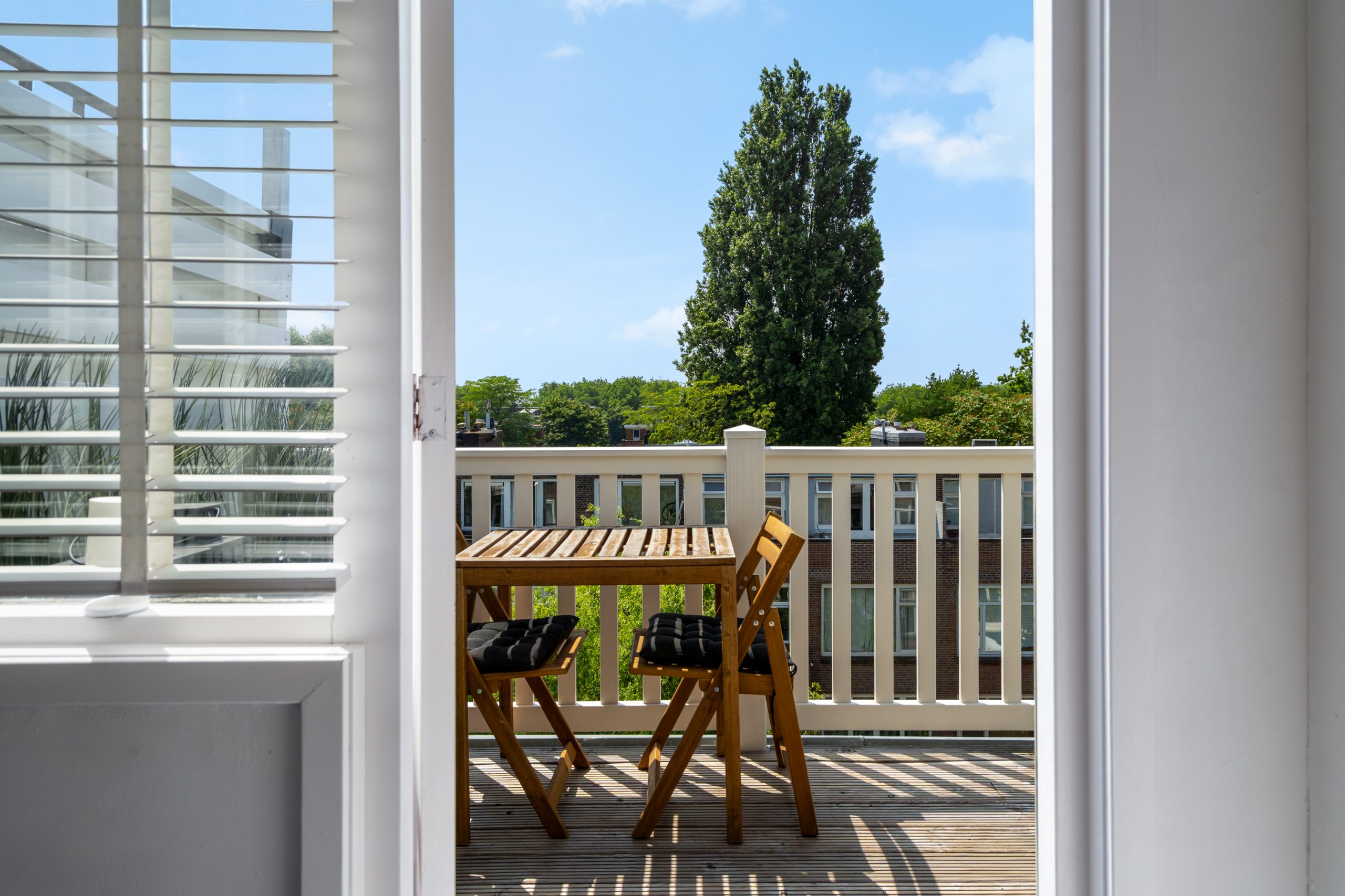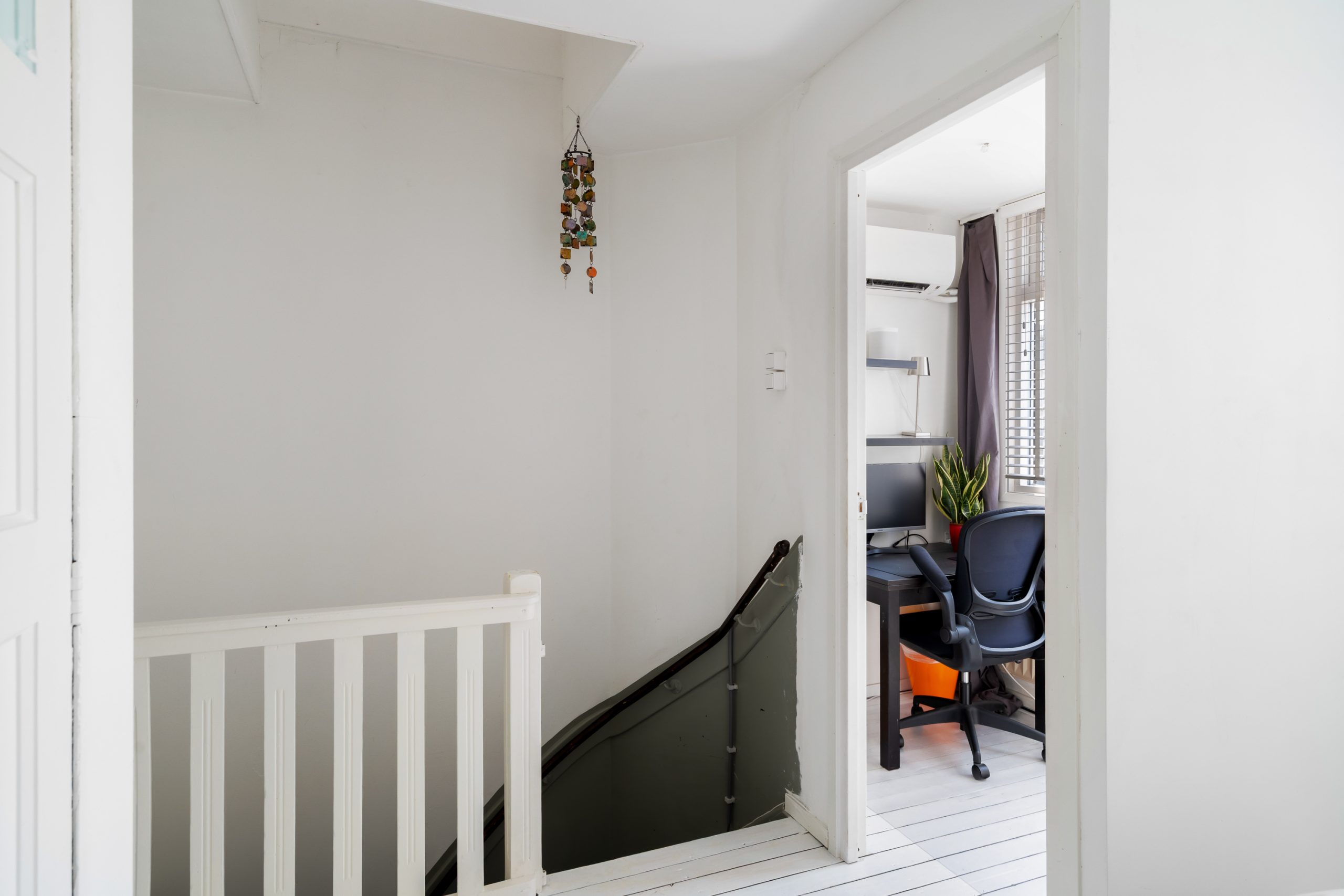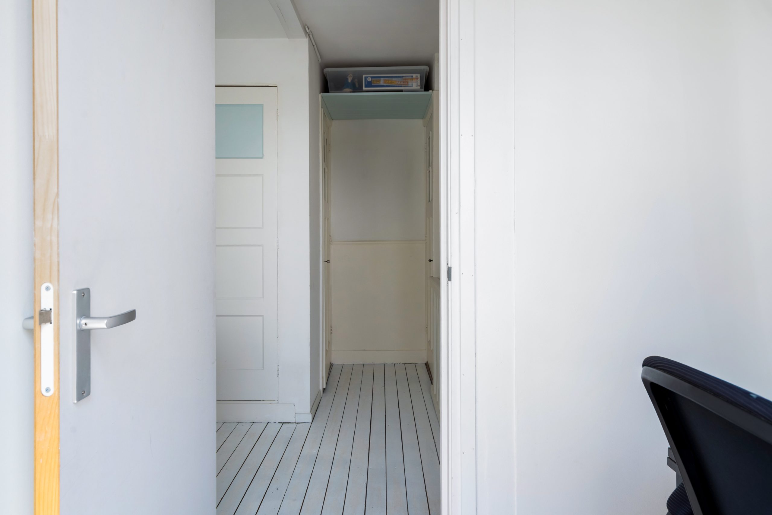 Trapopgang met toegang tot alle vertrekken op deze verdieping. De master bedroom met vaste kast en berging (CV-opstelling, wasmachineaansluiting) is gelegen aan de achterzijde van de woning. Aangrenzend aan de master bedroom bevindt zich een kantoor, dat dankzij de praktische indeling ook uitstekend te gebruiken is als inloopkast. De volledig betegelde badkamer beschikt over een ligbad, douche en wastafel met meubel. Via de master bedroom en het aangrenzende kantoor bereik je het heerlijke balkon op het zuidwesten. Doordat het appartement zich op de bovenste verdieping bevindt, geniet je hier heel de middag en avond van de zon!