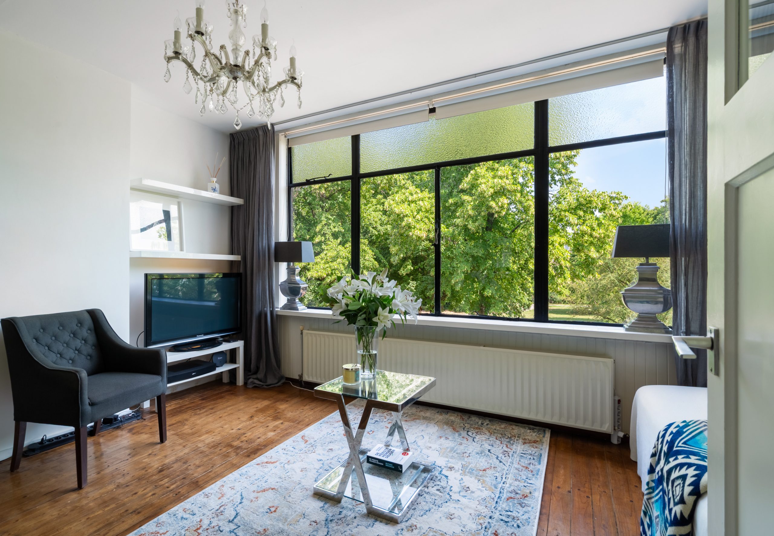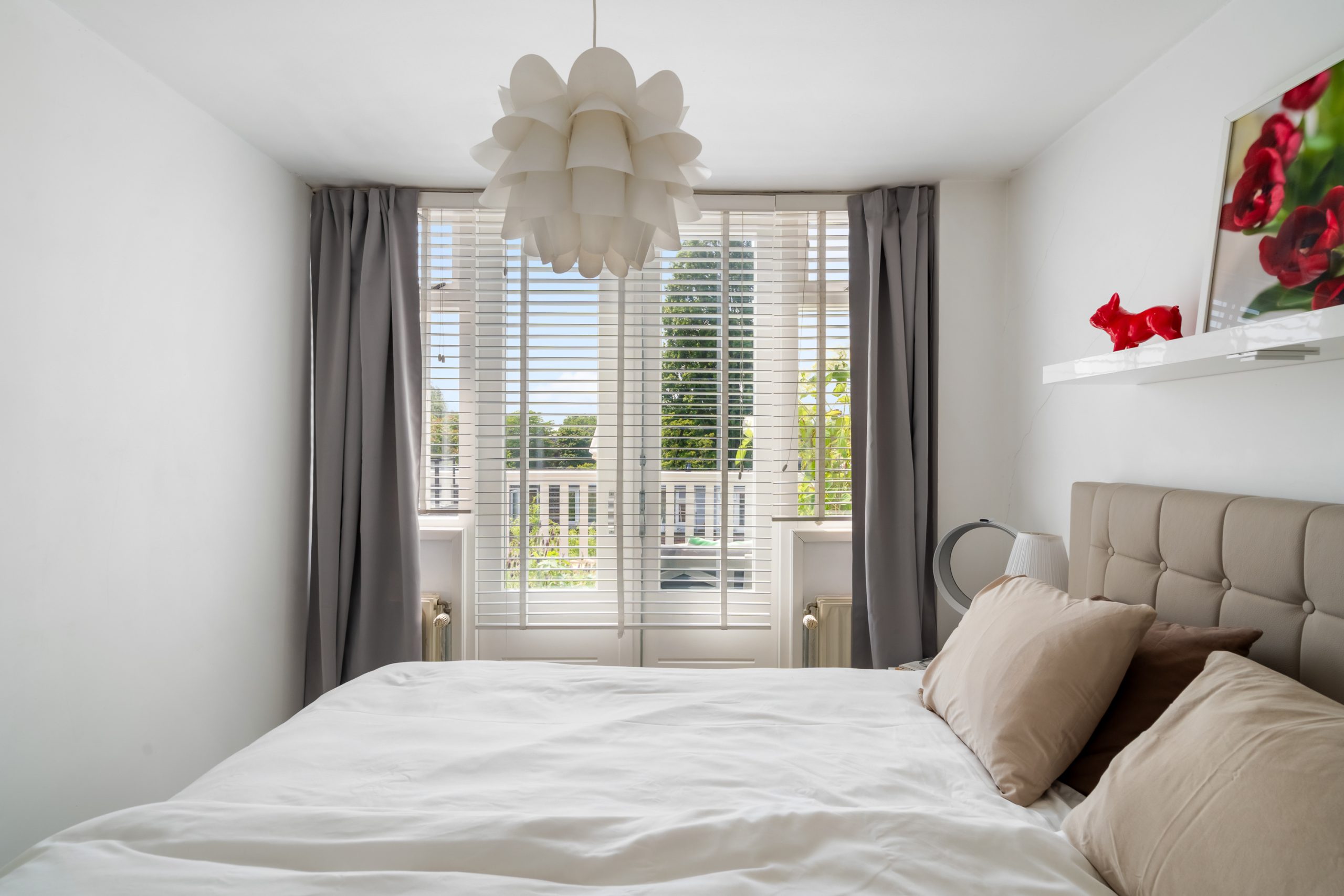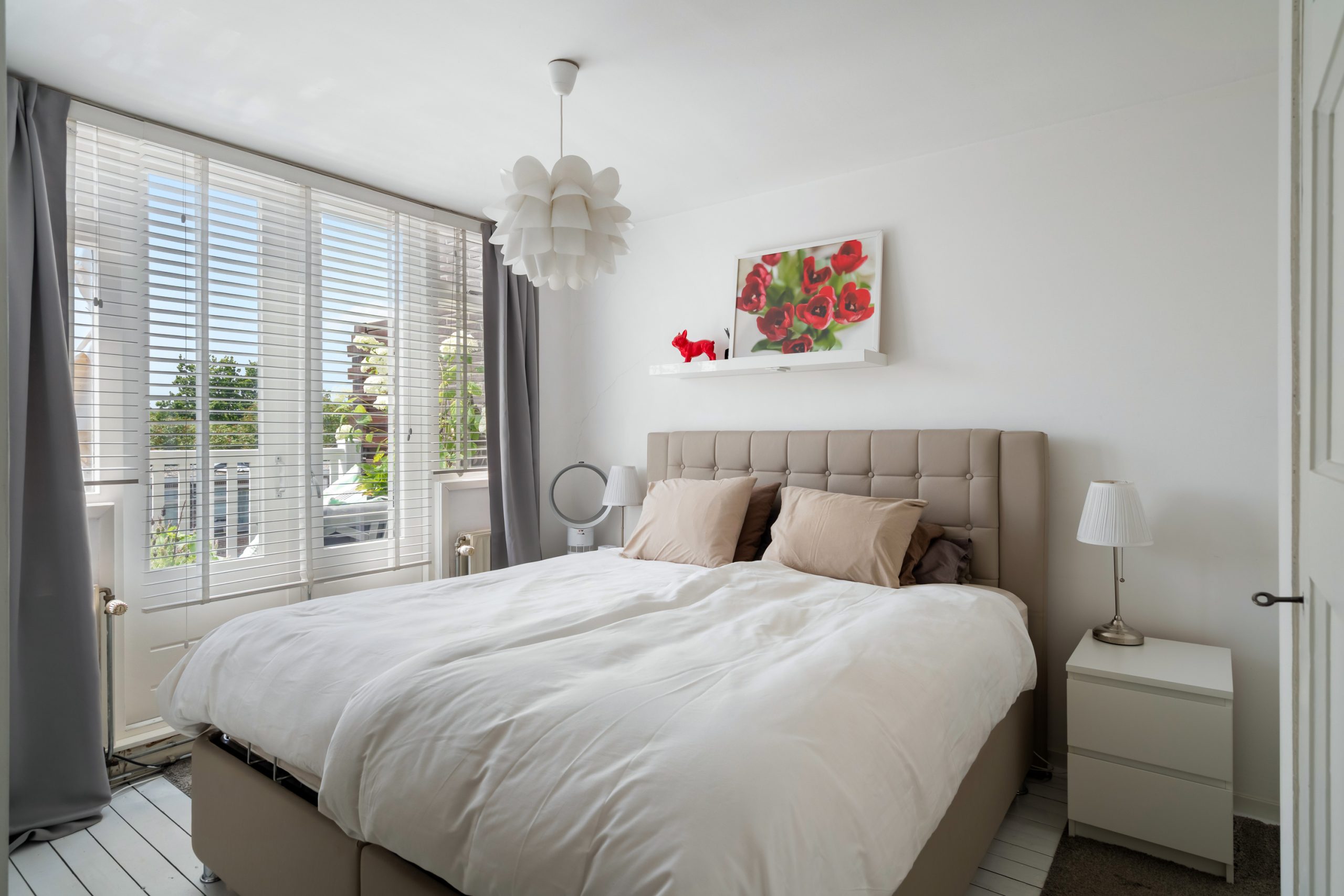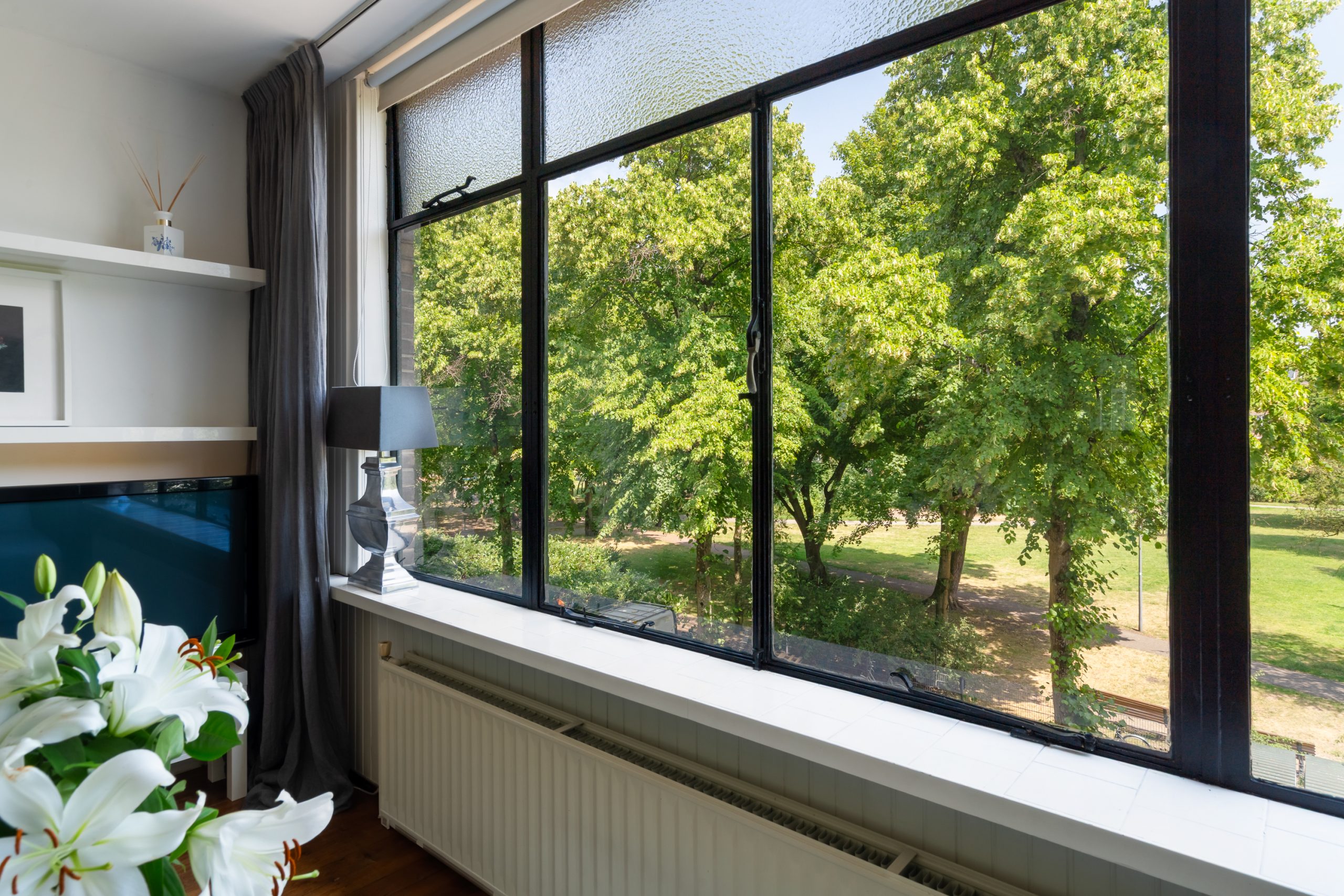 Trapopgang met toegang tot alle vertrekken op deze verdieping. De master bedroom met vaste kast en berging (CV-opstelling, wasmachineaansluiting) is gelegen aan de achterzijde van de woning. Aangrenzend aan de master bedroom bevindt zich een kantoor, dat dankzij de praktische indeling ook uitstekend te gebruiken is als inloopkast. De volledig betegelde badkamer beschikt over een ligbad, douche en wastafel met meubel. Via de master bedroom en het aangrenzende kantoor bereik je het heerlijke balkon op het zuidwesten. Doordat het appartement zich op de bovenste verdieping bevindt, geniet je hier heel de middag en avond van de zon!