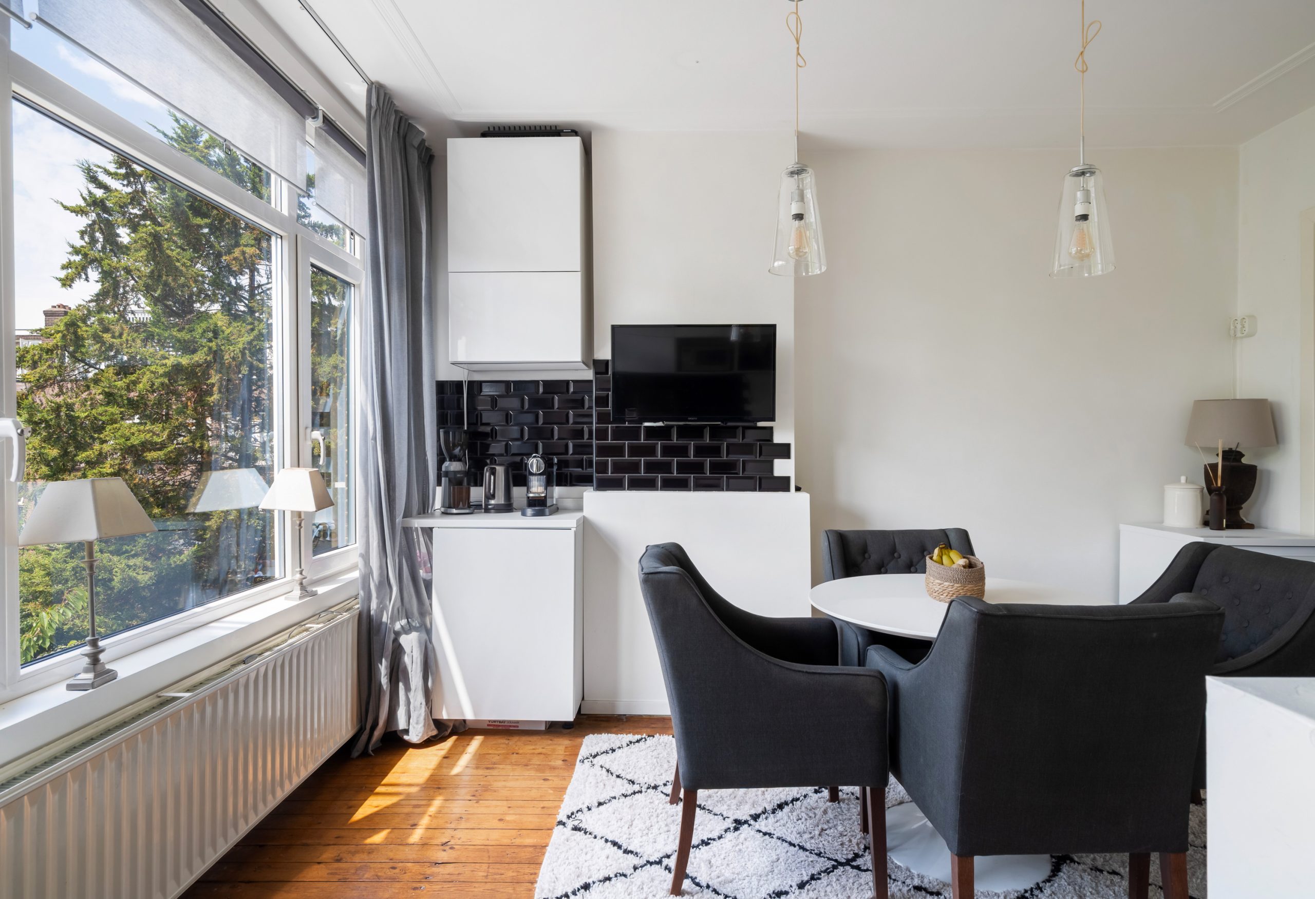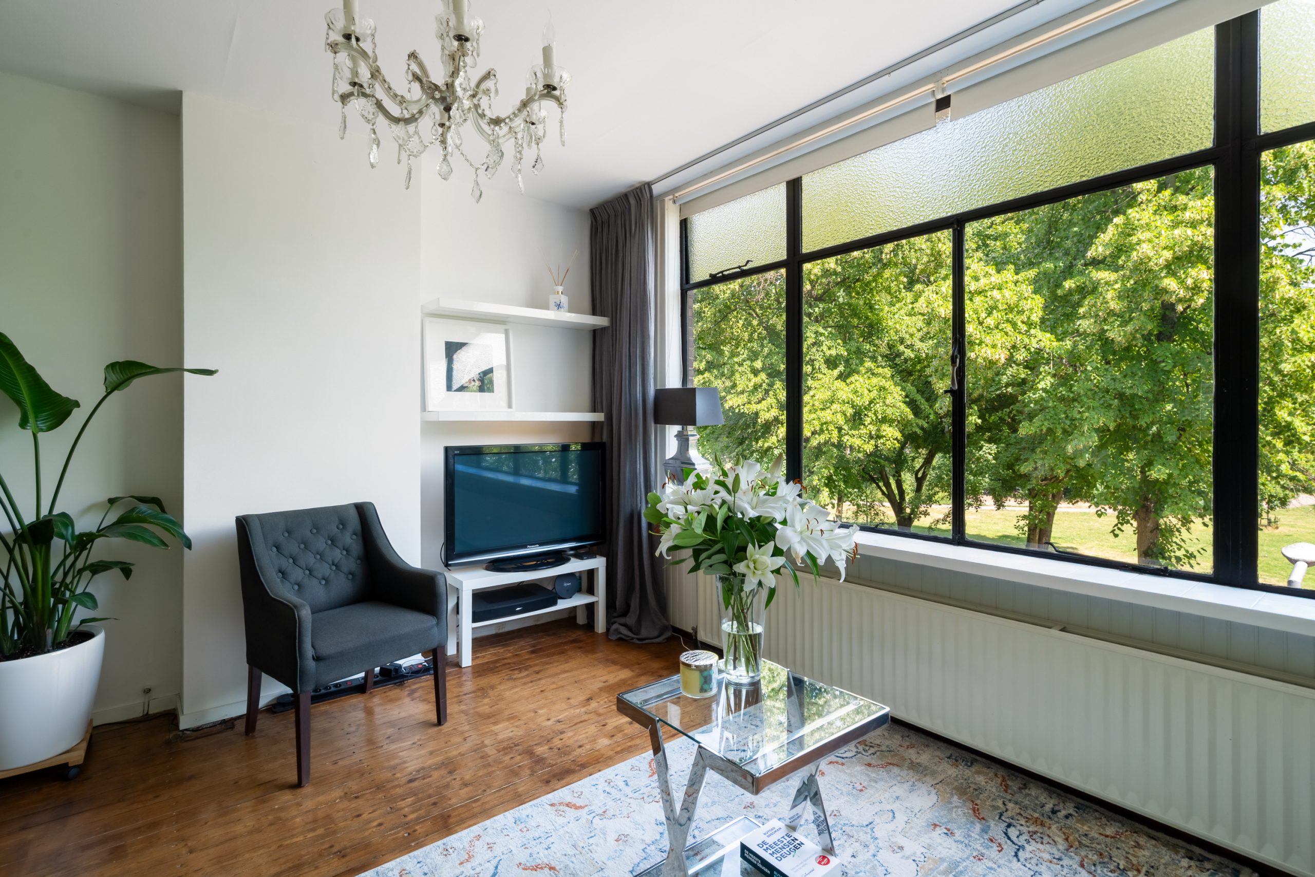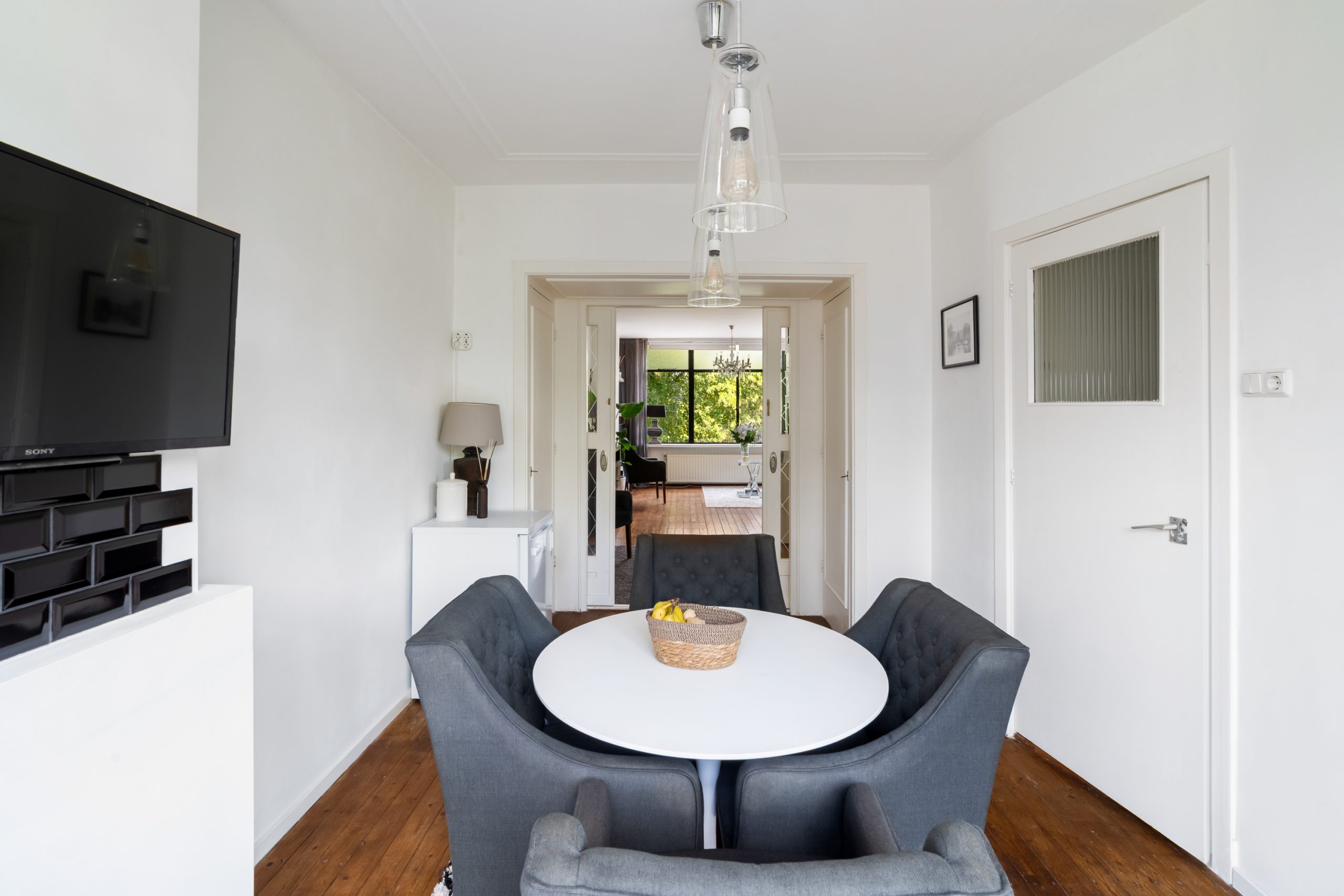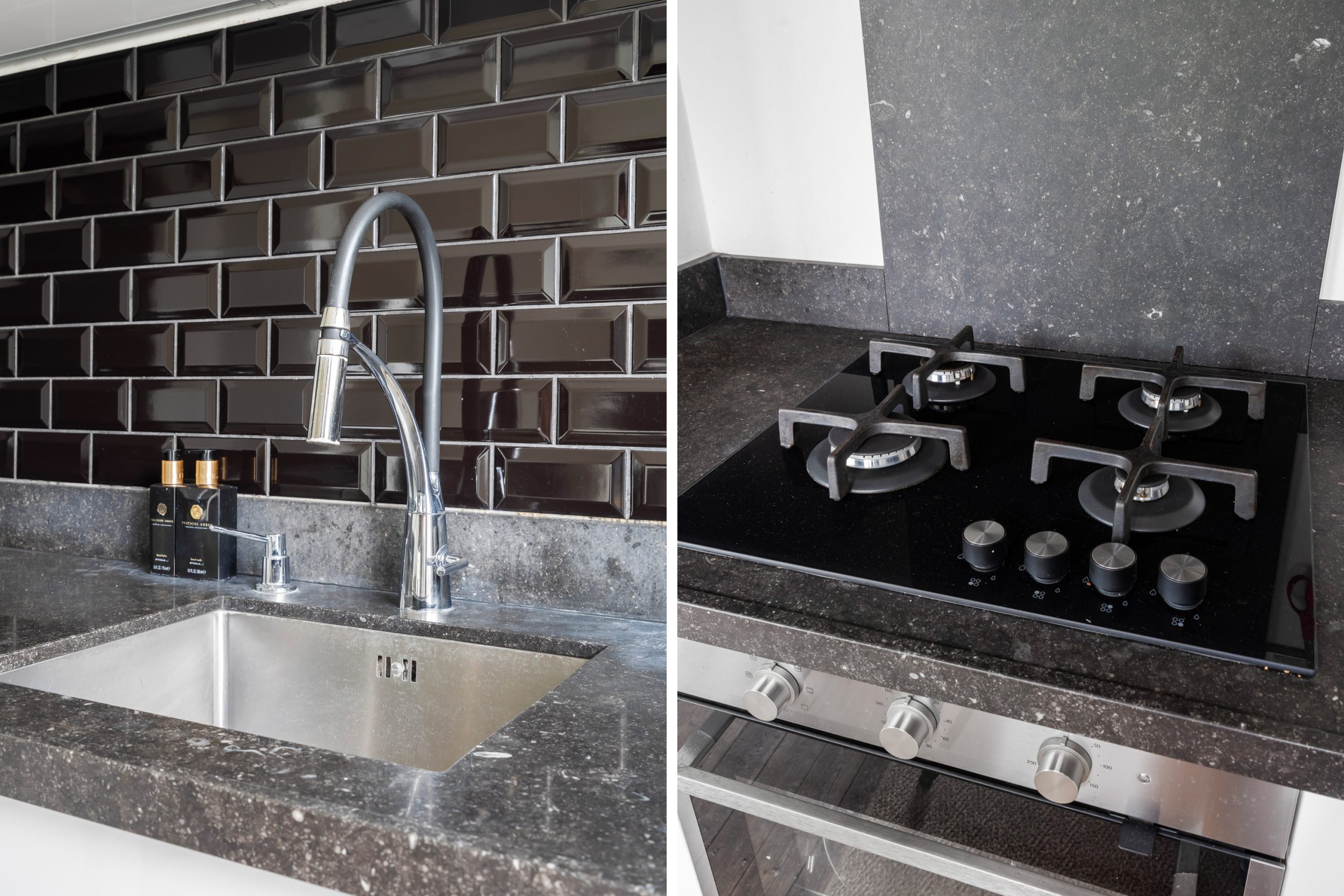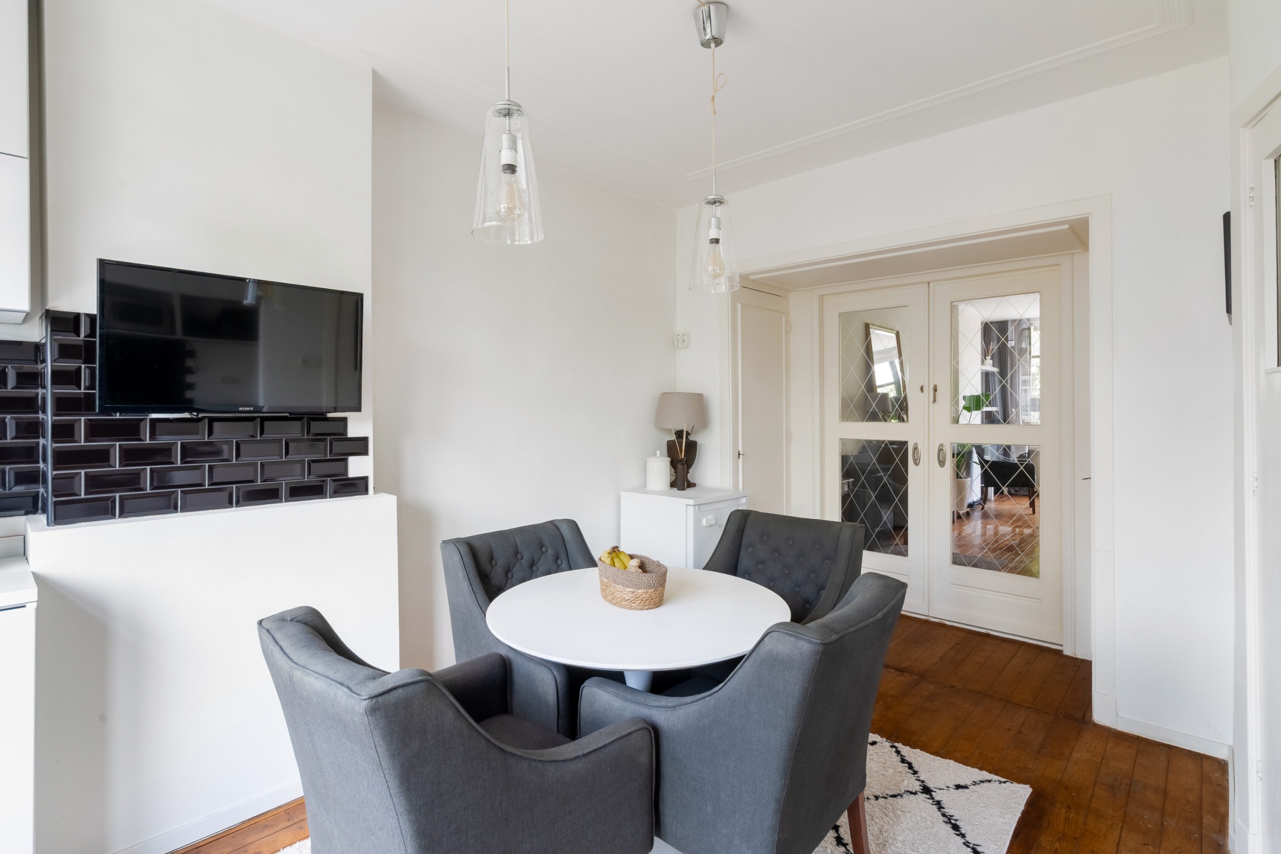 Entree met meterkast en toegang tot alle vertrekken op deze verdieping. De L-vormige kamer ensuite met vaste kasten heeft een prettige, natuurlijke indeling met veel ruimte voor zowel een comfortabele zithoek als een royaal eetgedeelte. De kamer ensuite deuren zorgen voor een subtiele afscheiding tussen de ruimtes, terwijl het open en luchtige gevoel blijft behouden. Met een lengte van ca. 12 meter geeft de woonkamer ensuite een bijzonder ruimtelijk en luxe uitstraling. Aan de voorzijde van de woning bevindt zich het woongedeelte; het eetgedeelte ligt aan de achterzijde en biedt toegang tot het separate toilet. Het eetgedeelte staat in directe verbinding met de open keuken. Hier komt koken en gezelligheid perfect samen. Het is de ideale plek om lekker in contact te blijven met je gezelschap, terwijl je geniet van de open, gezellige sfeer. De open keuken beschikt over diverse inbouwapparatuur zoals een 4-pits gasfornuis met afzuigkap, oven en een vaatwasser. Via de keuken bereik je het eerste balkon, gelegen op het zuidwesten. Hier kan je gedurende dag heerlijk genieten van de zon met een kop koffie!
