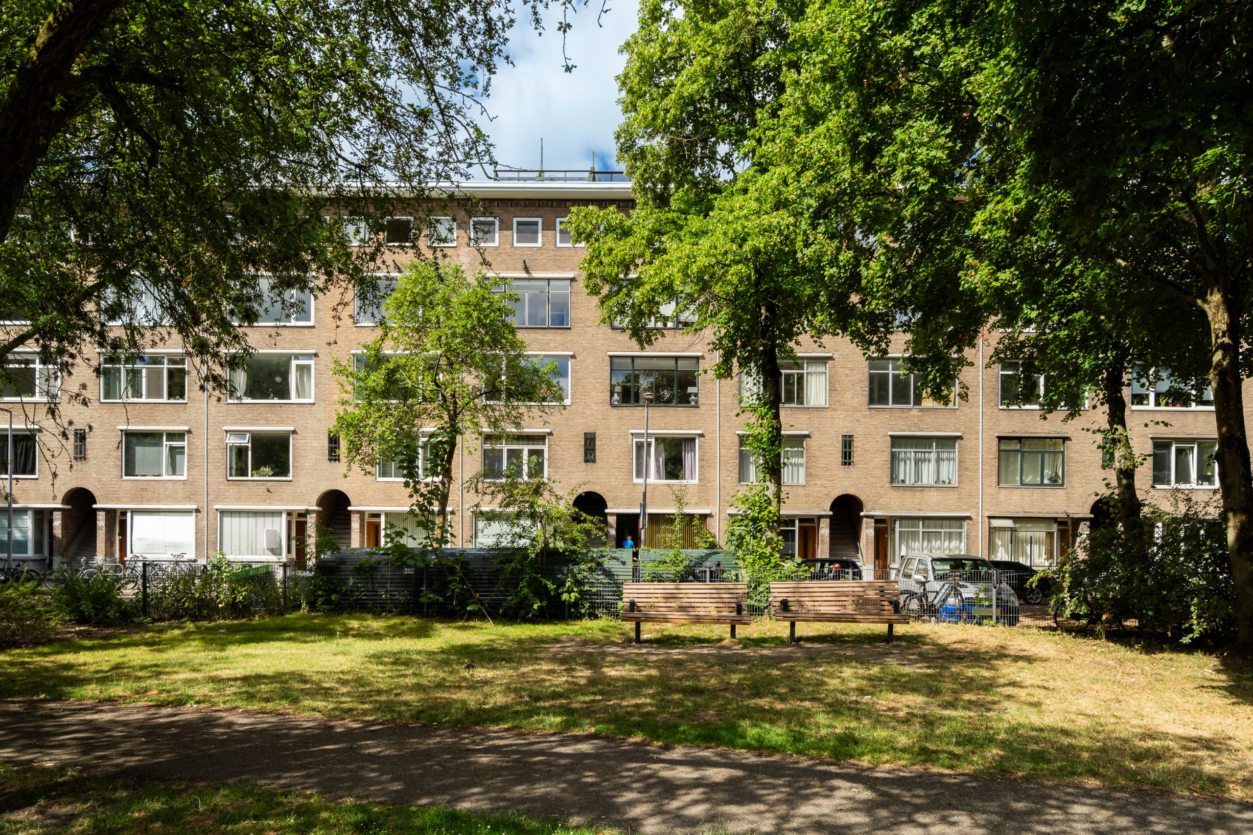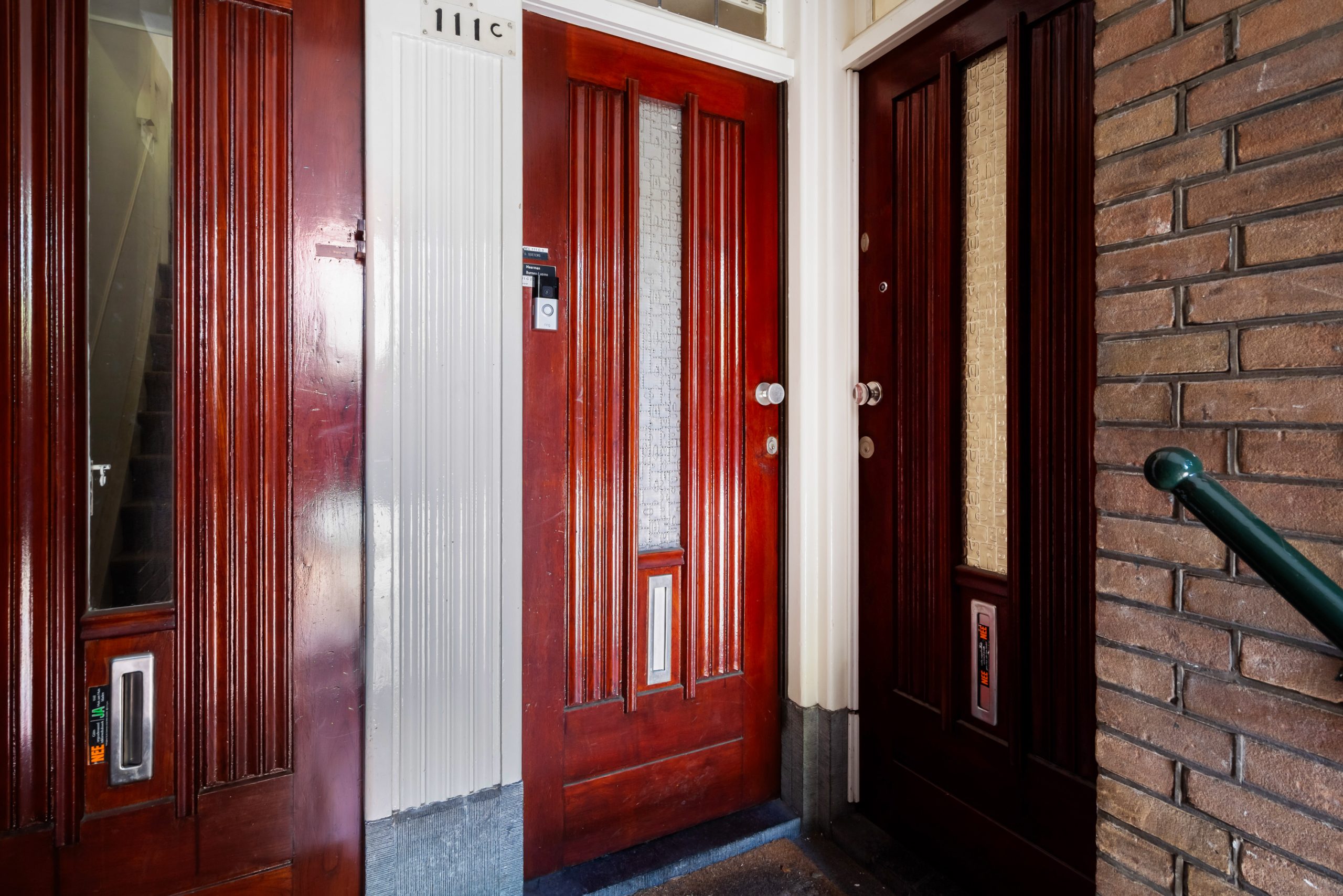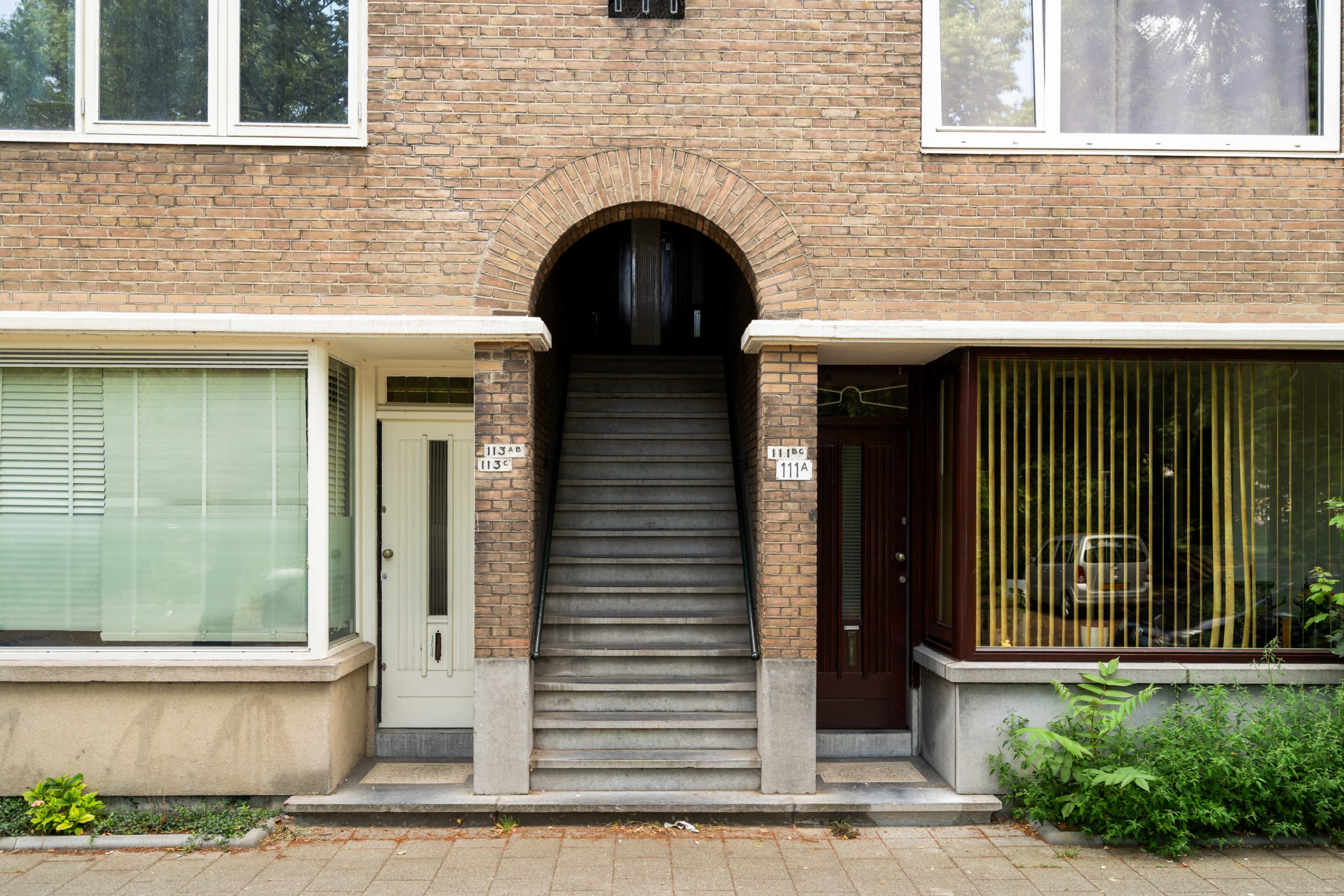 Karakteristieke open portiek met toegang tot de 2e verdieping.