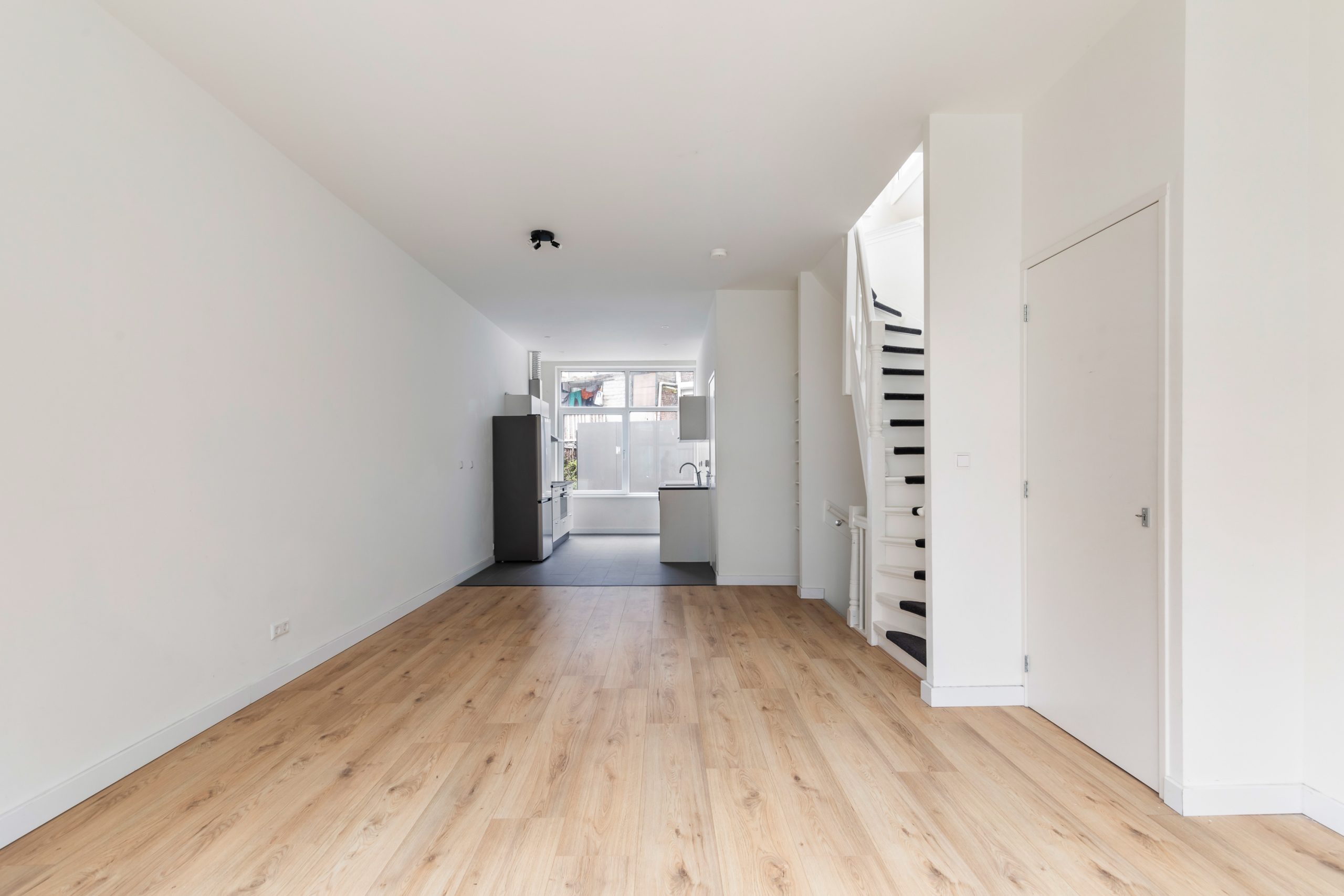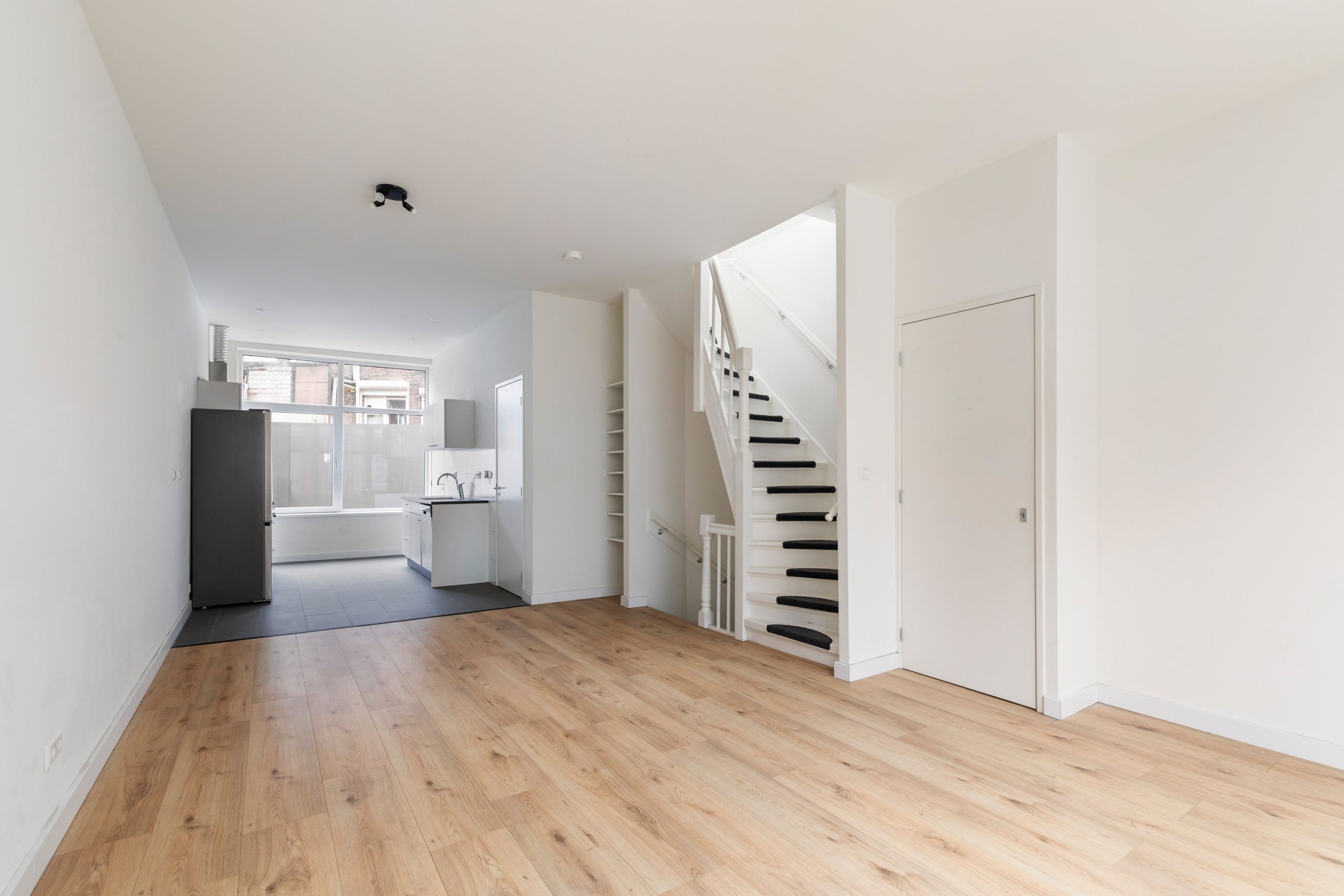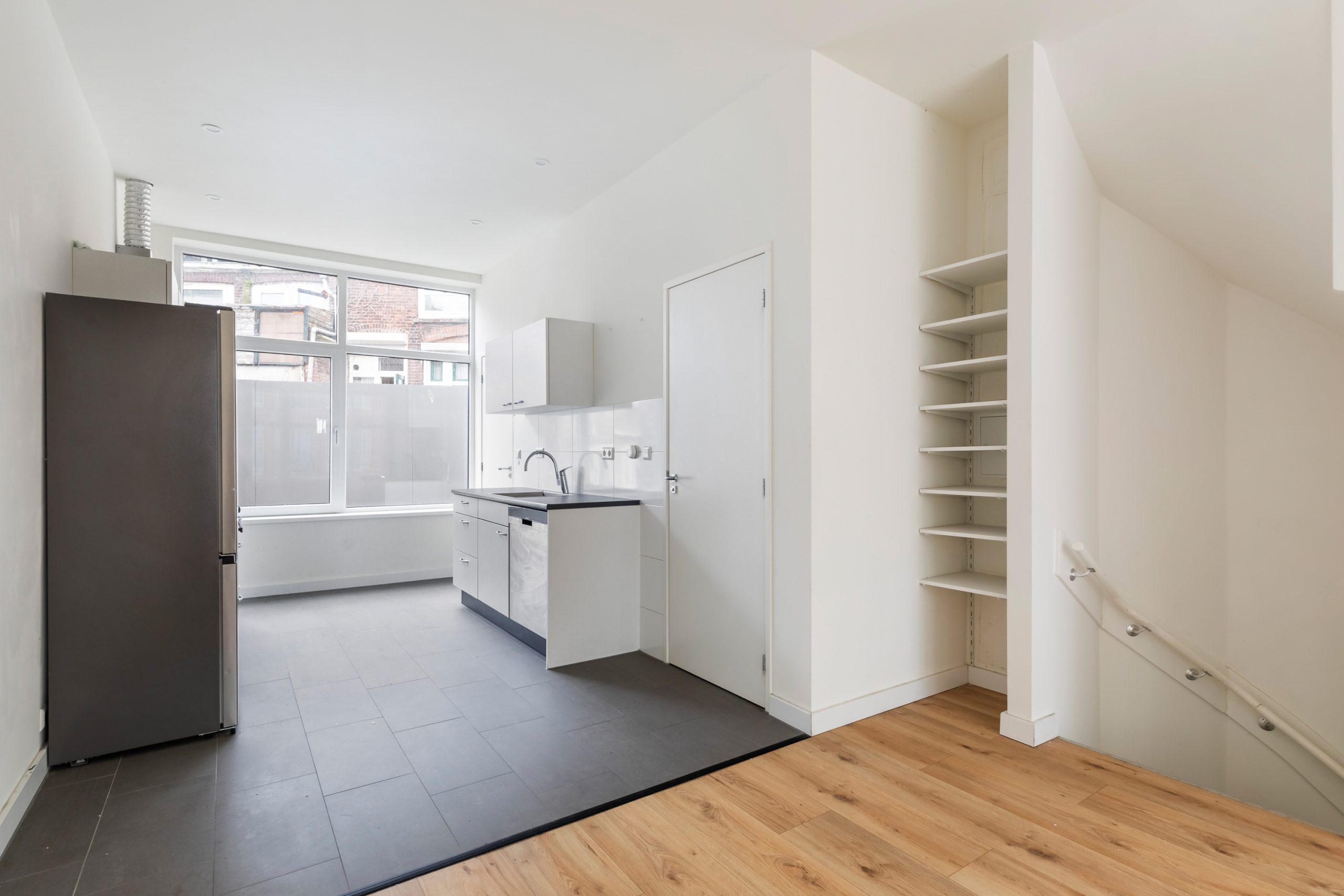 Bij binnenkomst valt direct de royale woonkamer op, met een lengte van ca. 11 meter en een hoogte van bijna 3 meter! Dankzij de raampartijen aan beide zijden van de woning treedt er veel natuurlijk licht de woning binnen, wat zorgt voor een fijne, lichte sfeer. De woning is met zorg en gevoel voor stijl afgewerkt, wat direct zorgt voor een prettige, sfeervolle en instapklare woonbeleving. Het woongedeelte is gelegen aan de voorzijde van de woning. Hier is meer dan voldoende ruimte om een riante zithoek te creƫren. De open keuken is gelegen aan de achterzijde van de woning. Deze moderne keuken beschikt over diverse inbouwapparatuur, zoals een vaatwasser, 4-pits elektrische kookplaat met afzuigkap, oven en een koel-/vriescombinatie. Via een deur gelegen in de keuken bereik je de volledig betegelde badkamer. Deze beschikt over een inloop(regen)douche, wasmachineaansluiting en een wastafel met meubel. Middels een trap in de woonkamer bereik je de 2e verdieping.
