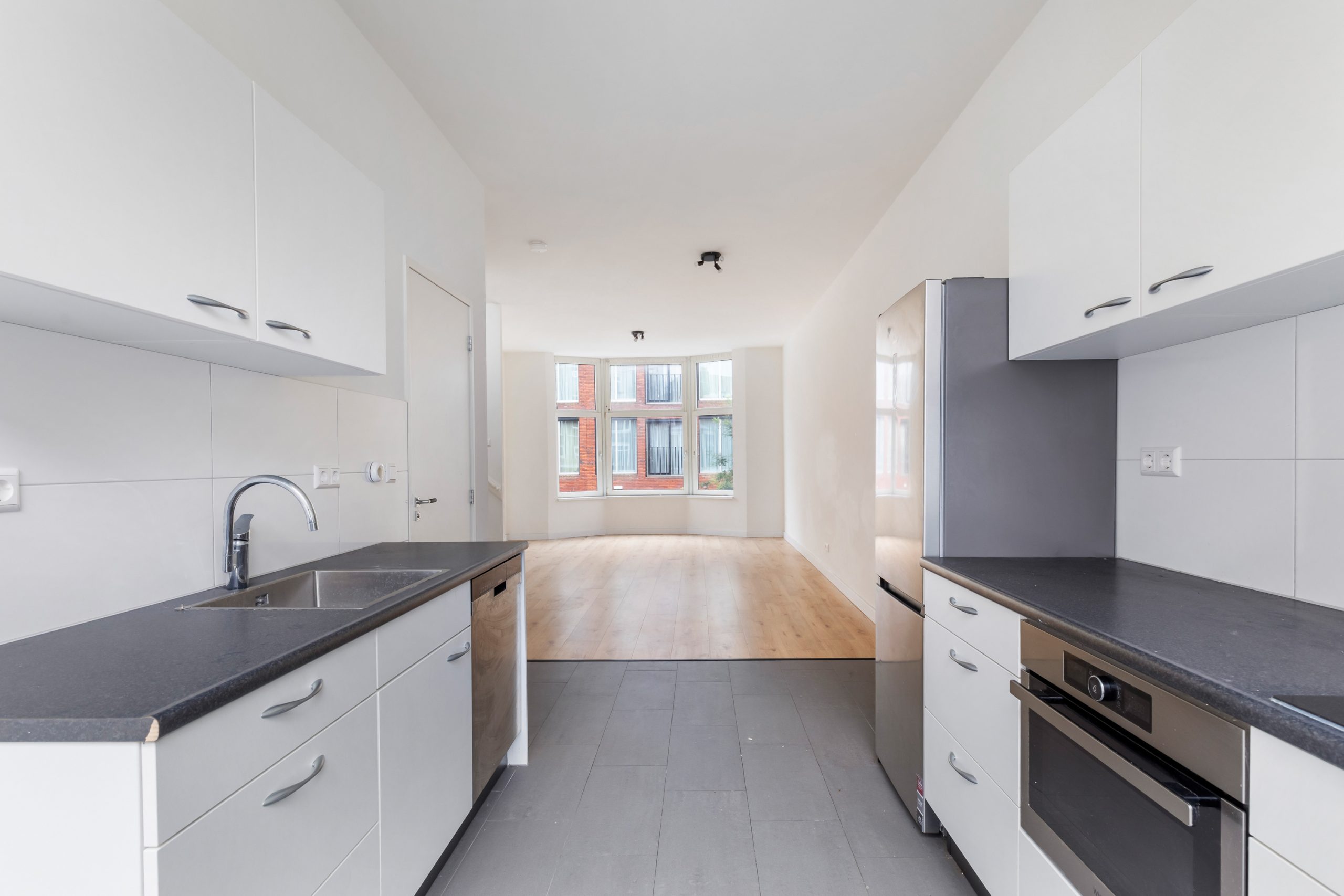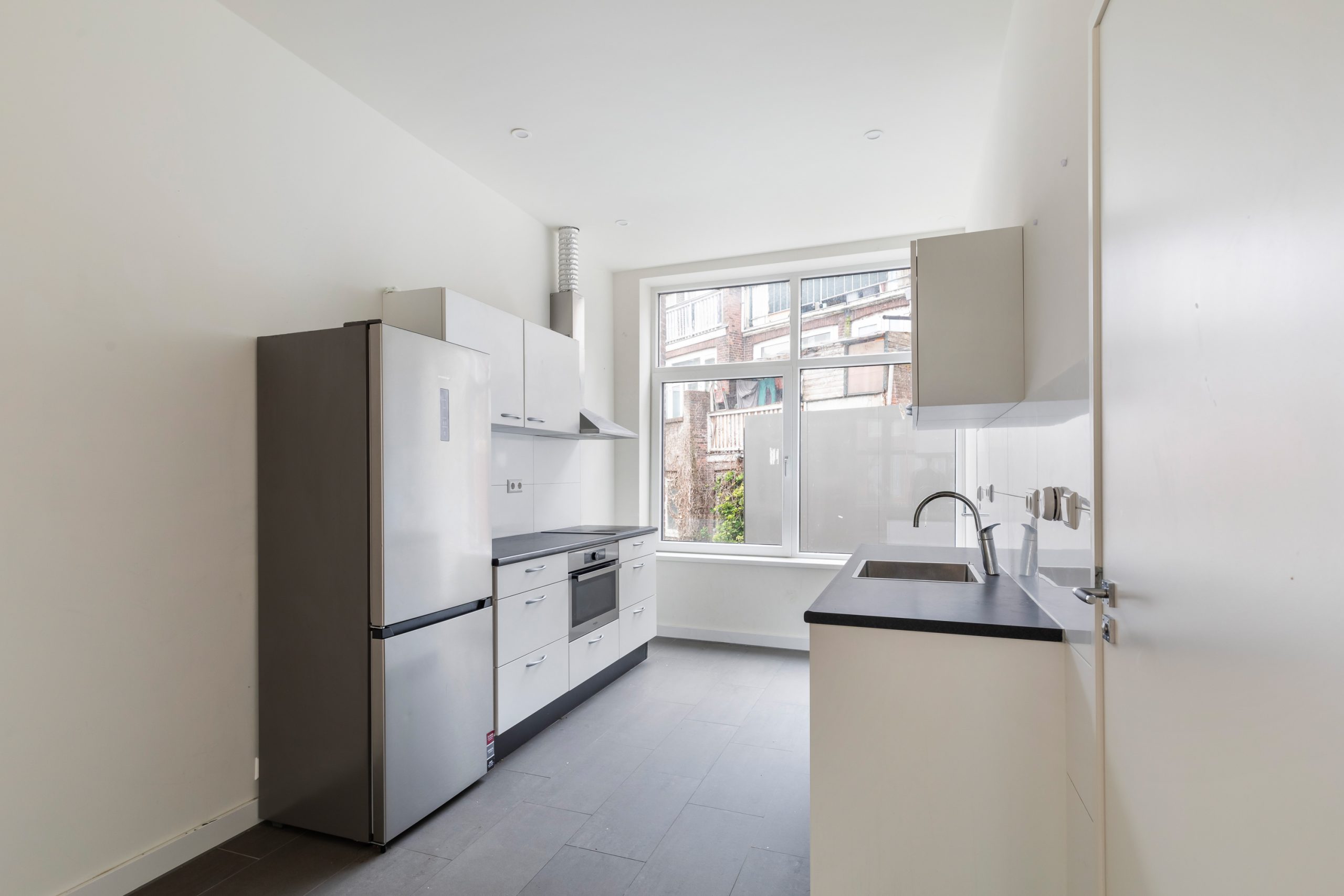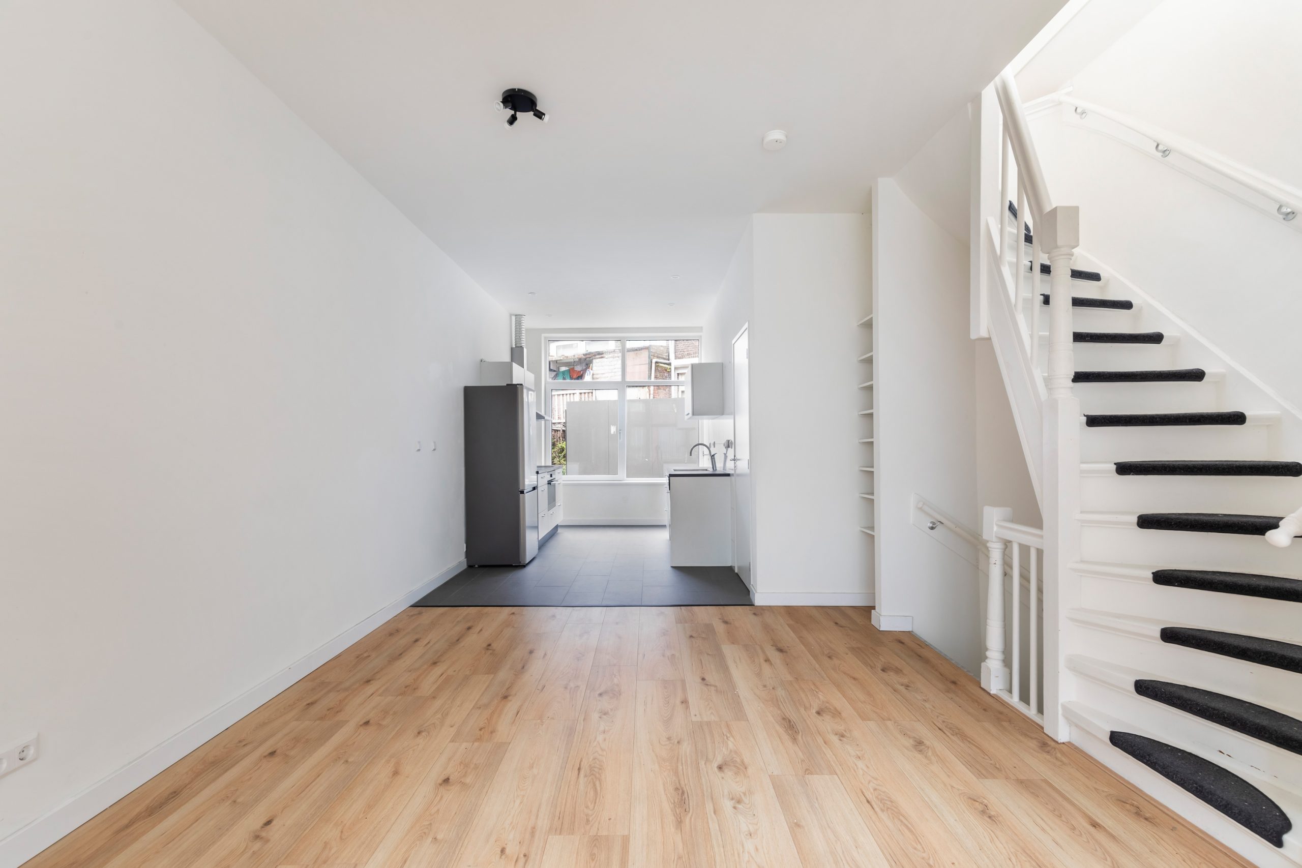 Bij binnenkomst valt direct de royale woonkamer op, met een lengte van ca. 11 meter en een hoogte van bijna 3 meter! Dankzij de raampartijen aan beide zijden van de woning treedt er veel natuurlijk licht de woning binnen, wat zorgt voor een fijne, lichte sfeer. De woning is met zorg en gevoel voor stijl afgewerkt, wat direct zorgt voor een prettige, sfeervolle en instapklare woonbeleving. Het woongedeelte is gelegen aan de voorzijde van de woning. Hier is meer dan voldoende ruimte om een riante zithoek te creƫren. De open keuken is gelegen aan de achterzijde van de woning. Deze moderne keuken beschikt over diverse inbouwapparatuur, zoals een vaatwasser, 4-pits elektrische kookplaat met afzuigkap, oven en een koel-/vriescombinatie. Via een deur gelegen in de keuken bereik je de volledig betegelde badkamer. Deze beschikt over een inloop(regen)douche, wasmachineaansluiting en een wastafel met meubel. Middels een trap in de woonkamer bereik je de 2e verdieping.