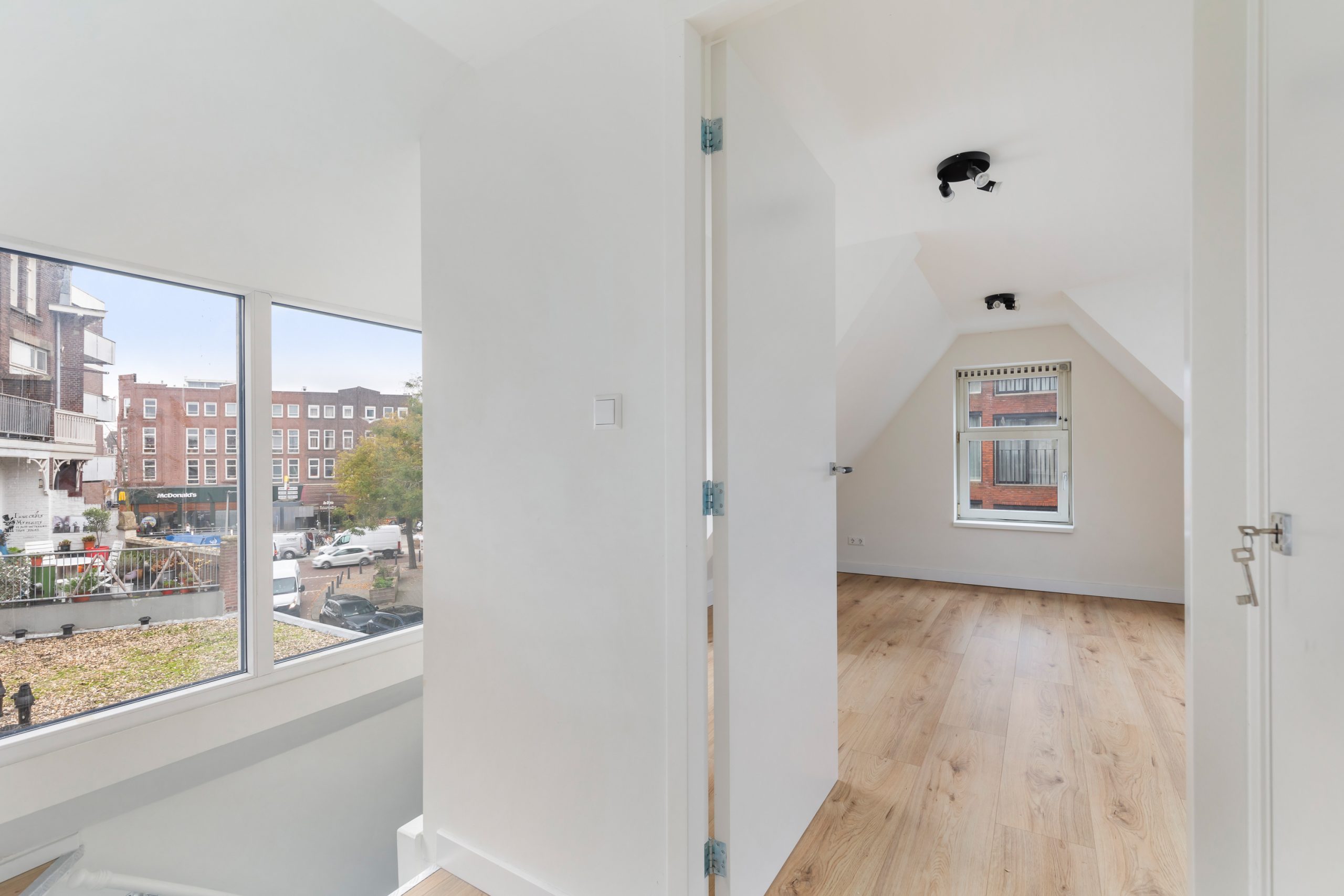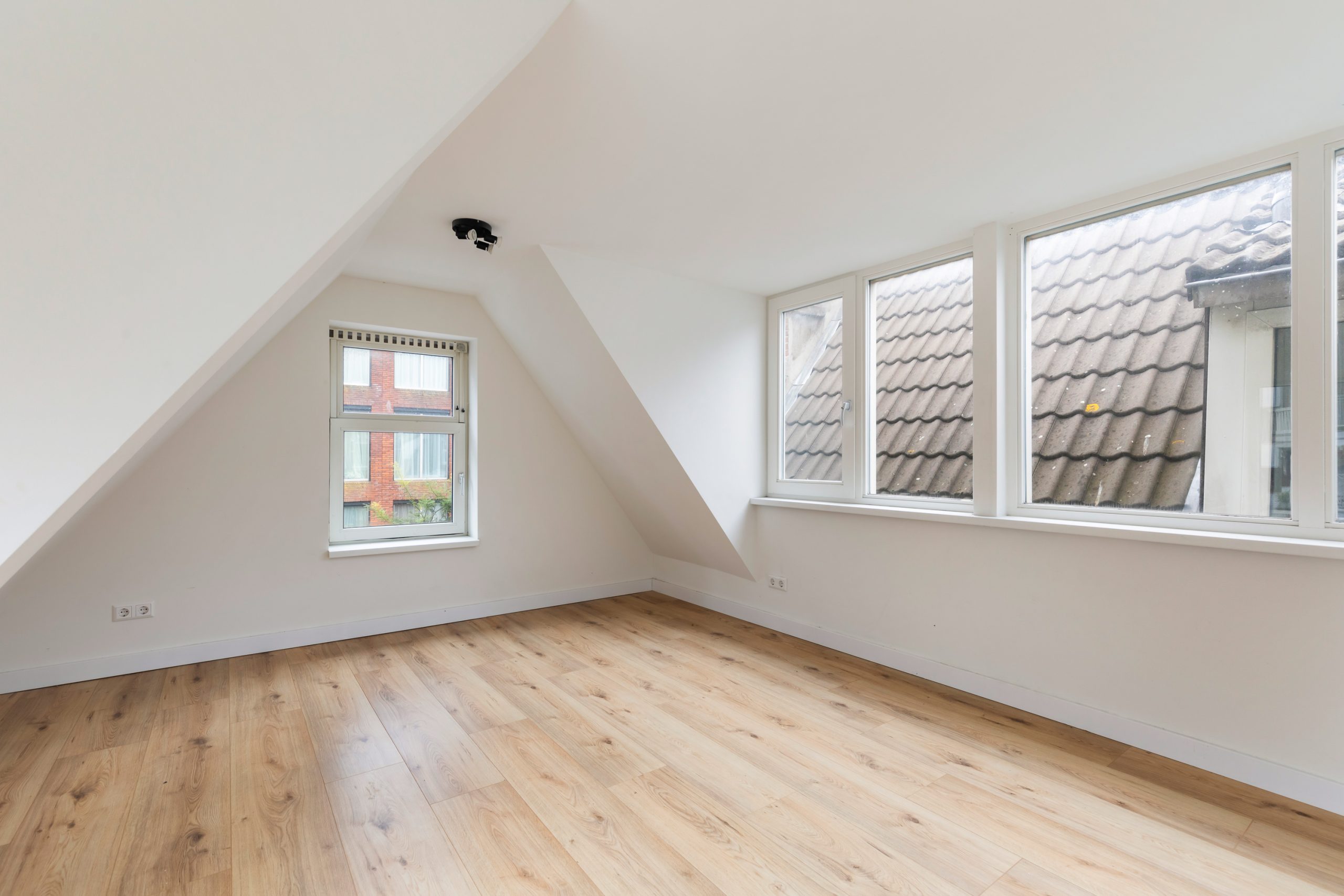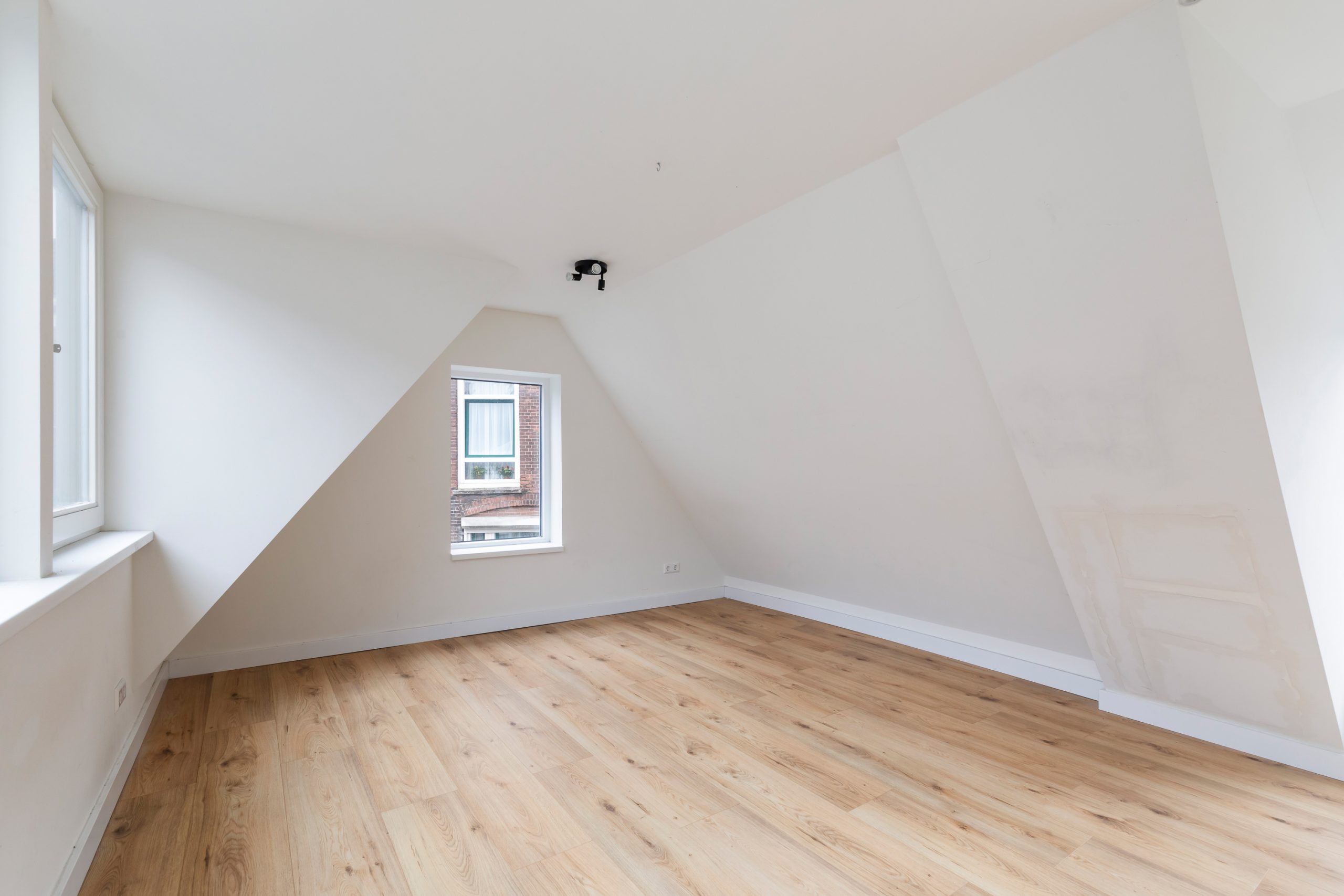 Overloop met berging en toegang tot de slaapkamers. Ook boven is alles netjes en met oog voor detail afgewerkt, waardoor het geheel mooi in balans blijft. Het schuine plafond zorgt voor een speelse indeling en geeft de ruimte een charmante en karaktervolle uitstraling. Beide slaapkamers zijn erg ruim van formaat.