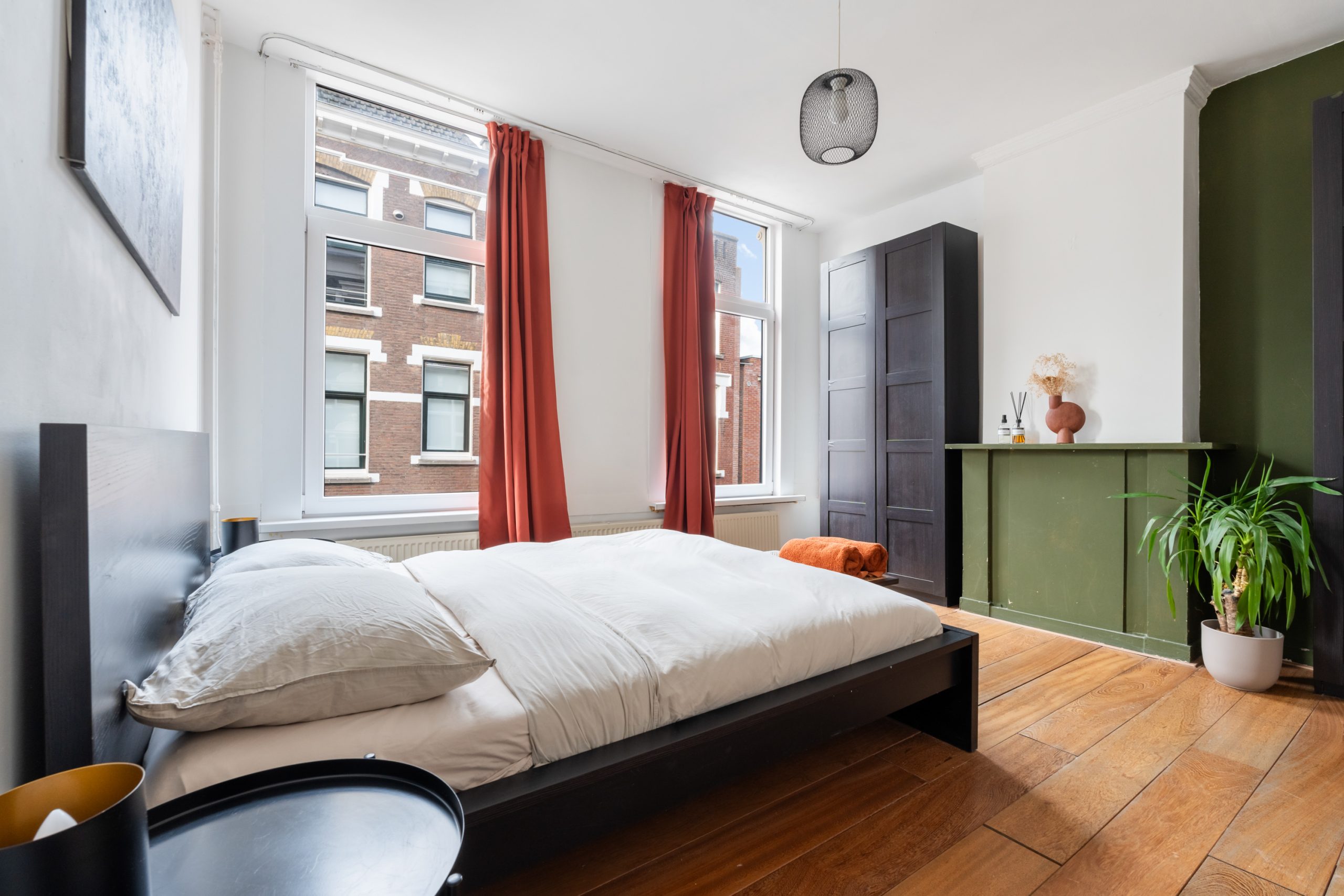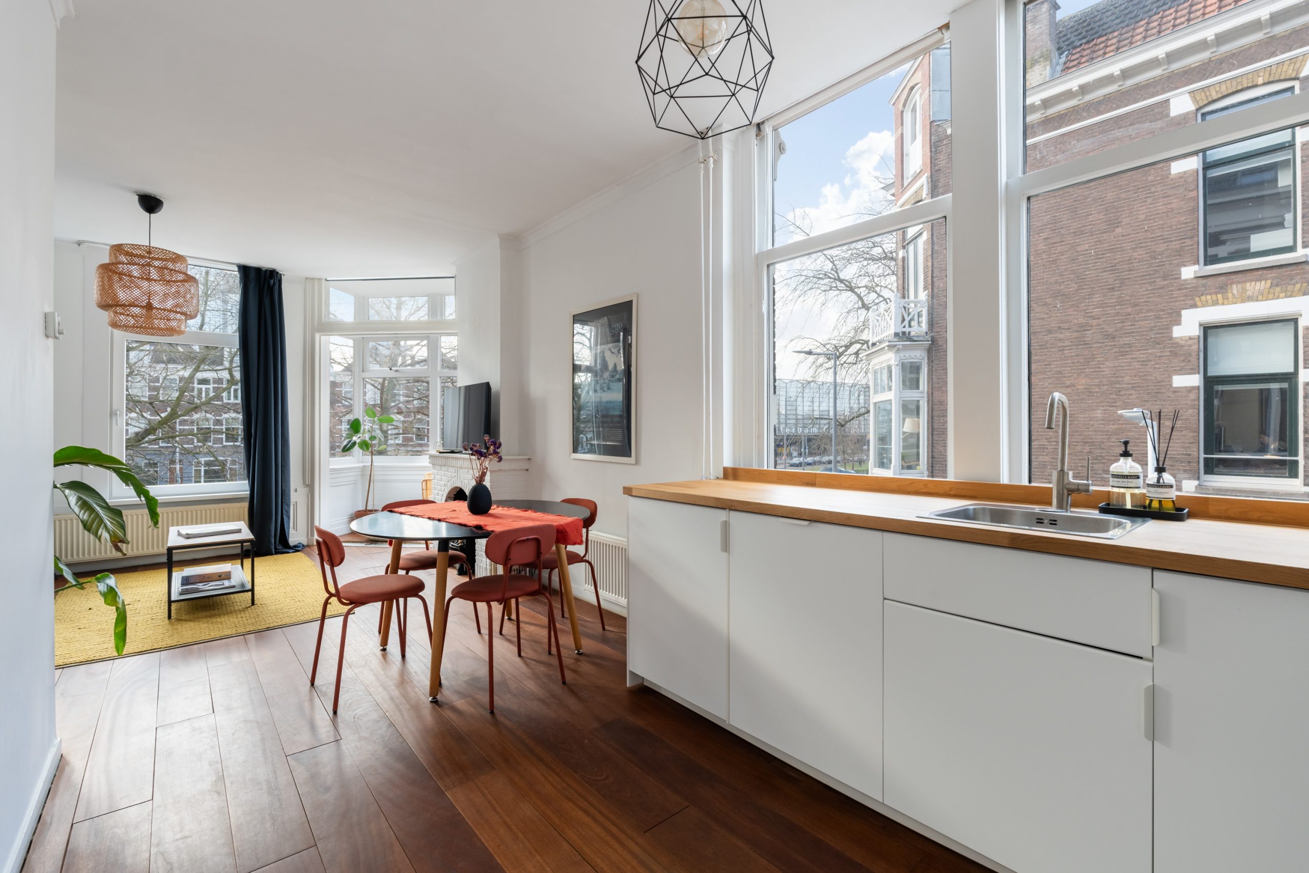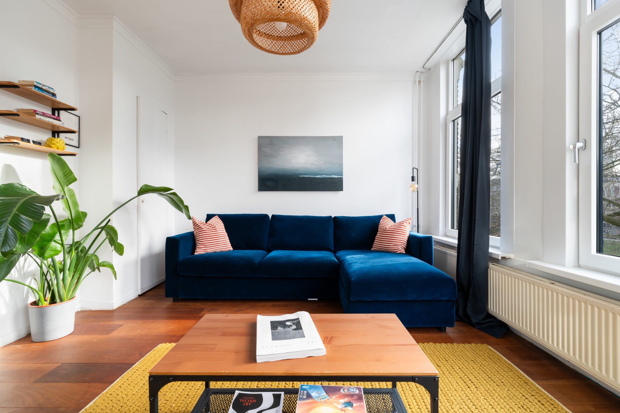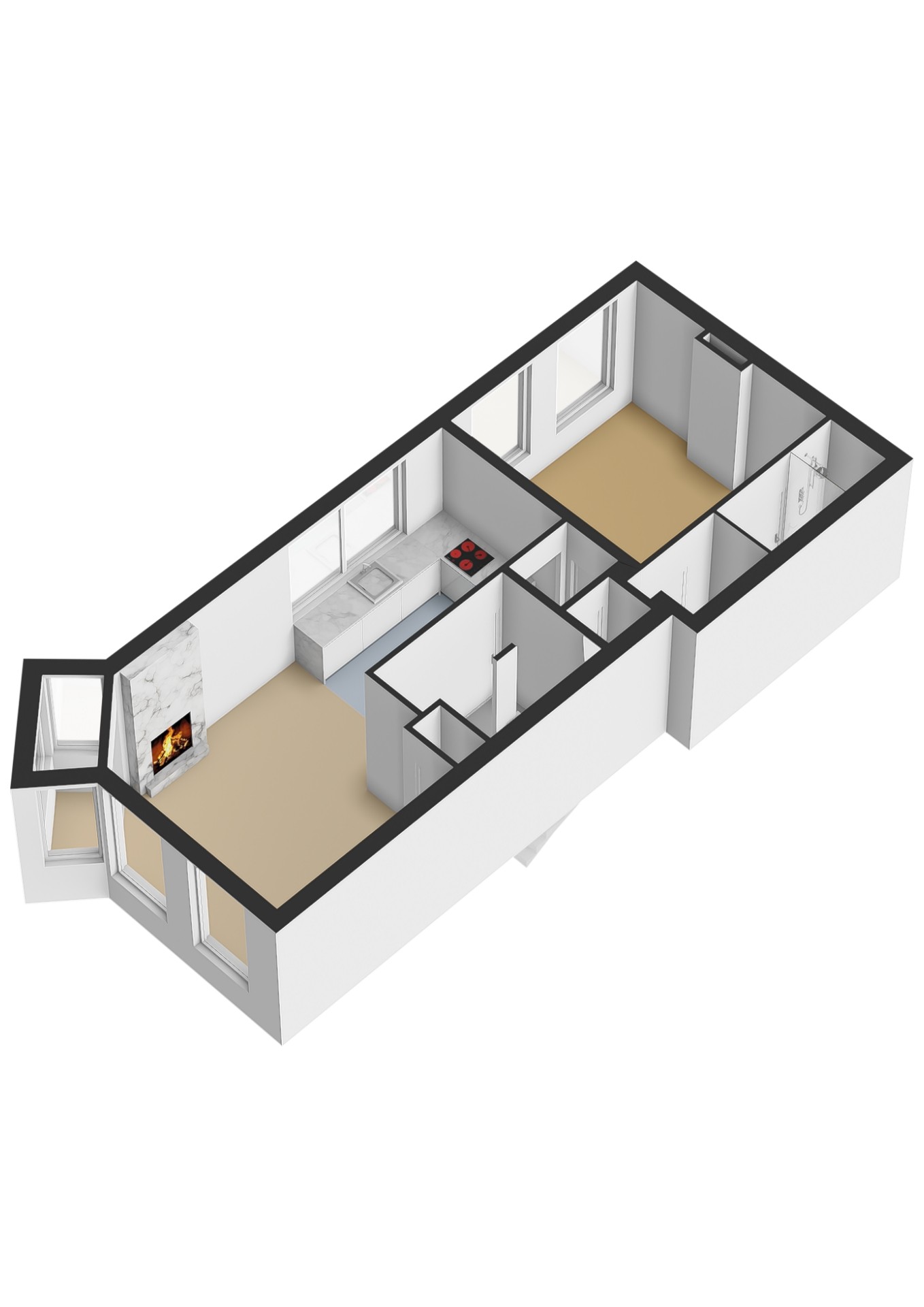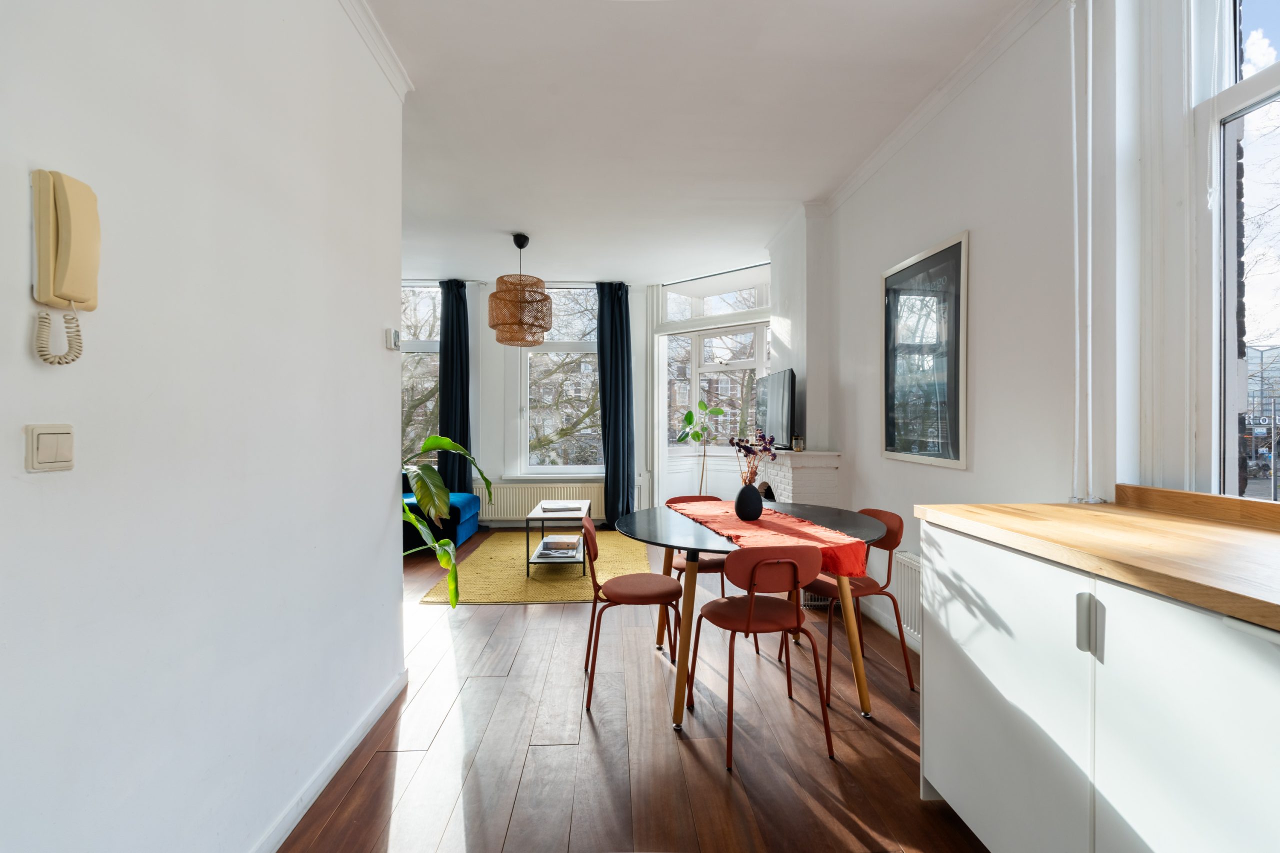 Ruime hal met toegang tot alle vertrekken. De ruime L-vormige woonkamer is gelegen aan de voorzijde. Door de hoekligging, in combinatie met de grote raampartijen en de speelse indeling, ontstaat een heerlijk licht en sfeervol woongedeelte. Dankzij de praktische indeling van de woning is het eenvoudig om het woon- en eetgedeelte van elkaar te scheiden, waardoor je gemakkelijk een gezellige en comfortabele eethoek kunt creƫren. De karakteristieke erker aan de voorzijde is een echte eyecatcher. Dit is een prachtige plek met uitzicht over de singel waar je heerlijk kunt zitten, werken of ontspannen. De moderne keuken beschikt over diverse soorten inbouwapparatuur zoals een 4-pits elektrische kookplaat met afzuigkap, oven, vaatwasser en een koelkast. Via de hal bereik je het separaat toilet en de slaapkamer. De slaapkamer met bergruimte (CV-opstelling, wasmachineaansluiting) is gelegen aan de achterzijde van de woning. Dit is een erg lichte kamer en beschikt ook over een mooie plafondhoogte. De badkamer met warme, mediterrane stucafwerking beschikt over een douche en wastafel.